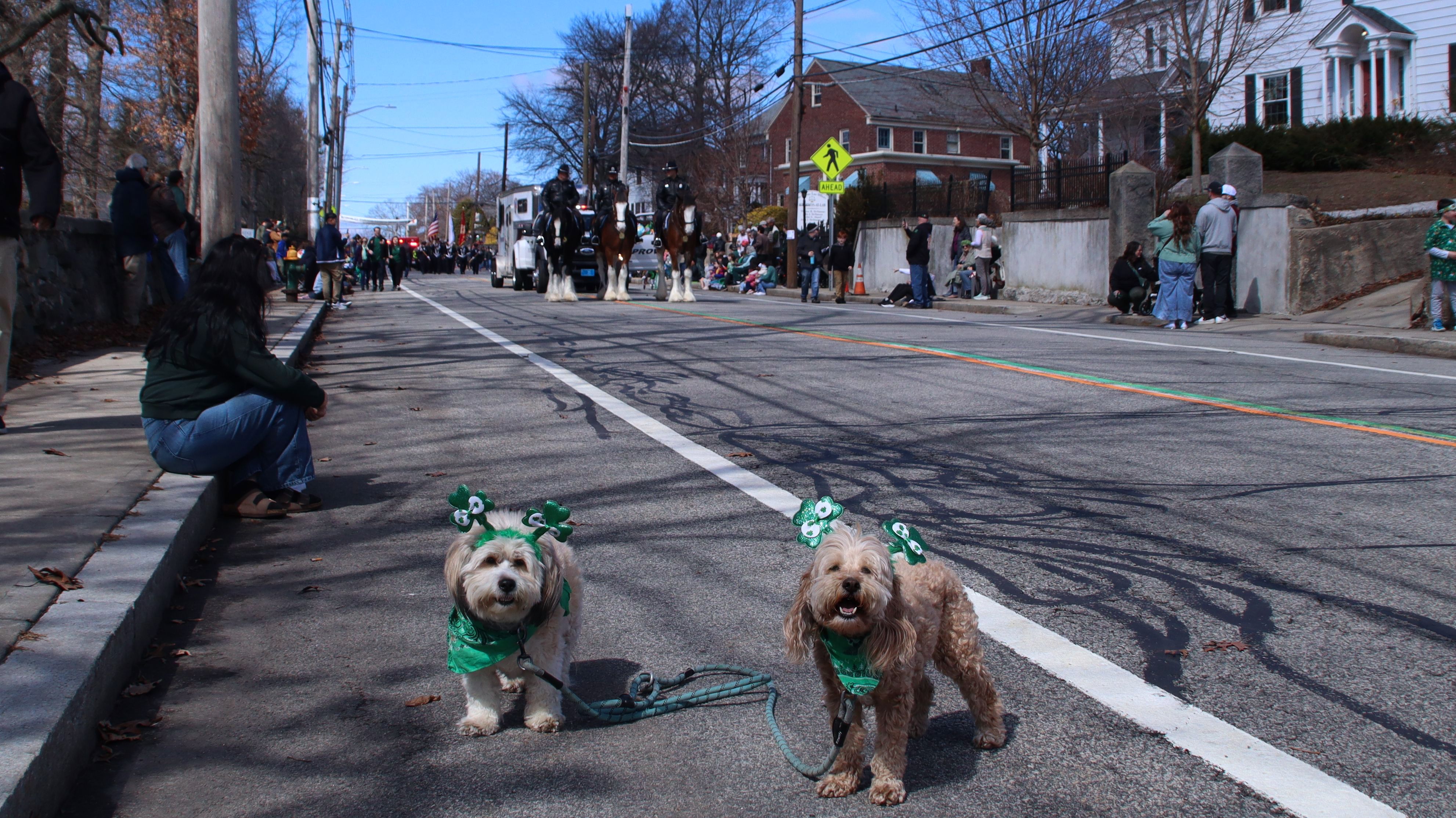 Happy St. Patrick's Day…again! Unlike the Newport St. Patrick's Day Parade, this one took place the Saturday after the holiday. The parade begins in the Elmhurst neighborhood and follows Smith Street (US 44) for about two and a half miles, ending at the State House. Before the parade, the Shoreham Bank St. Patrick's Day 5K road race was held along the same route, starting at the State House. We arrived just before the race began and ended up walking along the course as runners made their way toward us, gradually working our way up the route to the parade's starting point. We got there about 15 minutes before the parade began and found a great spot near the start. Unfortunately, we had to cut our day short. One of the groups in the parade was firing blanks from their guns, along with a cannon that was incredibly loud. The sudden noise made Lexi very nervous—she already struggles with fireworks and thunderstorms, and the repeated blasts were just too much for her. I do wish there had been some kind of warning, as we likely would have planned differently. The Newport parade didn't include any gunfire at all.