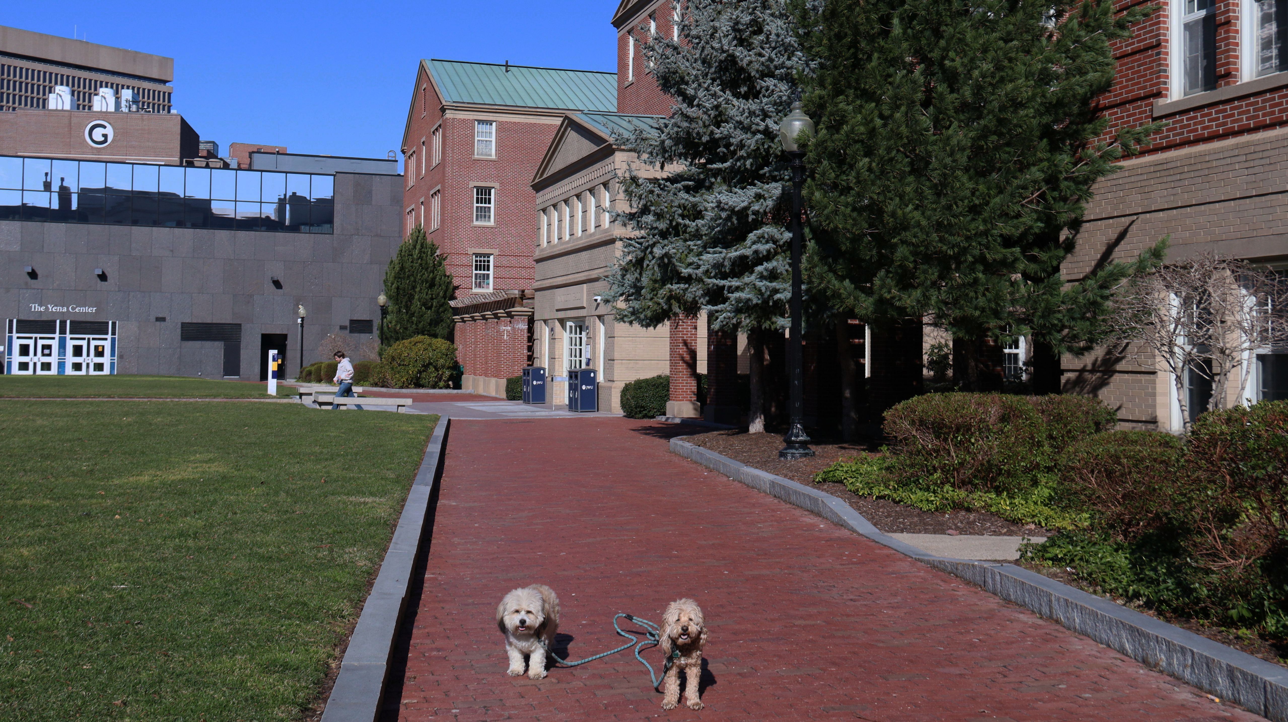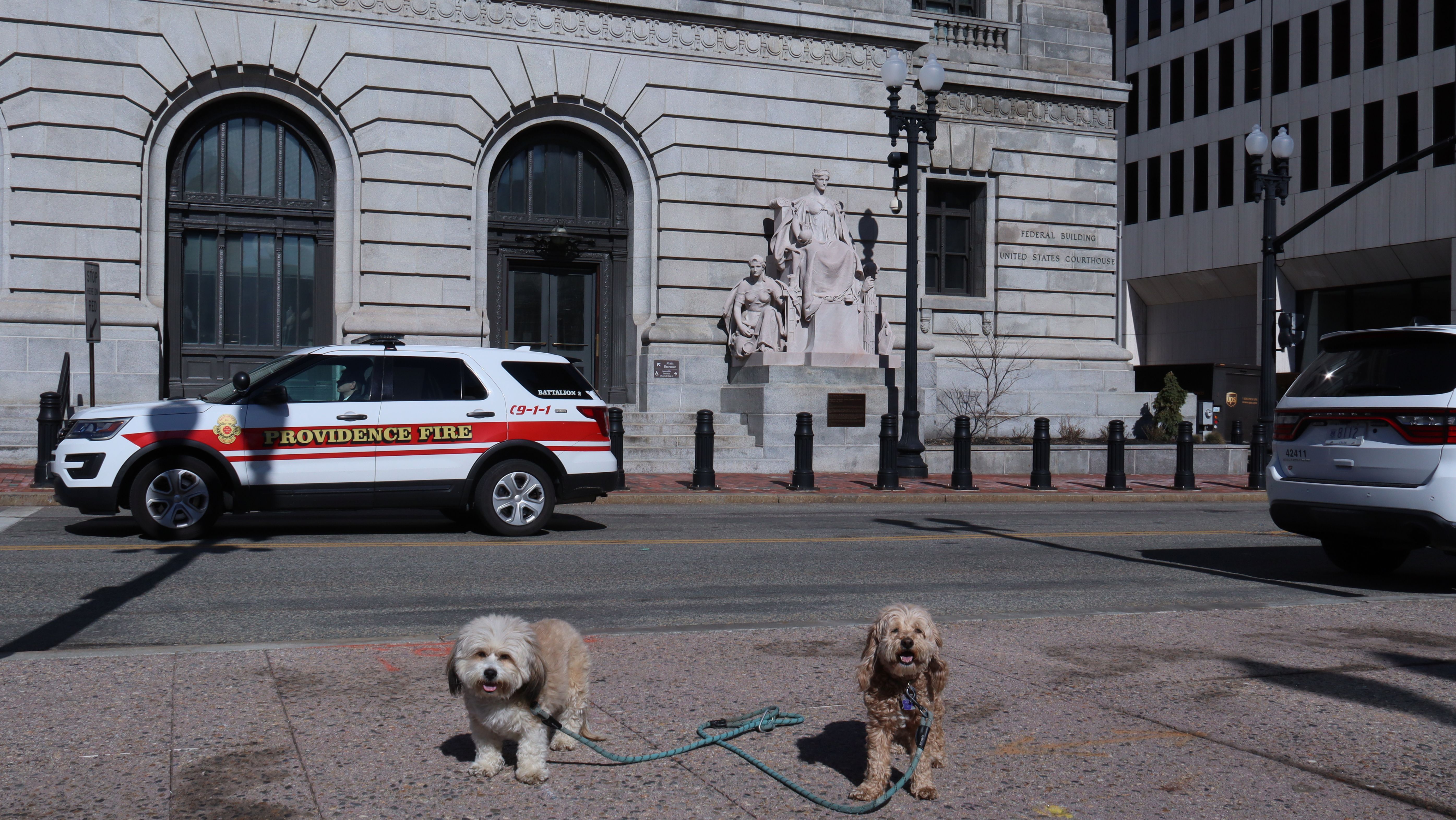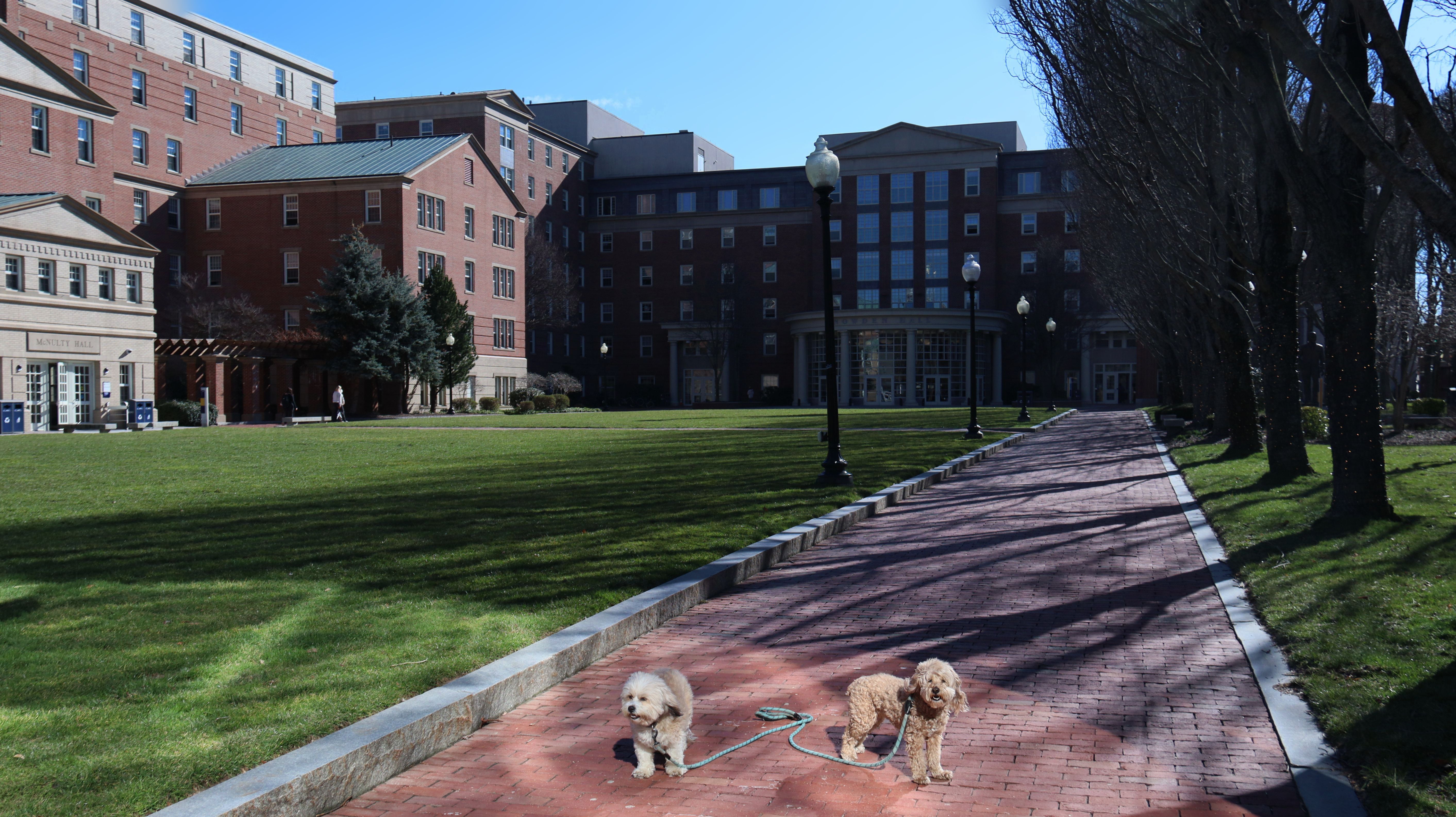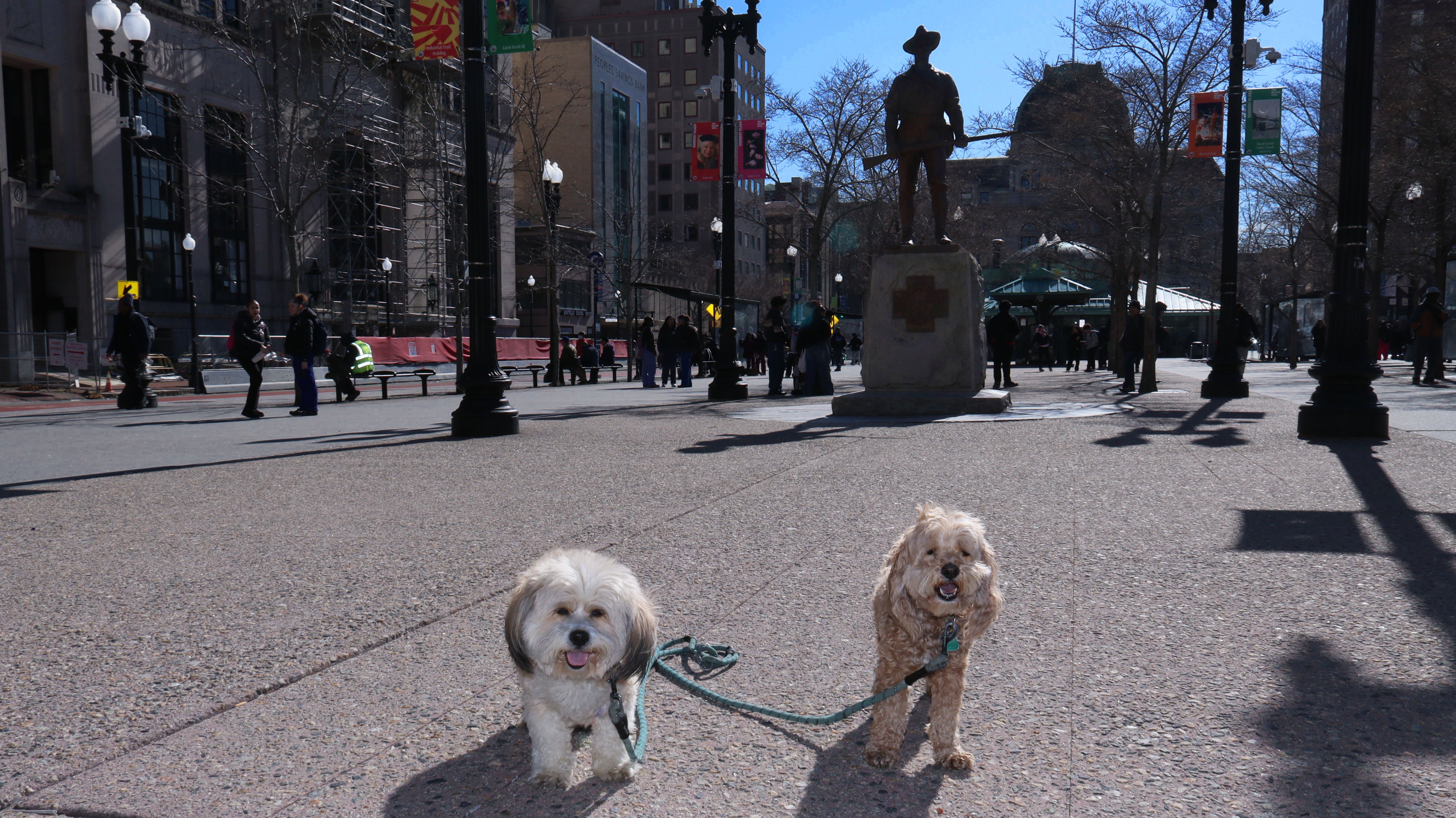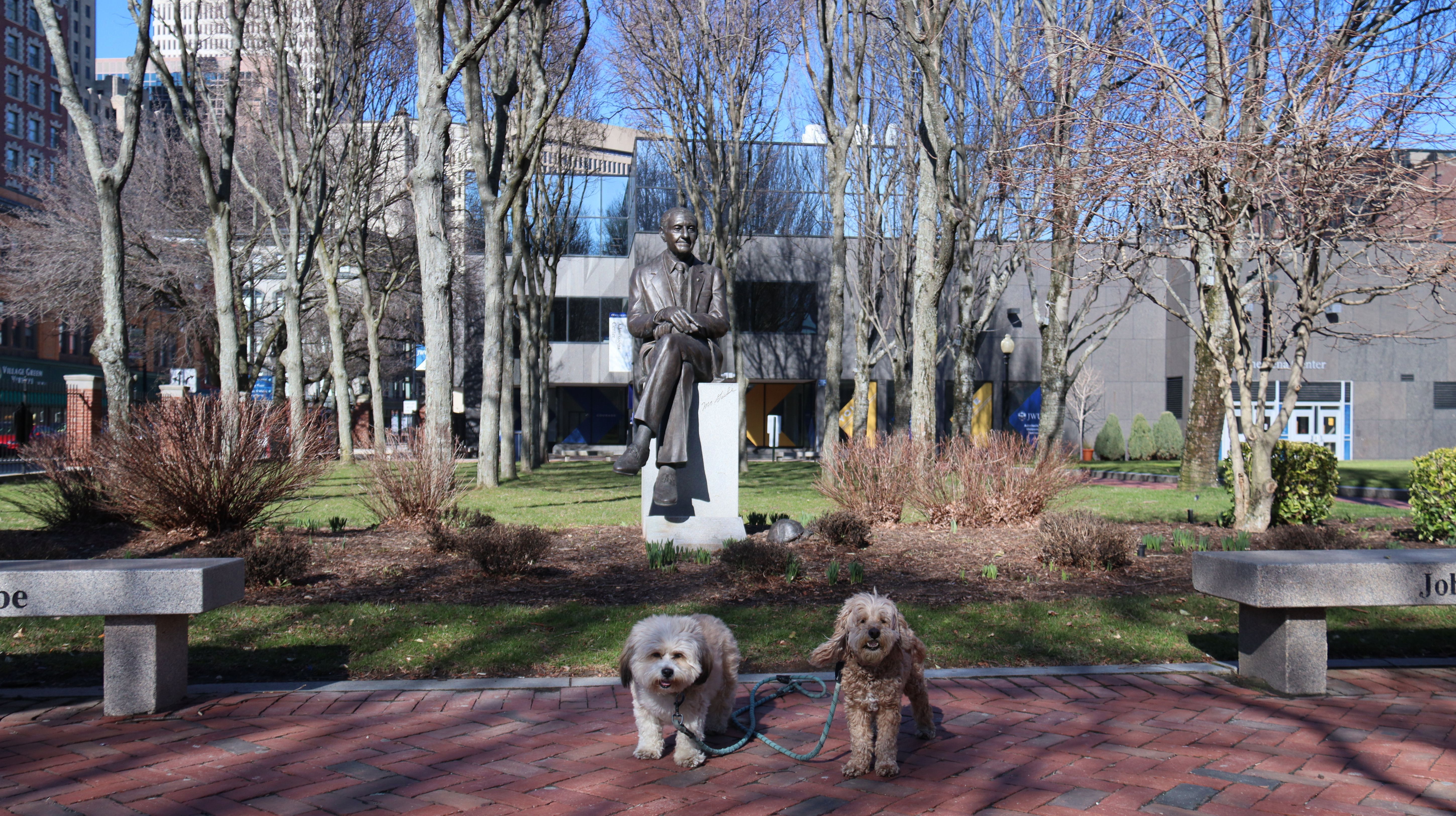 Fresh off their recent trip to Yale, Mandy and Lexi continued their tour of the Ivy League at Brown University. It's a beautiful campus, especially in the spring time. Some of the courtyards were very busy, and a number of students stopped to give Mandy and Lexi attention, which they absolutely love! It's a sprawling campus that includes 235 buildings spread out over 143 acres. We visited a large portion of that, but I'm sure there are some nice sections we missed. It was a beautiful spring day in Providence, and a fun 3.75 mile walk.