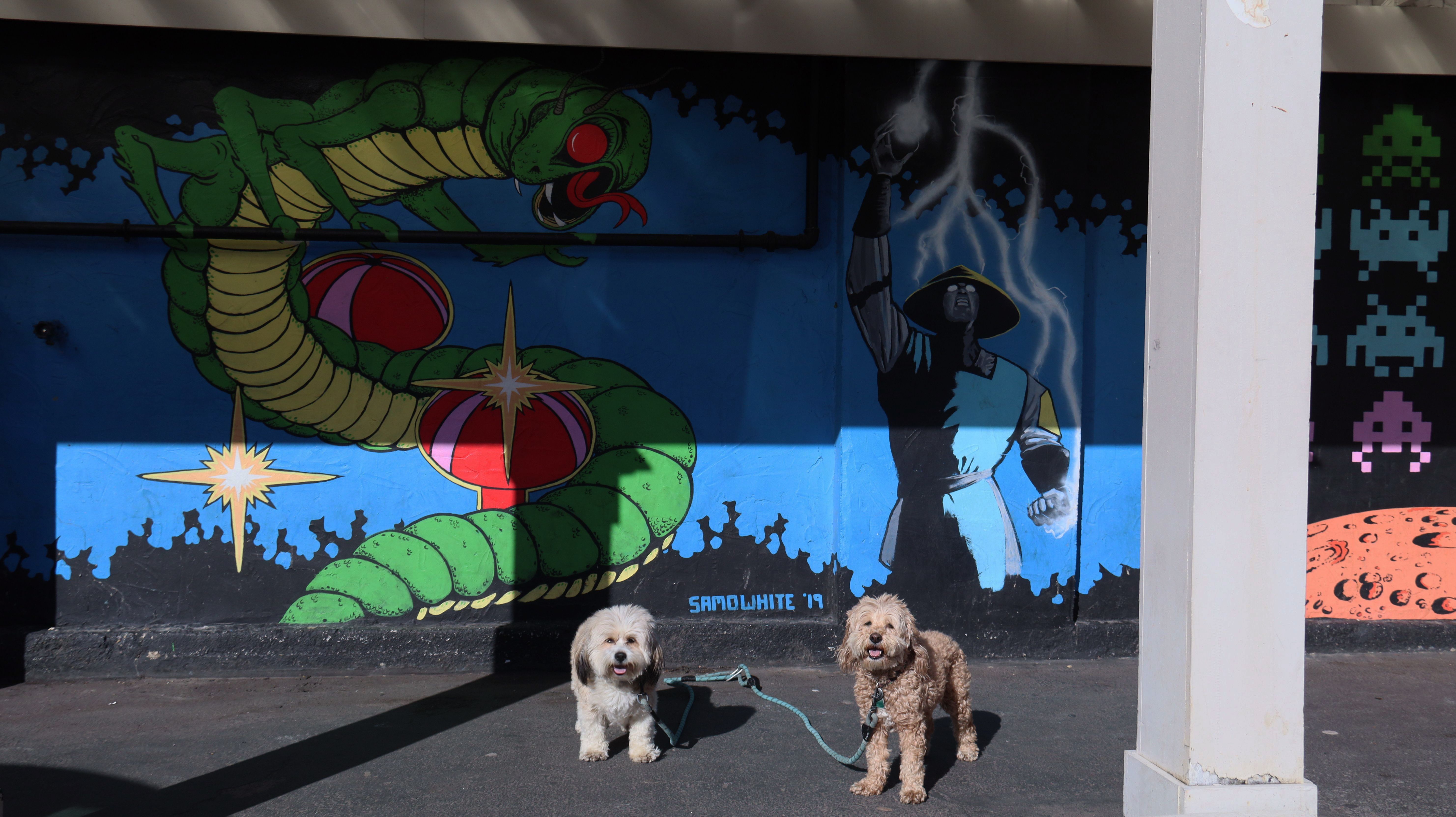I was looking for well-lit places to bring the dogs after work. With the end of daylight savings time, and the days getting shorter, it's hard to find things to do during the week. Some people on reddit suggested this place. We had visited it previously, a couple years ago. There's a walking trail and a park area inside the median between the two lanes of the boulevard. Like last time, we started at Lippit Memorial Park, and walked the entire trail and back. The street was well lit, but I thought the trail itself was still pretty dark. We didn't get very many photos, but at least we were able to get a nice walk in on an autumn evening.