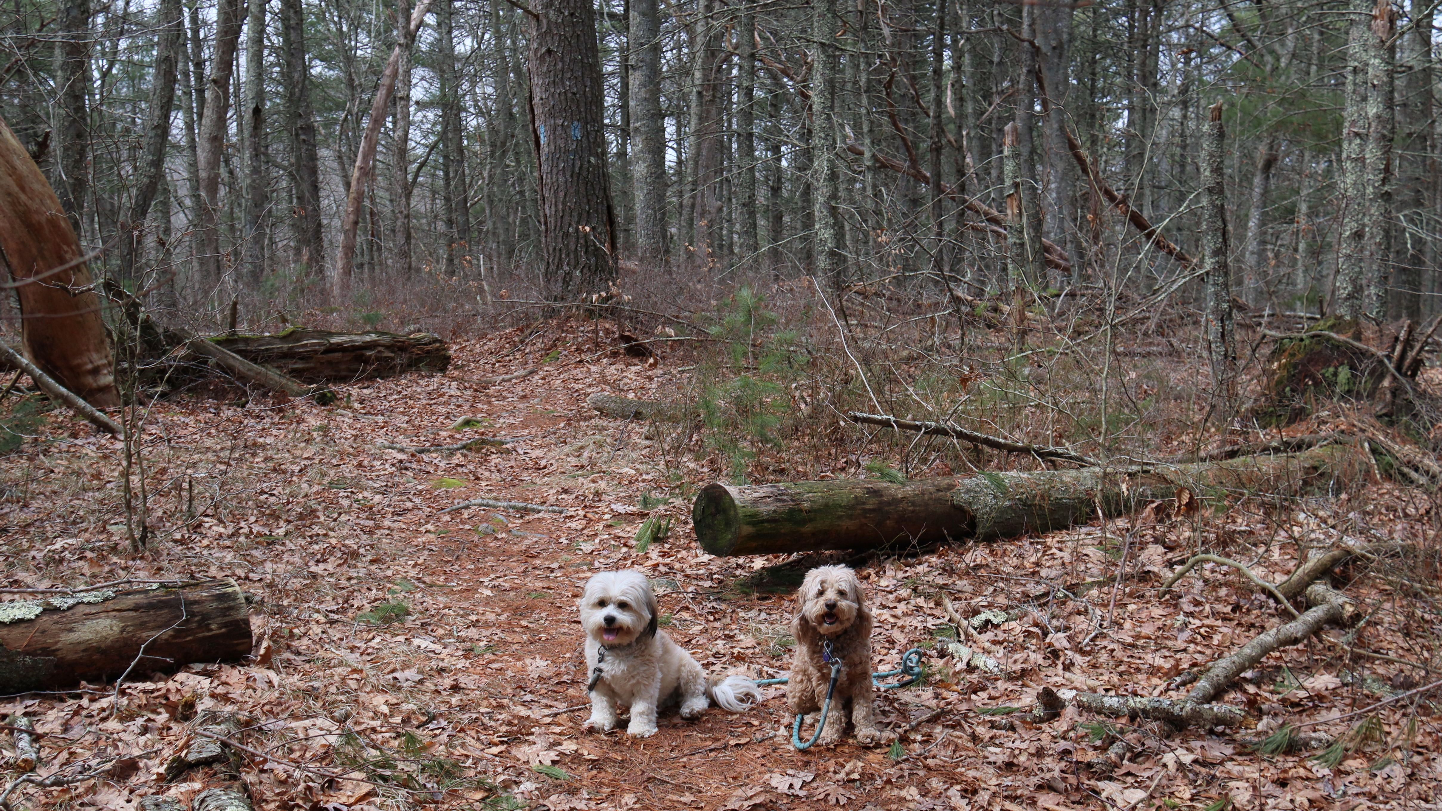 Up until this point, we've avoided the Rhode Island Management Areas this time of year. The reason is that during hunting season, hikers are required to wear a certain amount of orange by law. I finally caved and bought an orange vest for myself, and for Mandy and Lexi as well. That allowed us to enjoy this very nice 2.5 mile trail through a beautiful forest. The loop trail we hiked is known as the North Loop Trail. The first half runs along a wide, dirt road. The other half of the loop is a narrow trail. The forest consisted of mostly pine trees, which still look great even in the winter. It made for a nice, scenic winter hike.
