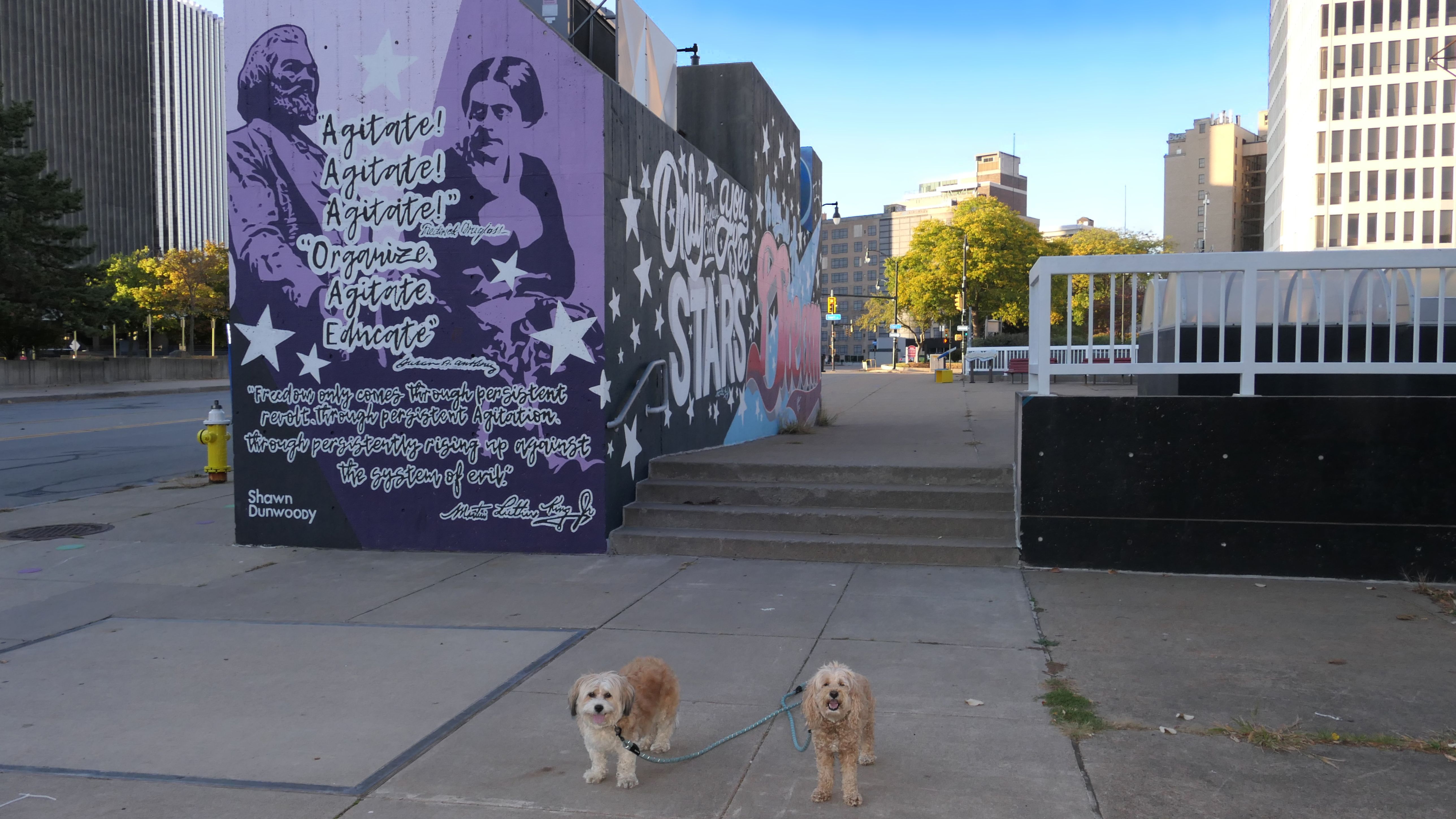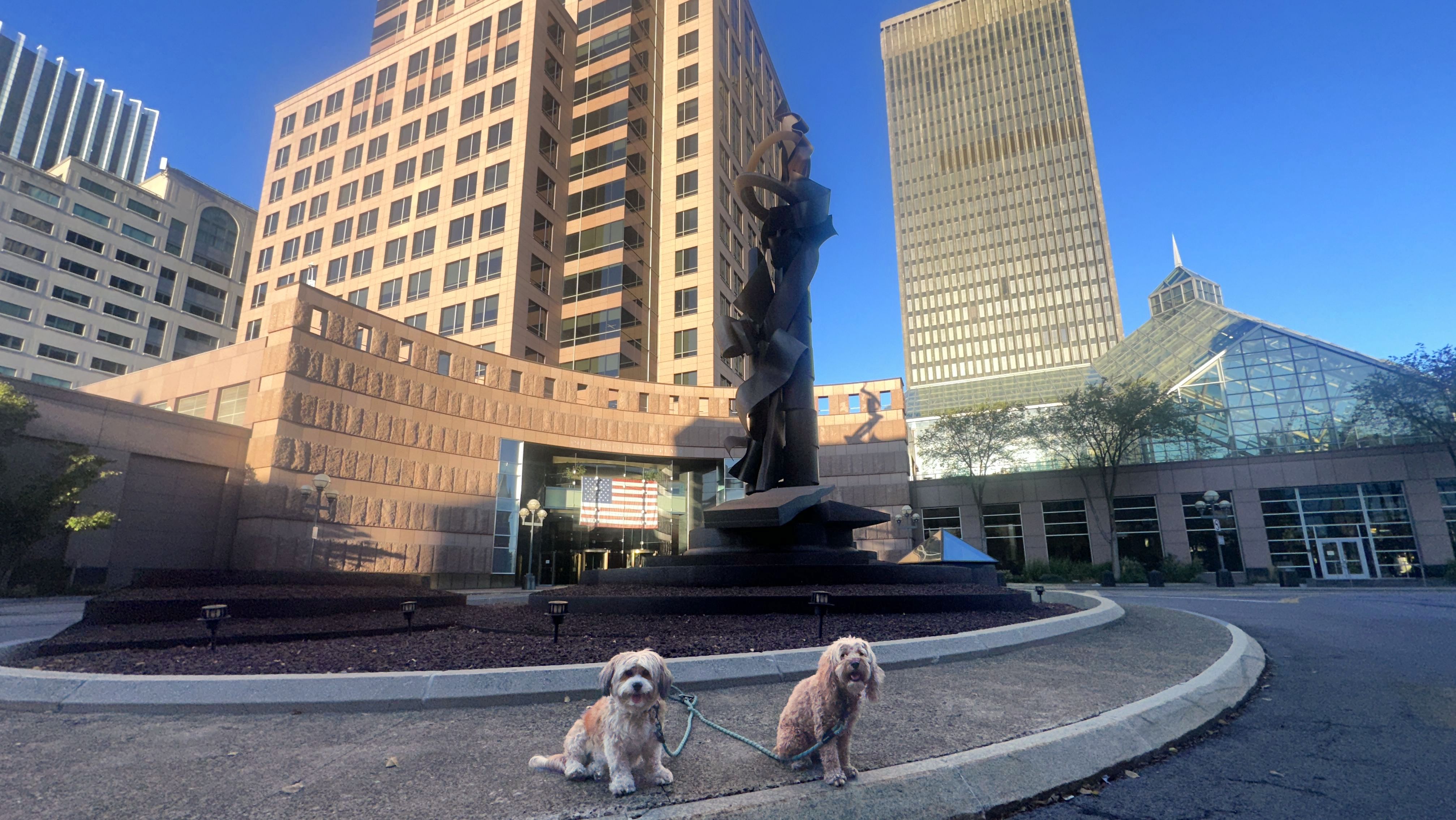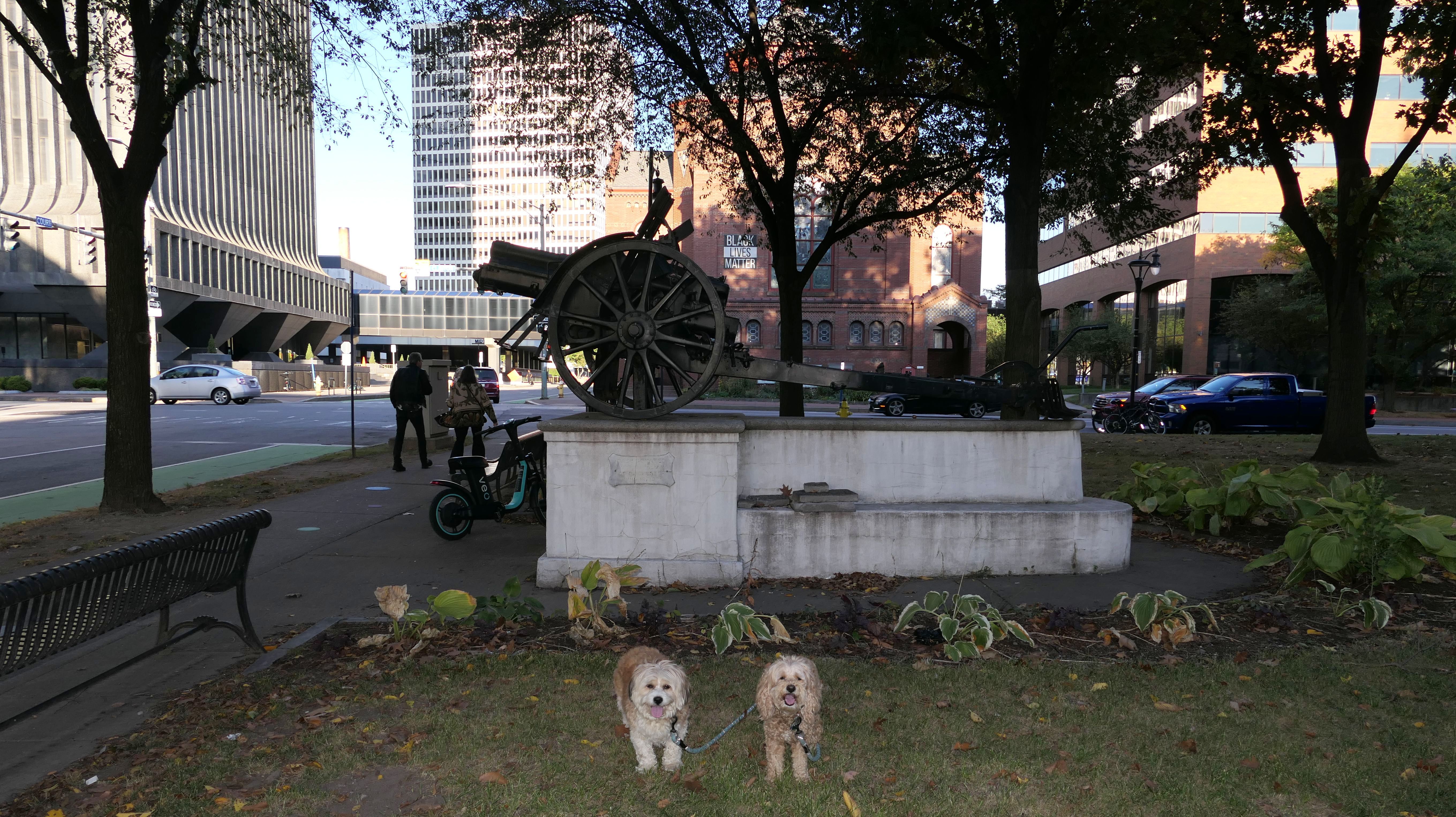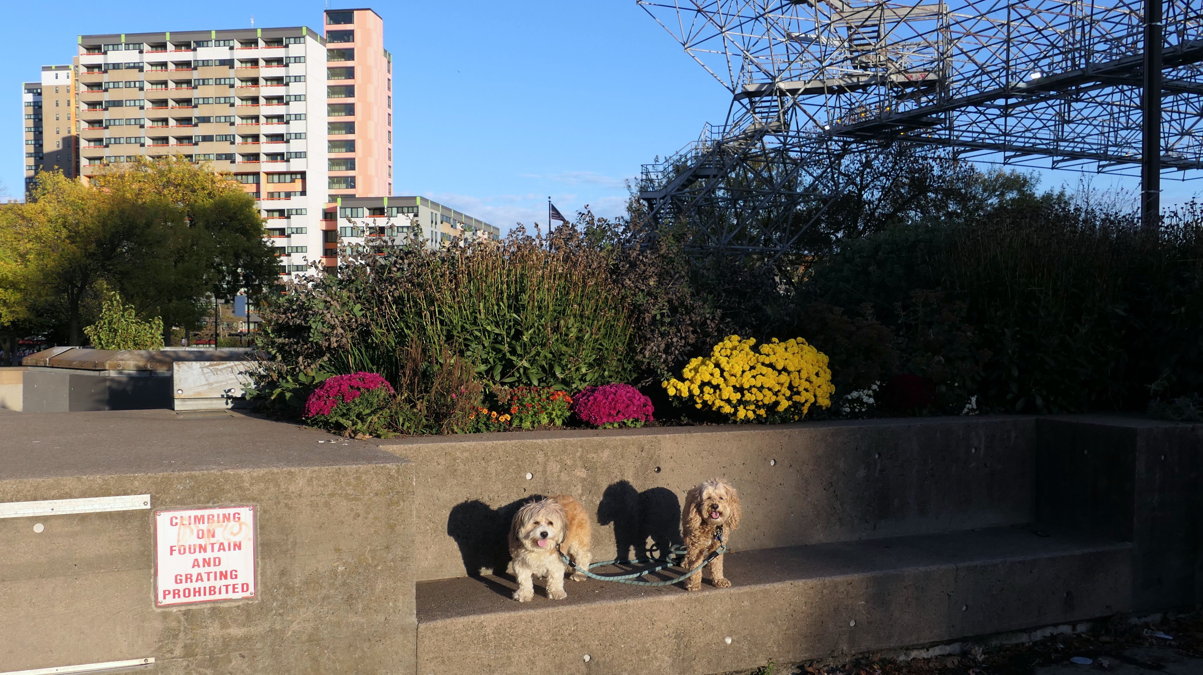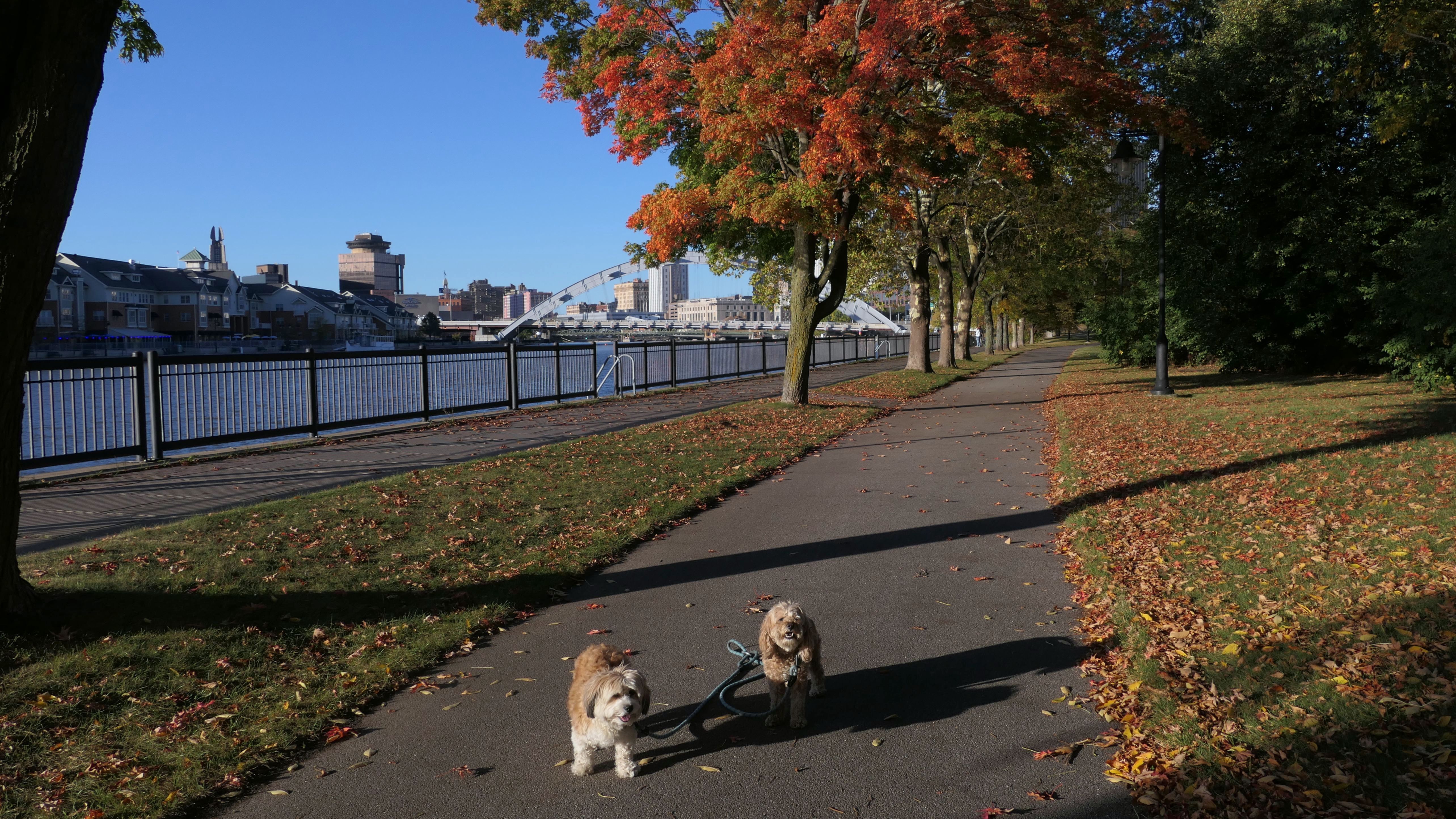 We actually adopted Mandy in Rochester, 10 years and 18 days prior to this visit! This was a homecoming for her, but I'm sure she doesn't remember any of it, as she was pretty much kept in a crate outside before we rescued her. At any rate, we were out near Syracuse in a town named Geddes, and decided to drive an hour east for the sunny skies in Rochester! This park features paved walking paths along the river, with great views of the city. The park was clean and looked well maintained. We didn't arrive until about 5:15PM, so we didn't have a lot of daylight left. The path led us to the downtown area, where we explored what we could, before heading back to the park. We walked a little over two and half miles total on a beautiful autumn evening.