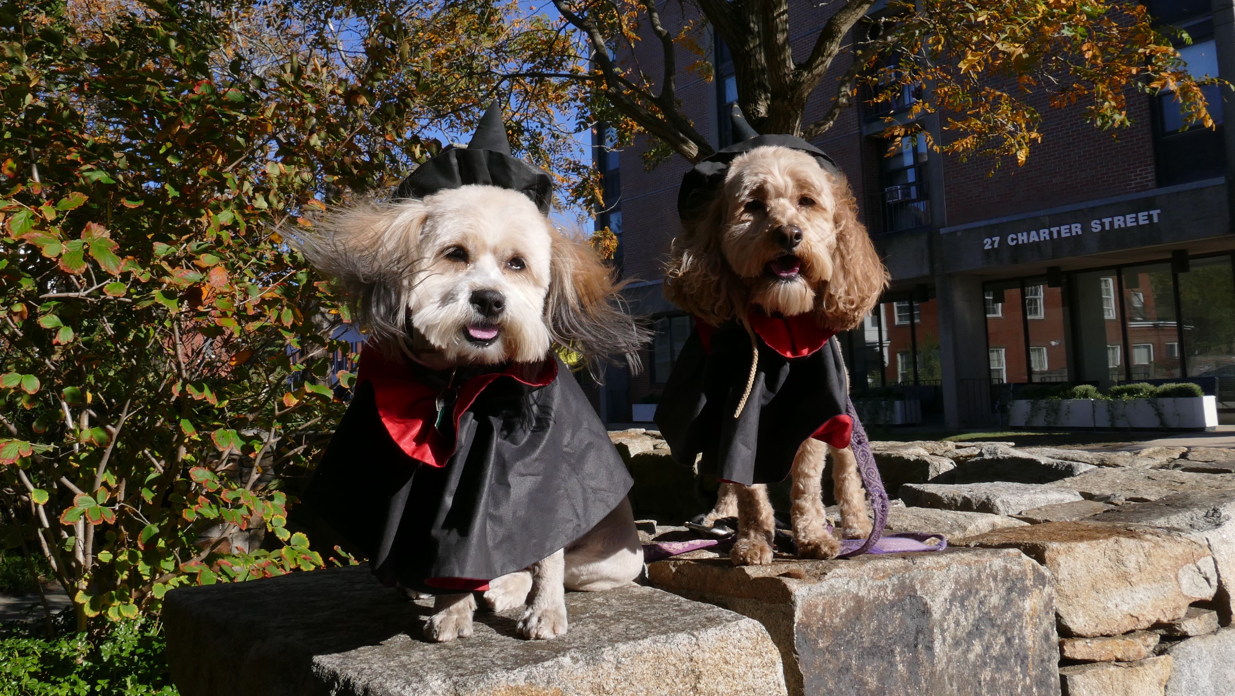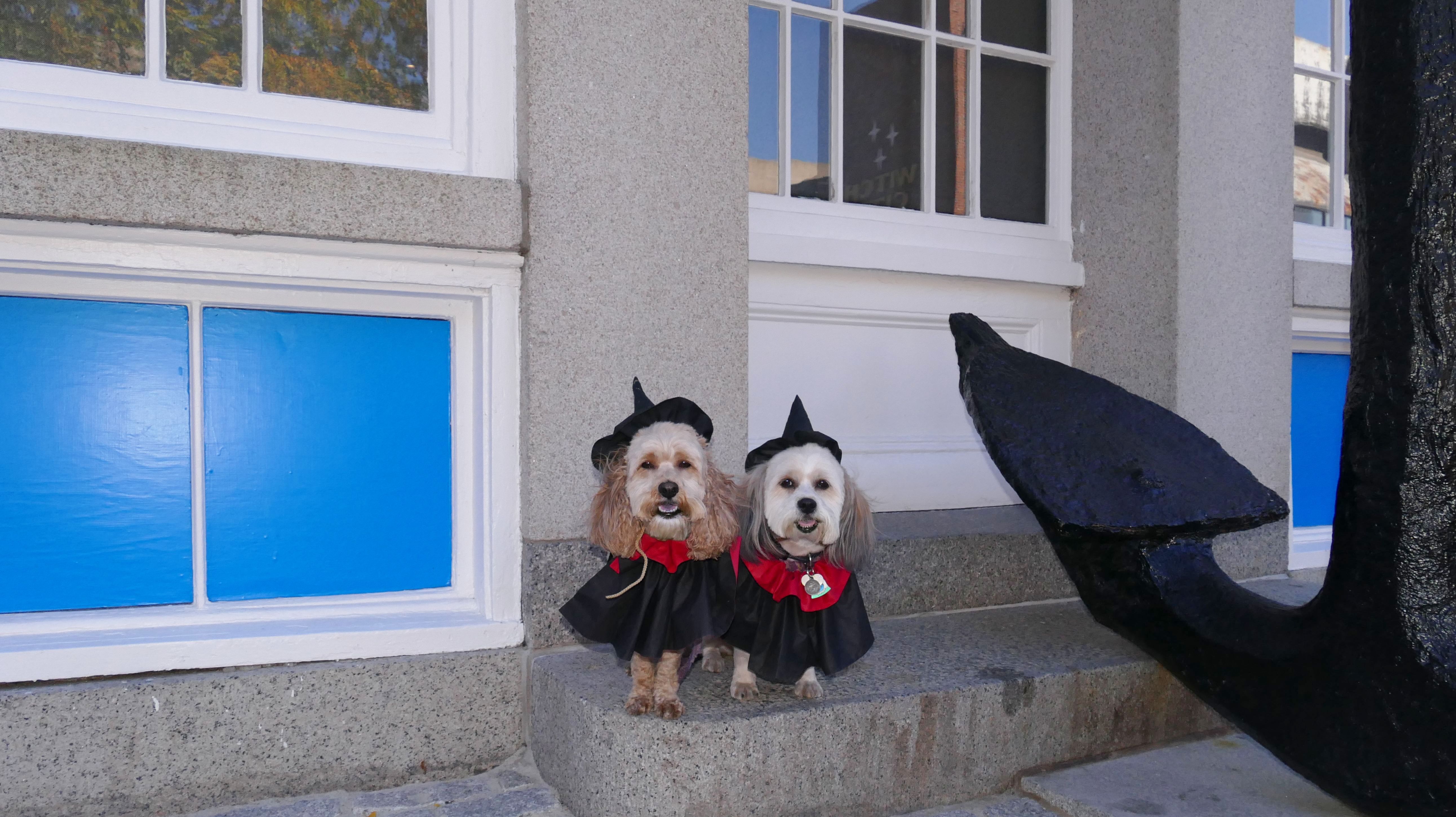 My wife wanted to go to Salem, MA in October to check out a bunch of shops. Since I wasn't going to go into any shops, I thought I could take Mandy and Lexi for a walk around town while she was shopping. Somewhere along the line, I had the idea that it would be cool to have the dogs wear their witch costumes since it was Salem during Halloween season. I really didn't think it was that original of an idea. Yet, they were very popular! I got stopped at least 30 times by people wanting to take their picture! Mandy and Lexi were instant celebrities. Lexi ate up the fame...Mandy had enough of it after a while! The last picture in the set my wife took as she left one of the shops and saw me with four young women all pawning over my dogs!