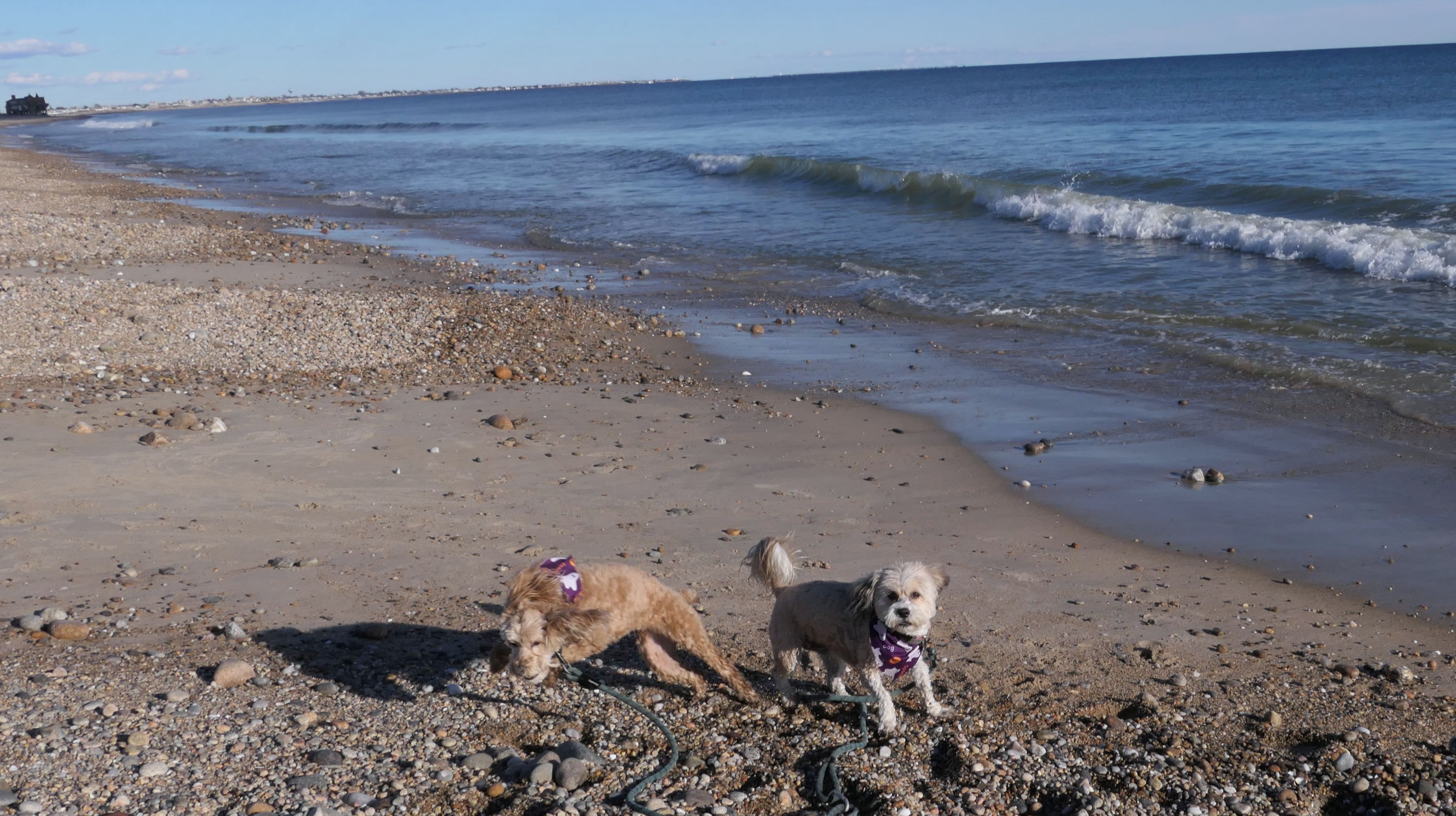It's hard to believe that it took me this long to find this place! There's no real information on the interwebs about this place. I only found out about it because a nice woman that I met on a different adventure told me about it. It's called "Dog Beach", and as the name suggests, it's a beach for dogs. Locals bring their dogs here, and they are allowed off-leash. The beach opens out to the west side of Point Judith Pond, north of the breachway, so the waves are mild. The area is actually part of Succotash Marsh Wildlife Management Area. It's accessible at the end of Succotash road, after it turns into a dirt road after passing through the Jerusalem fishing village. There's a monument near the parking area dedicated to dogs that have passed who used to visit the beach. Owners put their names on painted rocks. It's kind of neat, but kind of sad as well. Mandy and Lexi loved running around and playing on the beach. They also played with two other dogs they met, Max and Blue. The beach is also used by locals just to hang out, so be aware, parking is limited. We were here on a Wednesday afternoon on a hot day in October, and there were only a couple parking spots available. I imagine it could fill up quickly on weekends in the summer!