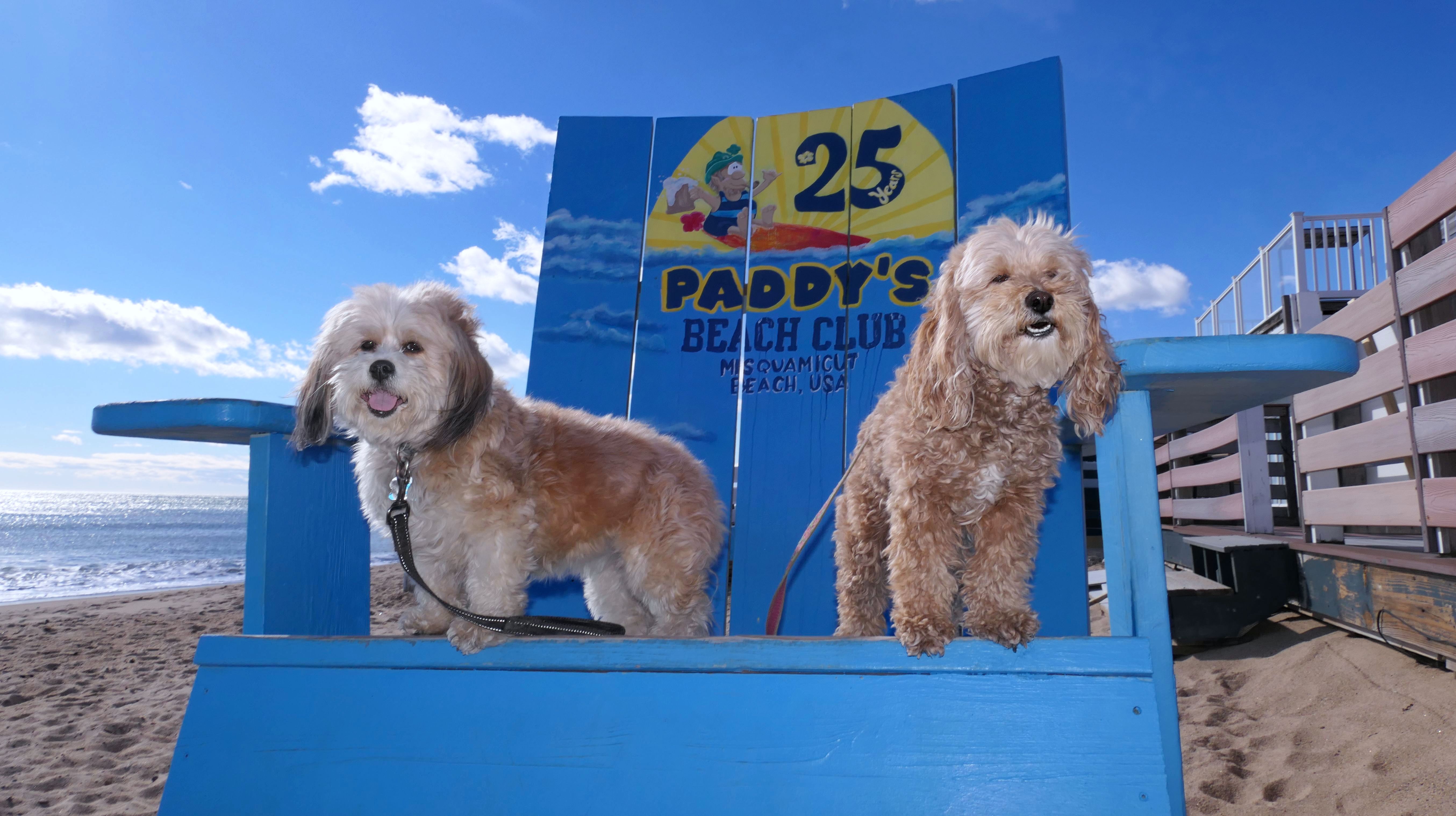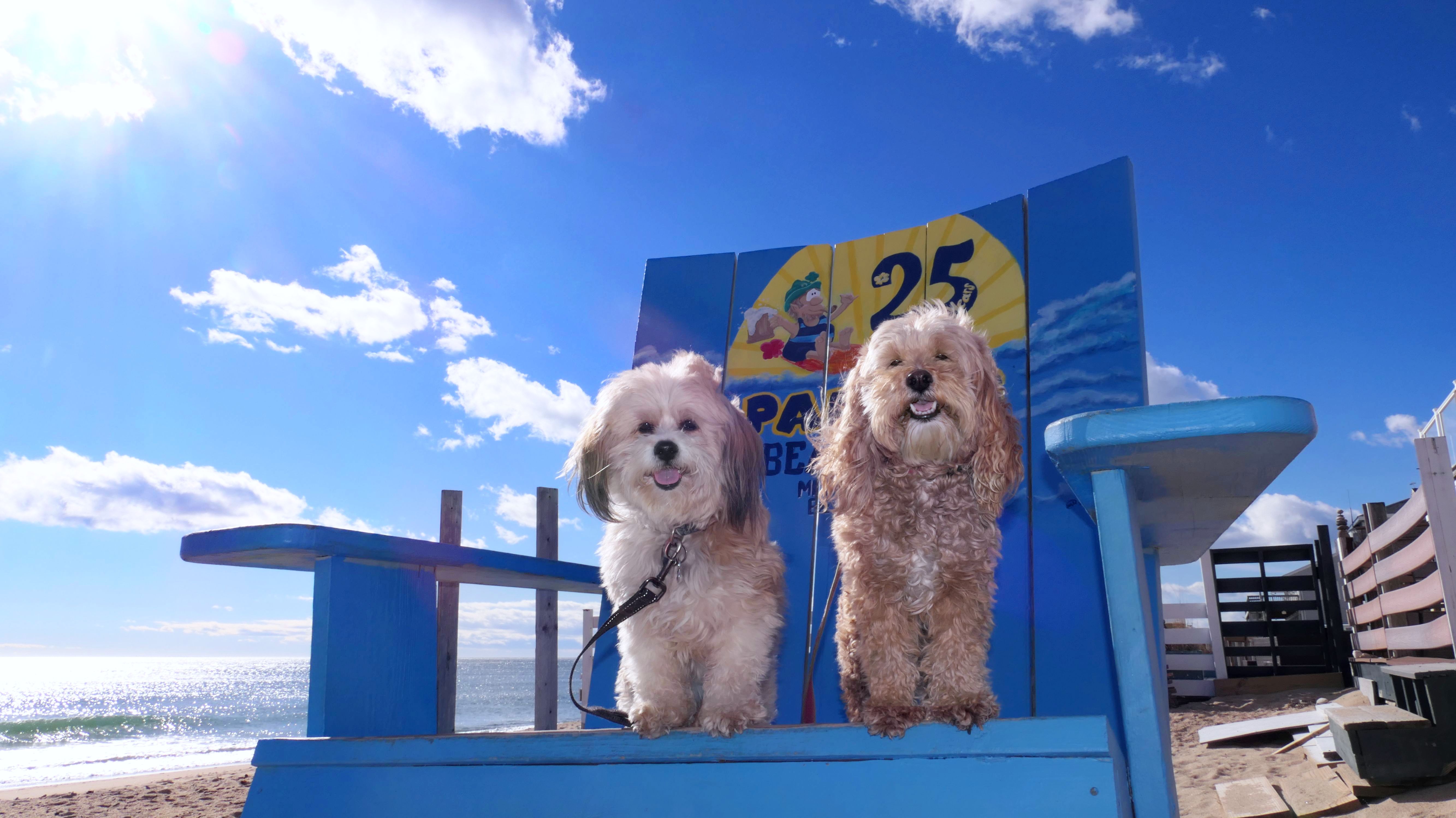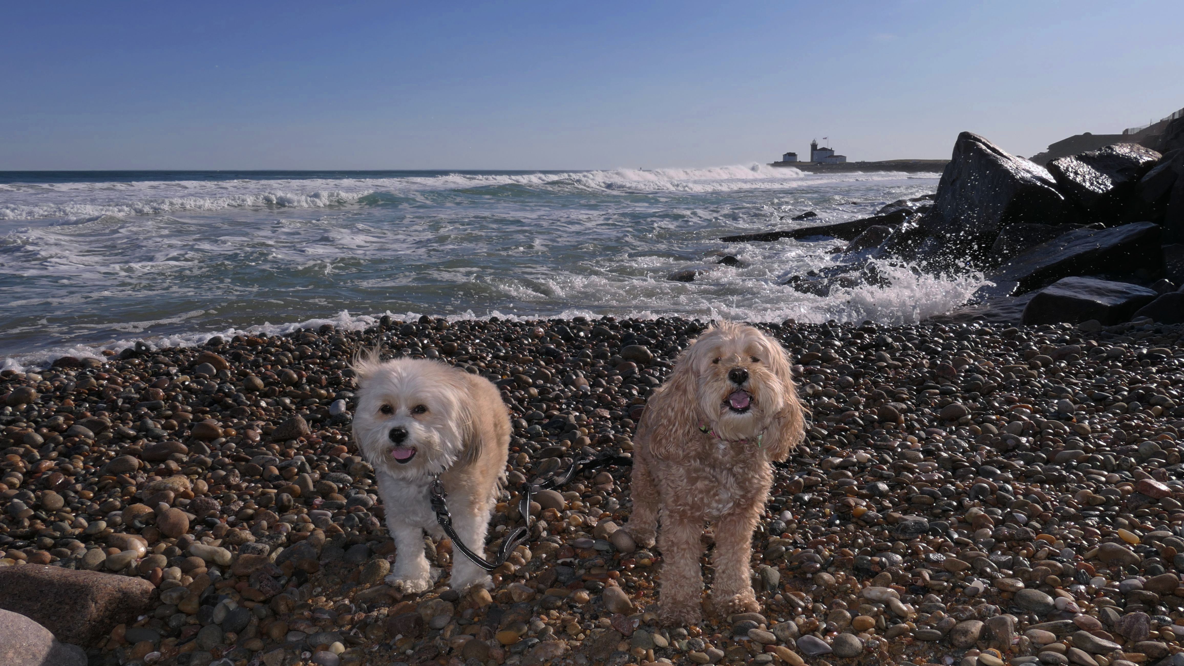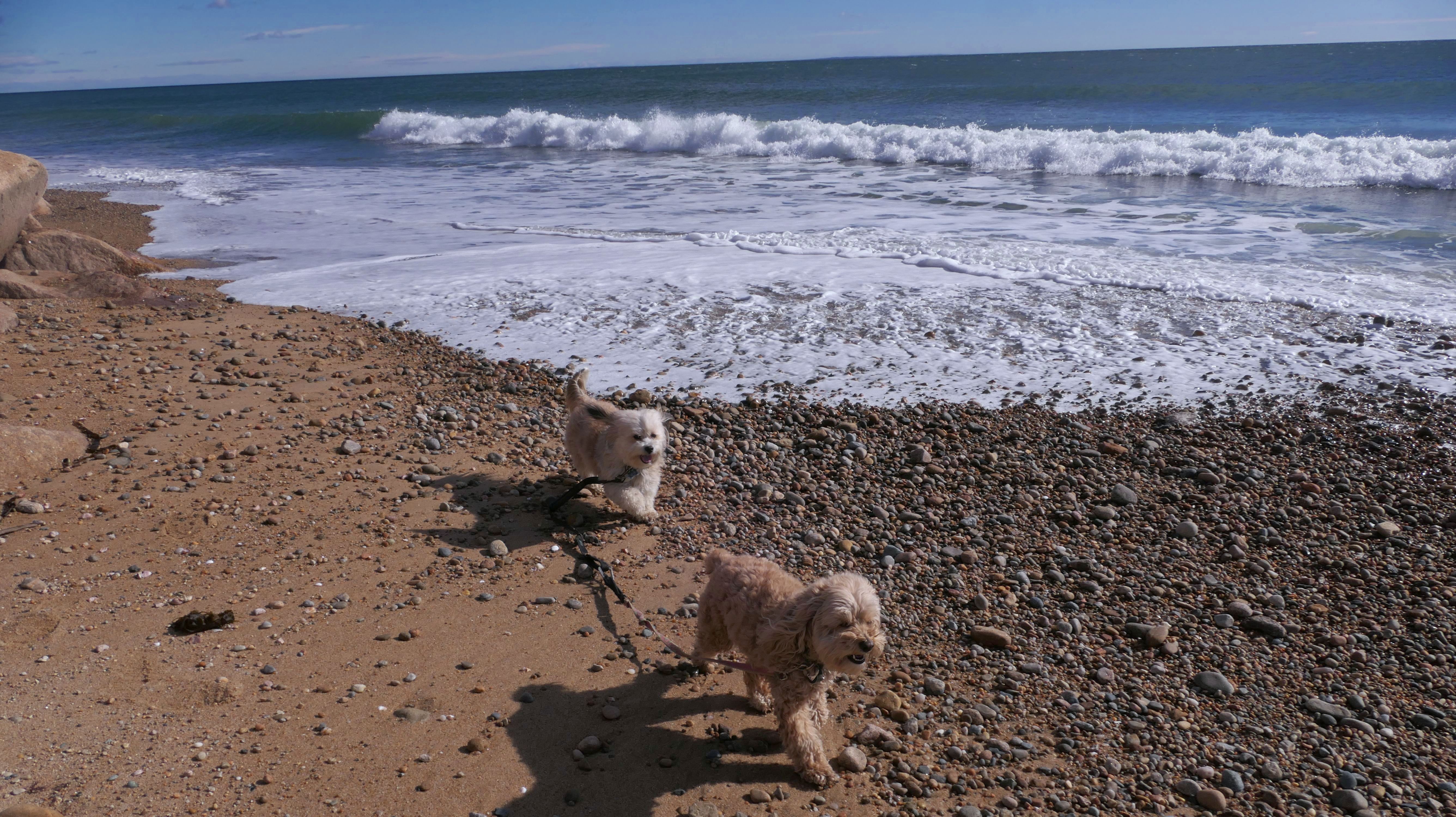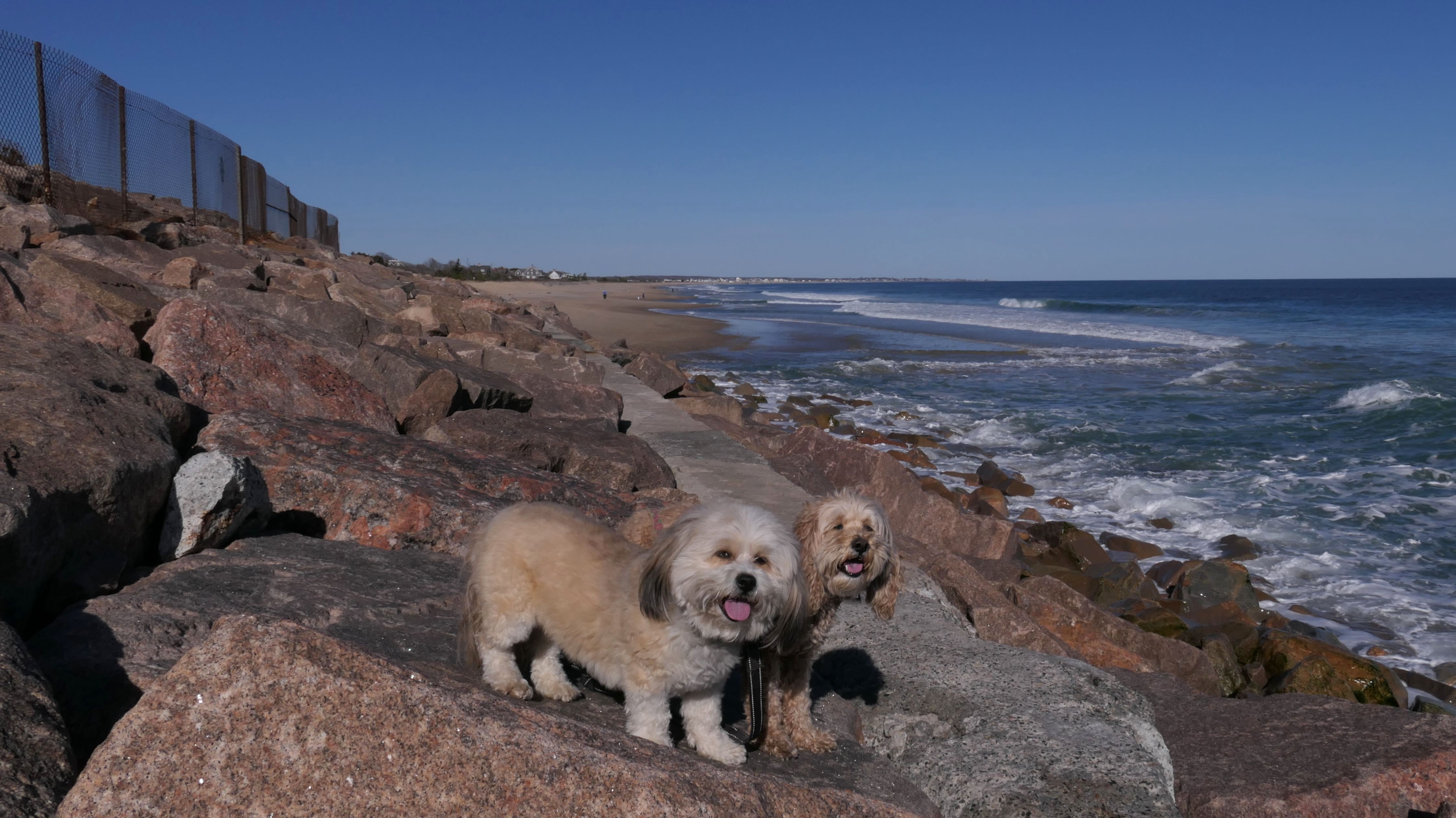 We had record temperatures inland, approaching the mid-80's, so we of course went to a beach! I didn't feel like driving to New Jersey for the 3rd straight day, so we made a return visit to Misquamicut. It wasn't as warm here, probably low to mid 70's, but very breezy. I suspect the wind kept people away. We explored some of the surrounding area before walking the beach. The waves were really ripping here. Mandy kept trying to walk in the water, but Lexi would pull her away. It was a fun adventure, despite the windy conditions.