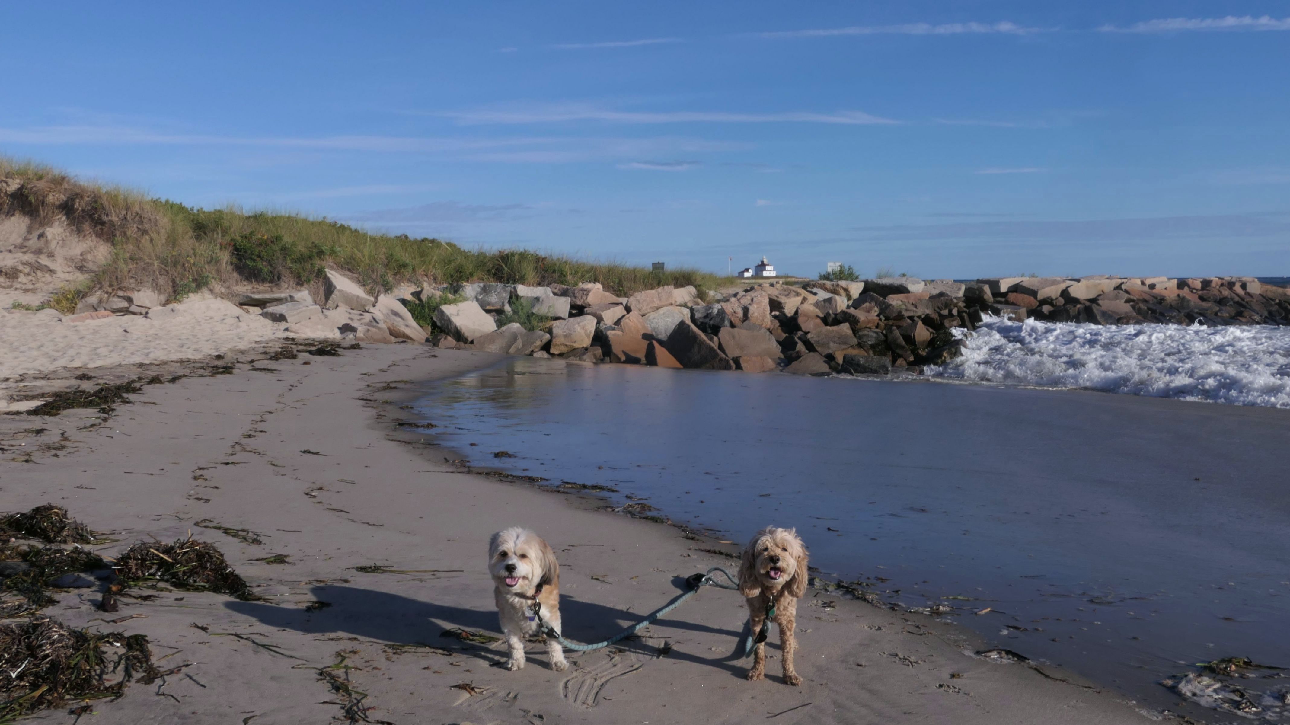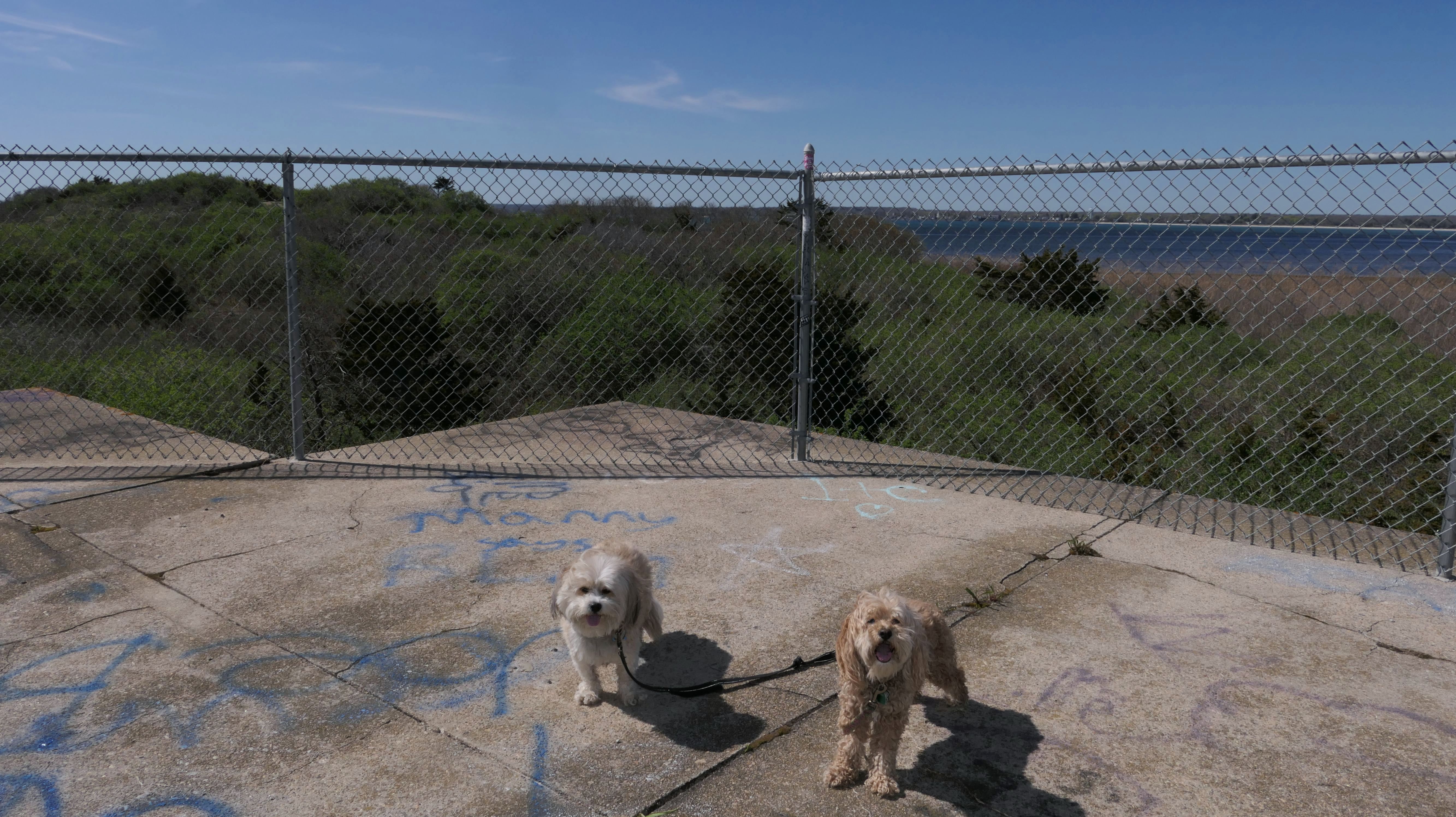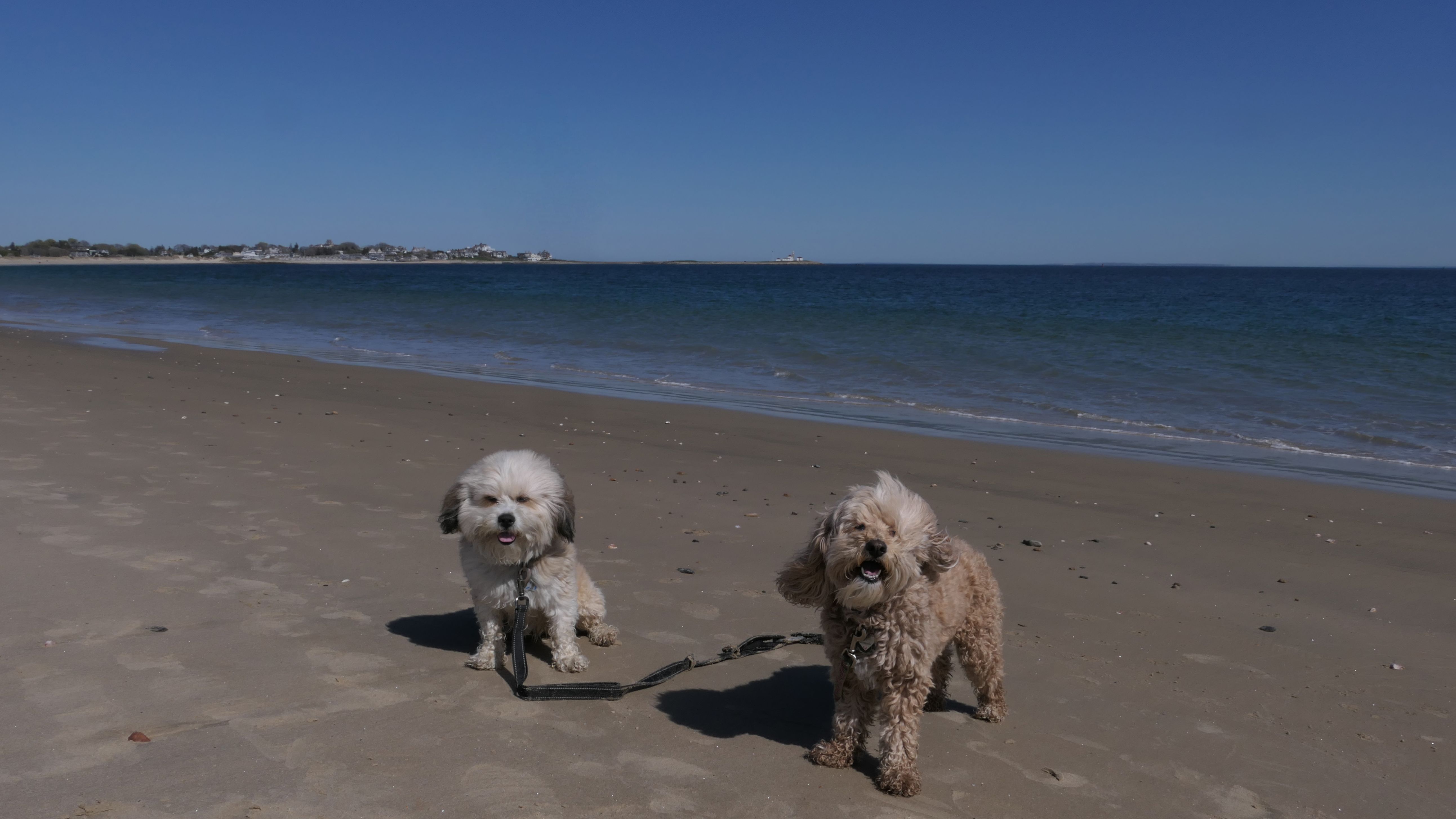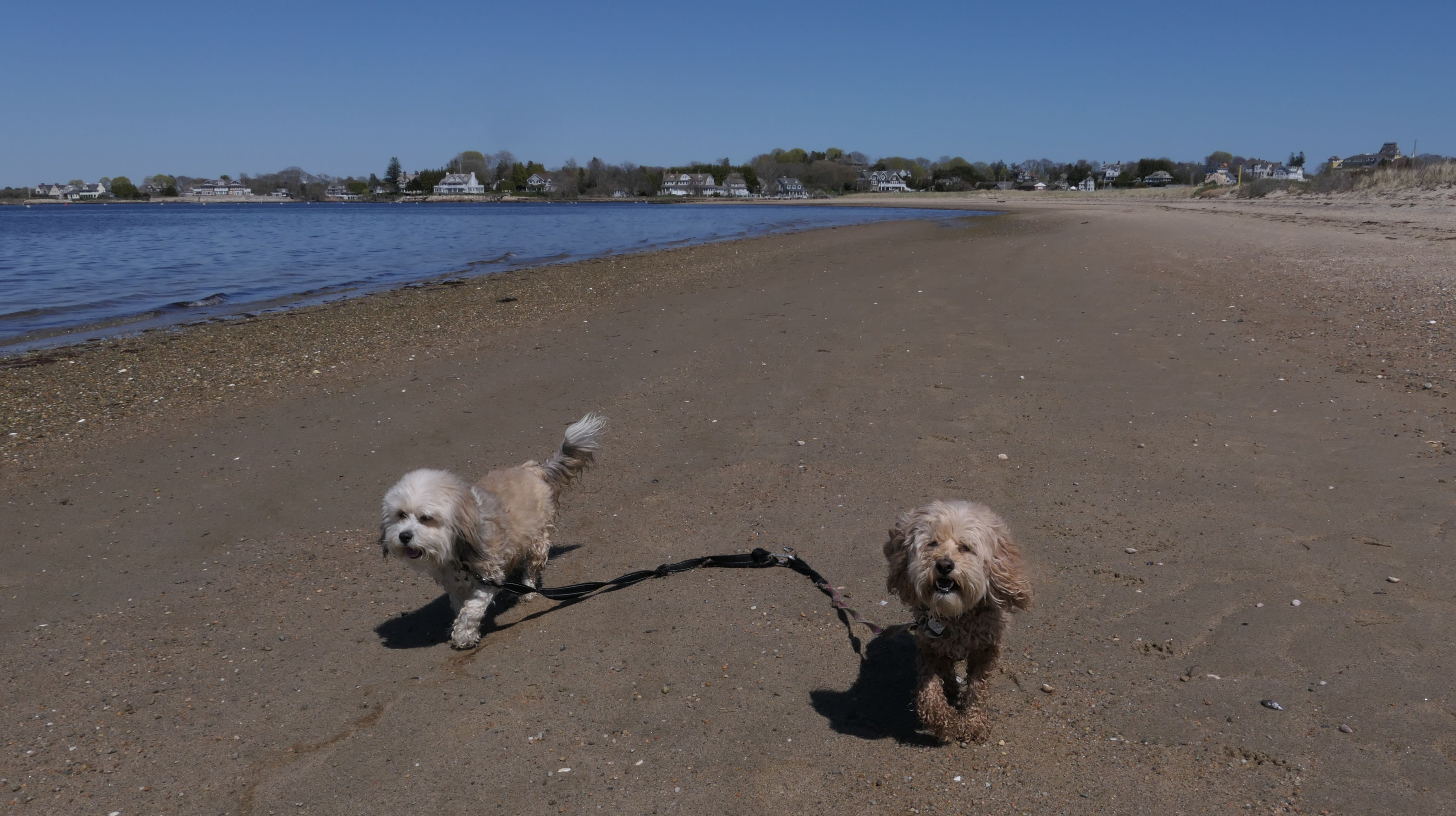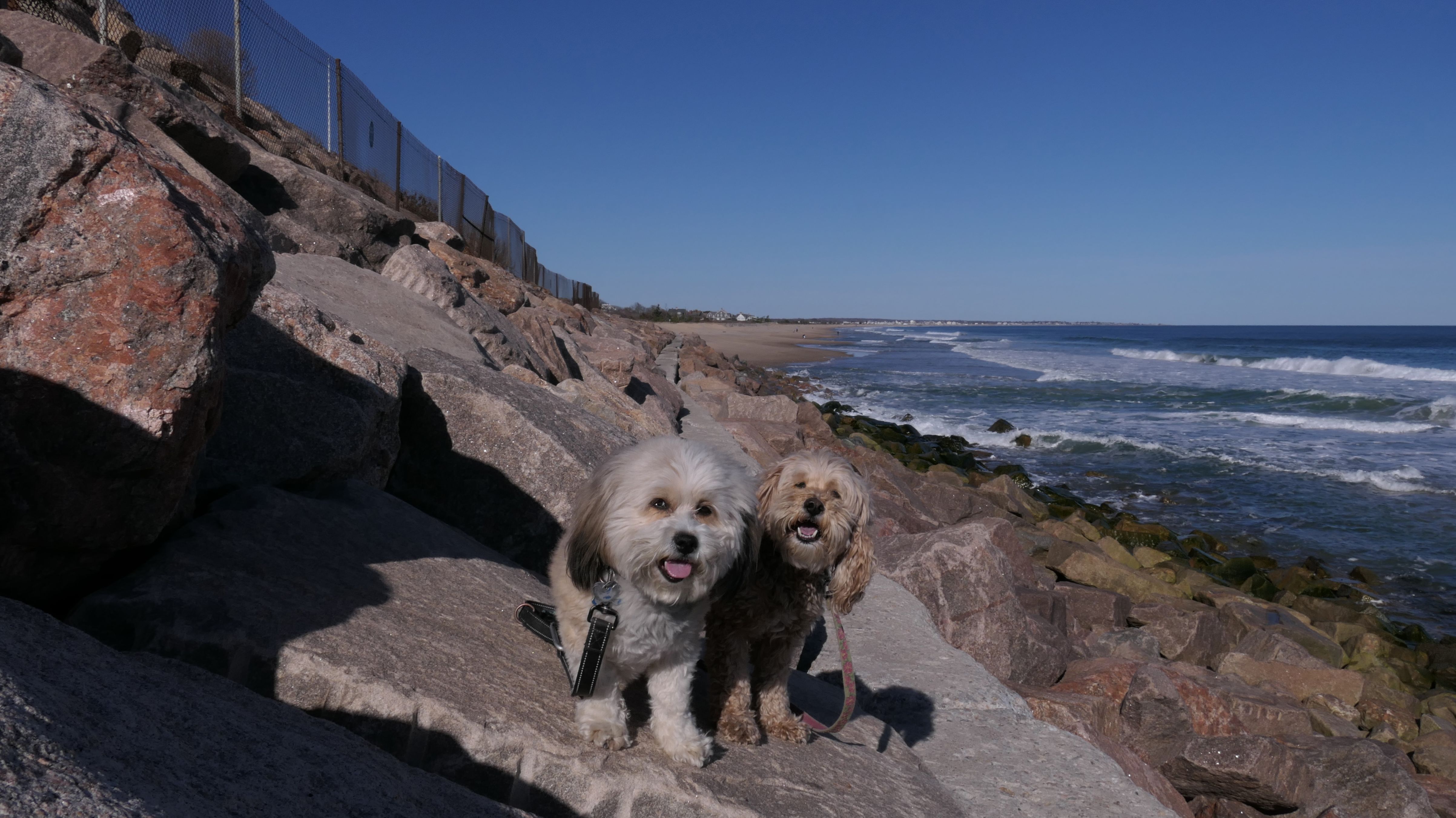 We've been here many times before, but this was only the second time we managed to complete the full loop. The first was during our very first trip to Westerly, way back in December 2020. We attempted it again last summer, but high tide and overgrown trails around the rocks stopped us short. This time, we arrived right at low tide and started out on the bay side. The dogs love this part—it's calm, and they enjoy splashing around in the gentle water. Near the tip of the point, there's a small stream we have to cross to finish the loop. Back in 2020, it was cold and windy, and I had to wade through the stream to avoid turning back. Today, I still had to cross it, but the water was so low it felt more like stepping through a puddle. For the first time, we made it up to the ruins—remnants of an old military fort hidden among the dunes. The narrow trails leading there were just barely passable, and they'll be even tougher to navigate later in the summer when growth thickens. It was exciting to explore something new in a place we thought we knew well. (In 2020, we had skirted the rocks to complete the loop—I didn't even know the ruins existed then.) We wrapped up the walk along the ocean side, where the views of Block Island were strikingly clear. Usually, the waves on that side are pounding, but today the sea was surprisingly calm. With the seasonal dog restrictions starting May 2nd—when pups are only allowed after 6 PM—this was one of the last afternoons we could enjoy this walk freely. All in all, it was a great three mile loop on a beautiful spring day.