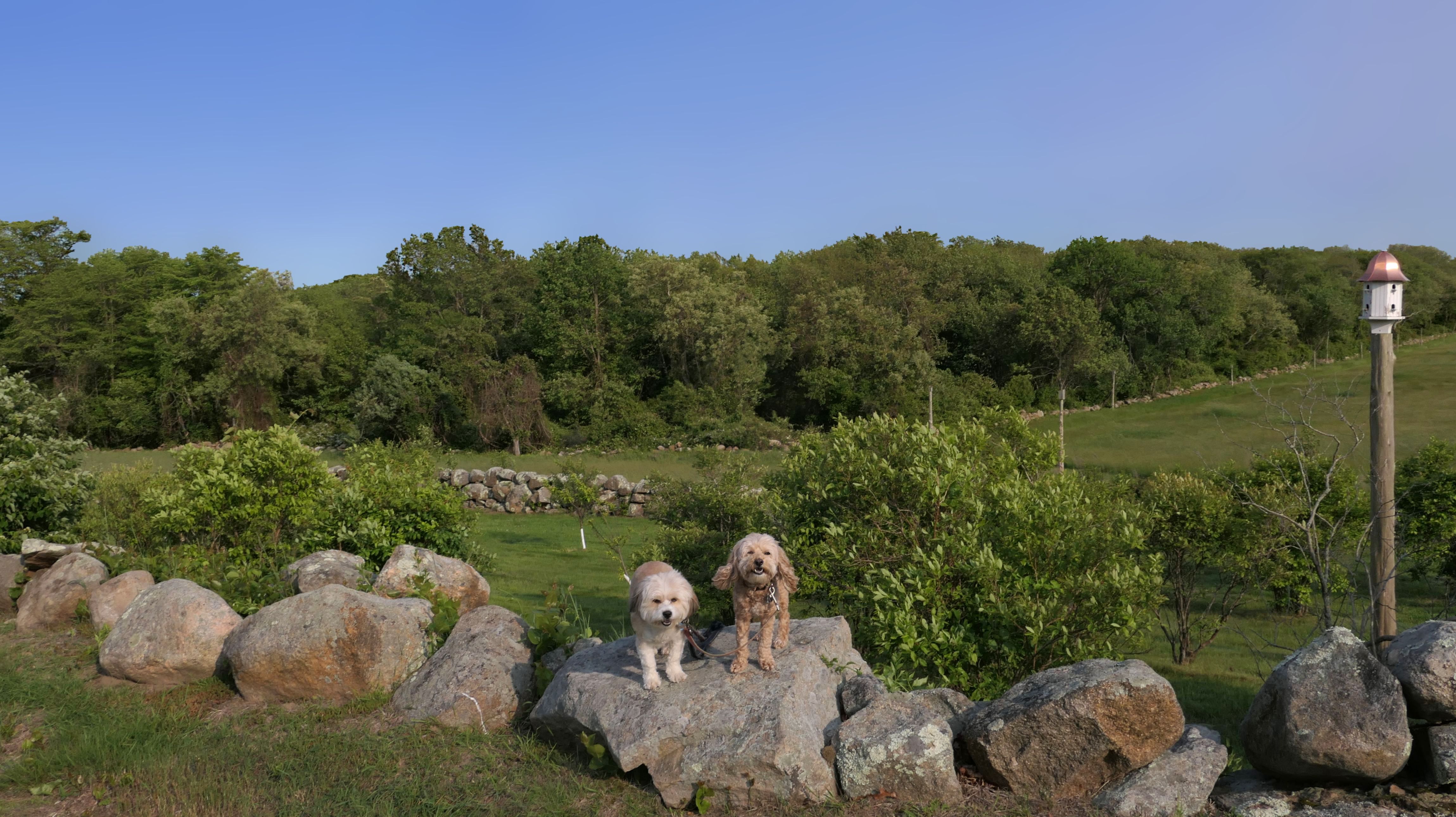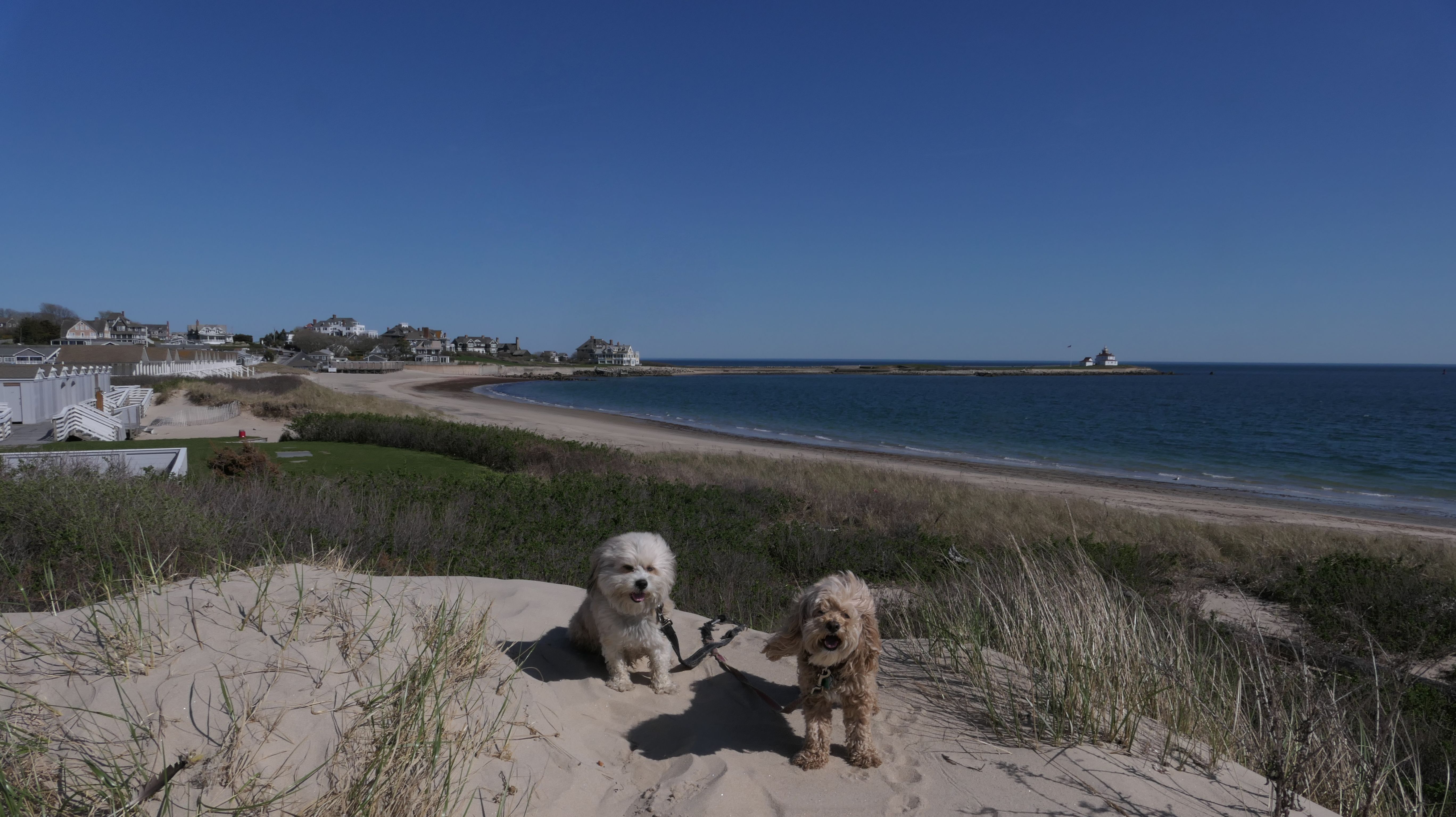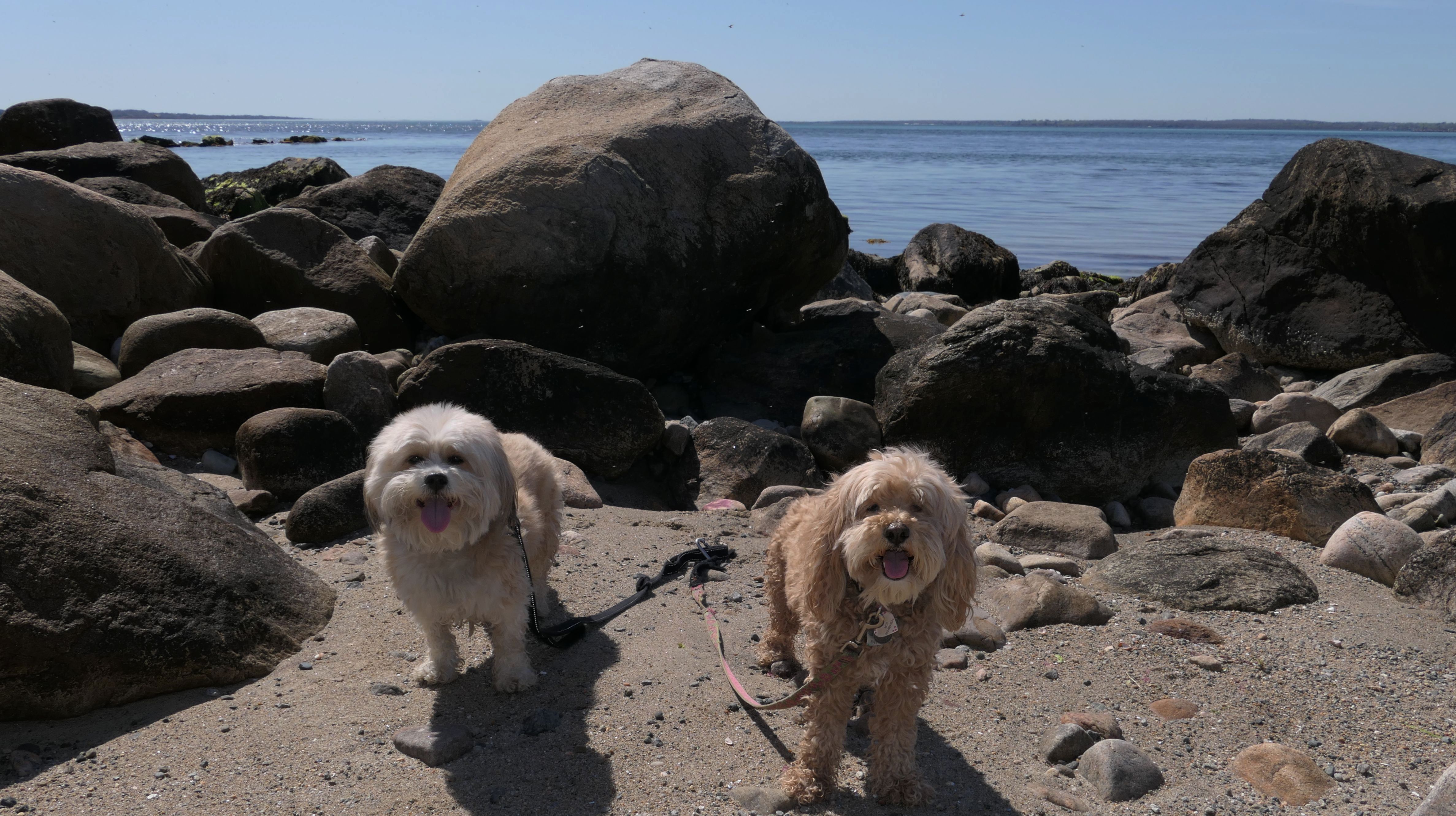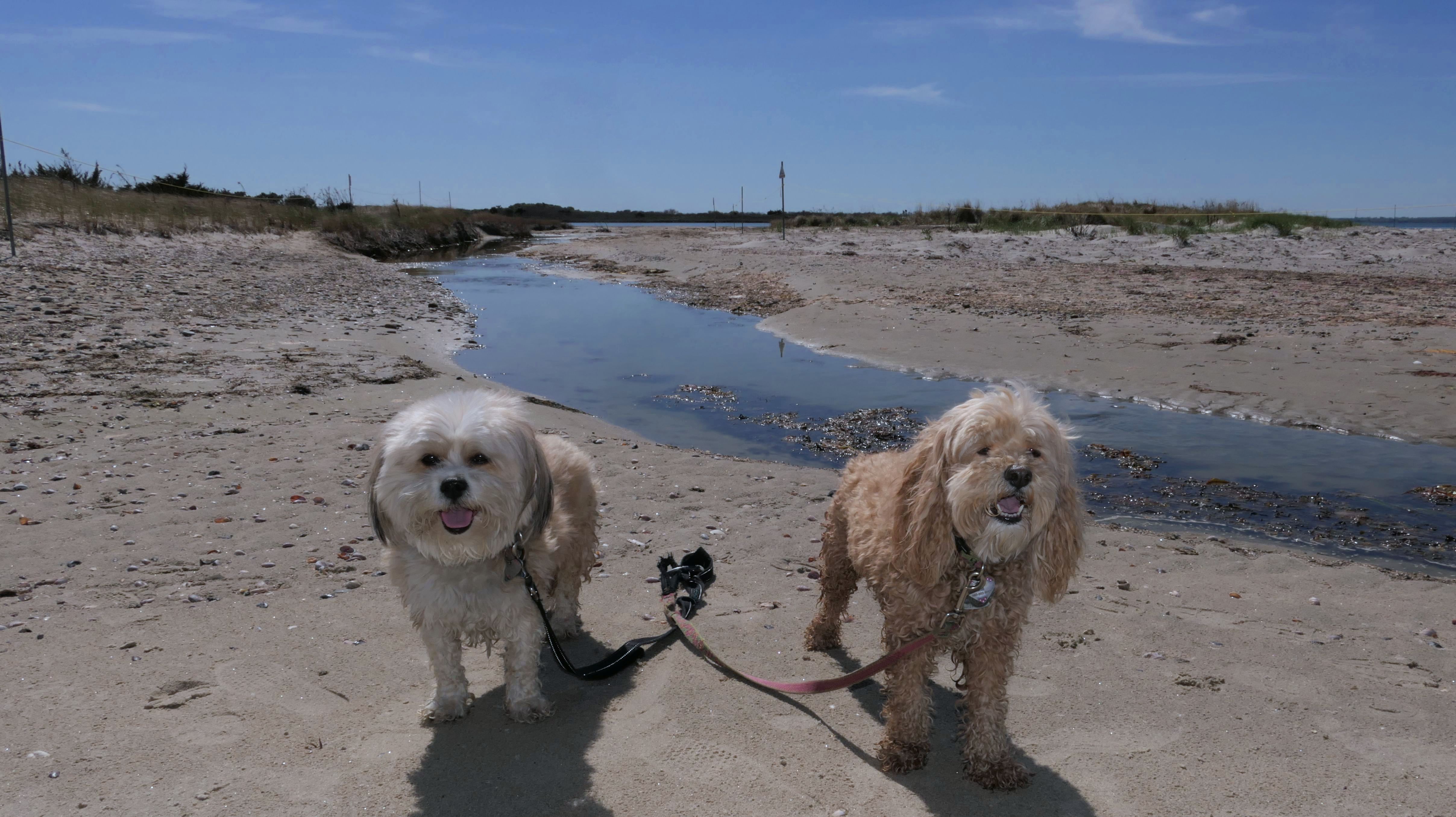 We've been here many times before, but this was only the second time we managed to complete the full loop. The first was during our very first trip to Westerly, way back in December 2020. We attempted it again last summer, but high tide and overgrown trails around the rocks stopped us short. This time, we arrived right at low tide and started out on the bay side. The dogs love this part—it's calm, and they enjoy splashing around in the gentle water. Near the tip of the point, there's a small stream we have to cross to finish the loop. Back in 2020, it was cold and windy, and I had to wade through the stream to avoid turning back. Today, I still had to cross it, but the water was so low it felt more like stepping through a puddle. For the first time, we made it up to the ruins—remnants of an old military fort hidden among the dunes. The narrow trails leading there were just barely passable, and they'll be even tougher to navigate later in the summer when growth thickens. It was exciting to explore something new in a place we thought we knew well. (In 2020, we had skirted the rocks to complete the loop—I didn't even know the ruins existed then.) We wrapped up the walk along the ocean side, where the views of Block Island were strikingly clear. Usually, the waves on that side are pounding, but today the sea was surprisingly calm. With the seasonal dog restrictions starting May 2nd—when pups are only allowed after 6 PM—this was one of the last afternoons we could enjoy this walk freely. All in all, it was a great three mile loop on a beautiful spring day.