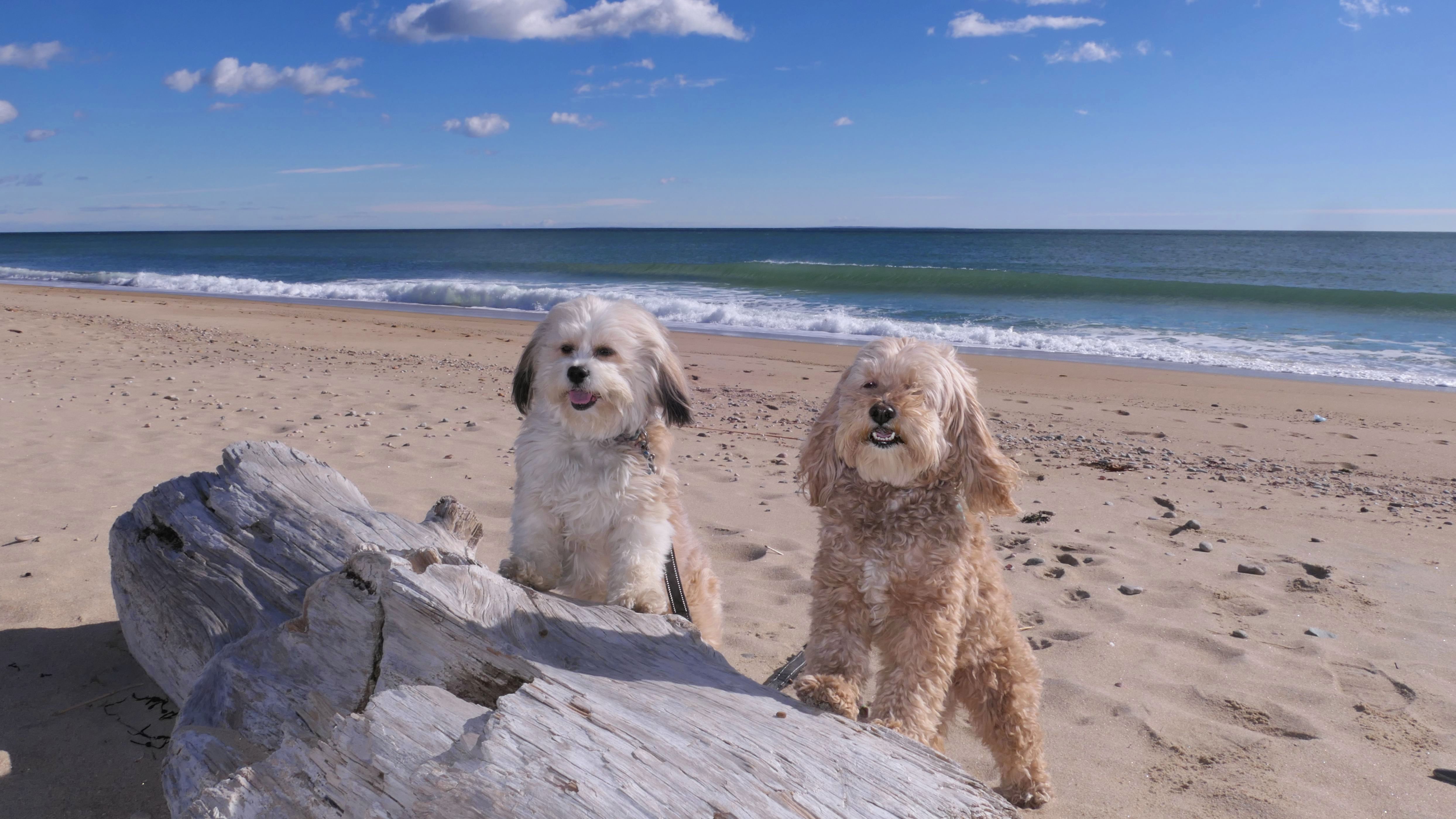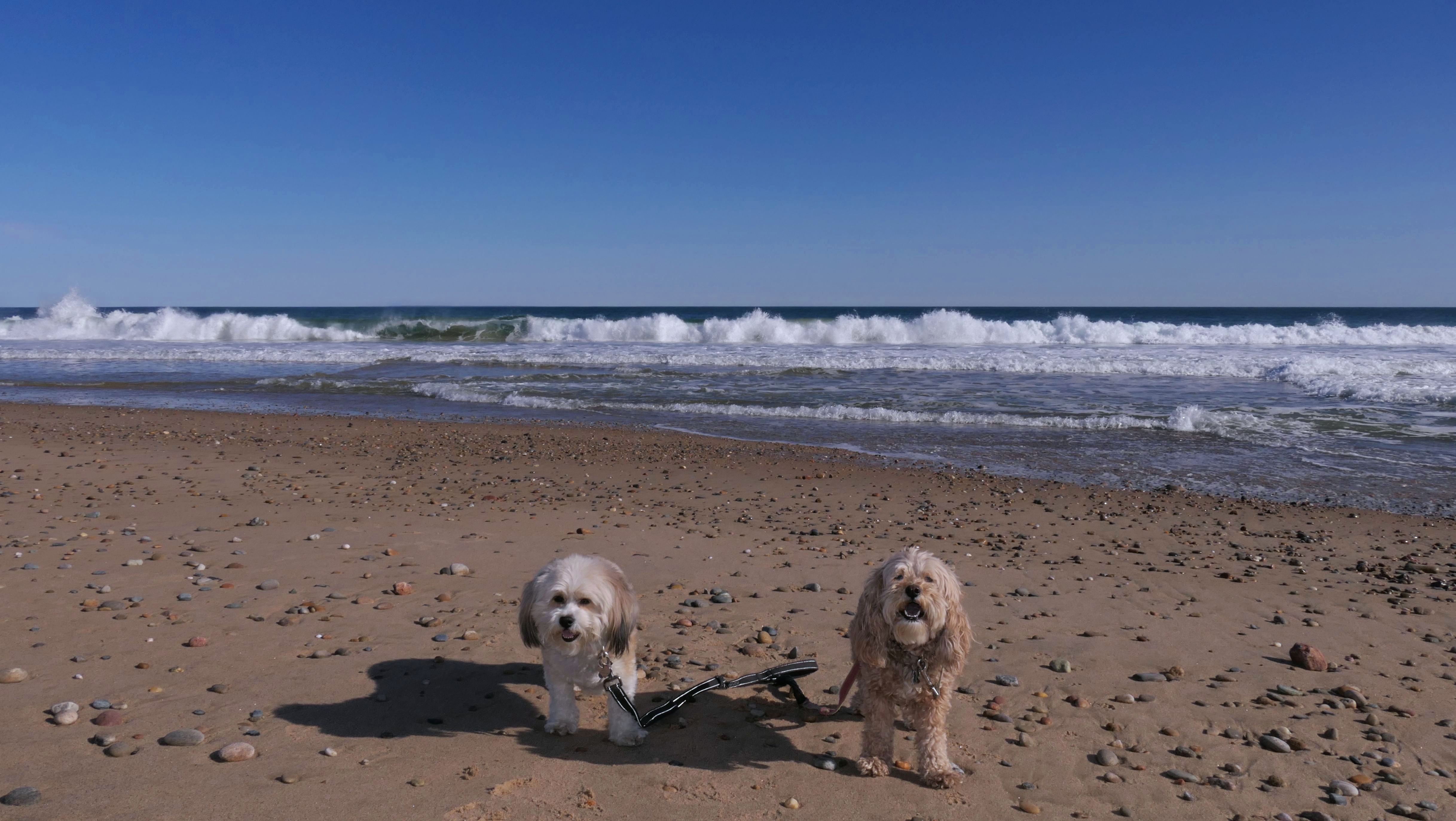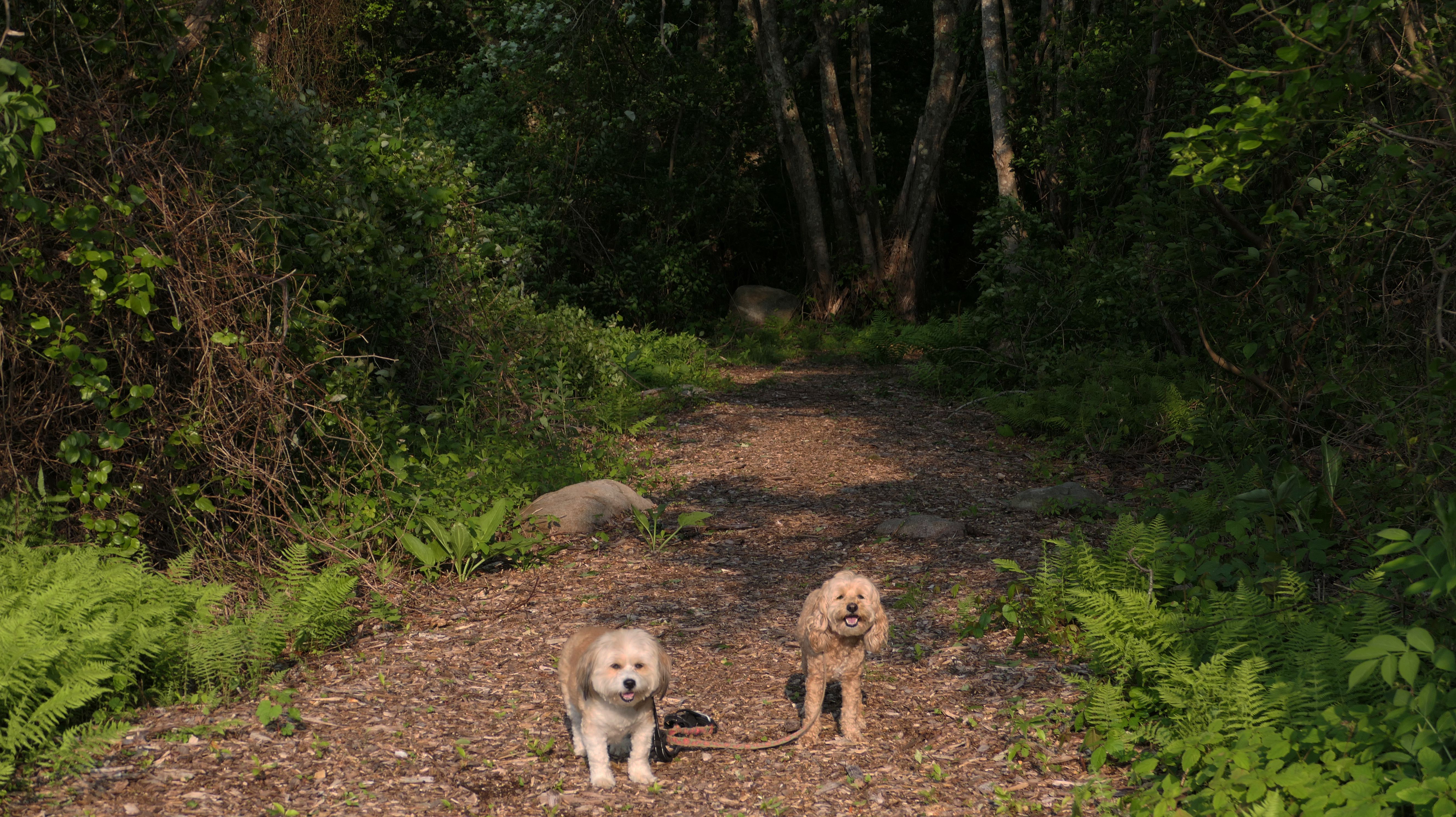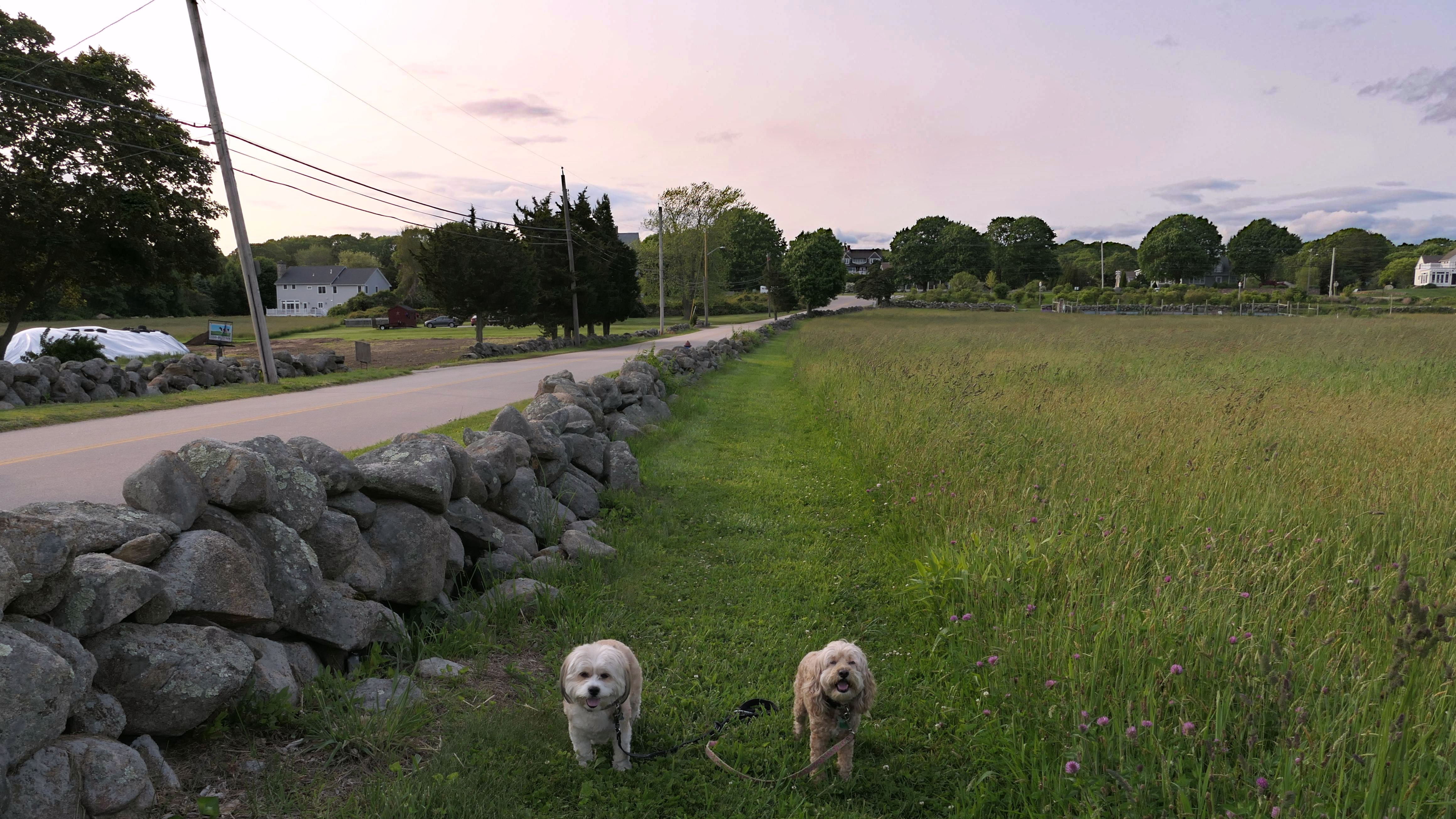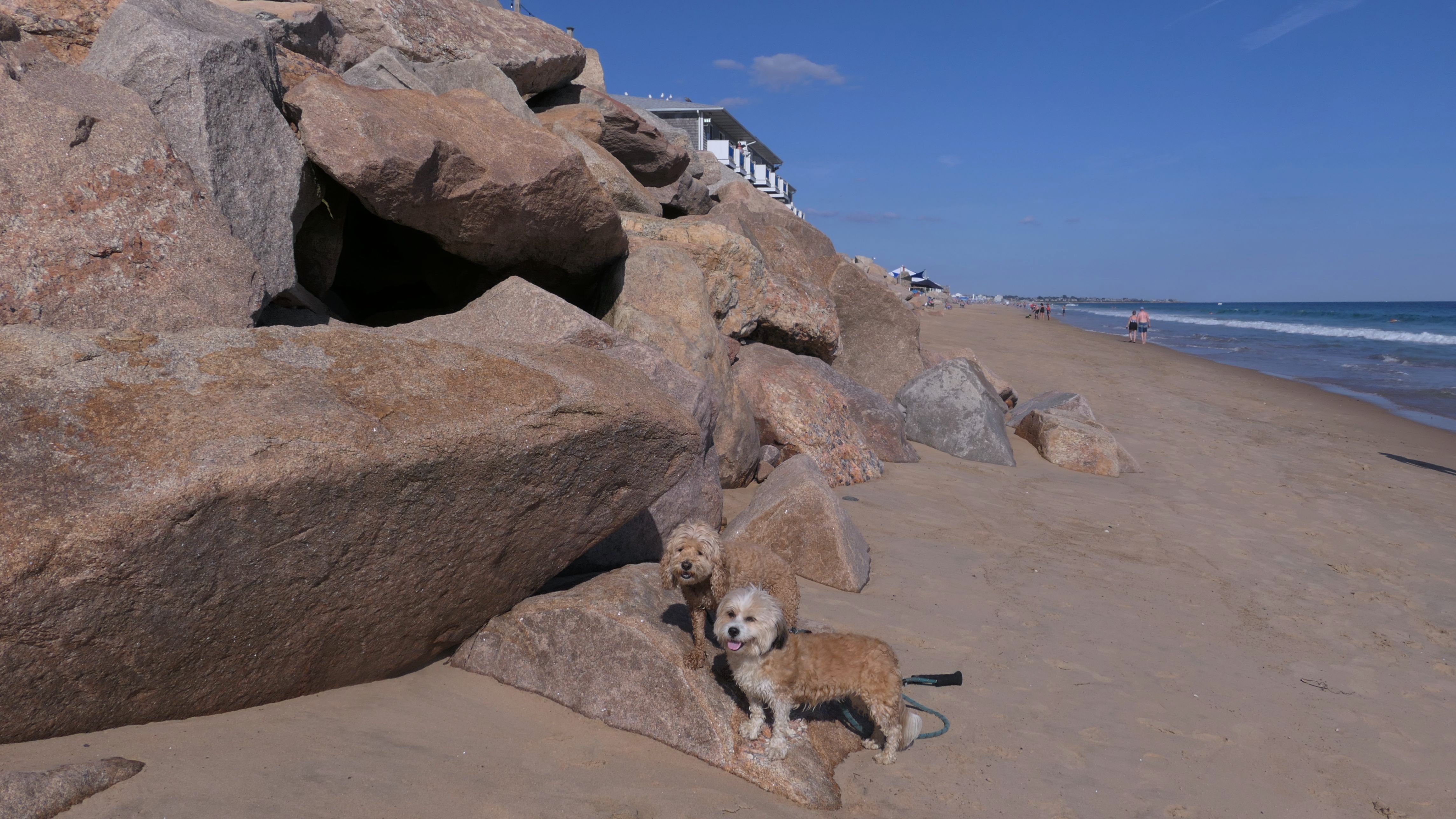 We've been here many times before, but this was only the second time we managed to complete the full loop. The first was during our very first trip to Westerly, way back in December 2020. We attempted it again last summer, but high tide and overgrown trails around the rocks stopped us short. This time, we arrived right at low tide and started out on the bay side. The dogs love this part—it's calm, and they enjoy splashing around in the gentle water. Near the tip of the point, there's a small stream we have to cross to finish the loop. Back in 2020, it was cold and windy, and I had to wade through the stream to avoid turning back. Today, I still had to cross it, but the water was so low it felt more like stepping through a puddle. For the first time, we made it up to the ruins—remnants of an old military fort hidden among the dunes. The narrow trails leading there were just barely passable, and they'll be even tougher to navigate later in the summer when growth thickens. It was exciting to explore something new in a place we thought we knew well. (In 2020, we had skirted the rocks to complete the loop—I didn't even know the ruins existed then.) We wrapped up the walk along the ocean side, where the views of Block Island were strikingly clear. Usually, the waves on that side are pounding, but today the sea was surprisingly calm. With the seasonal dog restrictions starting May 2nd—when pups are only allowed after 6 PM—this was one of the last afternoons we could enjoy this walk freely. All in all, it was a great three mile loop on a beautiful spring day.
