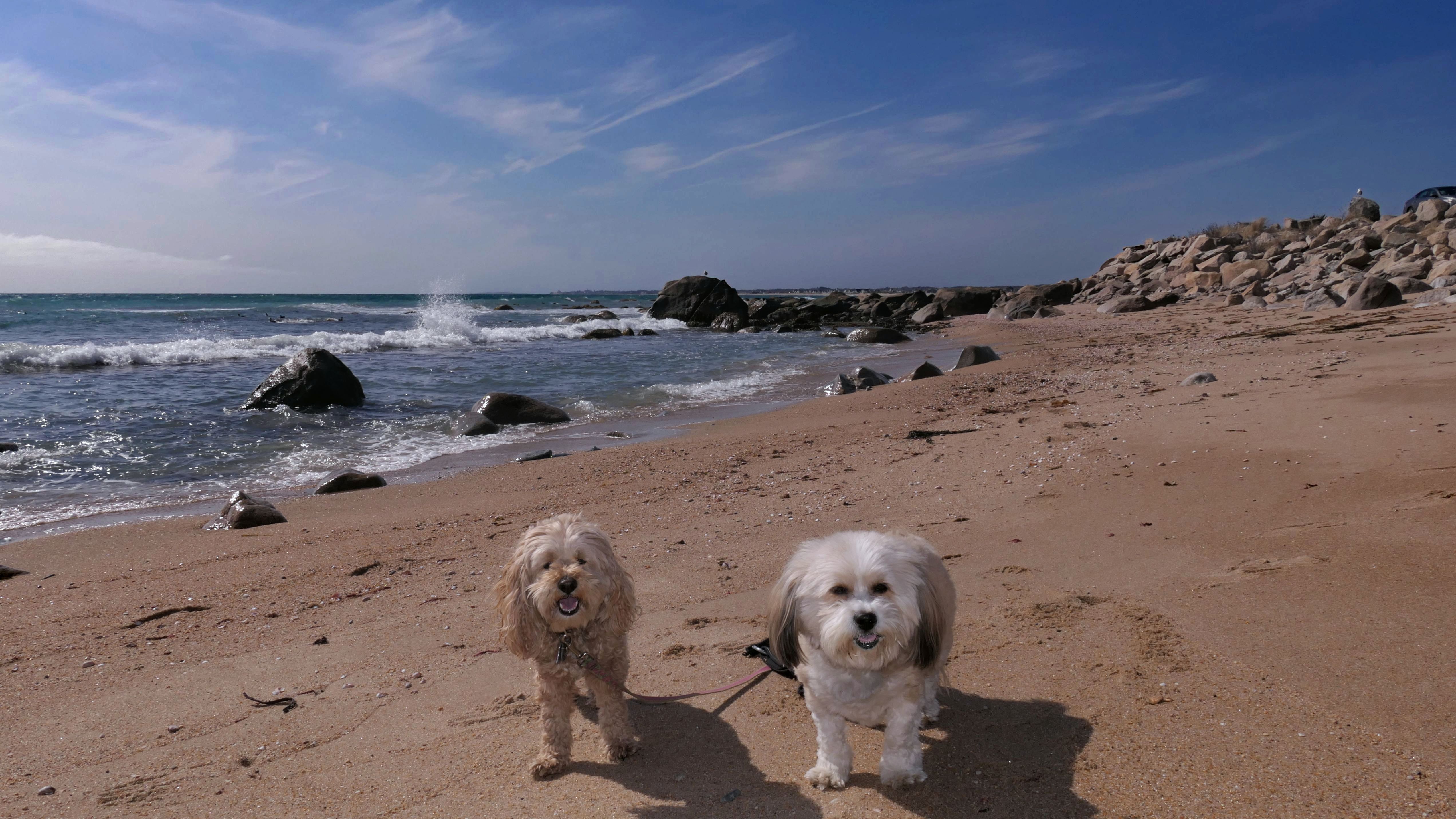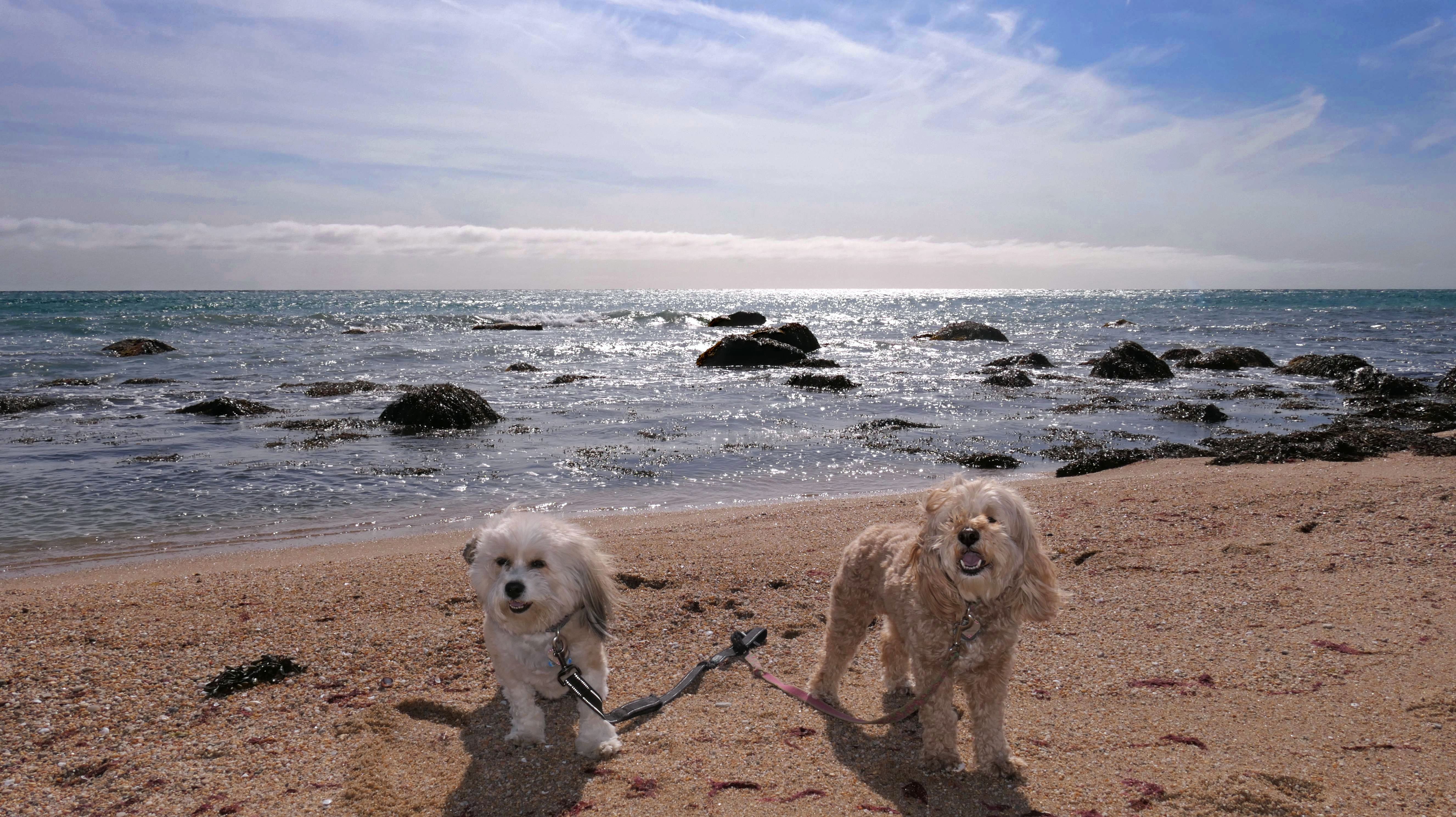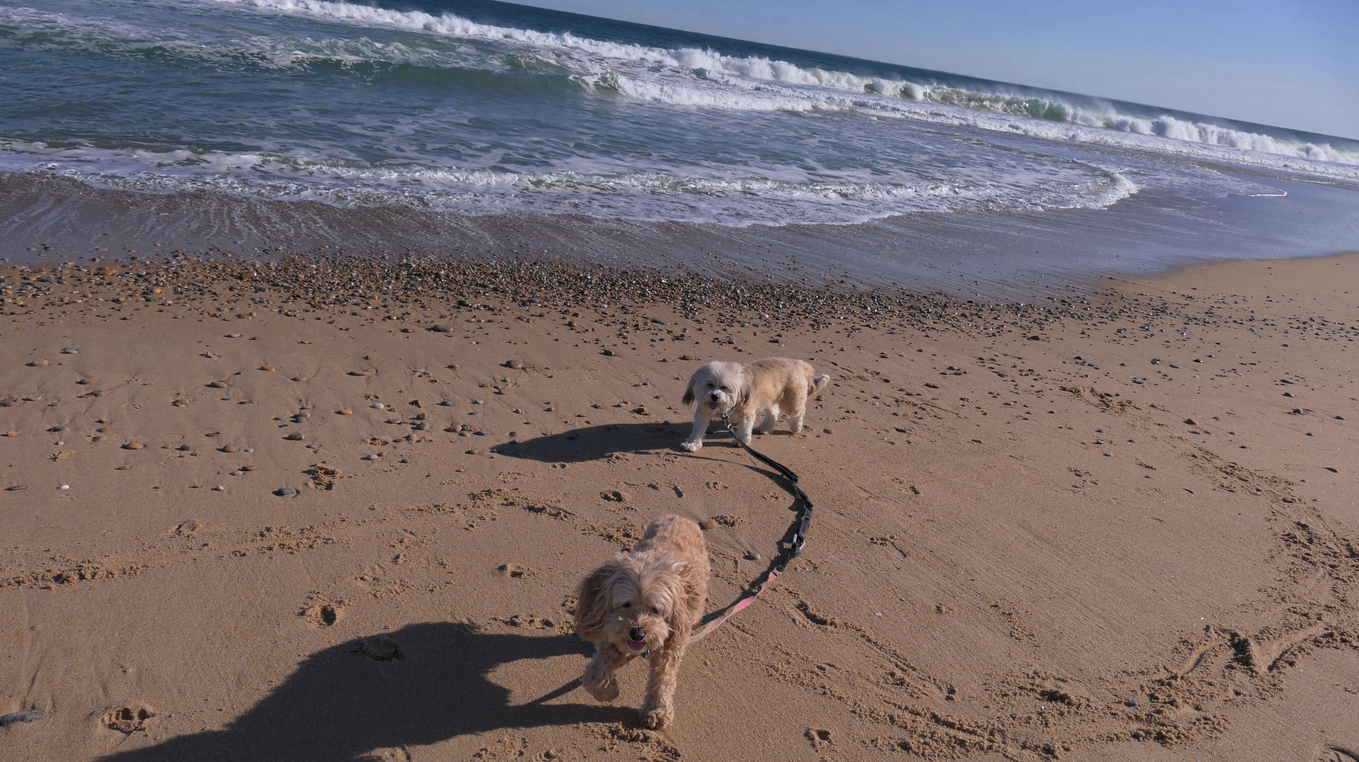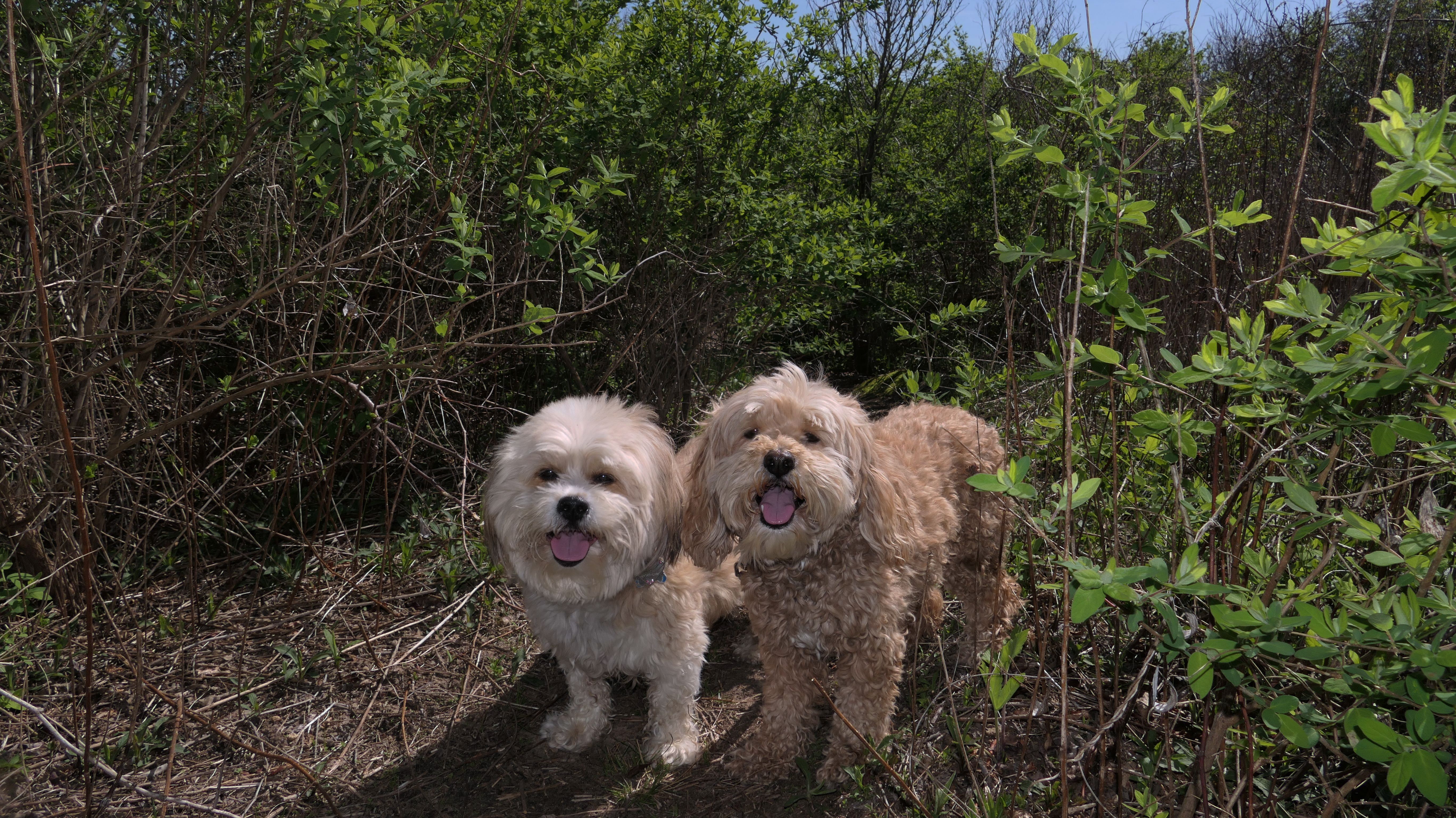 We've been here many times before, but this was only the second time we managed to complete the full loop. The first was during our very first trip to Westerly, way back in December 2020. We attempted it again last summer, but high tide and overgrown trails around the rocks stopped us short. This time, we arrived right at low tide and started out on the bay side. The dogs love this part—it's calm, and they enjoy splashing around in the gentle water. Near the tip of the point, there's a small stream we have to cross to finish the loop. Back in 2020, it was cold and windy, and I had to wade through the stream to avoid turning back. Today, I still had to cross it, but the water was so low it felt more like stepping through a puddle. For the first time, we made it up to the ruins—remnants of an old military fort hidden among the dunes. The narrow trails leading there were just barely passable, and they'll be even tougher to navigate later in the summer when growth thickens. It was exciting to explore something new in a place we thought we knew well. (In 2020, we had skirted the rocks to complete the loop—I didn't even know the ruins existed then.) We wrapped up the walk along the ocean side, where the views of Block Island were strikingly clear. Usually, the waves on that side are pounding, but today the sea was surprisingly calm. With the seasonal dog restrictions starting May 2nd—when pups are only allowed after 6 PM—this was one of the last afternoons we could enjoy this walk freely. All in all, it was a great three mile loop on a beautiful spring day.