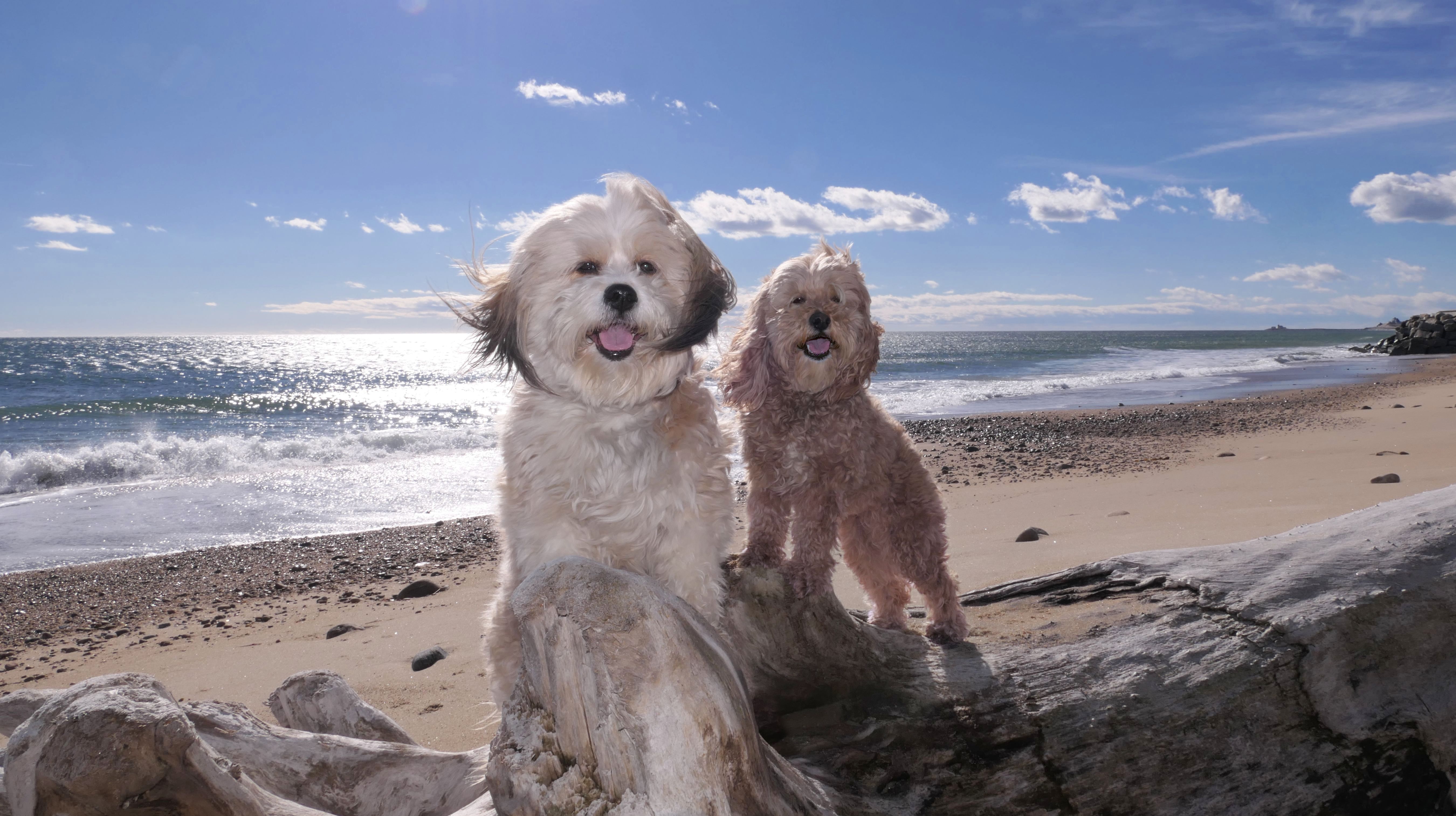 This was a cold and windy day at the beach. We walked the loop around the beach. We got two thirds of the way through the loop, and came to a point where we either had to pass through an inlet, or turn around and go back. Keep in mind, it was about 30 degrees and windy, so naturally we walked through the inlet. The dogs didn't seem to care. I was wearing sneakers, but fortunately had wool socks that kept my feet from freezing. The first picture below is one of my all time favorite pictures I've taken of the dogs.