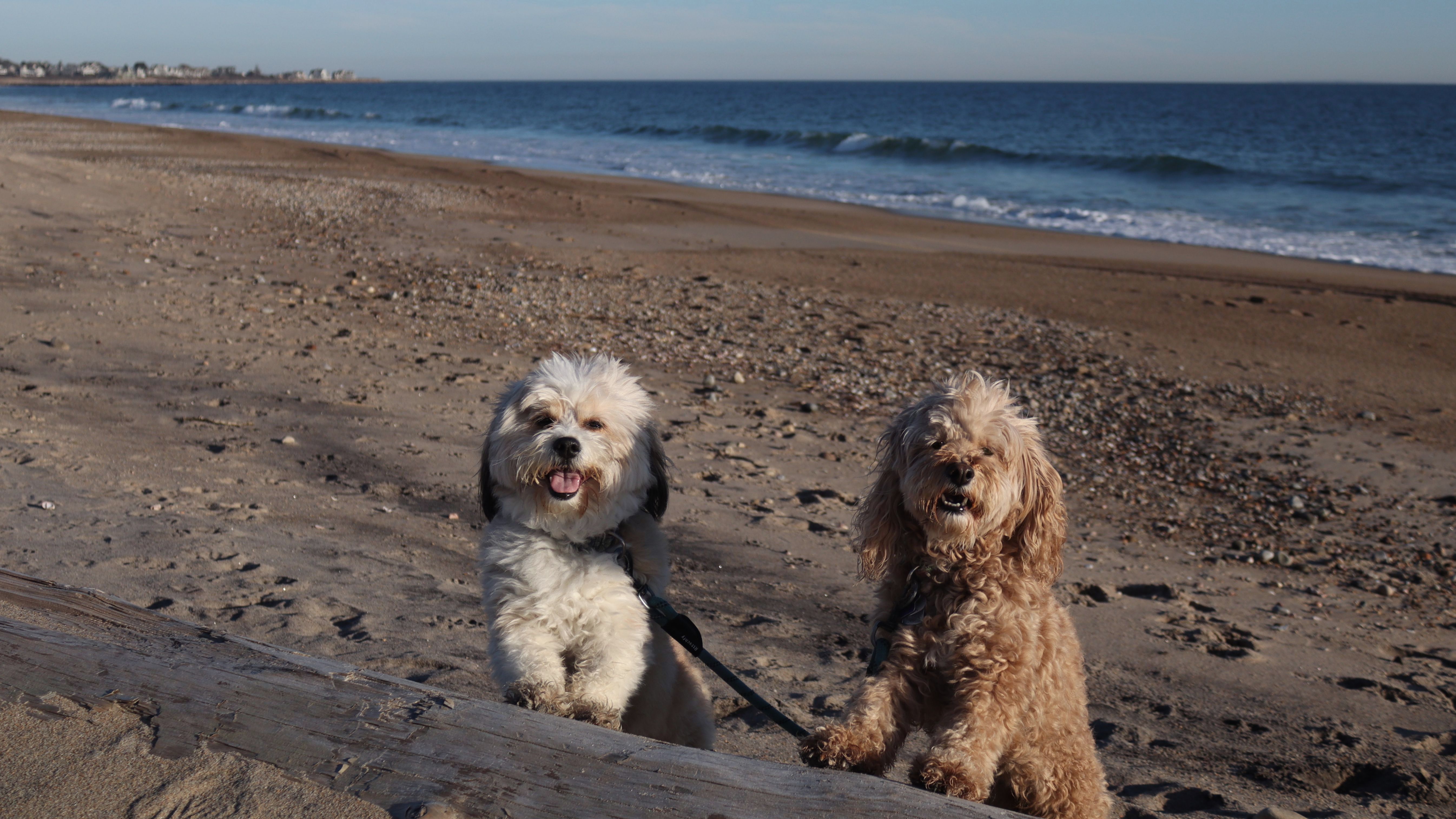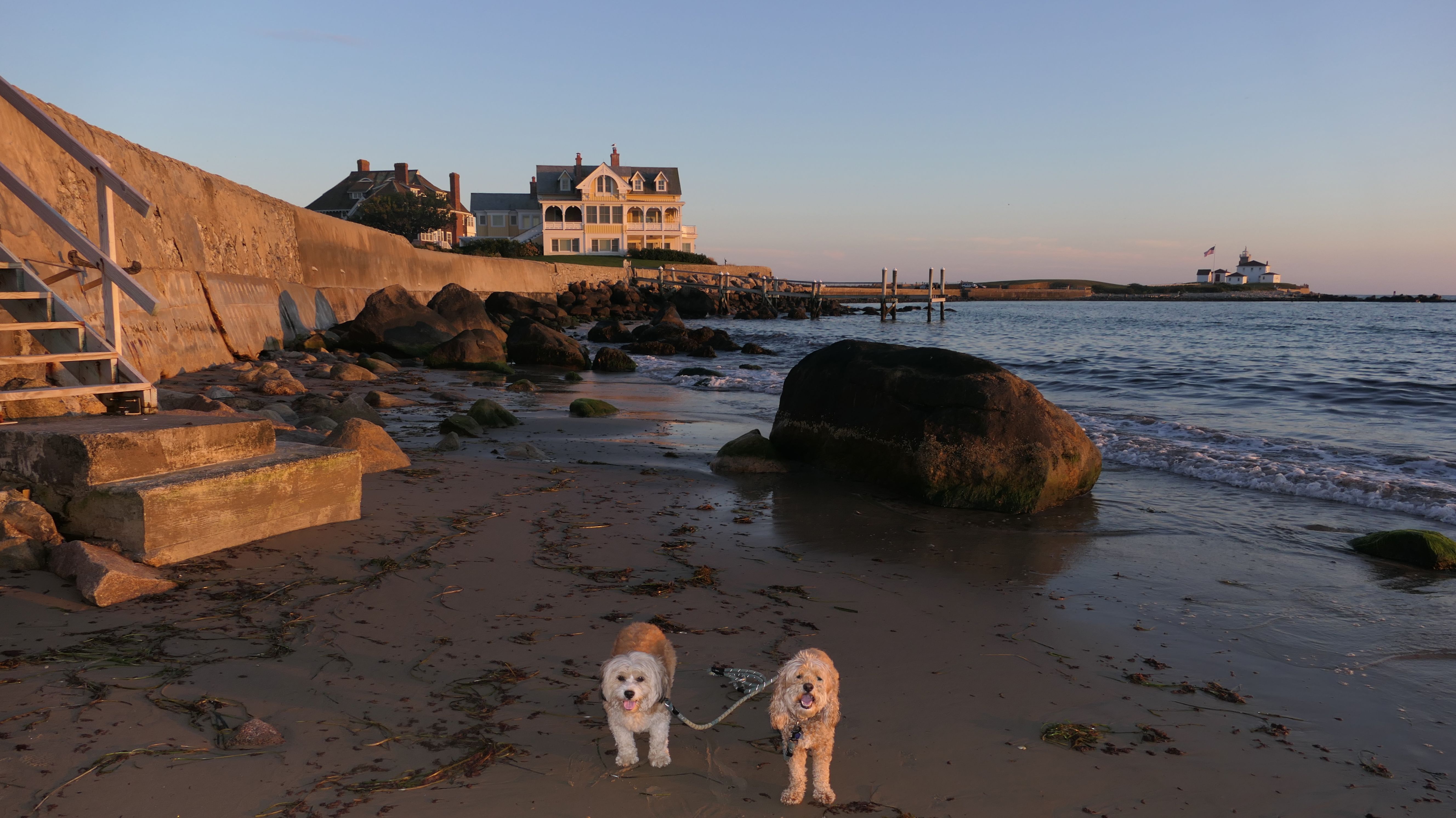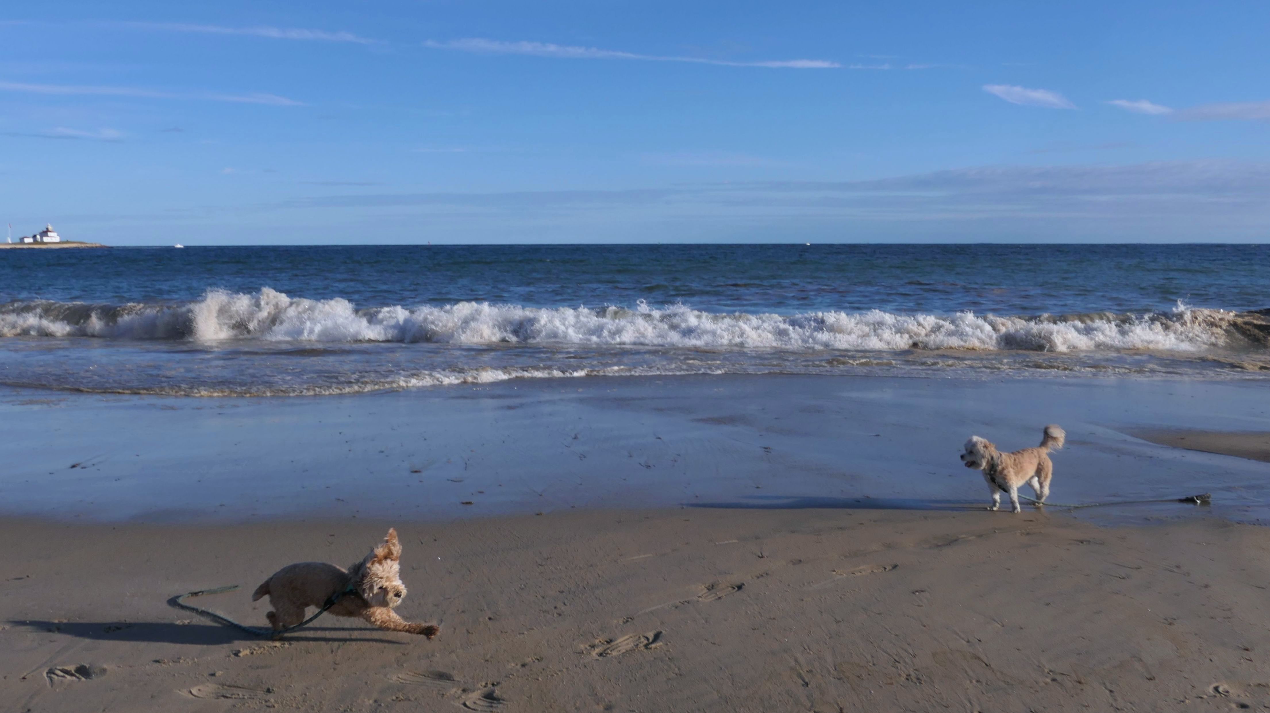 This is a small beach, wedged in between Napatree Point Conservation Area and the Watch Hill Lighthouse. I'm pretty sure this is a "private" beach for Watch Hill Association members. There is an entrance near the carousel that is completely closed off and gated in the off-season. We reached the beach via a short trail from Napatree. The waves were absolutely ripping, as it had stormed most of the day and was still very windy at the shore. We came here after our Wilcox Park adventure, and arrived just in time to enjoy a beautiful sunset. On our walk back, the dogs decided it was playtime. They seem to enjoy the beach so much!