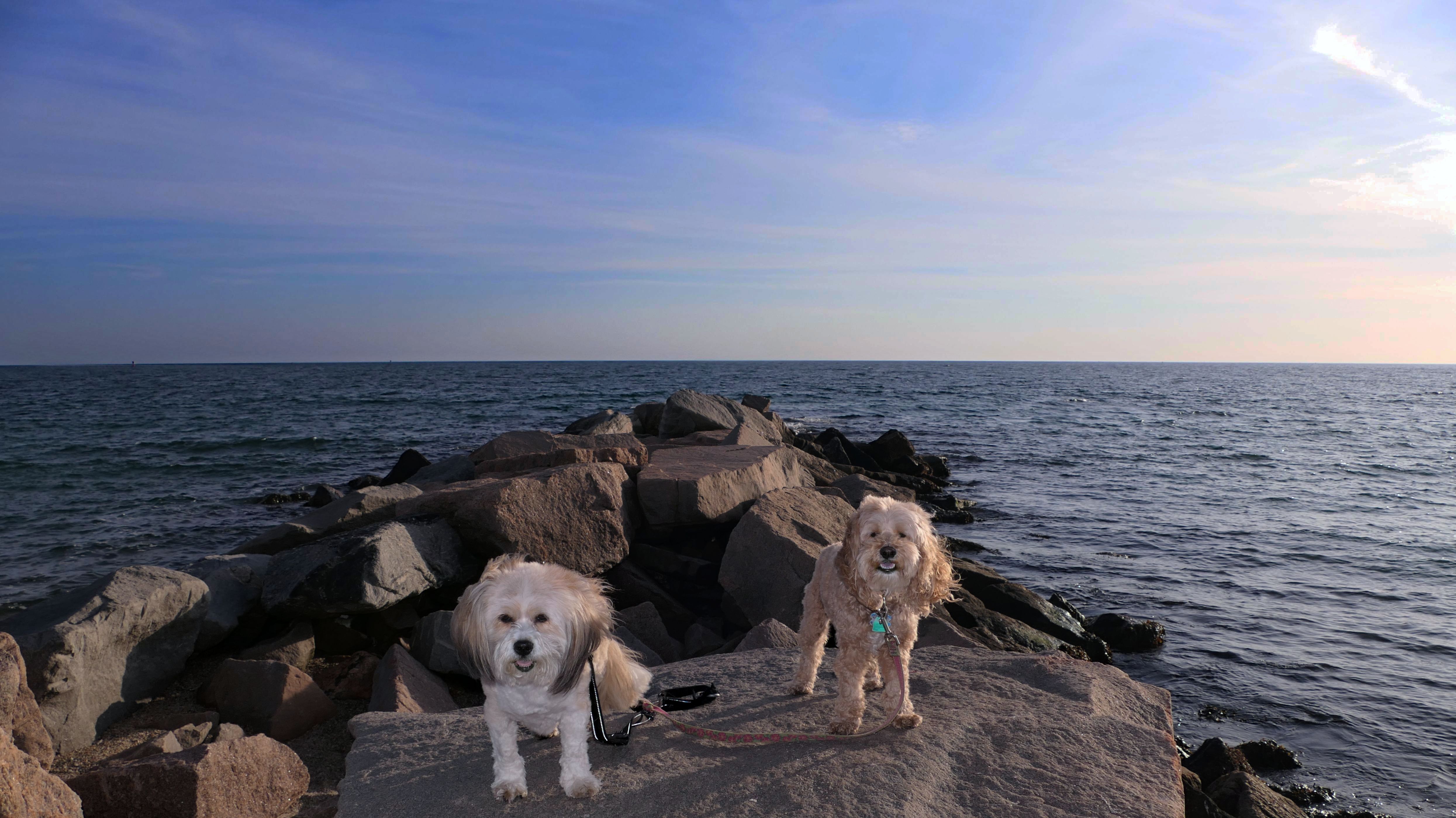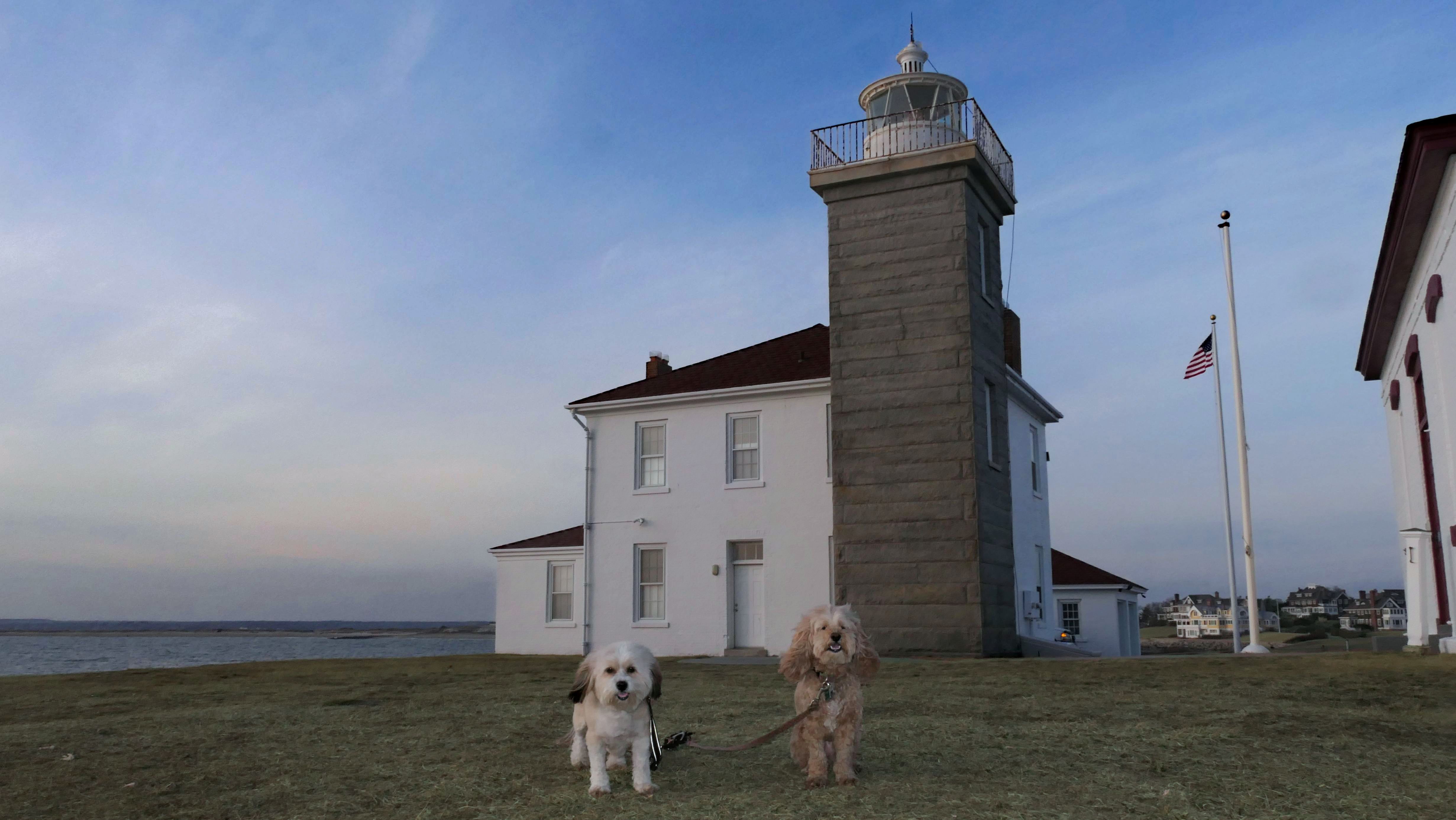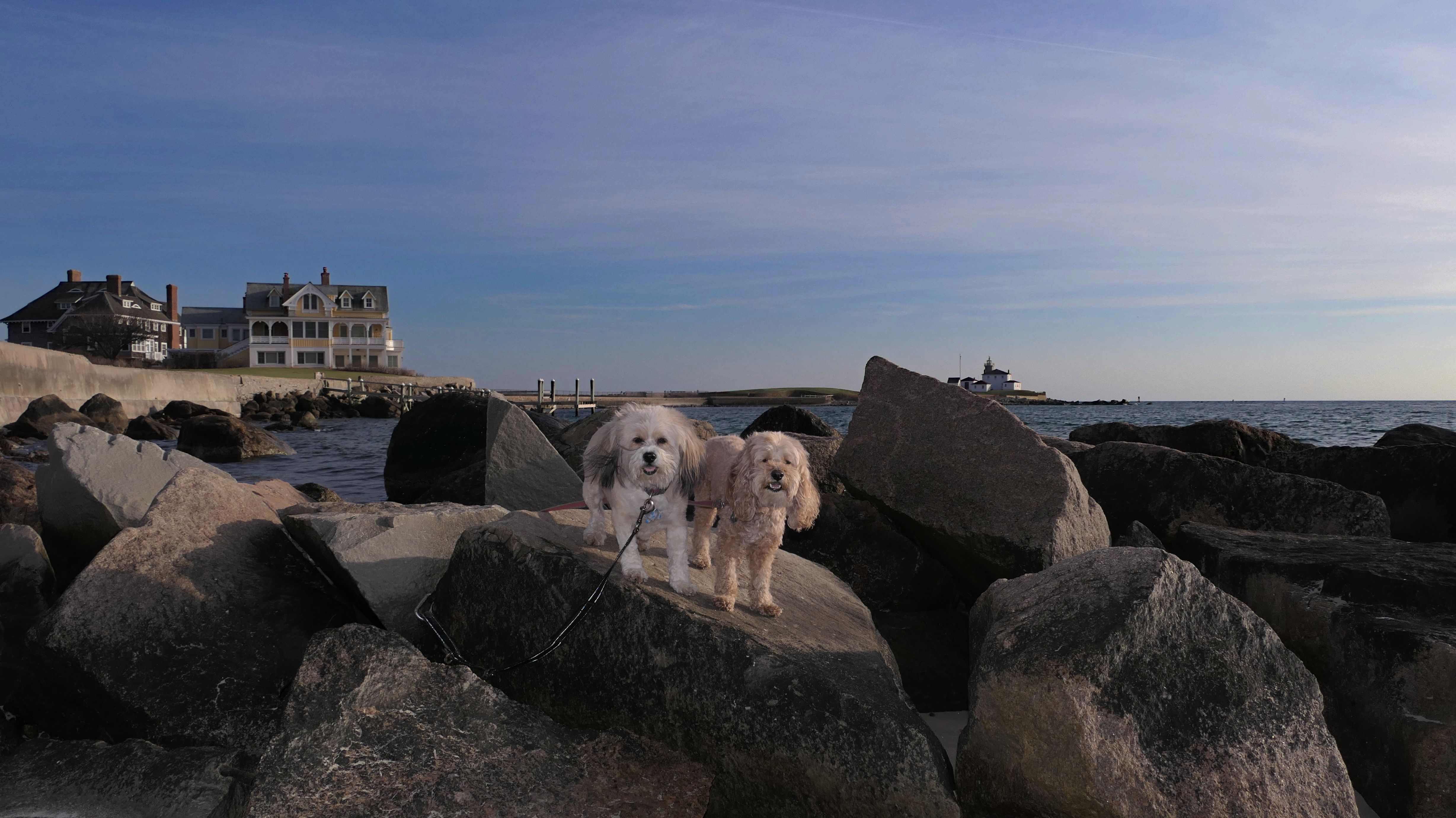 This is a small beach, wedged in between Napatree Point Conservation Area and the Watch Hill Lighthouse. I'm pretty sure this is a "private" beach for Watch Hill Association members. There is an entrance near the carousel that is completely closed off and gated in the off-season. We reached the beach via a short trail from Napatree. The waves were absolutely ripping, as it had stormed most of the day and was still very windy at the shore. We came here after our Wilcox Park adventure, and arrived just in time to enjoy a beautiful sunset. On our walk back, the dogs decided it was playtime. They seem to enjoy the beach so much!