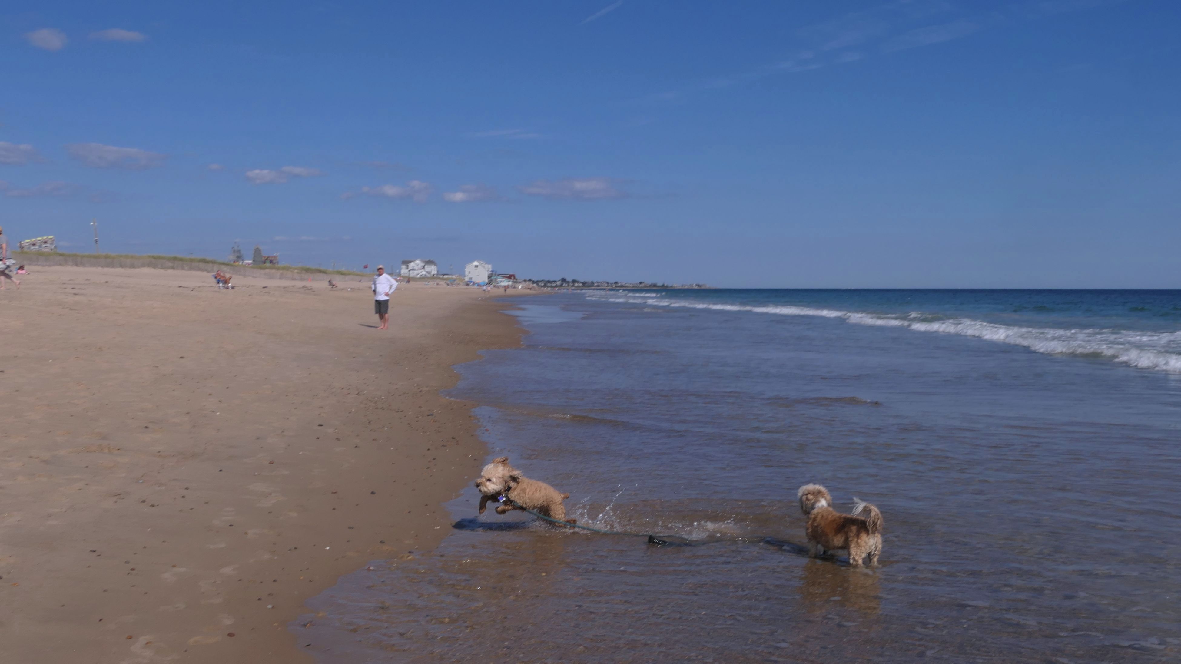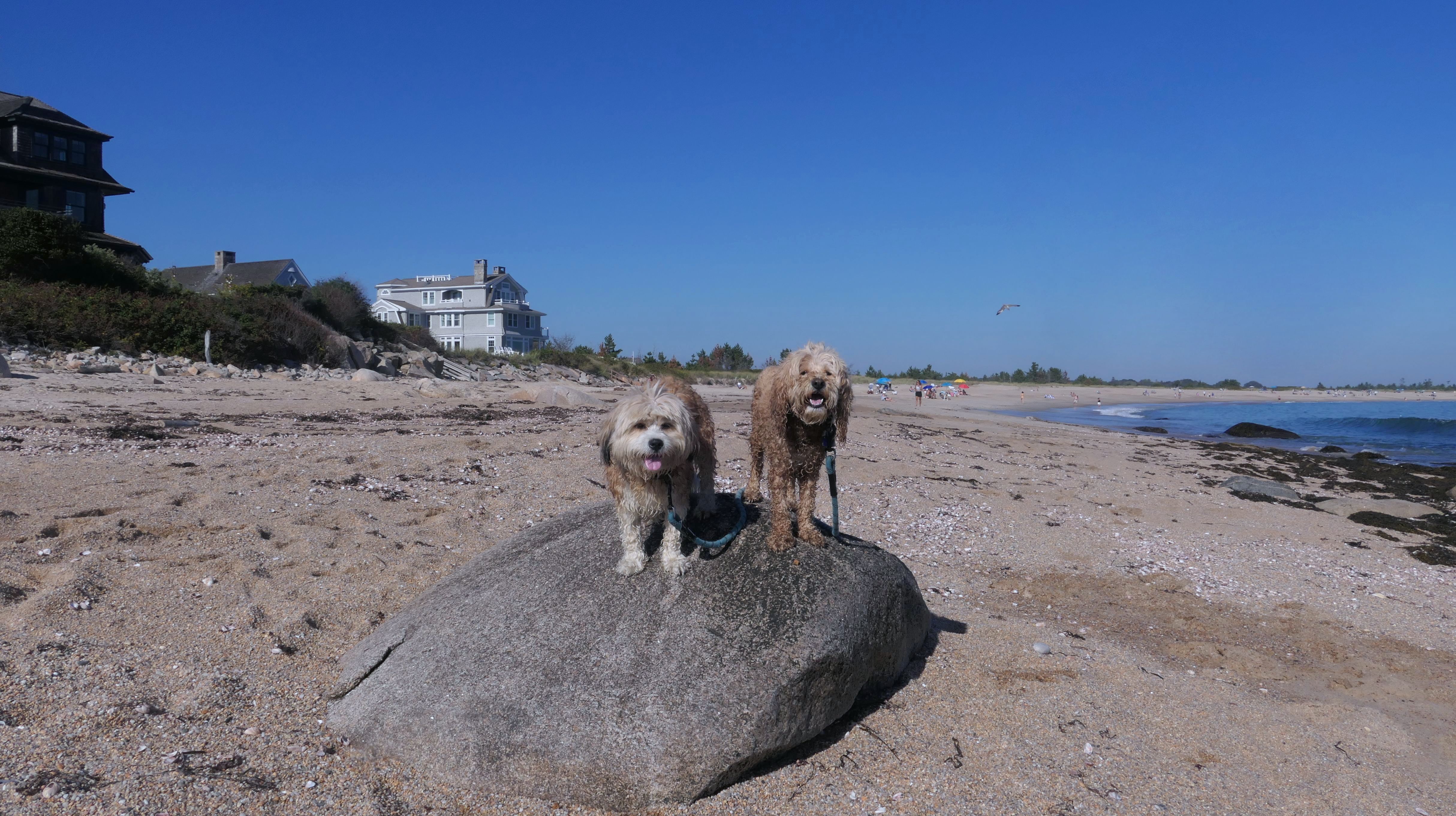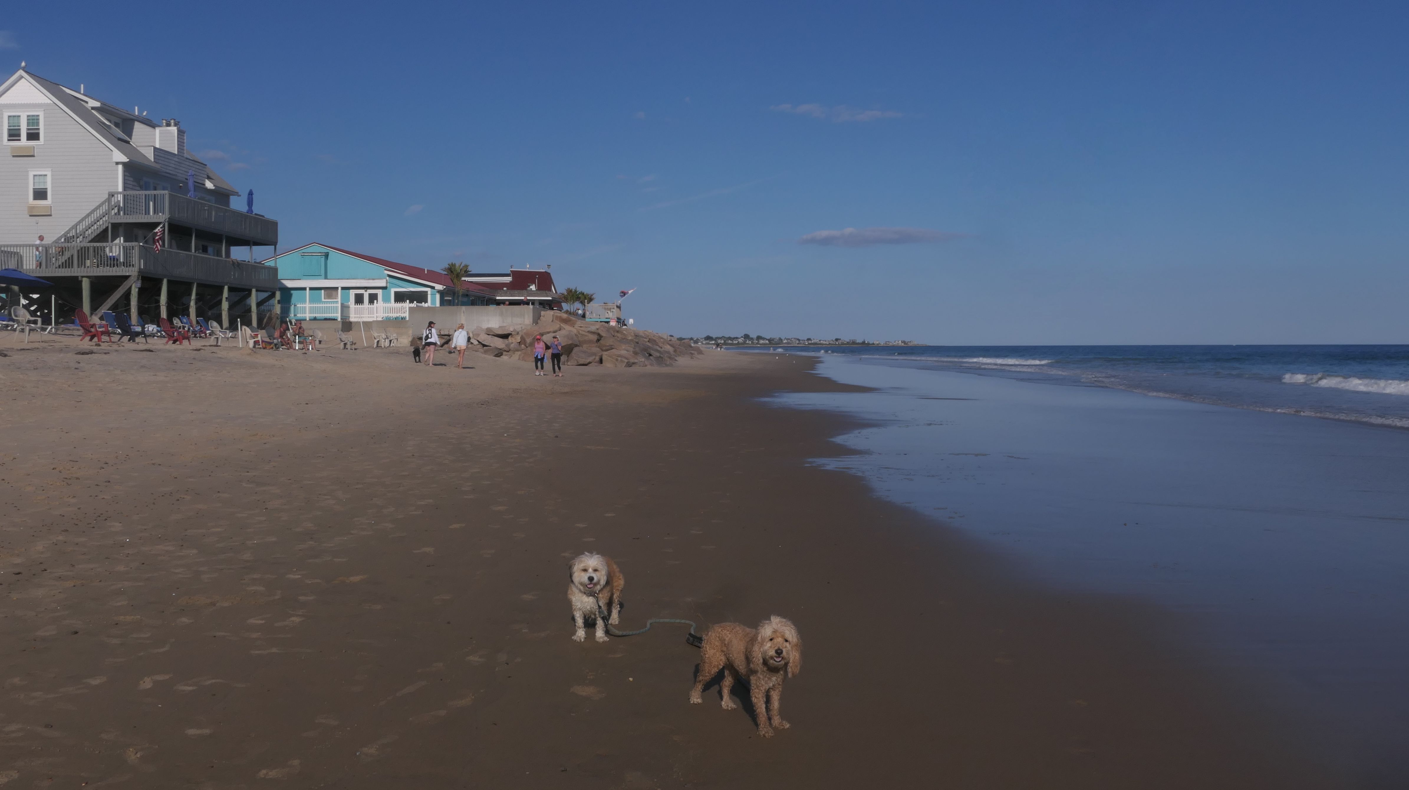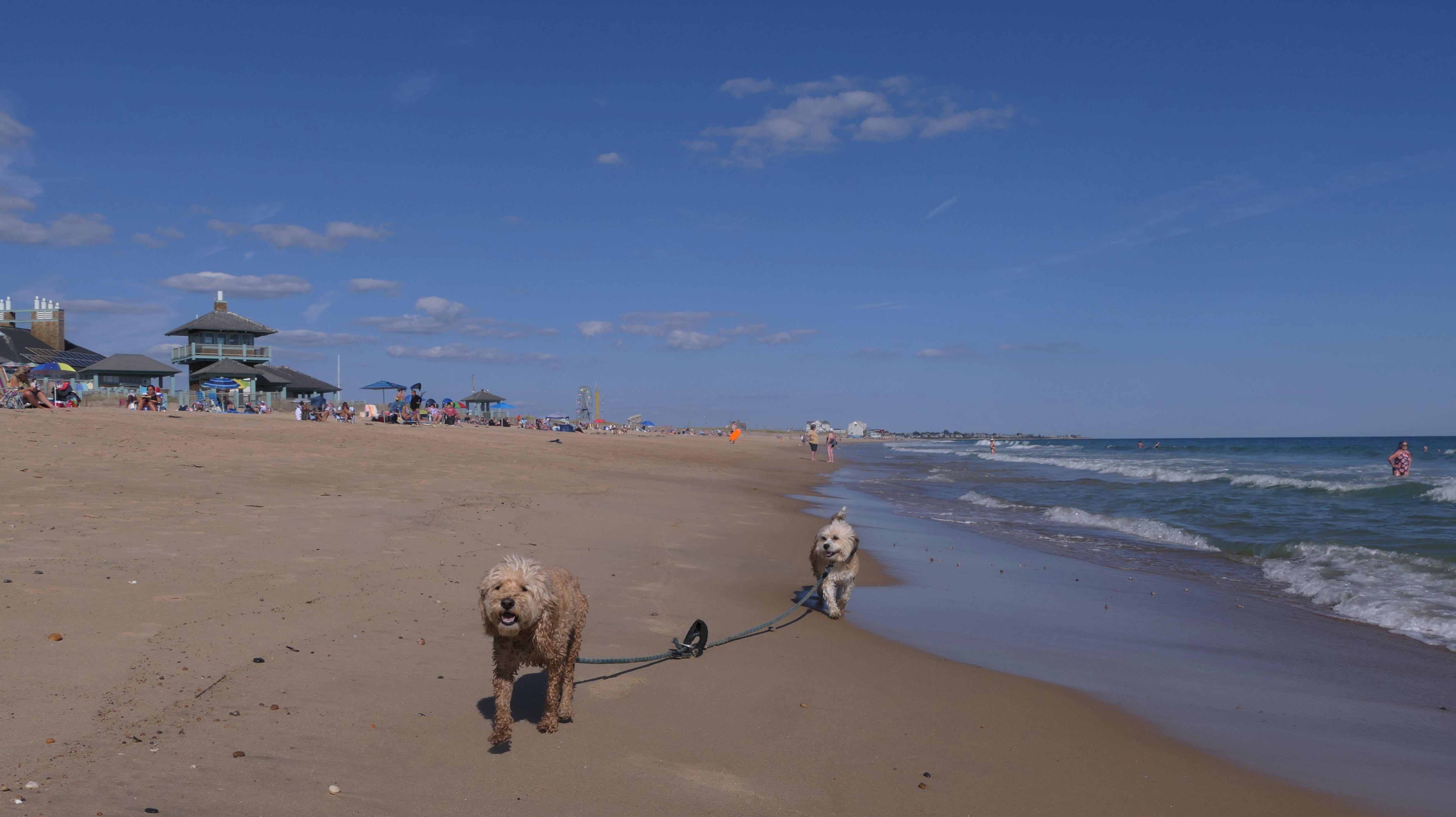 It was the hottest day of the year, and this was our final stop. We waded through the edge of the waves, walking about a half mile up the beach before turing around and heading back to Watch Hill. We've been here a bunch of times before. It's one of our favorite places, and dogs are allowed after 6PM during the summer months. This was a nice way to wrap up a very busy day that started in Narragansett and ended here.