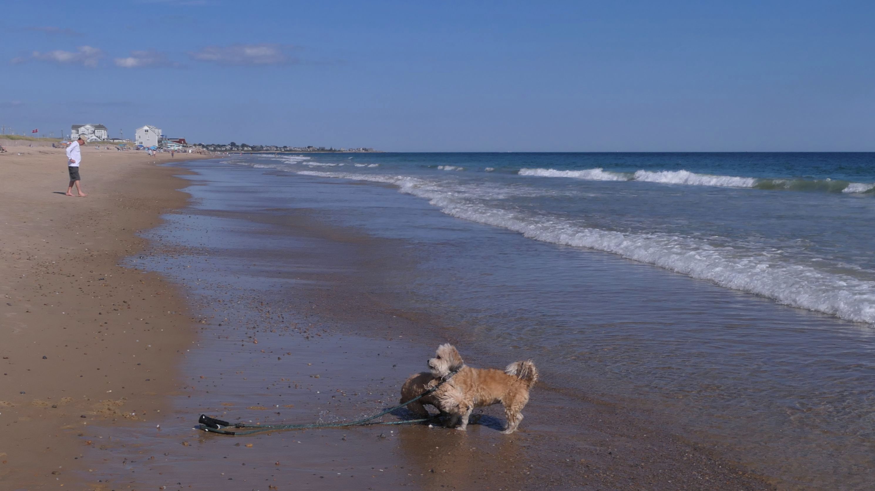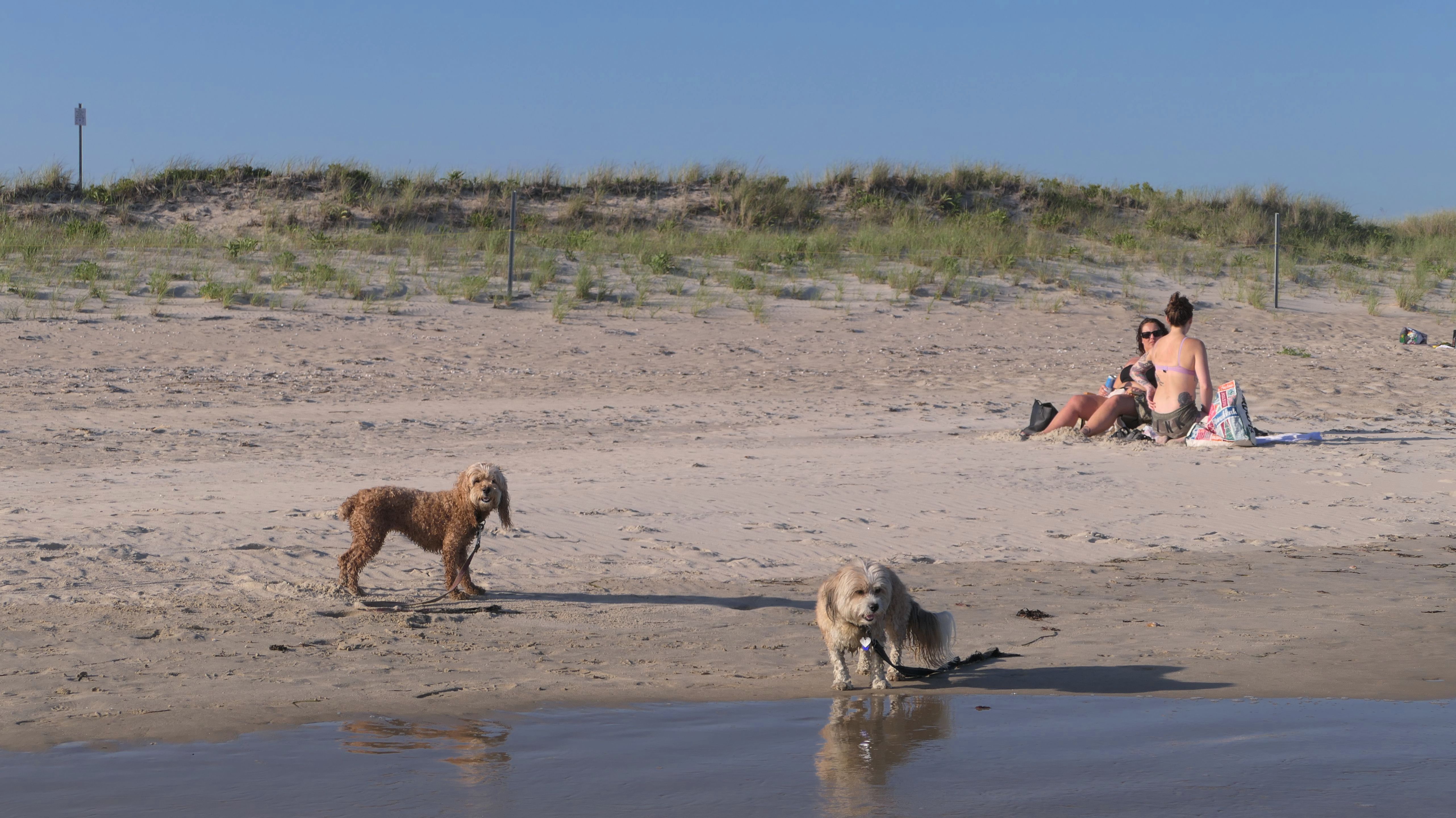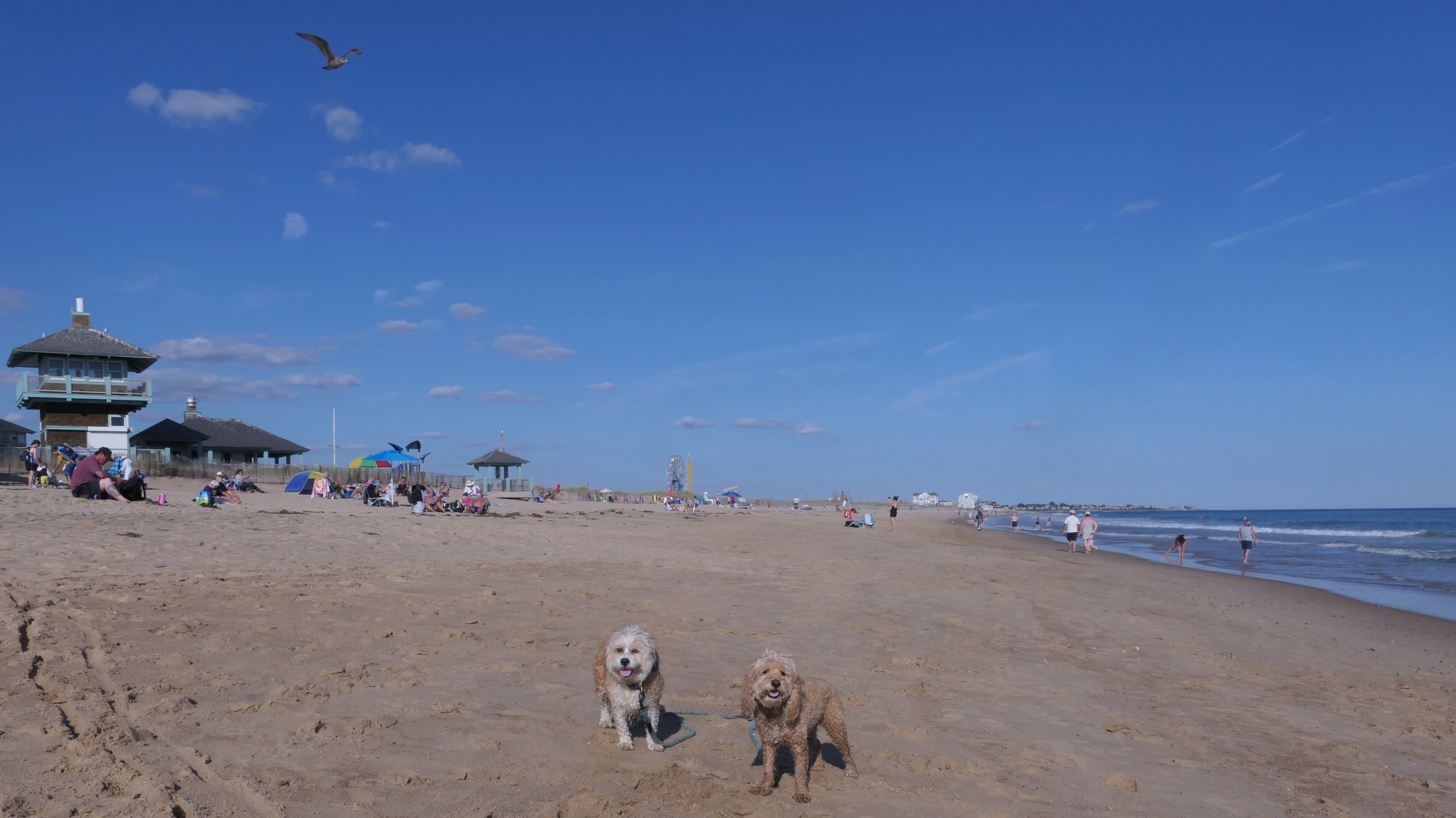 It was the hottest day of the year, and this was our final stop. We waded through the edge of the waves, walking about a half mile up the beach before turing around and heading back to Watch Hill. We've been here a bunch of times before. It's one of our favorite places, and dogs are allowed after 6PM during the summer months. This was a nice way to wrap up a very busy day that started in Narragansett and ended here.