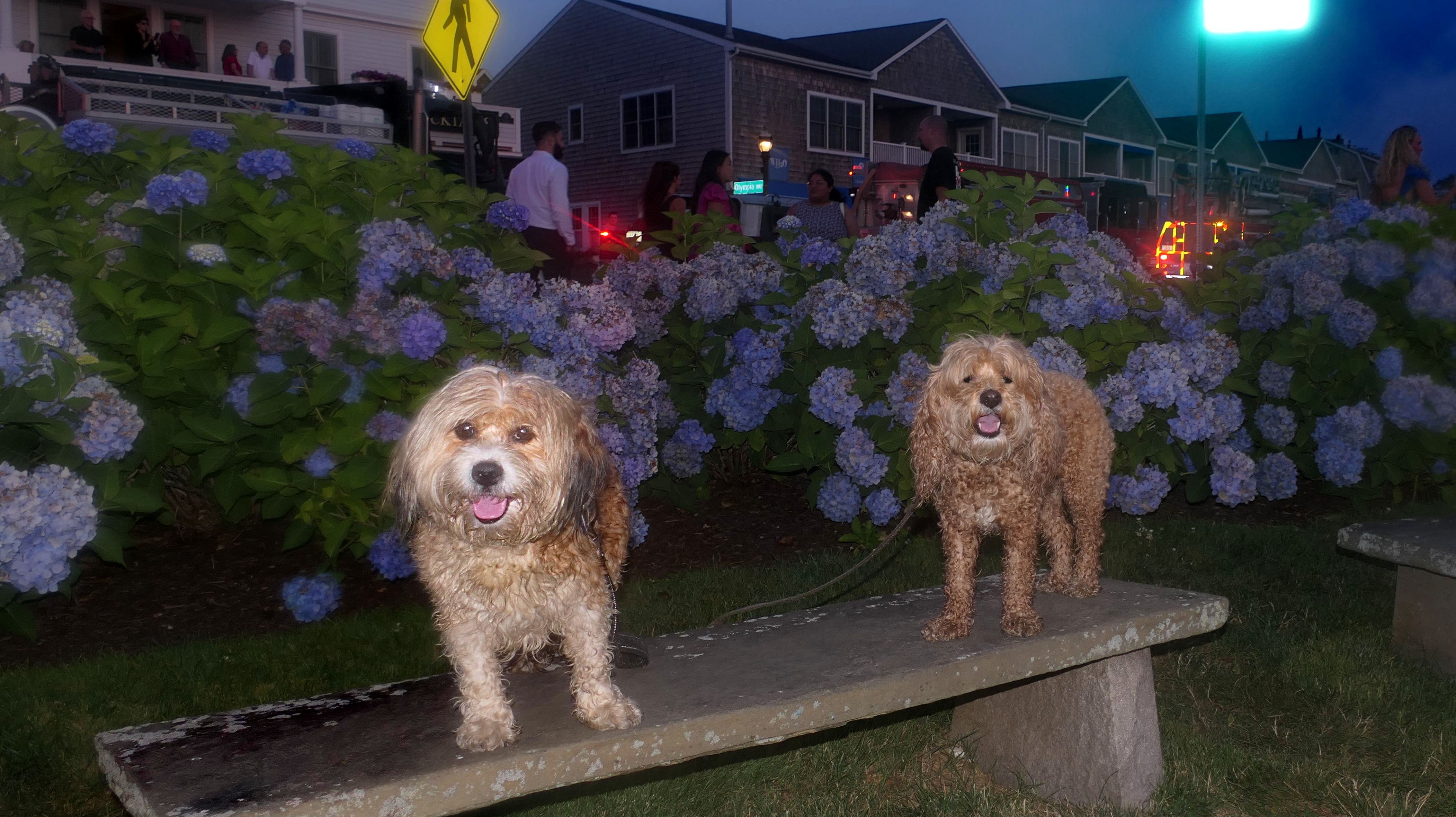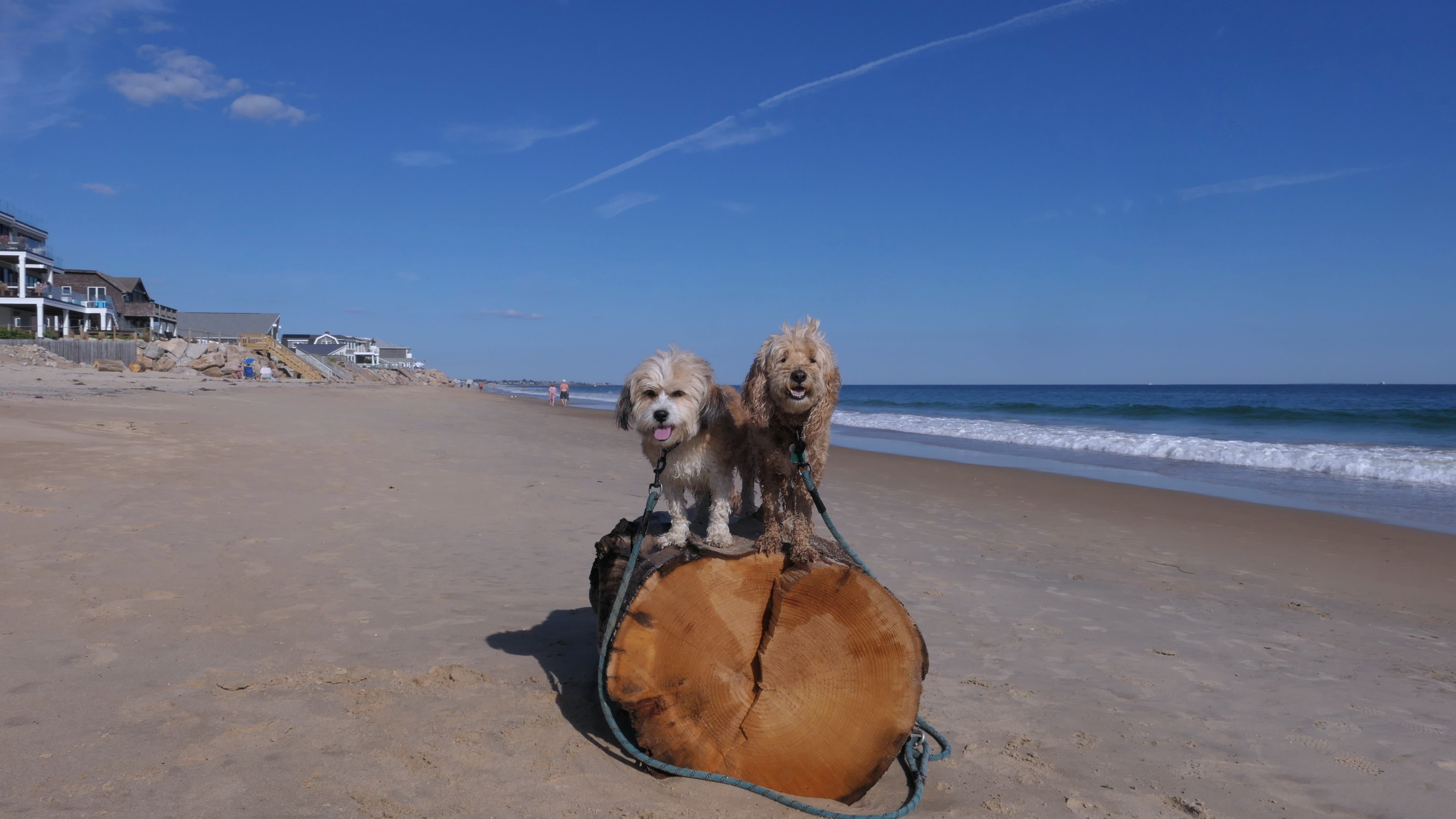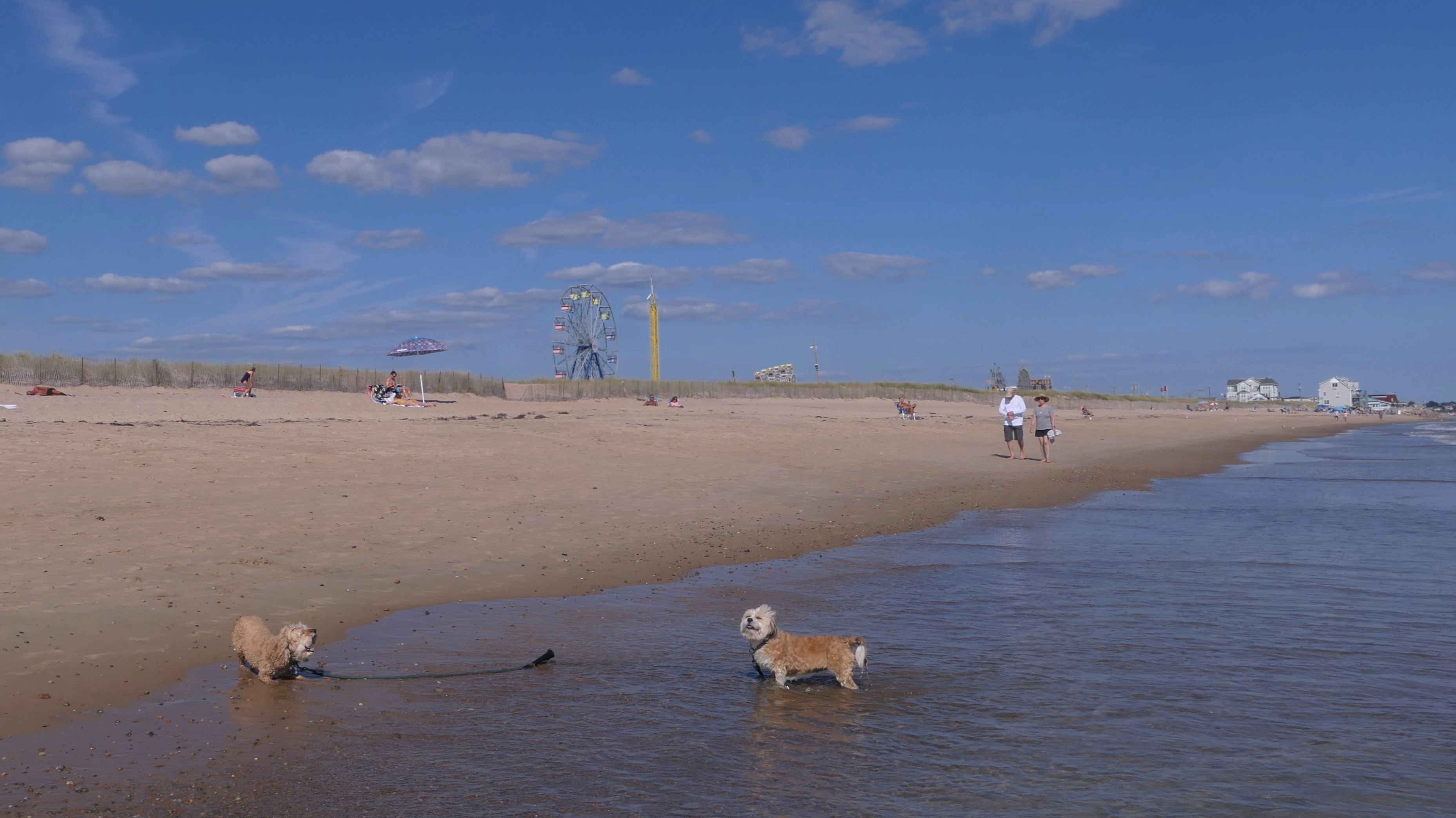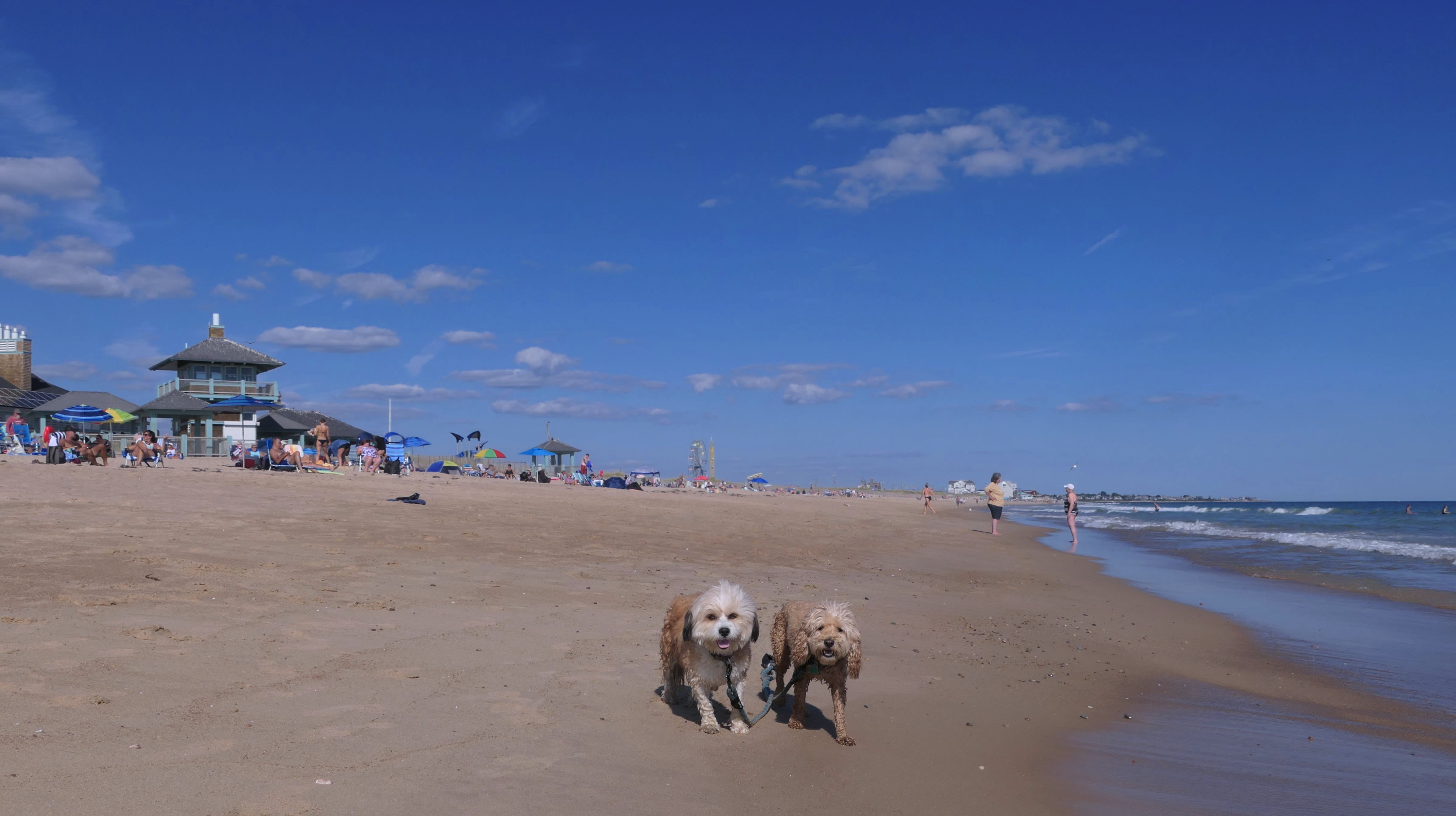 It was the hottest day of the year, and this was our final stop. We waded through the edge of the waves, walking about a half mile up the beach before turing around and heading back to Watch Hill. We've been here a bunch of times before. It's one of our favorite places, and dogs are allowed after 6PM during the summer months. This was a nice way to wrap up a very busy day that started in Narragansett and ended here.