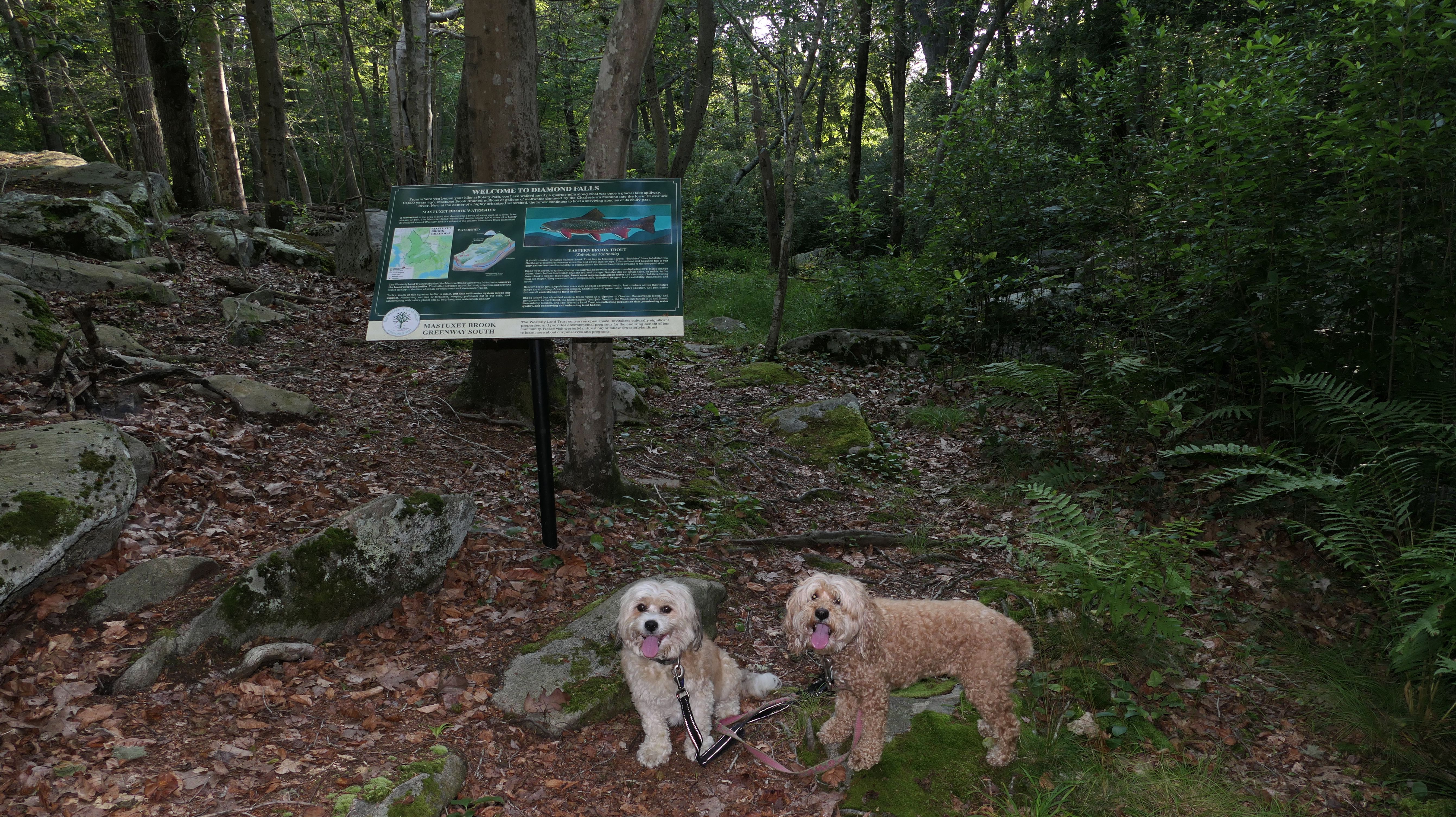 Hunting seems to be huge in this state and this is one of many management areas in Rhode Island. I think the hunting season goes for nine months of the year in Rhode Island. We visited outside of hunting season, but could still here gun fire off in the distance. Aside from hunting, this is a popular area for mountain bikes. Many of the trails here are geared toward mountain biking. As for our hike, we hiked a 2.5 mile loop trail that wasn't very interesting. I was hoping the pond I saw on the map would be better, and that maybe the dogs could cool off in it, but it was more of a swamp than a pond and pretty mucky. The trail was an okay walk in the woods, but not particularly memorable.