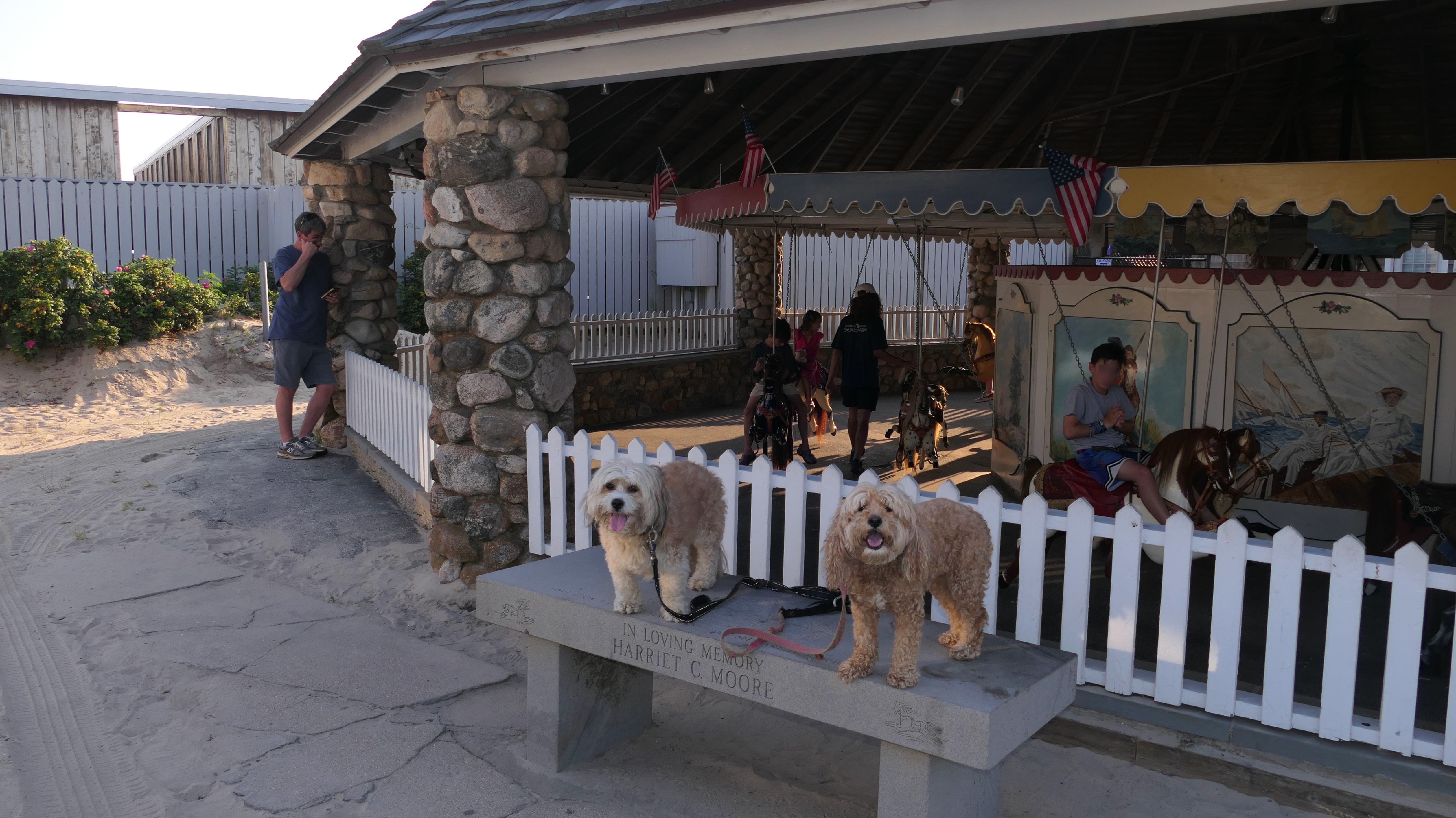 We walked through here on our way to and from East Beach. We've passed through this area many times over the past few years. This was the first opportunity I've head to get good photos of the Watch Hill Carousel. It's usually not open when we visit. The area seemed busier than usual. I was lucky to find a place to park. What I did not realize was that this was the night of the annual Karl E. Kenyon Smokey Bear Parade. A parade of fire trucks and first responder vehicles made it's way through, right as we were headed back to the car. Fire trucks from a number of different nearby communities participated. The sirens were loud, and I don't think Mandy and Lexi liked them all that much. This was the end of the parade route, and the trucks parked for a bit, so we weren't able to leave until they filed out. My photos didn't come out that great. Both the lenses on my camera and phone kept steaming up, so unfortunately the photos aren't the best.