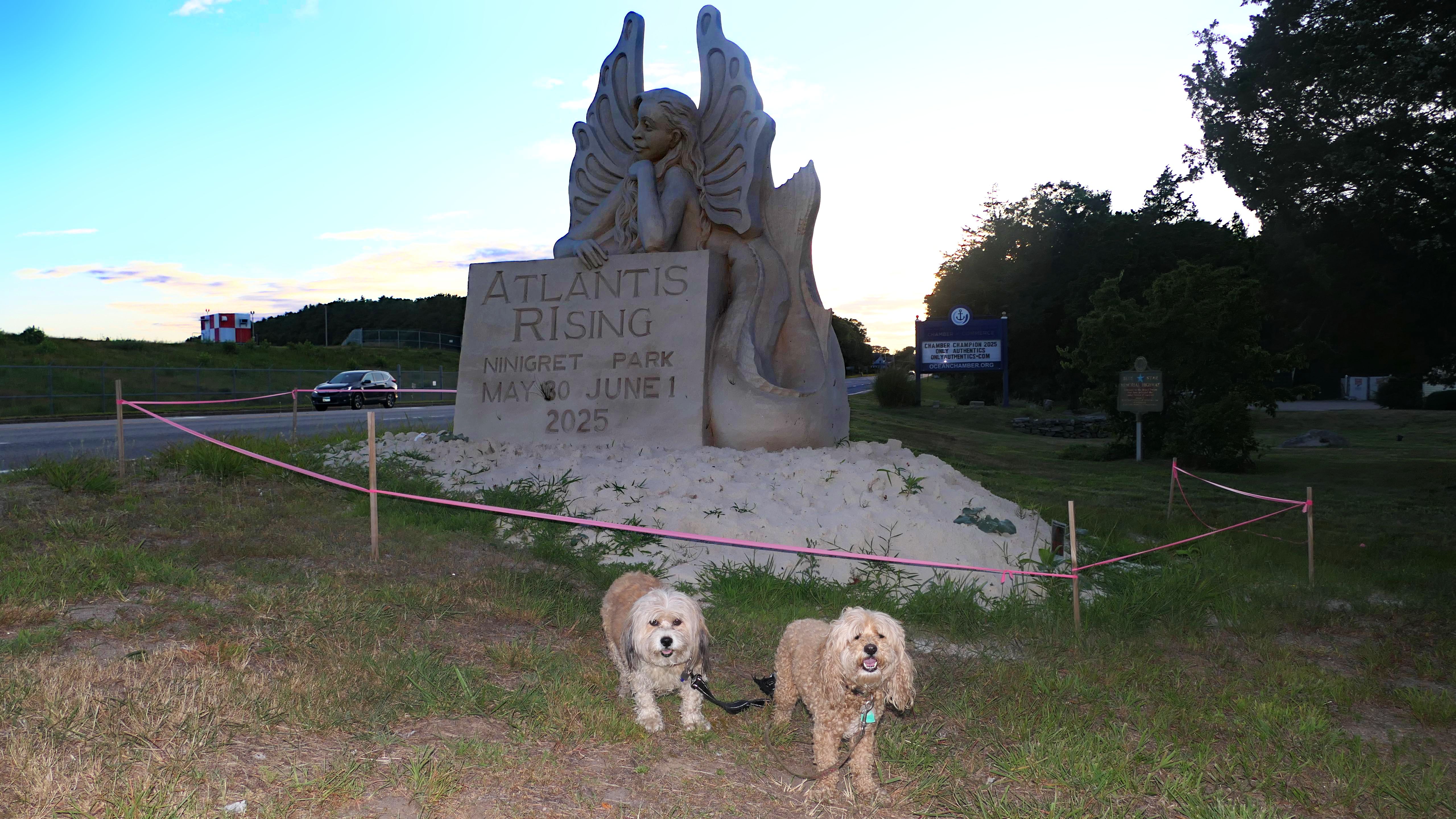 It looks like the statue gets replaced every year. We took a picture with last year's statue, so we stopped again this year to take a photo with the new statue. Evidently there is a sand statue contest every year at Ninigret Park. The statue here, visible off the very busy Route 1, is used to promote the event.