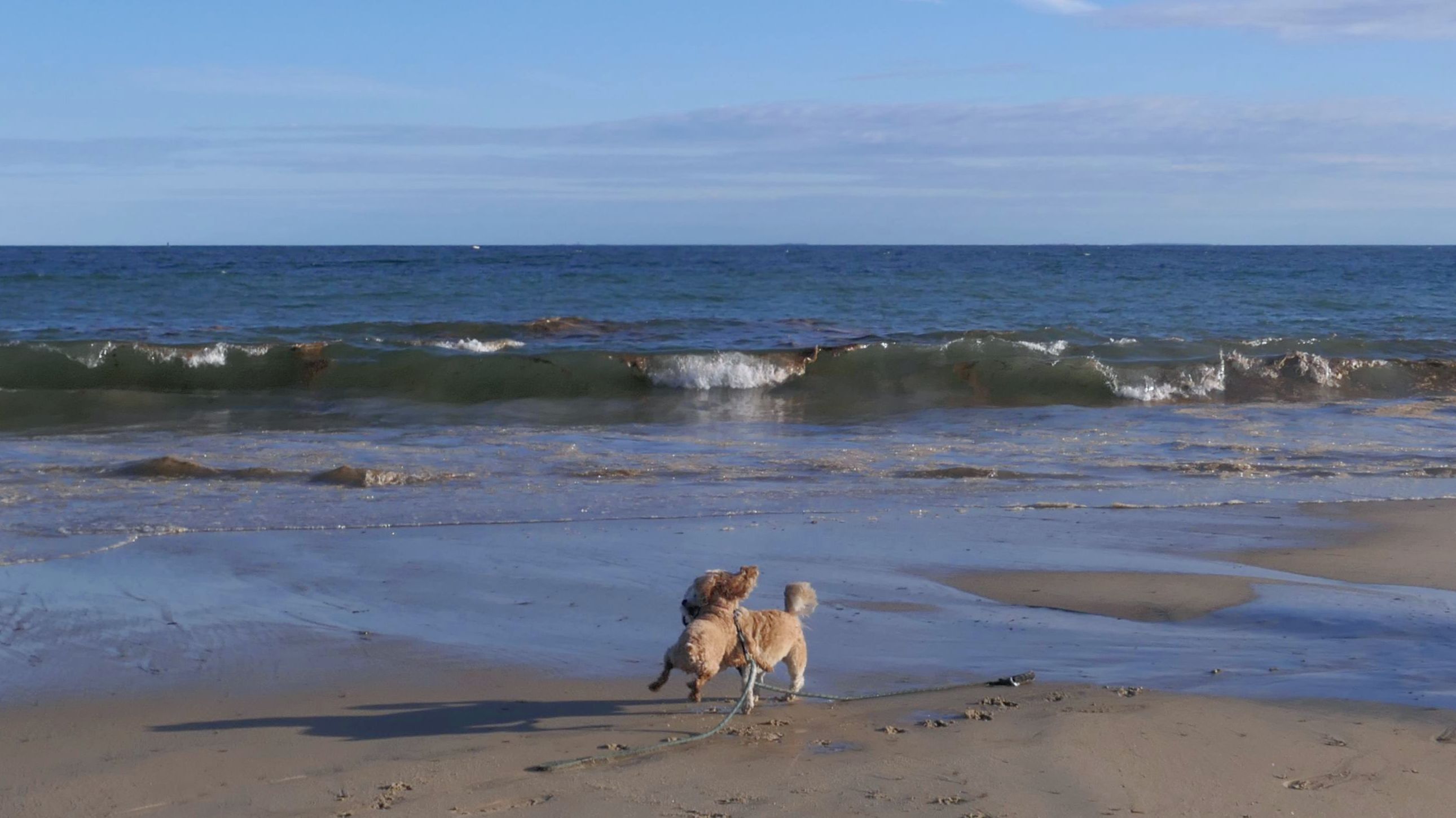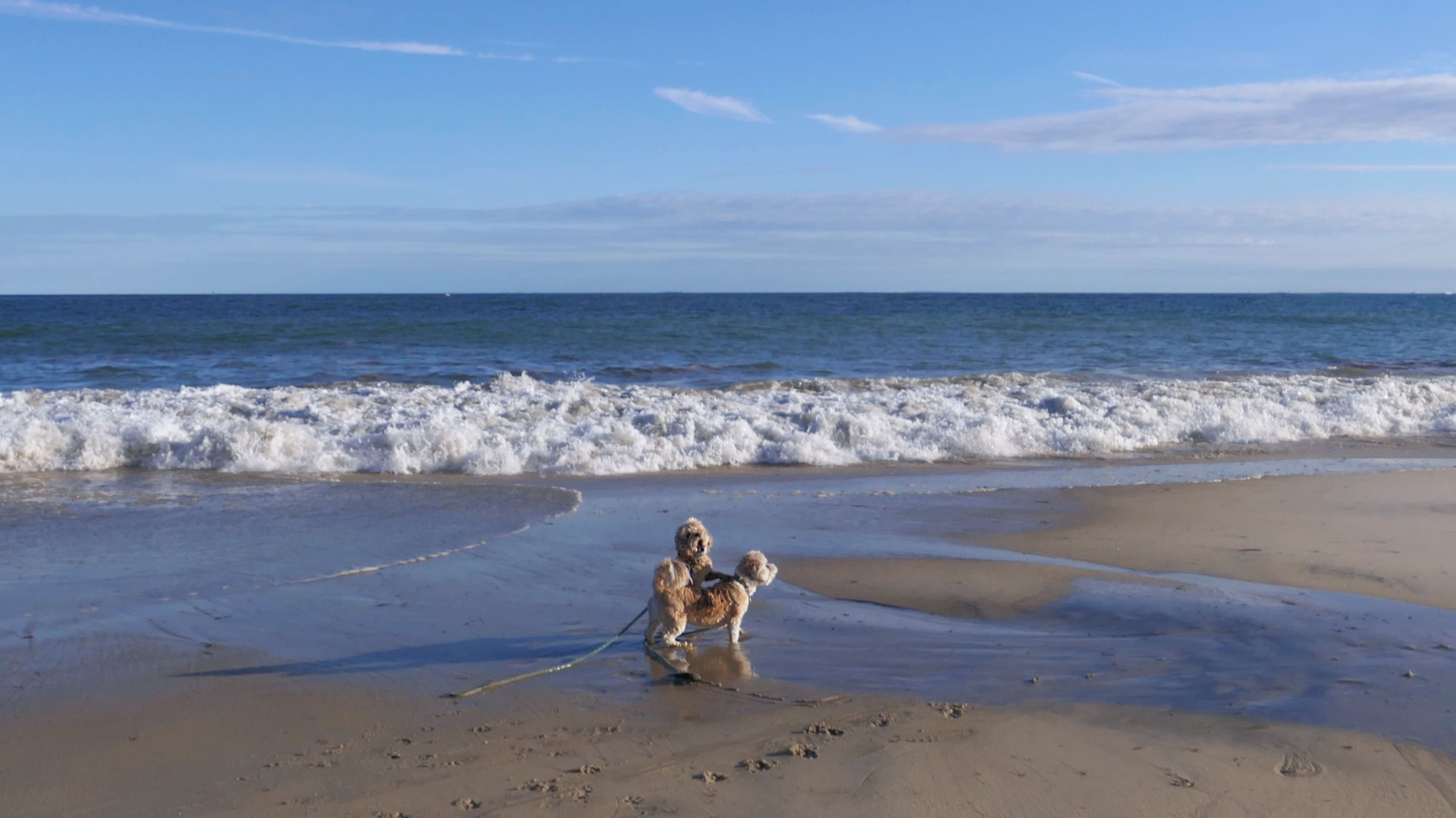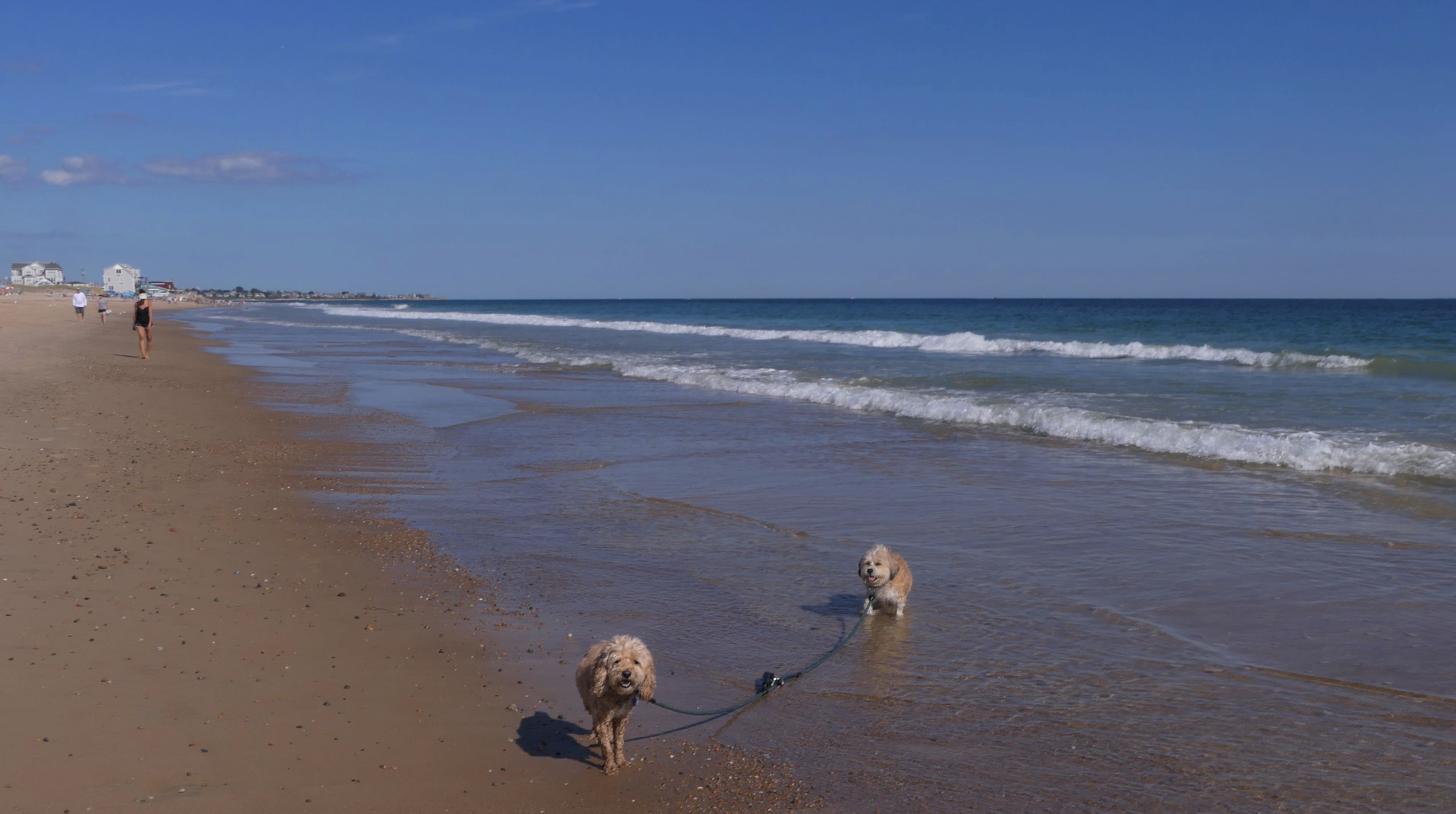 This is a public beach in the Watch Hill section of Westerly. The "Watch Hill Lighthouse Village Loop" in the All-Trails app utilizes a short section of this beach. There's a sign that says "No Pets", but you can ignore it. There is another sign that specifies that dogs are allowed in the off-season any time, and before 8 AM and after 6 PM during the summer months (May 2nd through Labor Day). This corresponds to what it says on the Town of Westerly's website. There's no dedicated parking for this beach. You have to park at Watch Hill and then access it through one of the right-of-way paths. We visited here a second time, and walked more of the beach. It's about two miles long and we probably walked about half of the total length before turning around. This time, it was an usually warm day in April. It had made it up to 90 degrees inland, but down here it was about 15 degrees cooler (just like the summer), and was very nice.