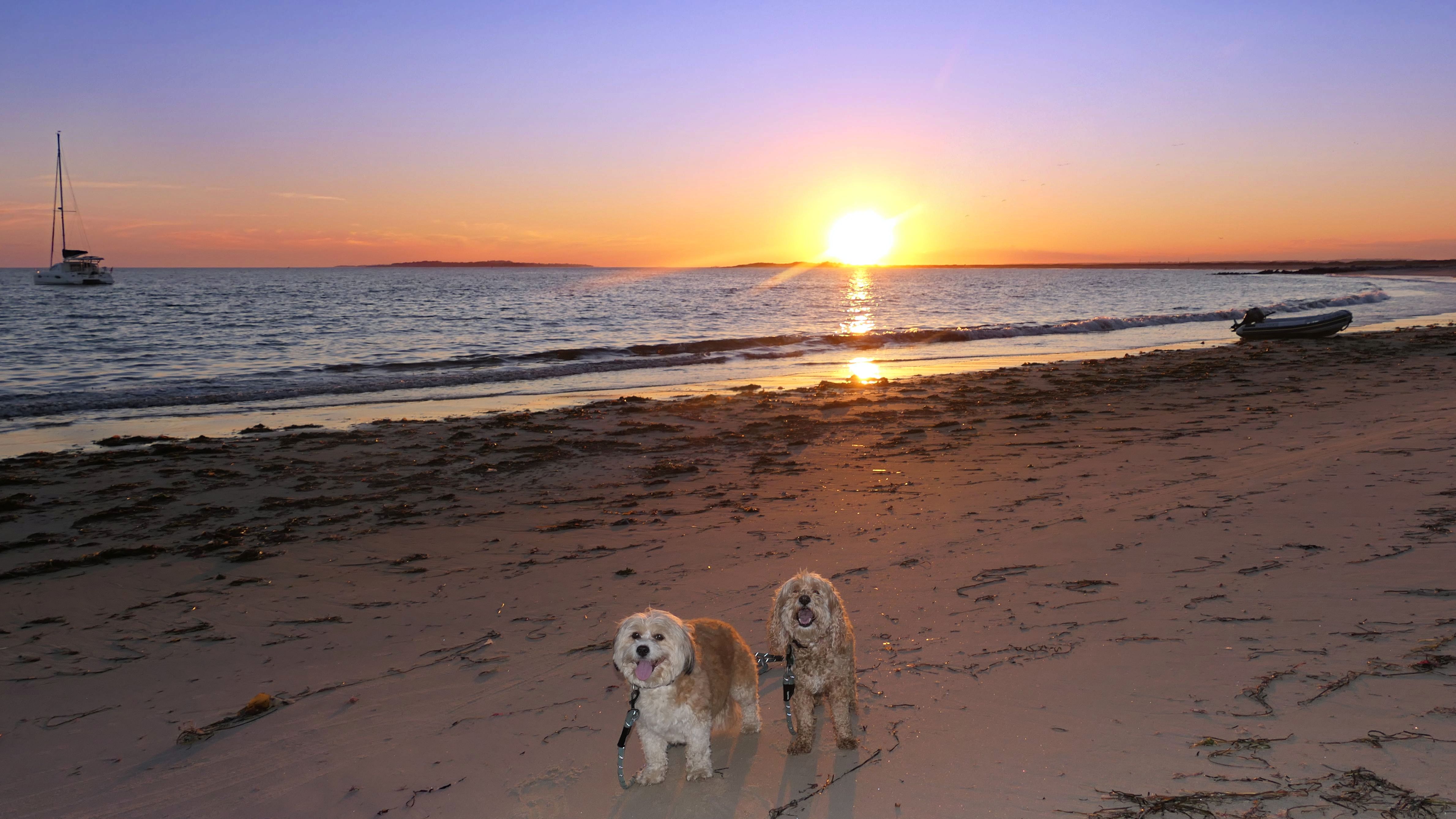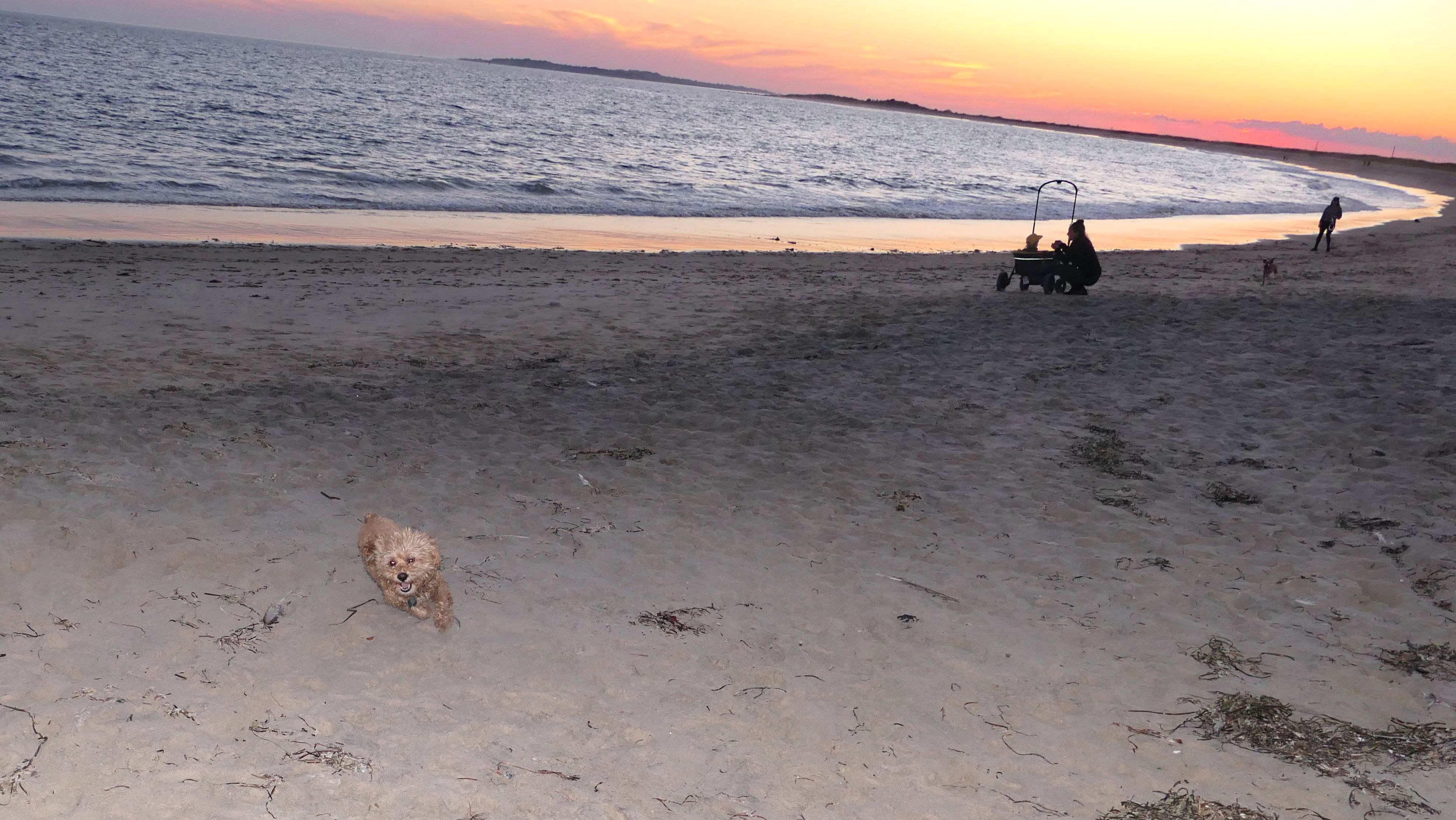 It was much warmer for our second visit, 20 months later. We came after our trip to Avondale Farm Preserve. During the summer months, dogs are only allowed after 6PM and before 8AM. We arrived just before sunset. We didn't walk the entire loop this time, we only walked about a mile up the beach. It was nice watching the sunset on the beach.