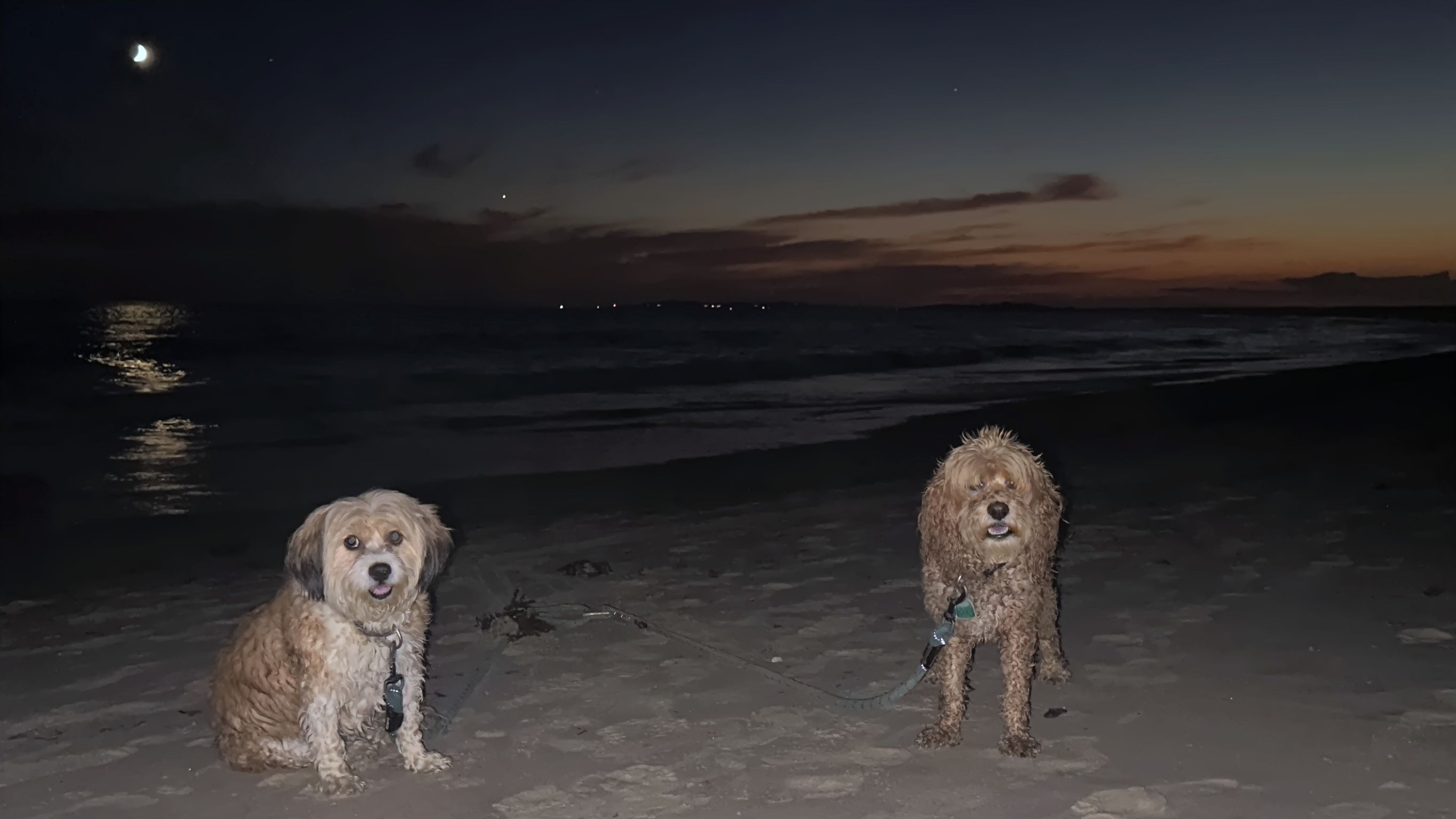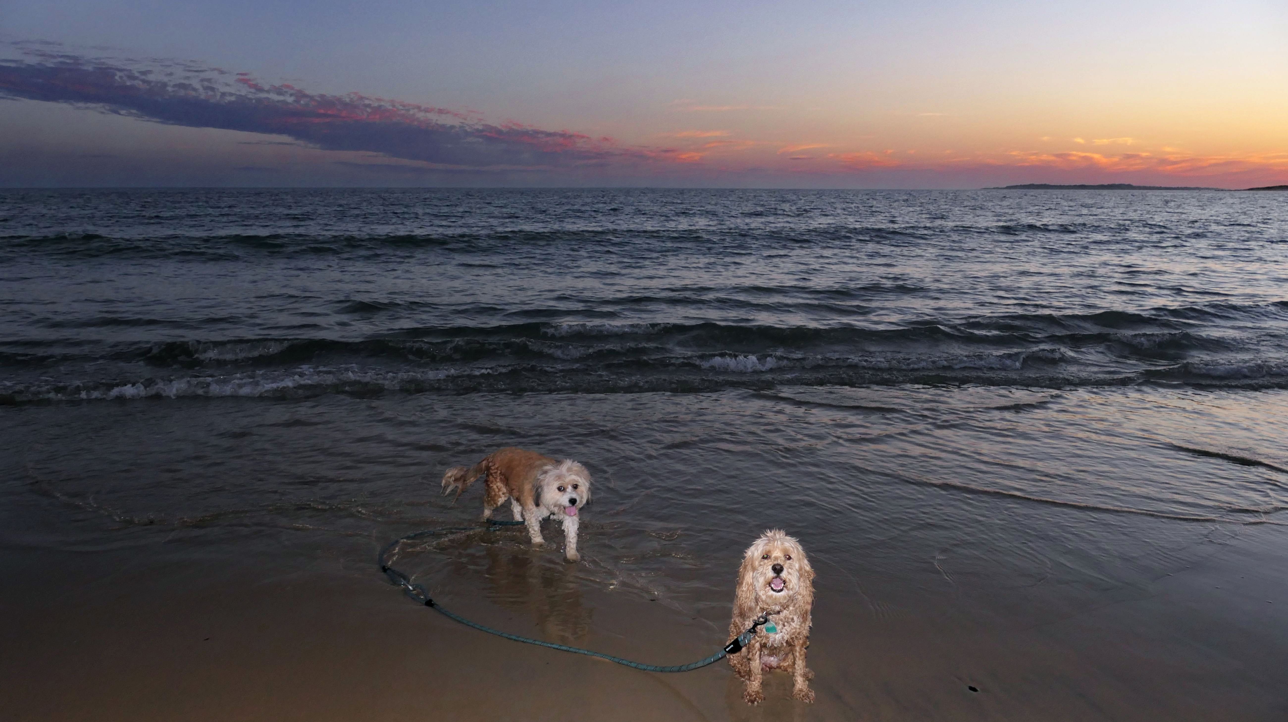 After our sunset walk at neighboring Watch Hill Beach, we started our twilight walk along the beach here. It was a beautiful evening, and Mandy and Lexi were happy to run around and play for a bit. Taking action photos with this lighting was challenging, but I was pleasantly surprised that many of them actually came out well. It was completely dark out by the time we finished our three mile walk along these beautiful beaches.
