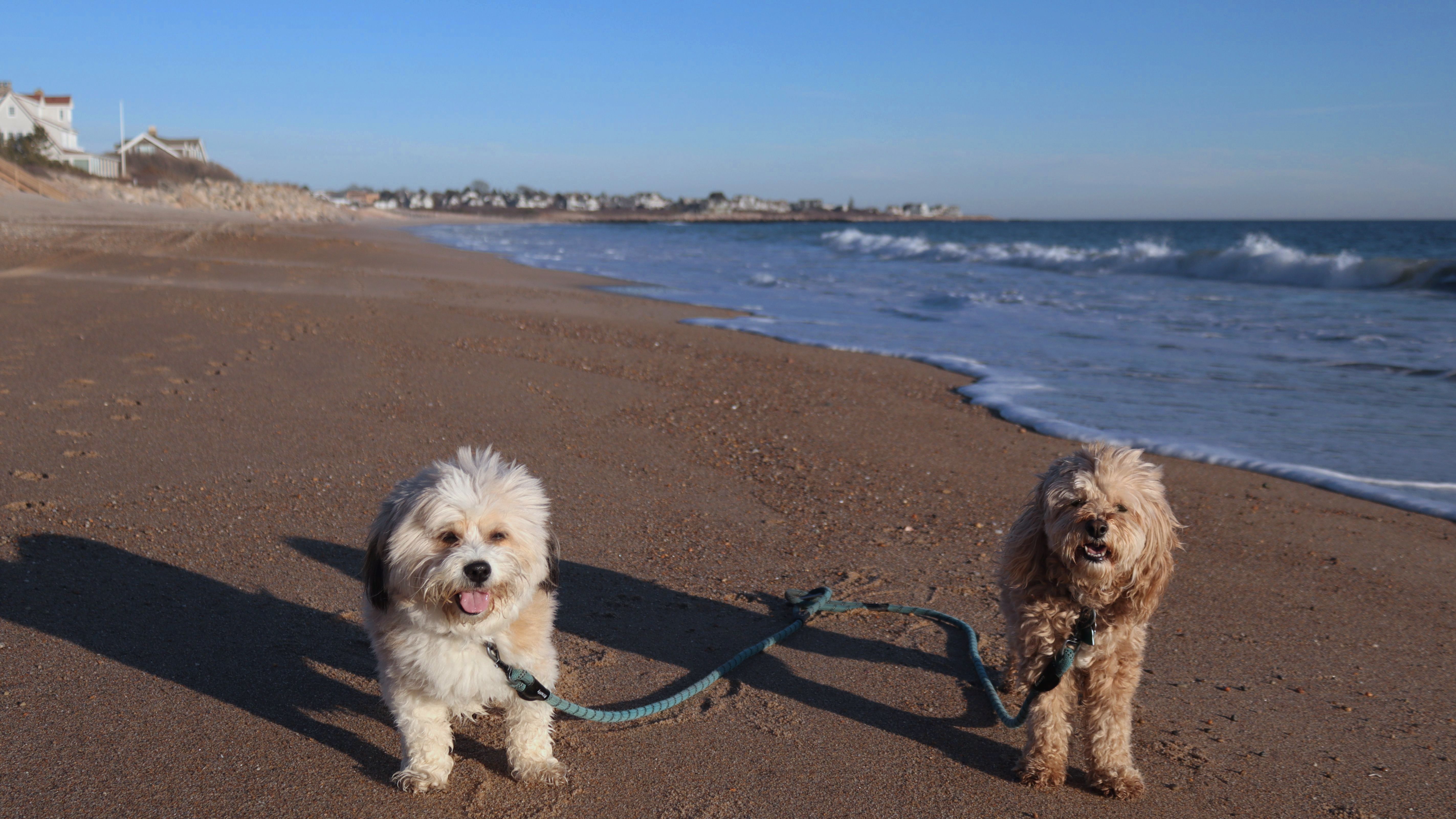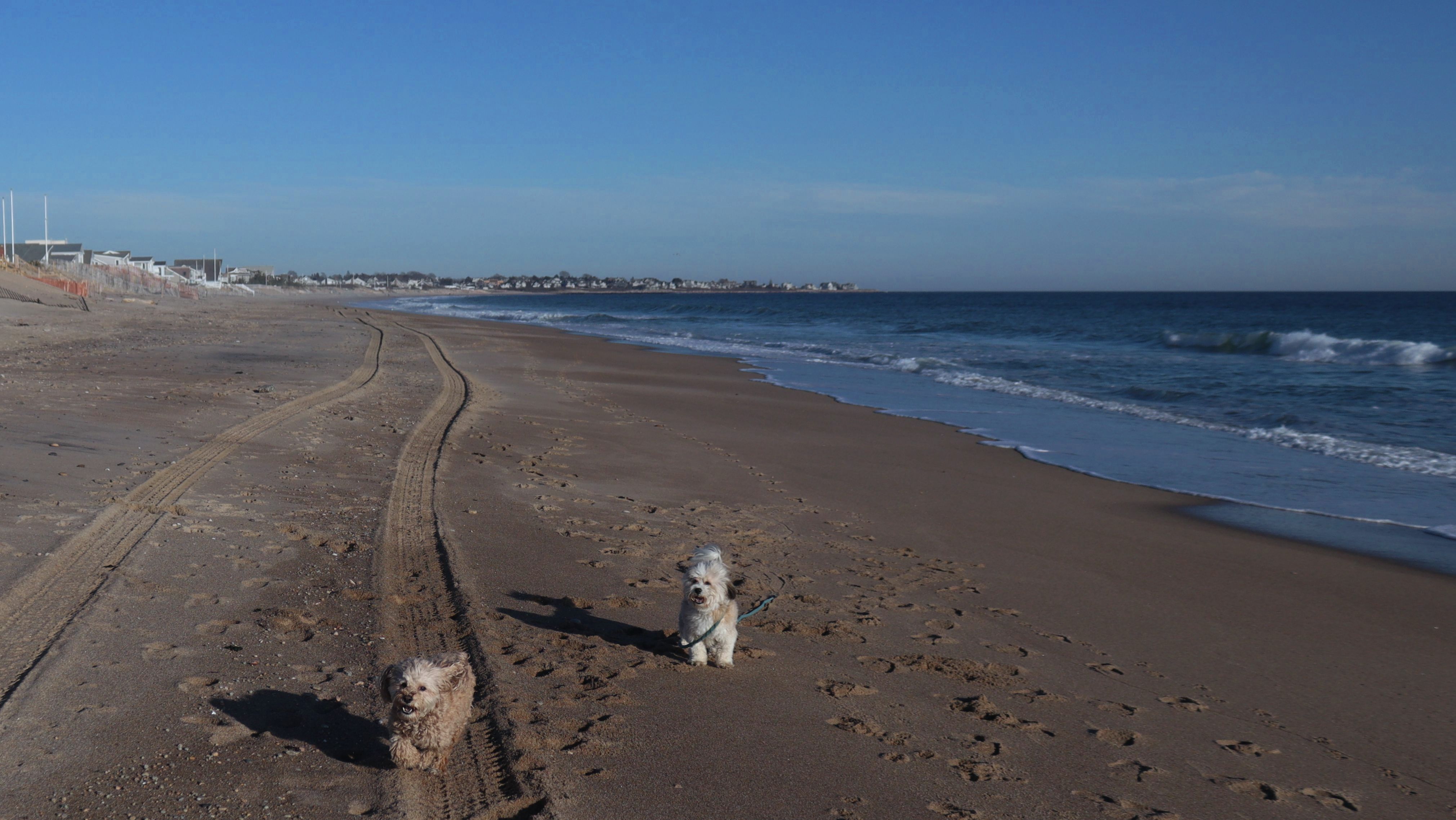 According to this website, this was only the second time we've visited this beach. That's not entirely true, though, since we've been to the beaches on either end—Misquamicut and Dunes Park—multiple times, with some overlap along the way. Still, about half of our walk covered ground we hadn’t visited since Christmas Morning 2023. This beach is also known as "Wuskenau Beach", and part of it is also known as "Atlantic Beach". I've combined them here since it's hard to know where one ends and the other begins. It was a spring-like day in early January, with inland temperatures nearing 50 degrees and slightly cooler air along the shore. It turned out to be a perfect afternoon for a sunny beach walk, and Mandy and Lexi thoroughly enjoyed letting loose for a while. I'm still getting the hang of my new camera, but most of the photos came out well. It was wonderful to get outside on such a nice day before winter settles back in.