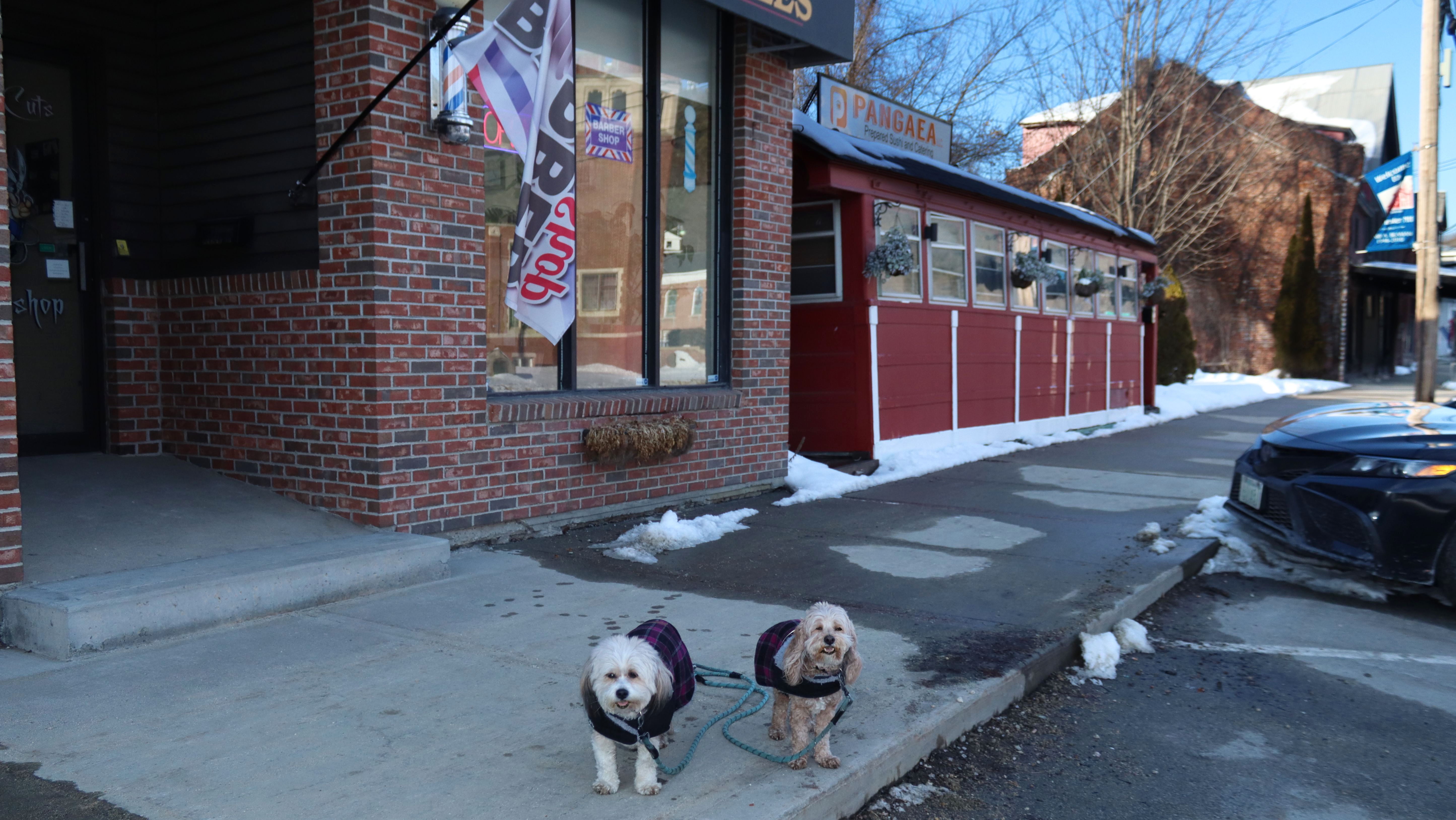 I was planning the majority of our walk to be around this area of town, but the sidewalks were pretty messy, so we stayed mostly on the Rail Trail instead. We still went for a short walk along Main Street.