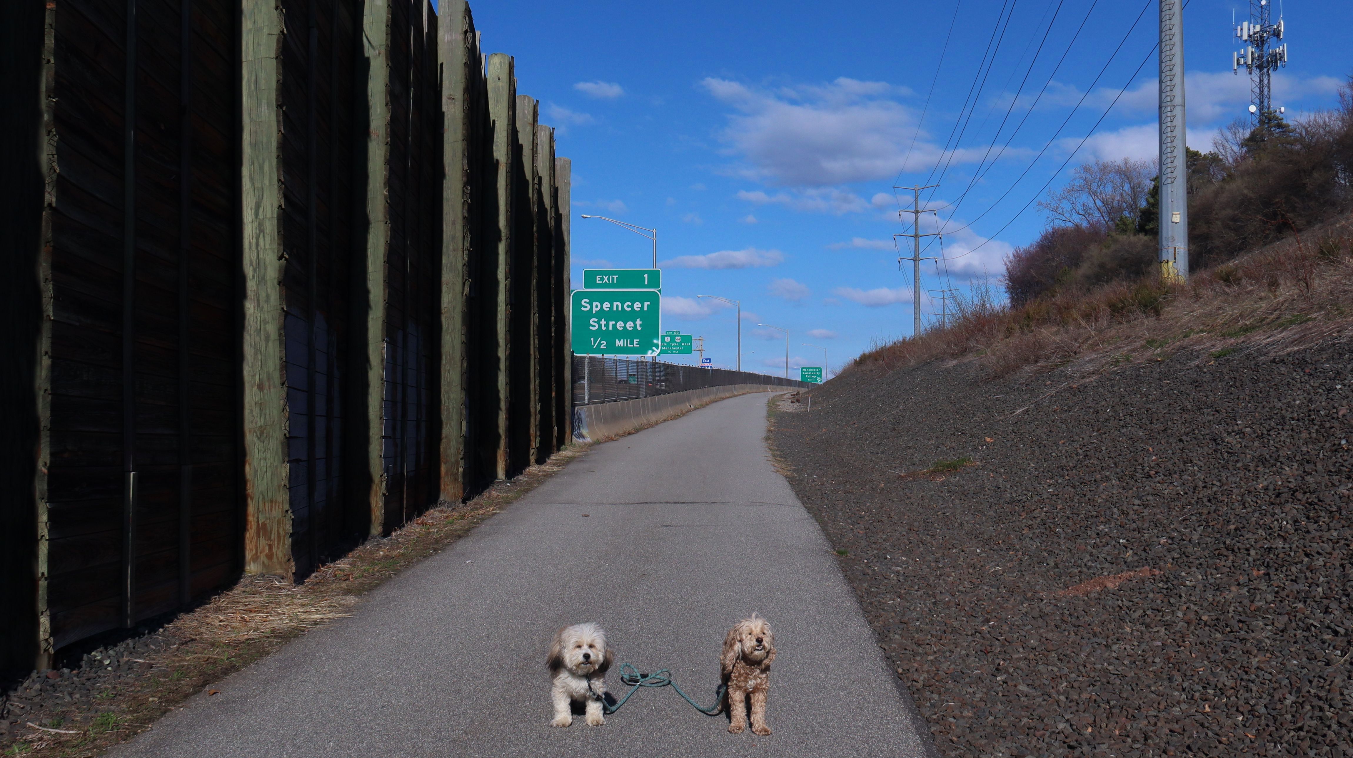 I saw this dirt path on one of my maps and thought we'd check it out. It was labeled as "Silver Place" on the map, but there was no signage on the road itself, except for a couple of mysterious arrow signs that did not indicate where they were pointing to. The path begins on Silver Lane near the Lots & More Garden Center, just a short distance from DePietro Park. It's a narrow dirt road that leads to a residential neighborhood. We continued through the neighborhood before eventually making our way out to Oak Street, and back to Silver Lane. From there we headed back to Veterans Memorial Park to complete our loop around East Hartford. We walked about 5 and a half miles in total.