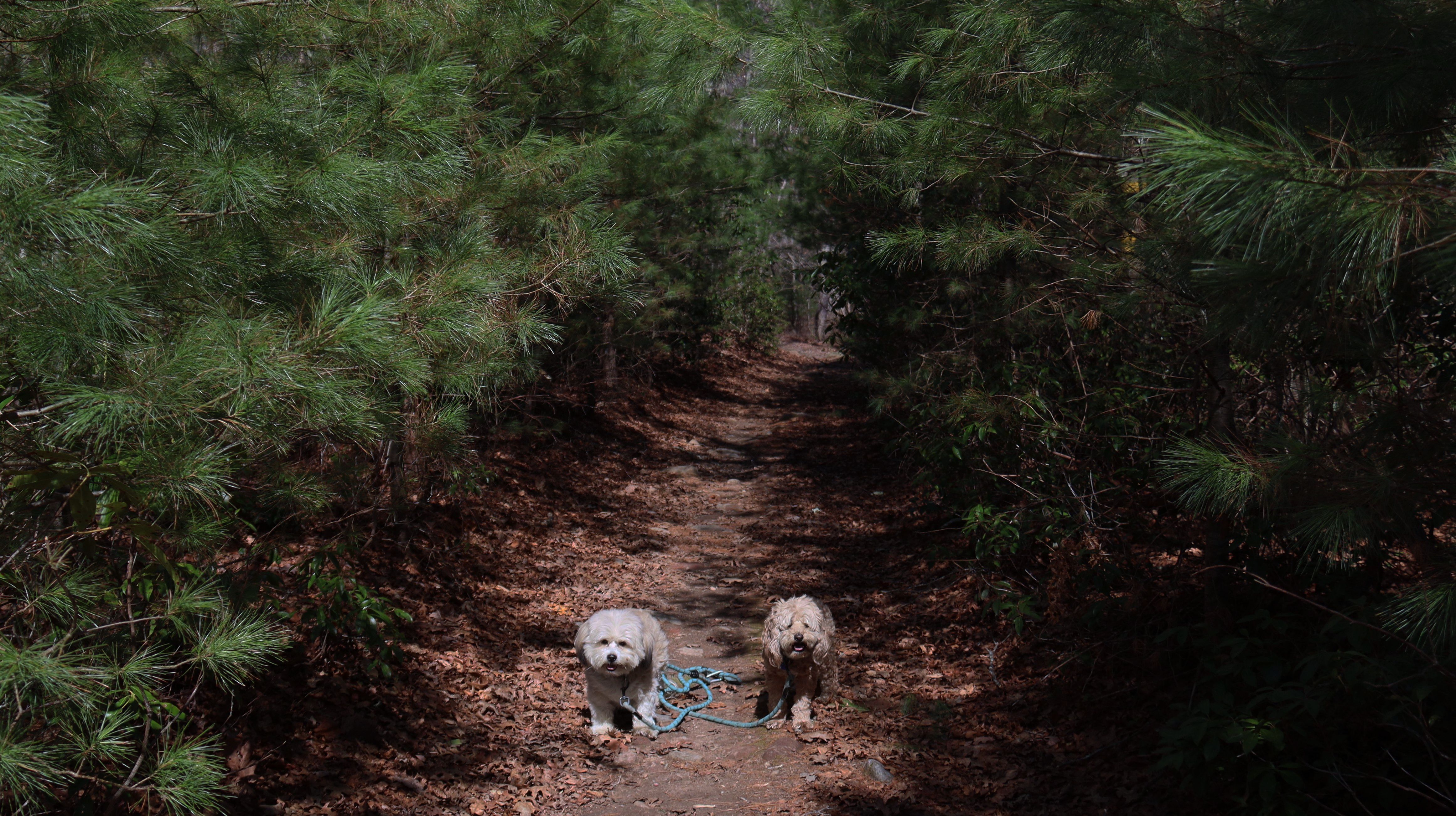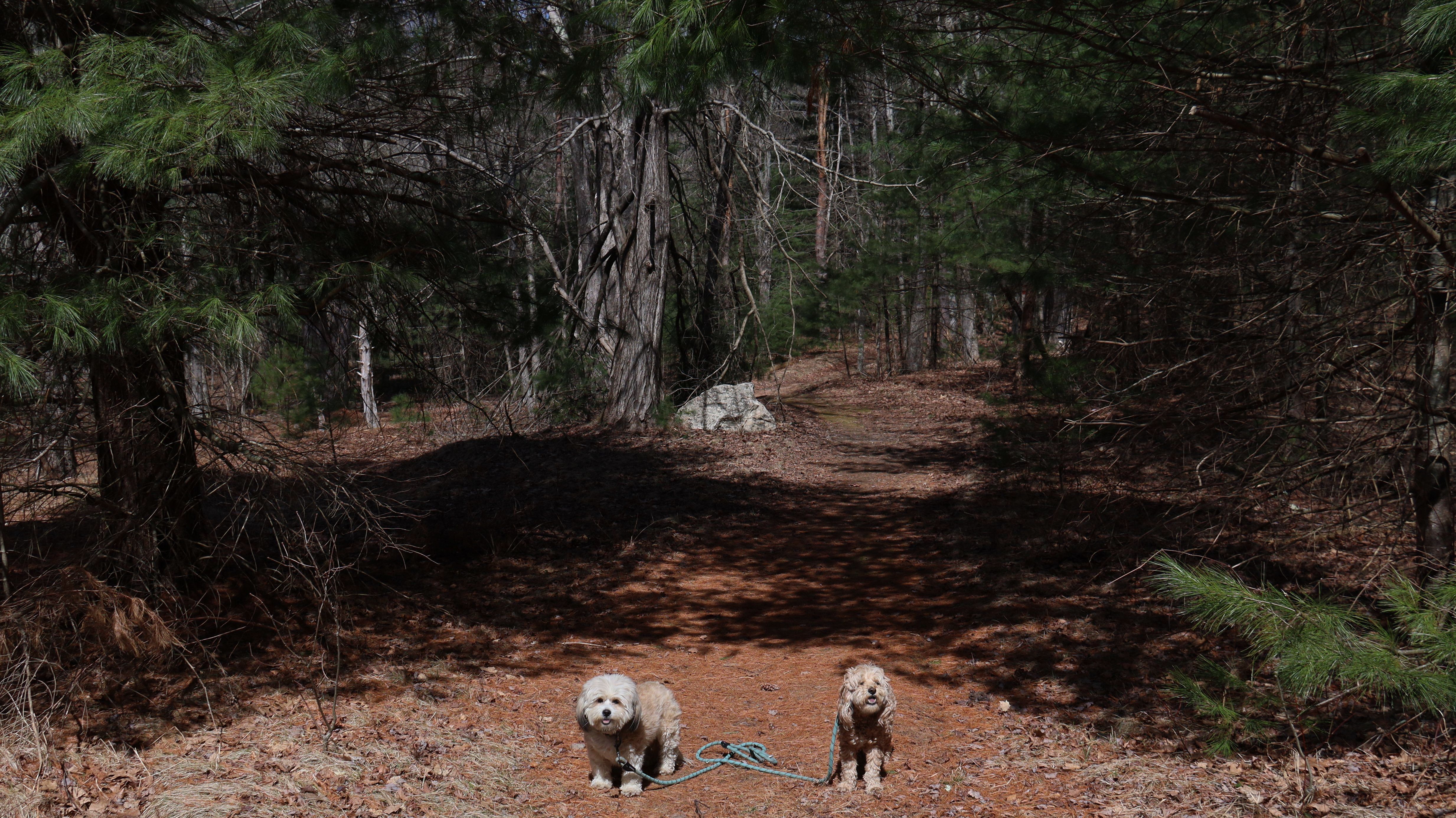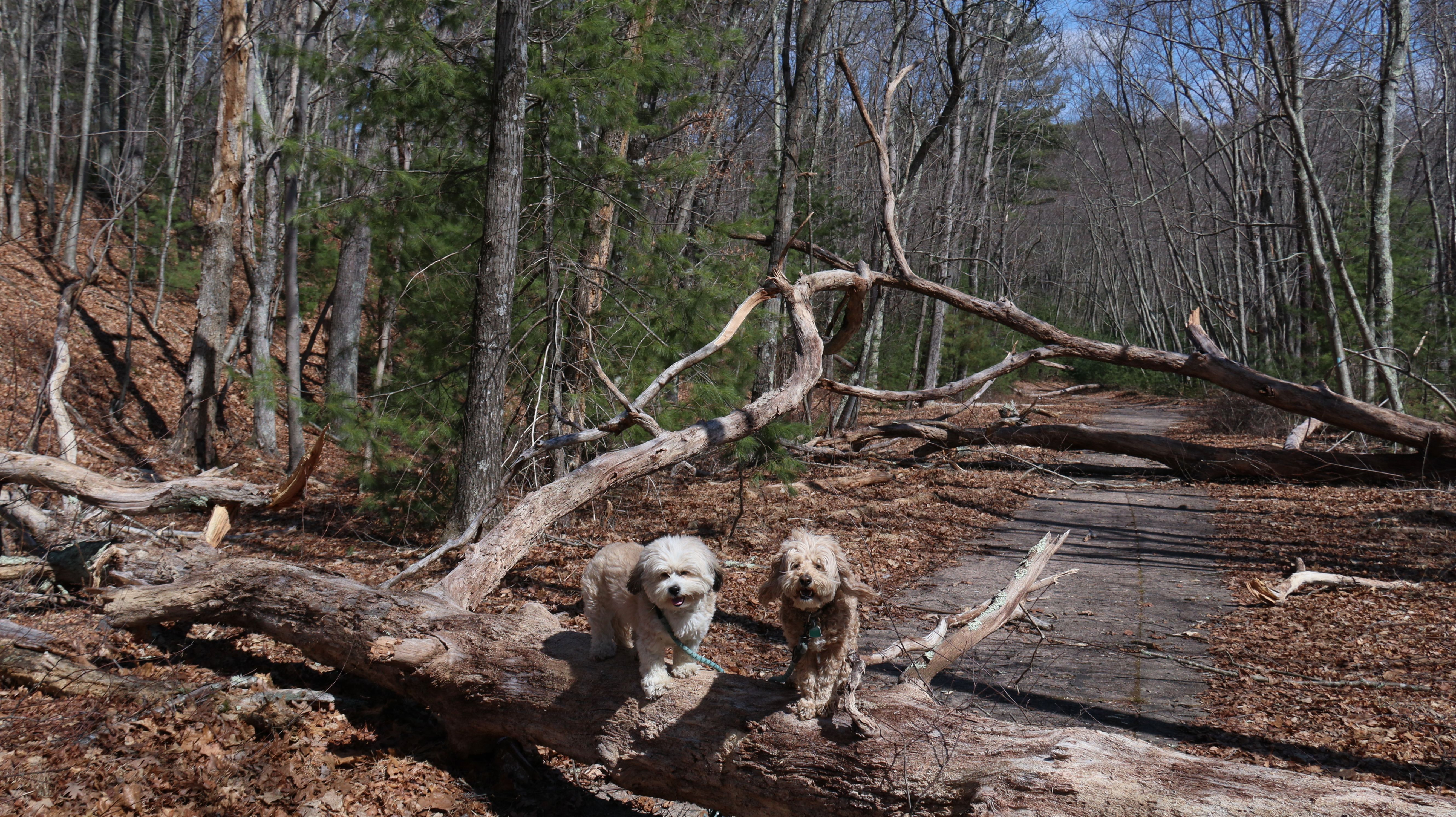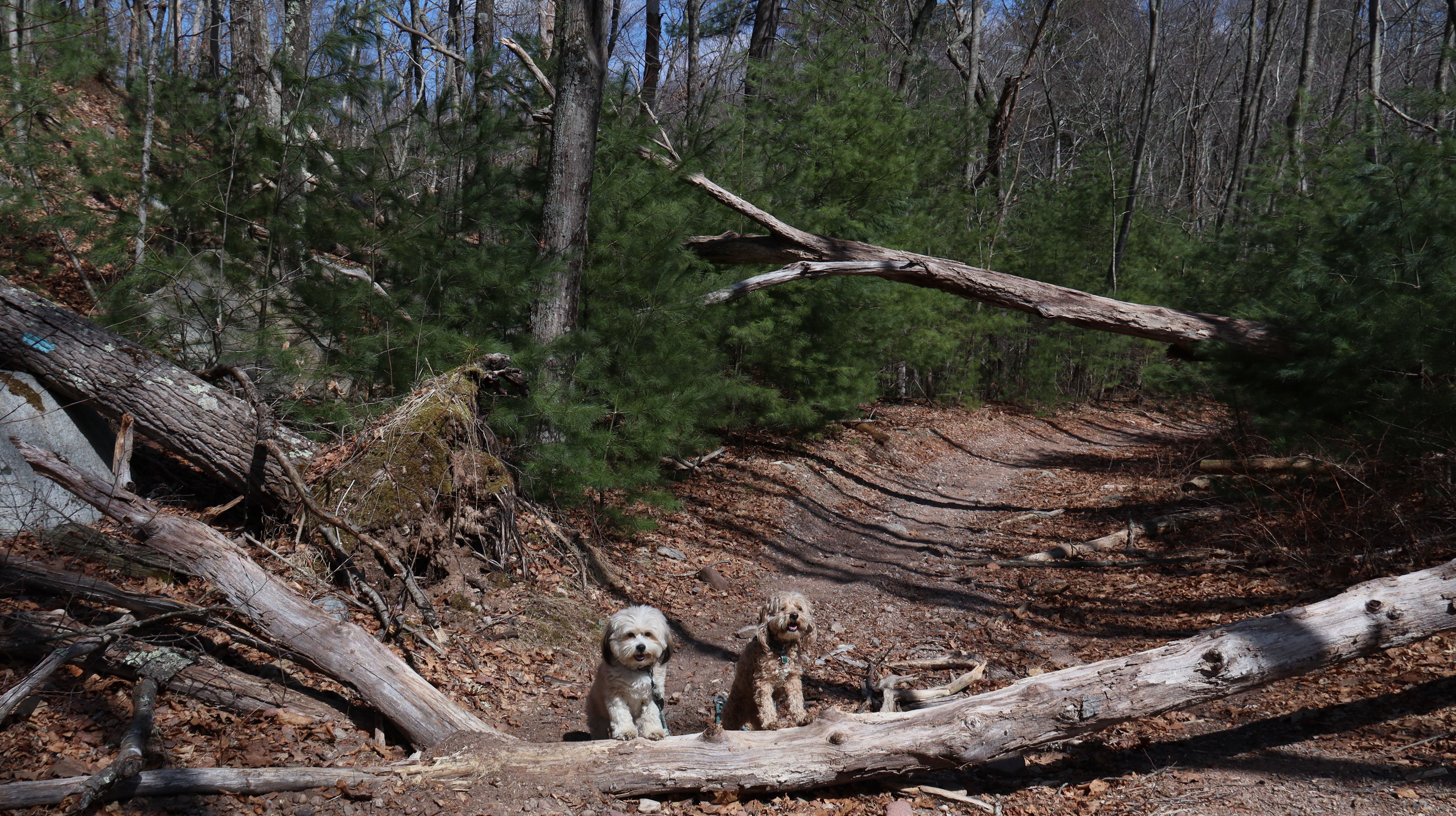 There are many great hiking areas in this area of the state, but it's hard to believe we had not visited this one already. This hiking area is also on an active farm, with signs to remind hikers to stay on the path and not to pick the crops! There's a lot of un-shaded open space here, so this wouldn't be ideal for the doggos on a hot summer day. Fortunately, when we visited it was in the upper 60's and breezy. It was just a beautiful day all around. There are some additional trails that go deeper into the woods that we will have to come back and explore at some point.