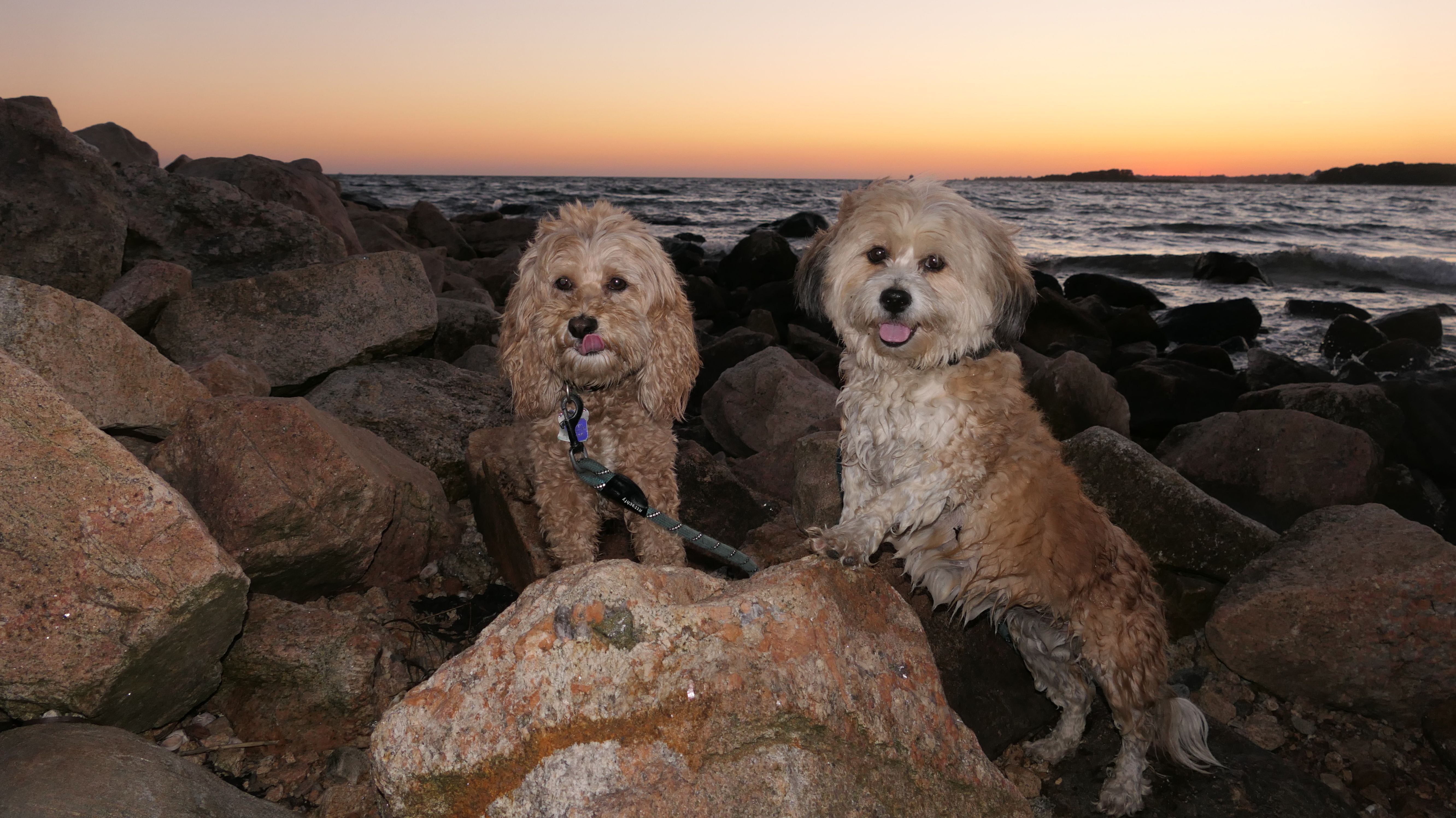 This is one of the nicer shoreline spots in Connecticut, and since we hadn't been here in over four years, we decided to head back after work. We got there about half an hour before sunset, but I totally forgot it's a mile and a quarter walk just to get to the beach. The trail runs along the Poquonnock River, so we stopped for a couple quick photos, then ended up jogging part of the way so we wouldn't miss the sunset. We made it just in time, and I managed to get one good shot of the dogs. There were even some waves for a change, probably from a storm way offshore. Mandy went right in the water after the sun went down, while Lexi only dipped her paws. After that, we made the mile-and-a-quarter walk back in the twilight.