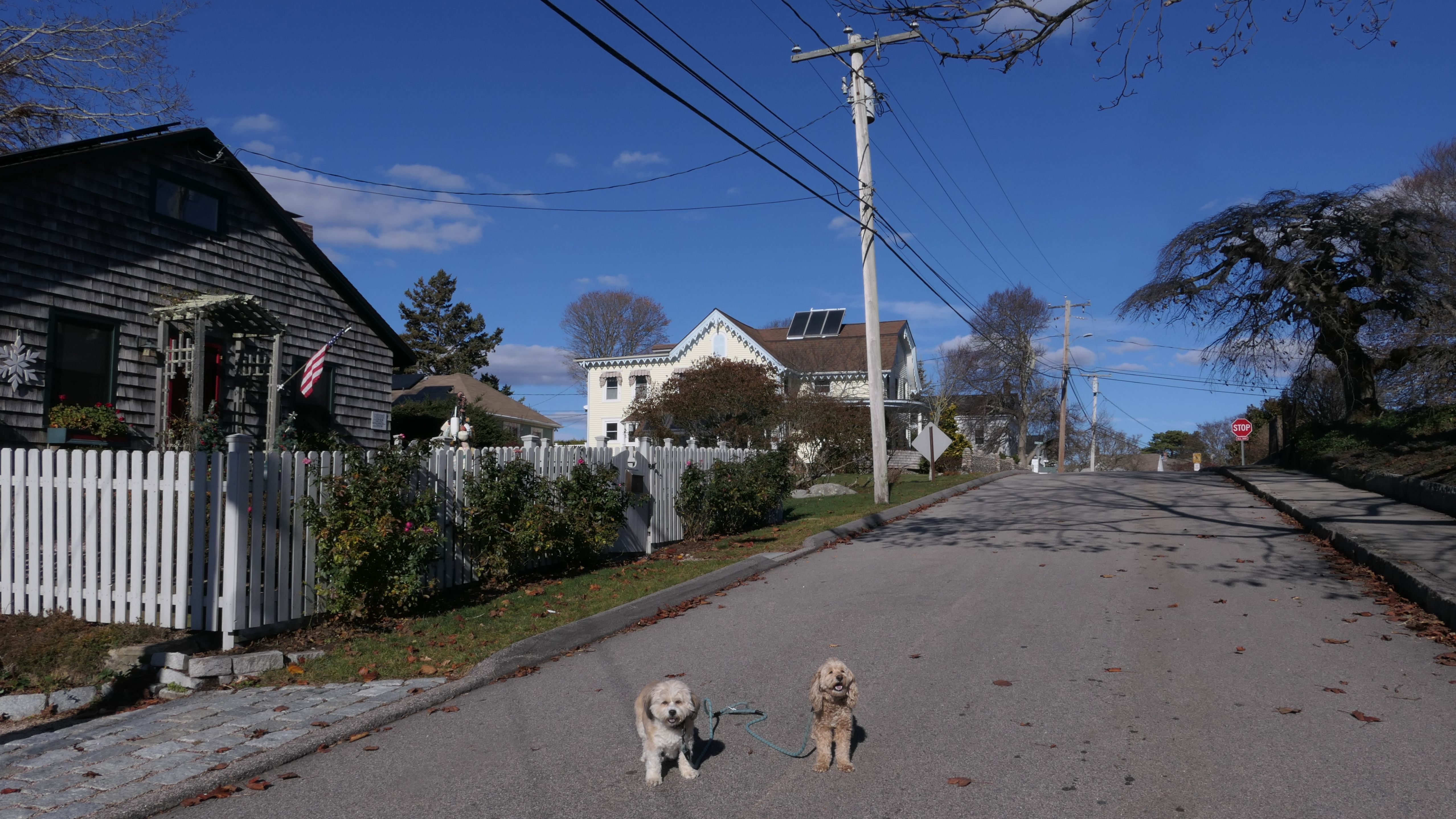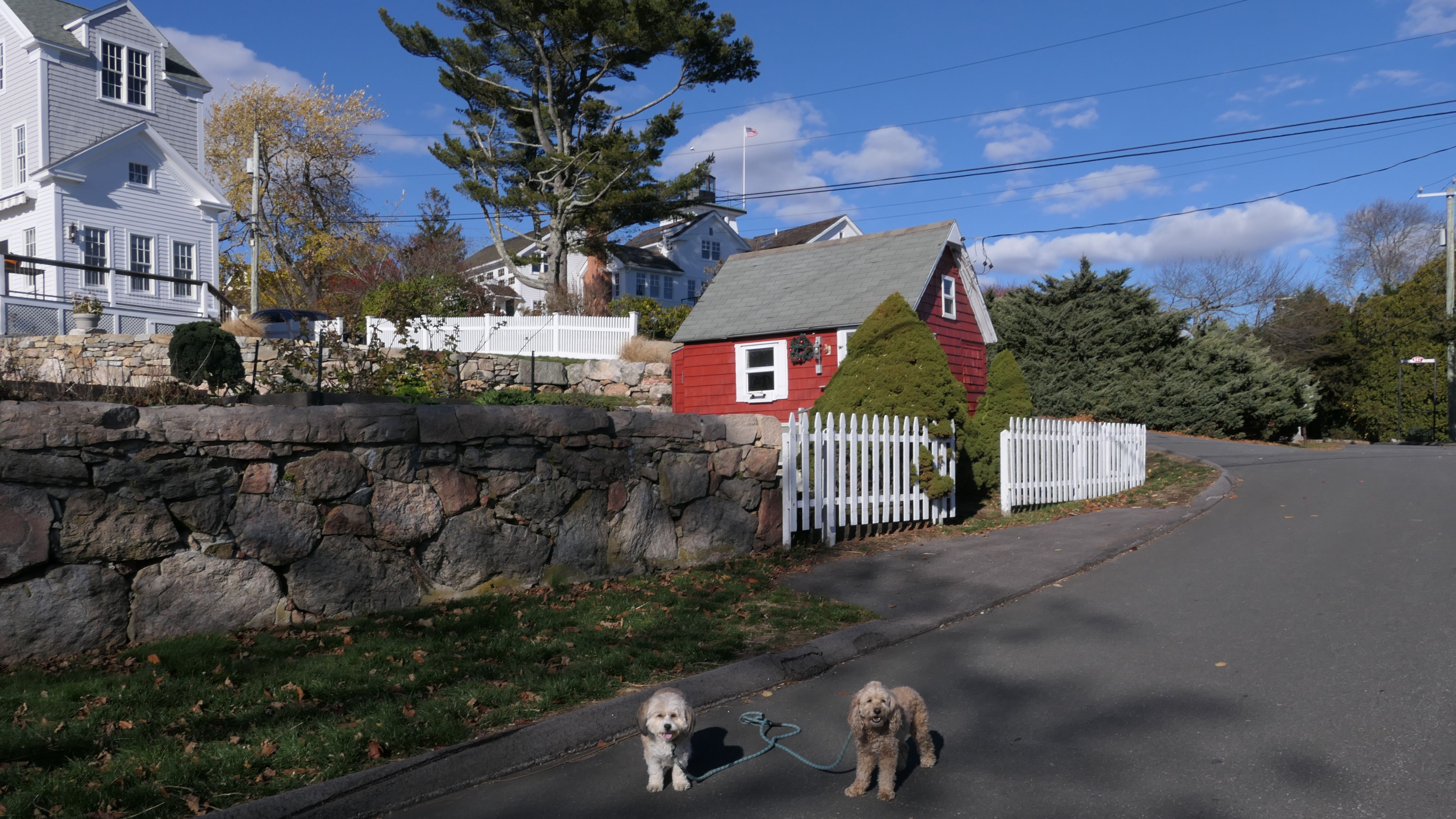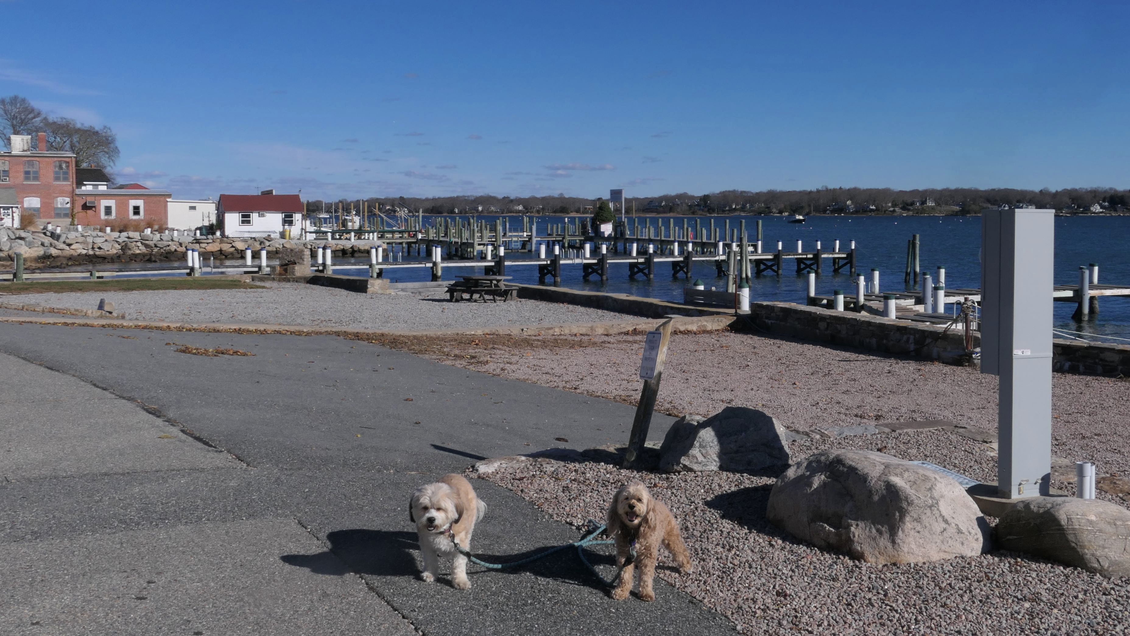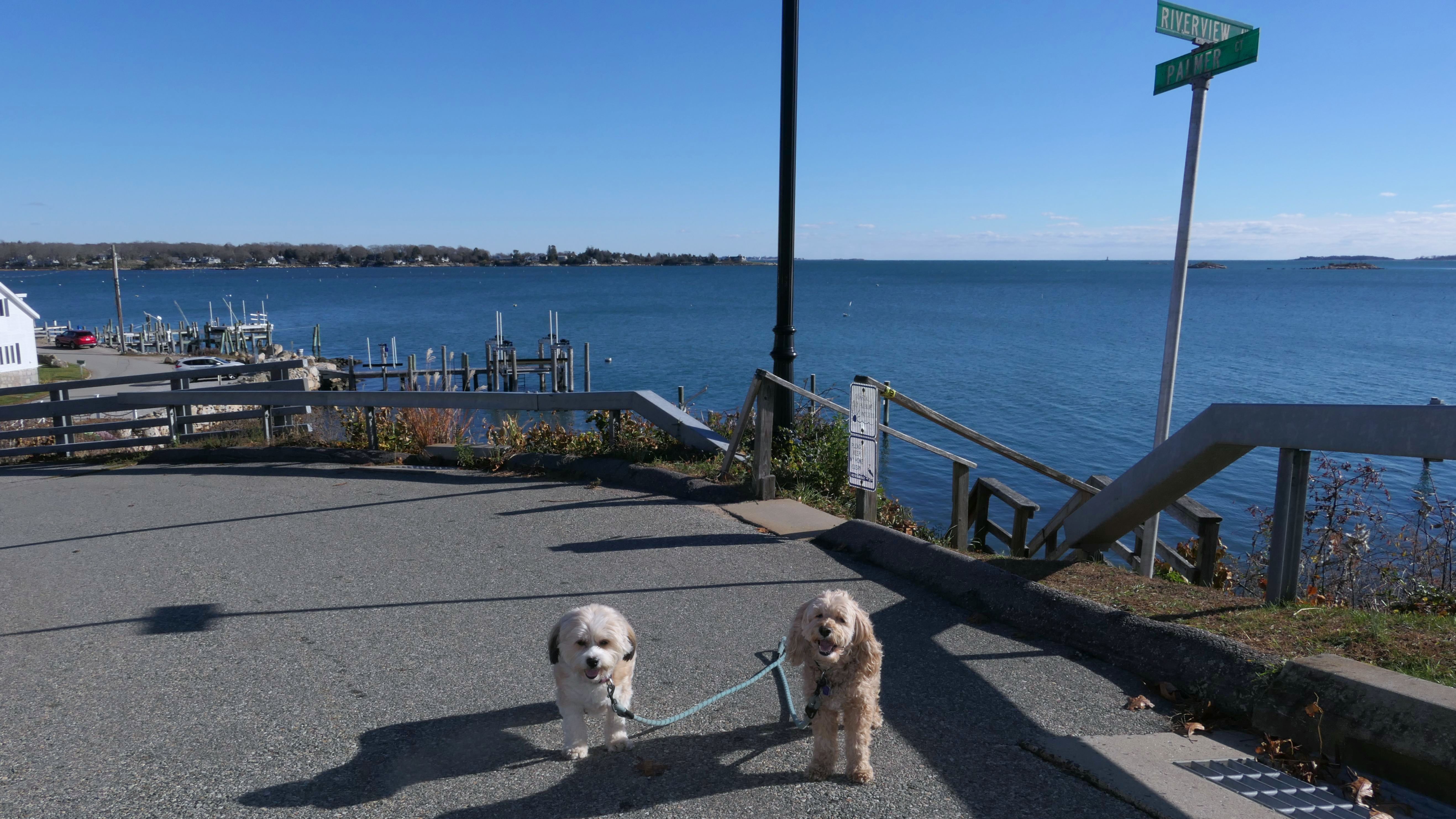 Our Thanksgiving morning adventure was a walk through the Noank section of Groton. We started at the Town Dock, and walked about four miles through a mostly residential neighborhood. There were a number of small parks and costal access points along the way. The access point at the corner of Riverview Avenue and Palmer Court features a wooden staircase that goes down to a small sandy beach area. I didn't see any "No Dogs" signs at any of the access points, so some of these spots could be good places for dogs to cool off in the summer. Unfortunately, there is very limited parking in the area. Toward the end of our walk we also visited Spicer Park. This was a very pleasant walk on a nice and sunny Thanksgiving morning.