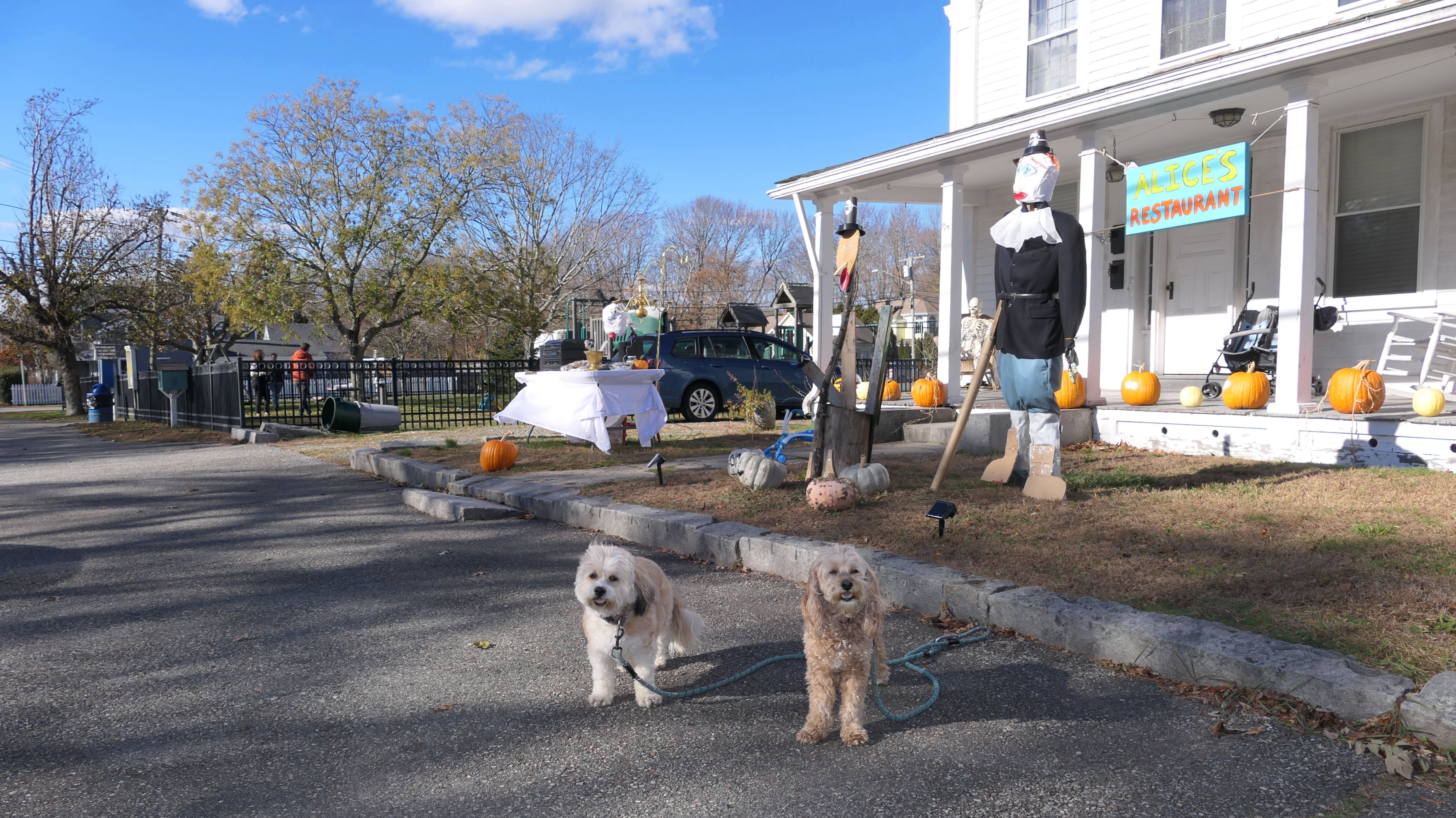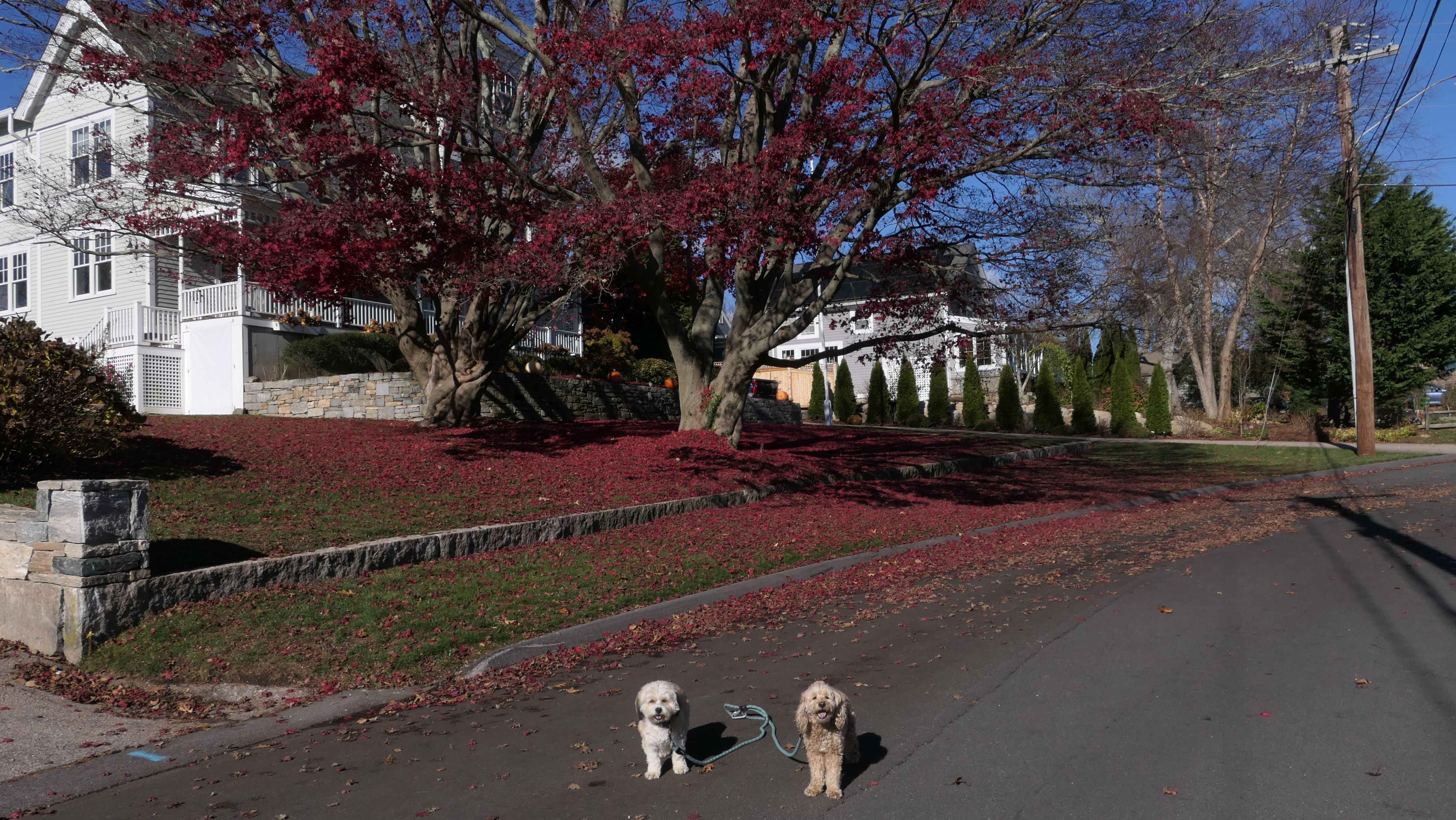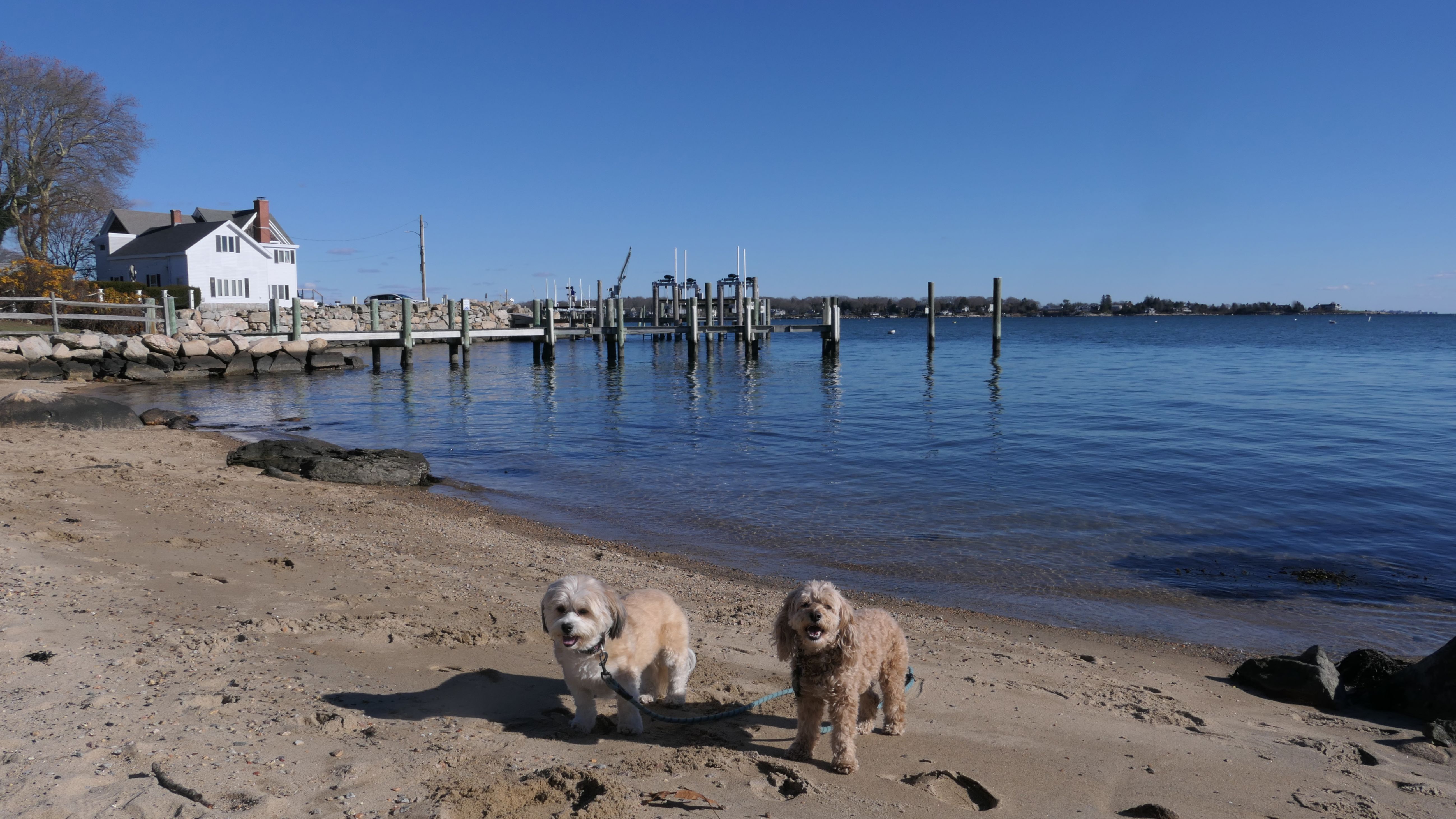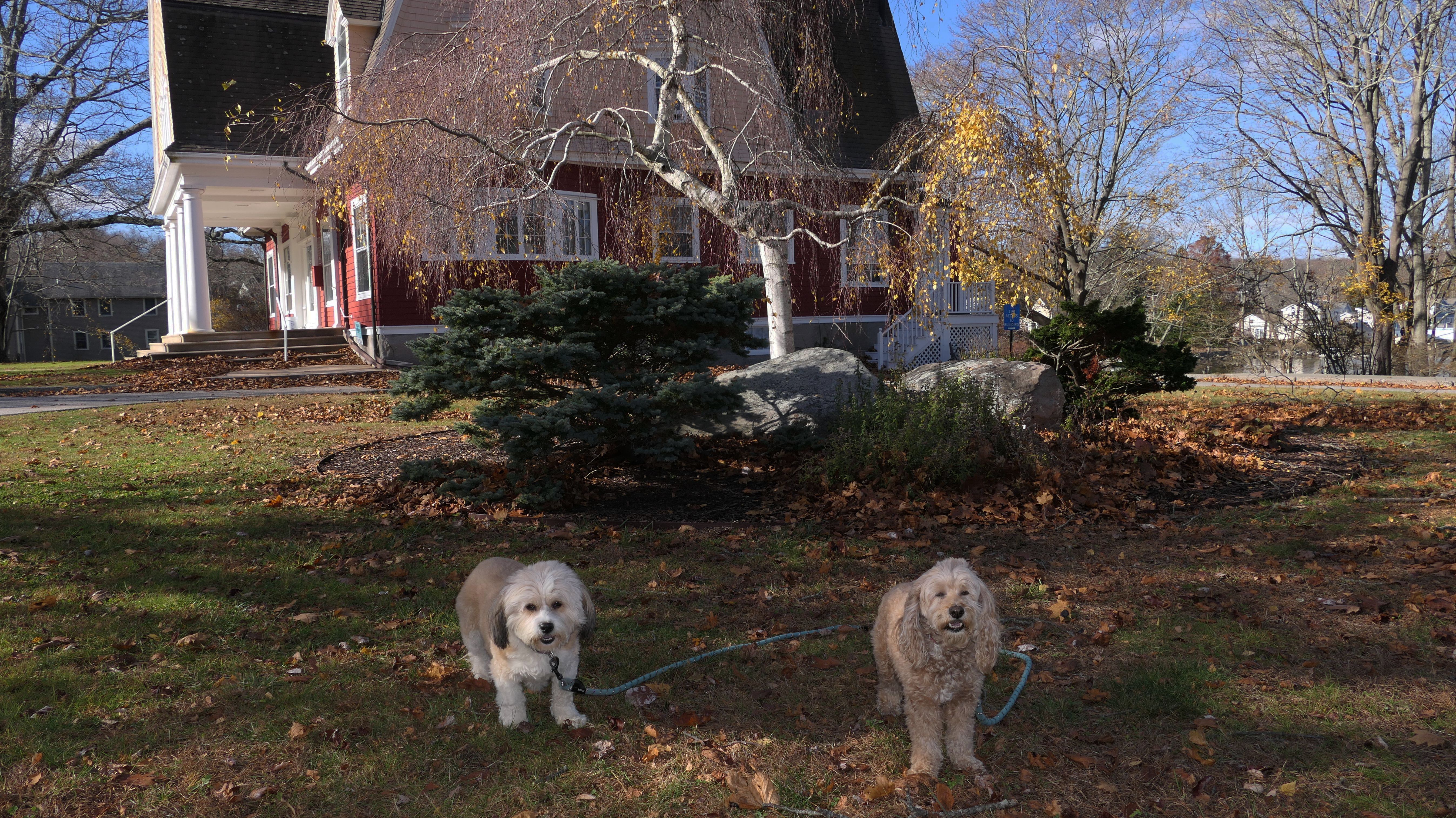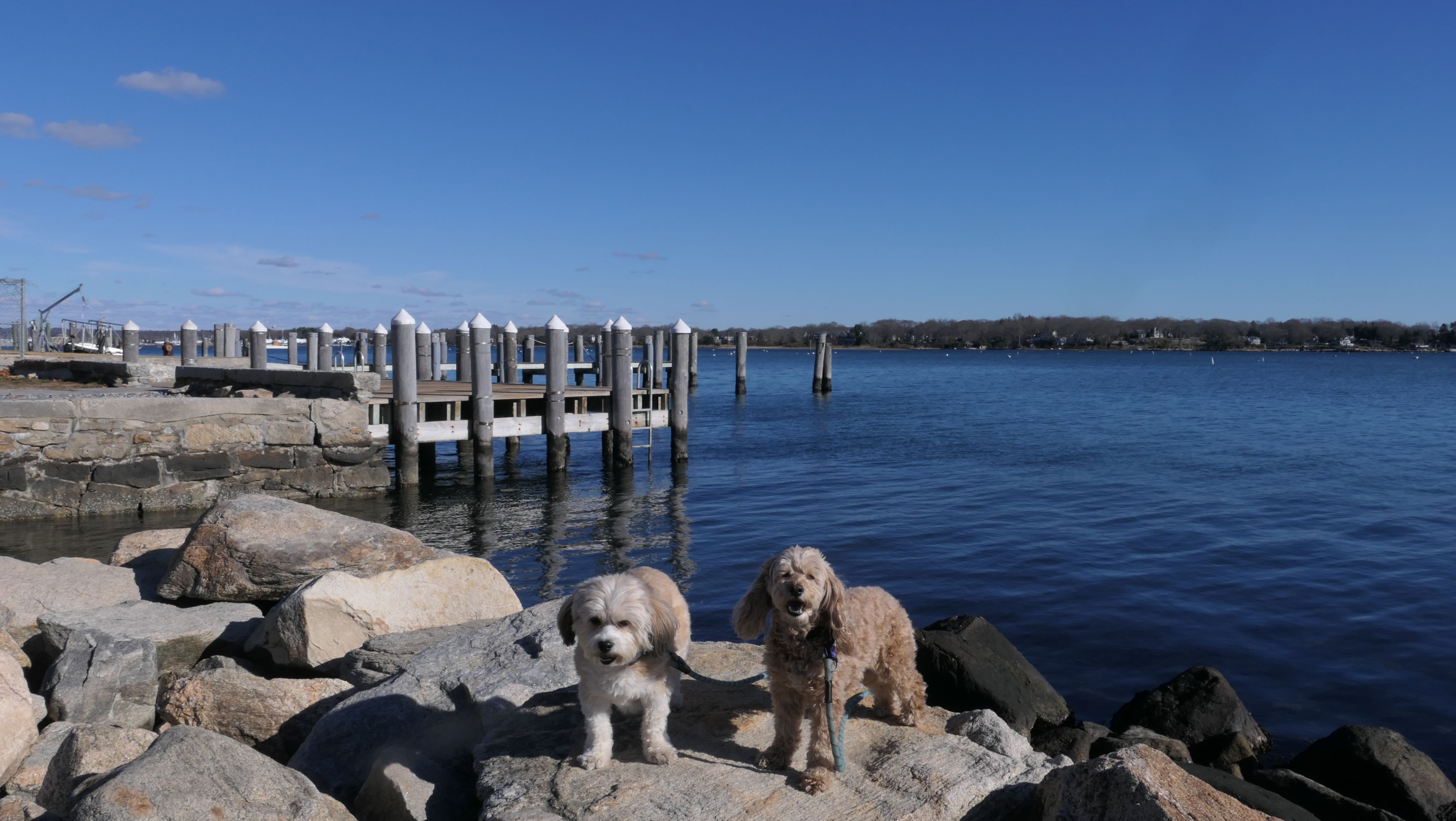 Our Thanksgiving morning adventure was a walk through the Noank section of Groton. We started at the Town Dock, and walked about four miles through a mostly residential neighborhood. There were a number of small parks and costal access points along the way. The access point at the corner of Riverview Avenue and Palmer Court features a wooden staircase that goes down to a small sandy beach area. I didn't see any "No Dogs" signs at any of the access points, so some of these spots could be good places for dogs to cool off in the summer. Unfortunately, there is very limited parking in the area. Toward the end of our walk we also visited Spicer Park. This was a very pleasant walk on a nice and sunny Thanksgiving morning.