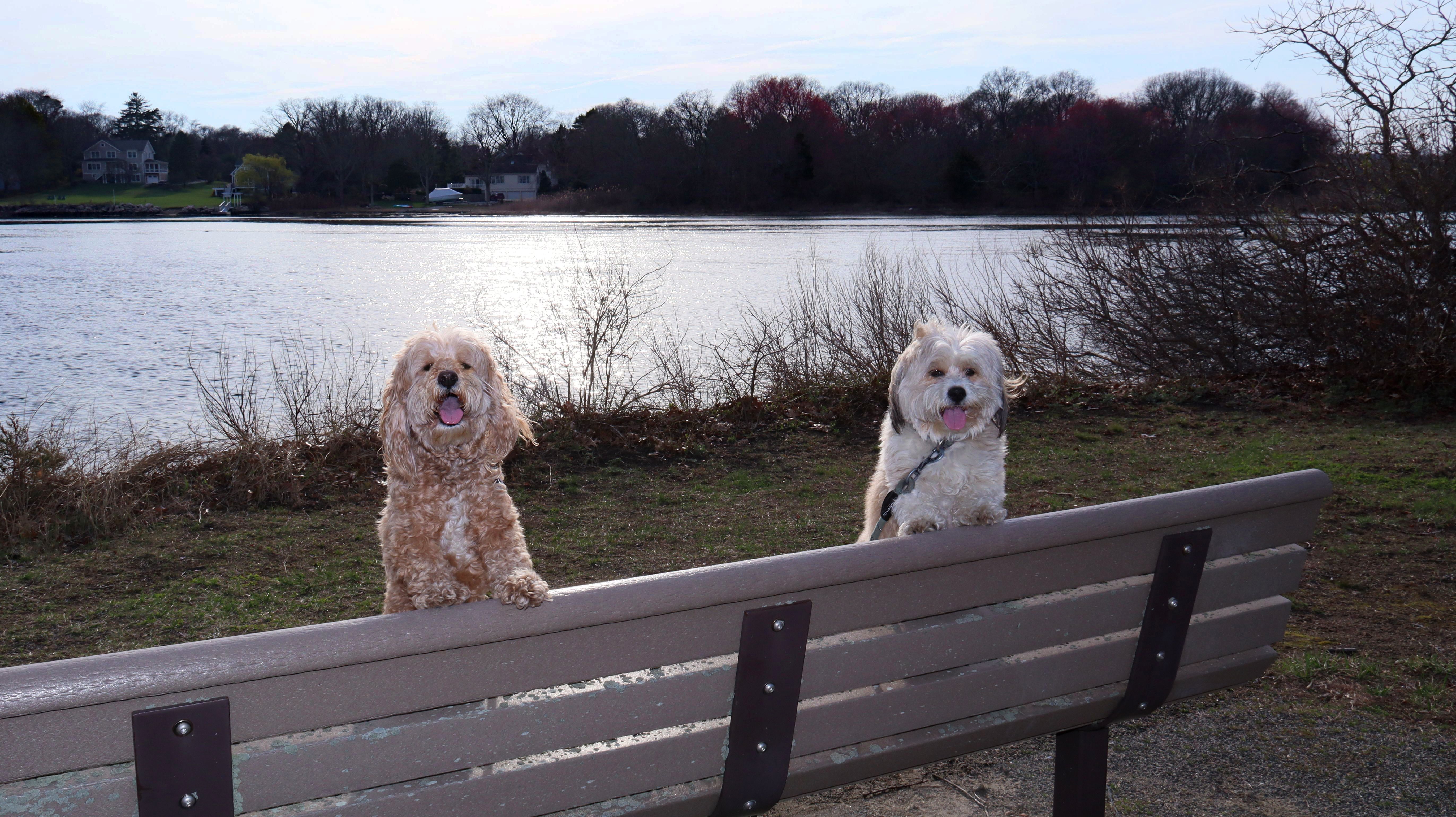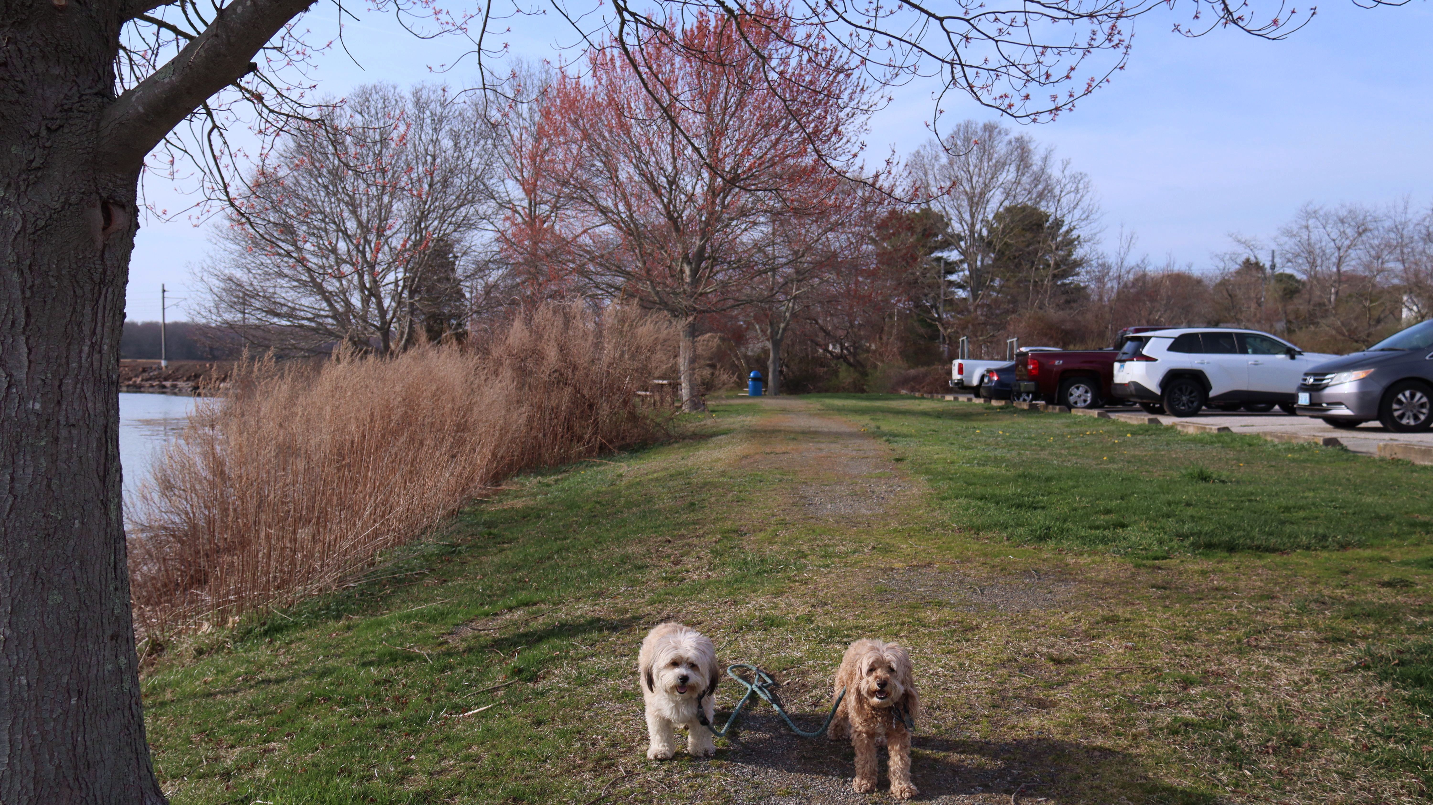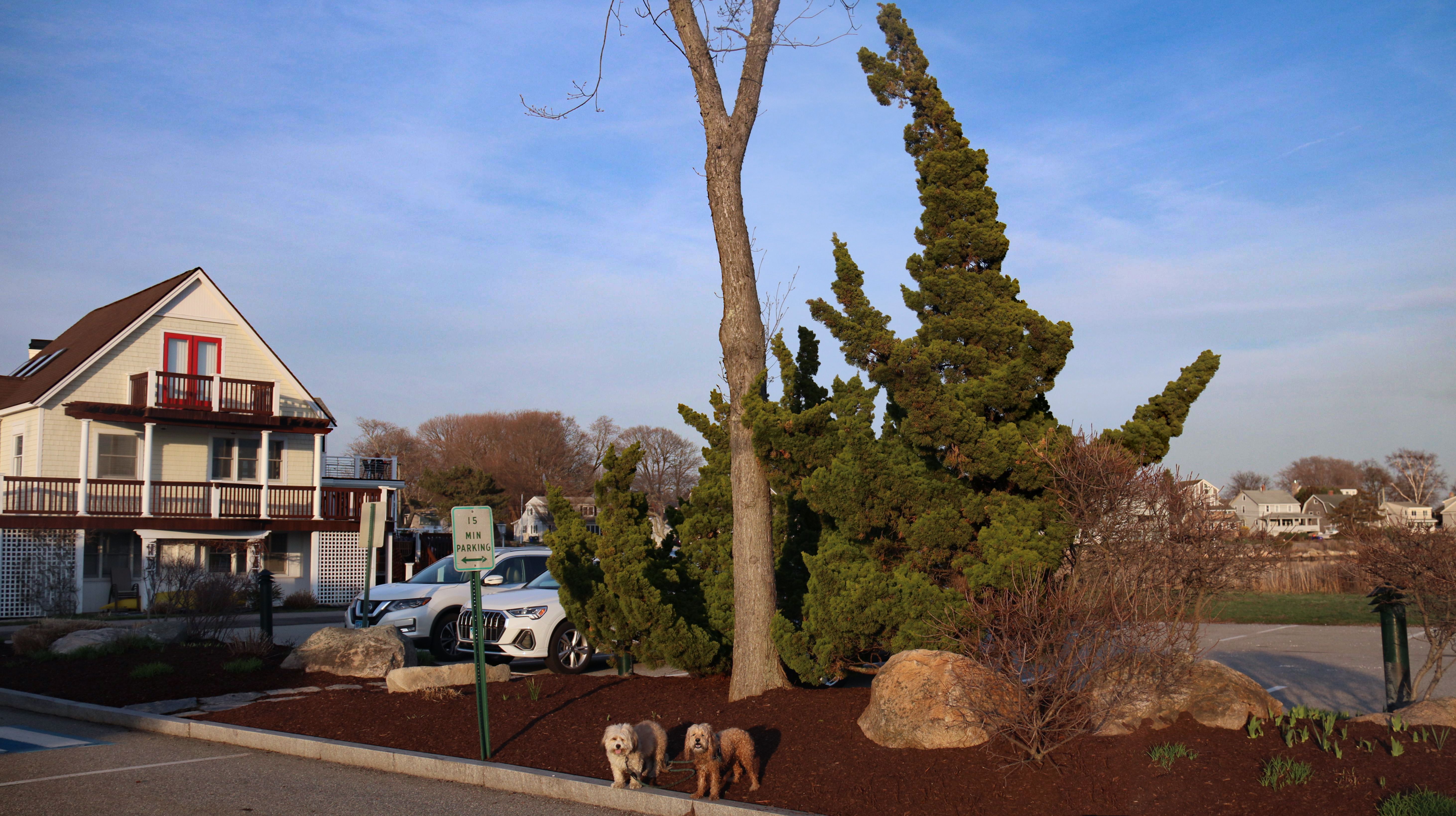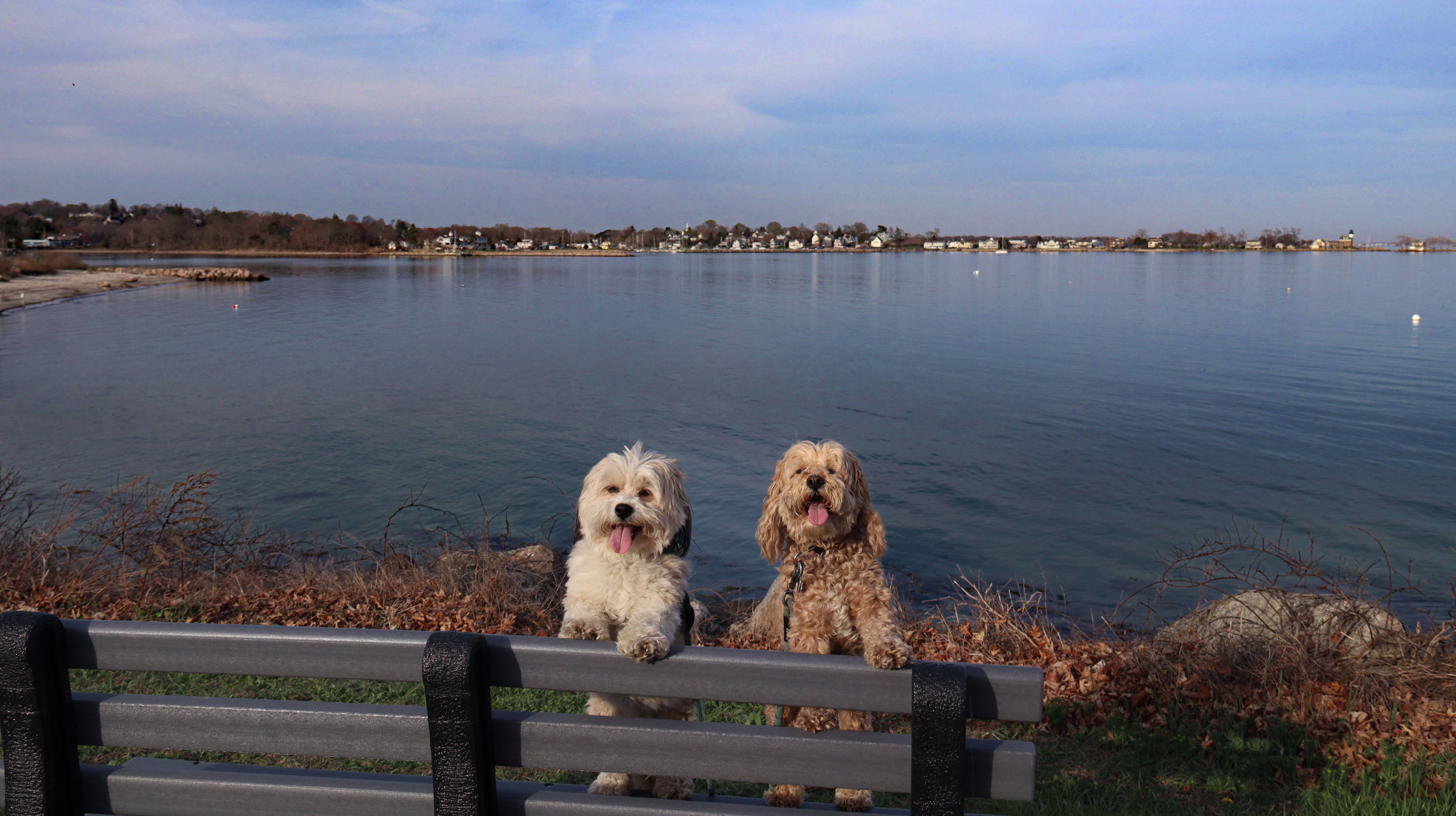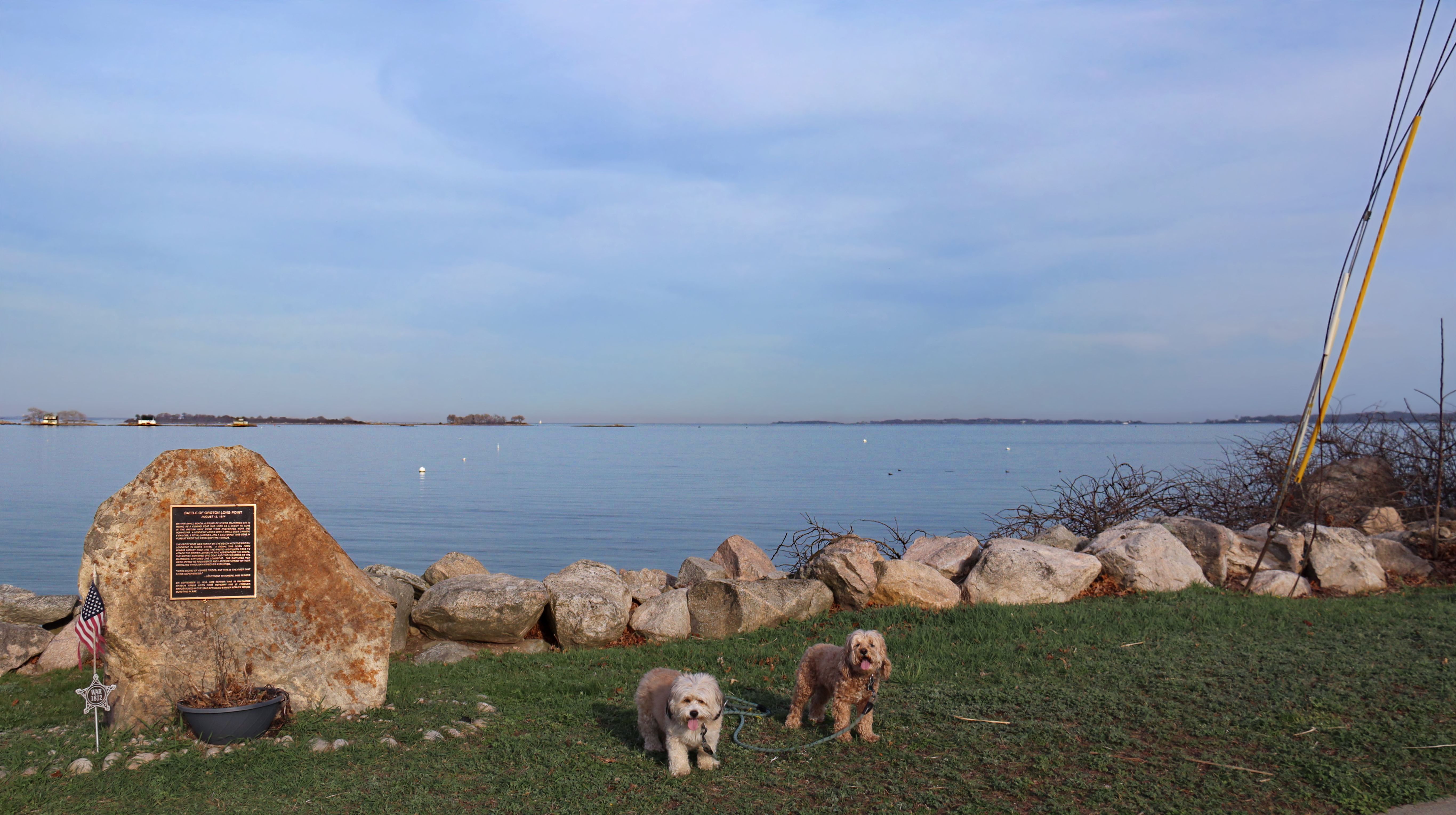 This is the park across the street from Esker Point Beach. There's a large parking lot that is also used for the beach. As of 2026, dogs are no longer allowed on the beach in the summer months (which start in April in Groton for some reason), but they are still allowed in the park. The park area is small, with a boat lunch and a picnic area. We took a few photos before heading down Groton Long Point Road and East Shore Road to visit the neighborhood of Groton Long Point.
