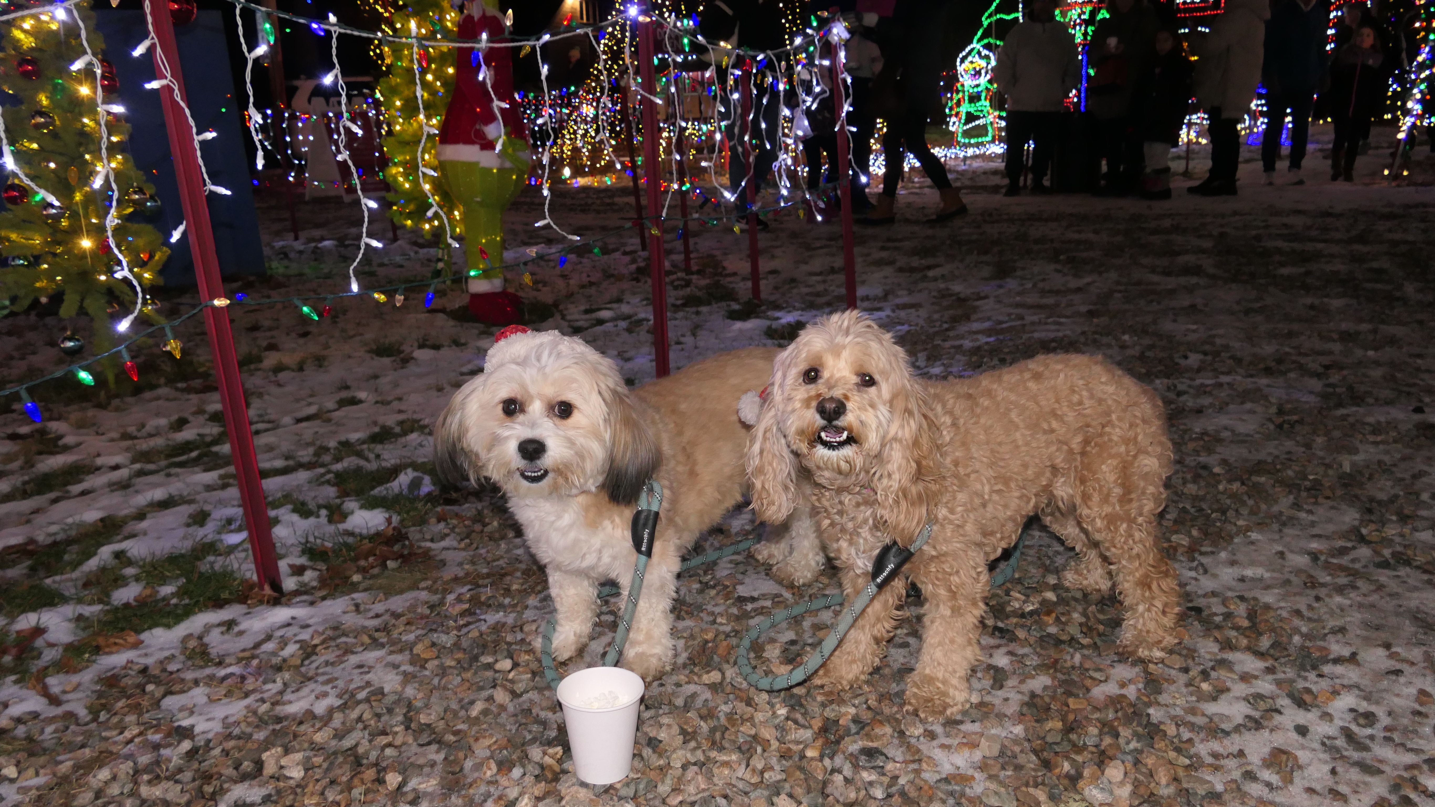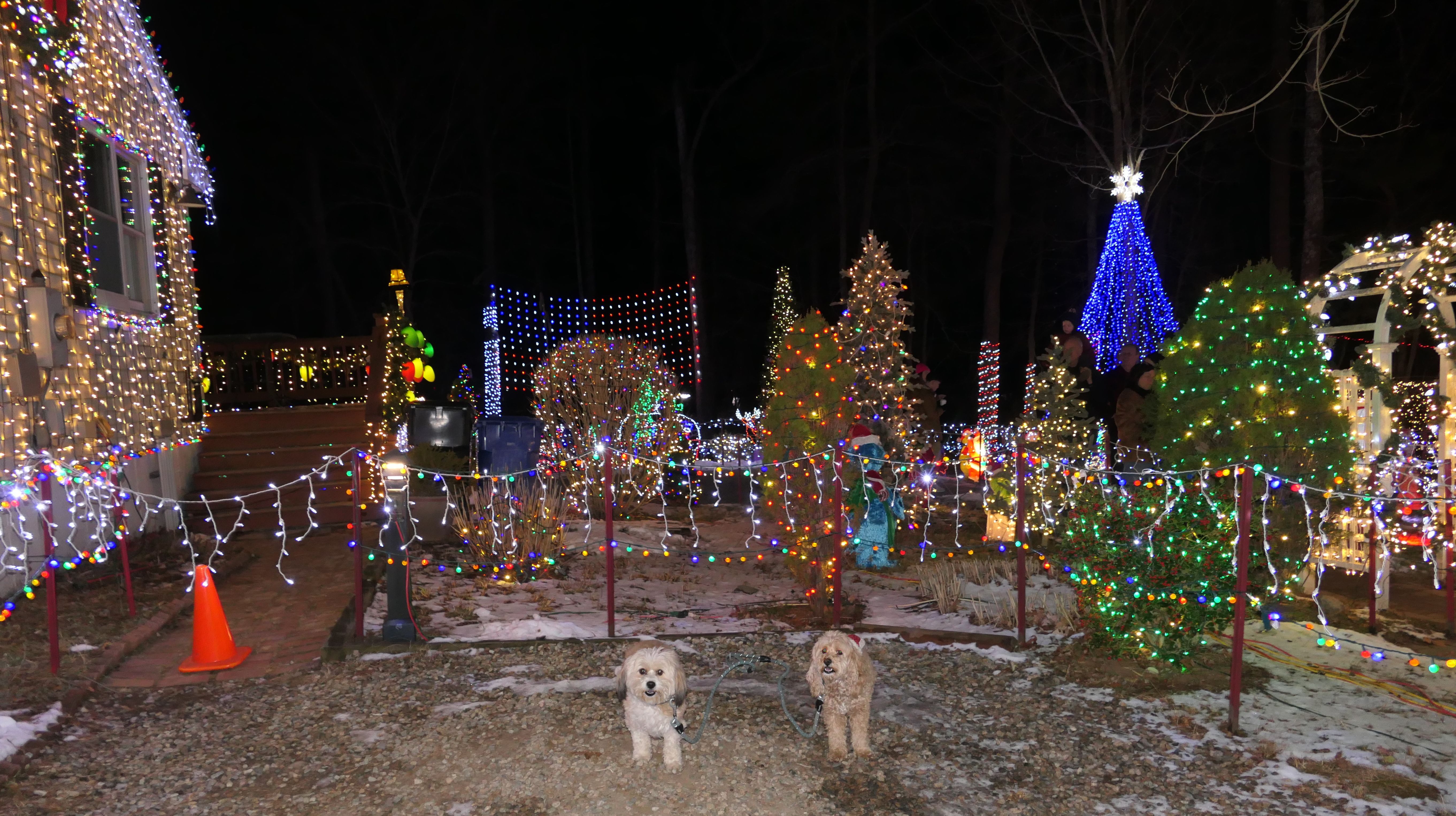 This is an impressive walk-through, dog-friendly light display in the Dayville section of Killingly. The display is open each night from 5PM to 9PM, Thanksgiving through New Years Day. There's a small stand that sells hot chocolate and snacks, as well as pup-cups for the dogs! As you can see, Mandy got her nose stuck in the pup-cup! This was a fun activity that got us out of the house after work, and we got some great holiday photos.