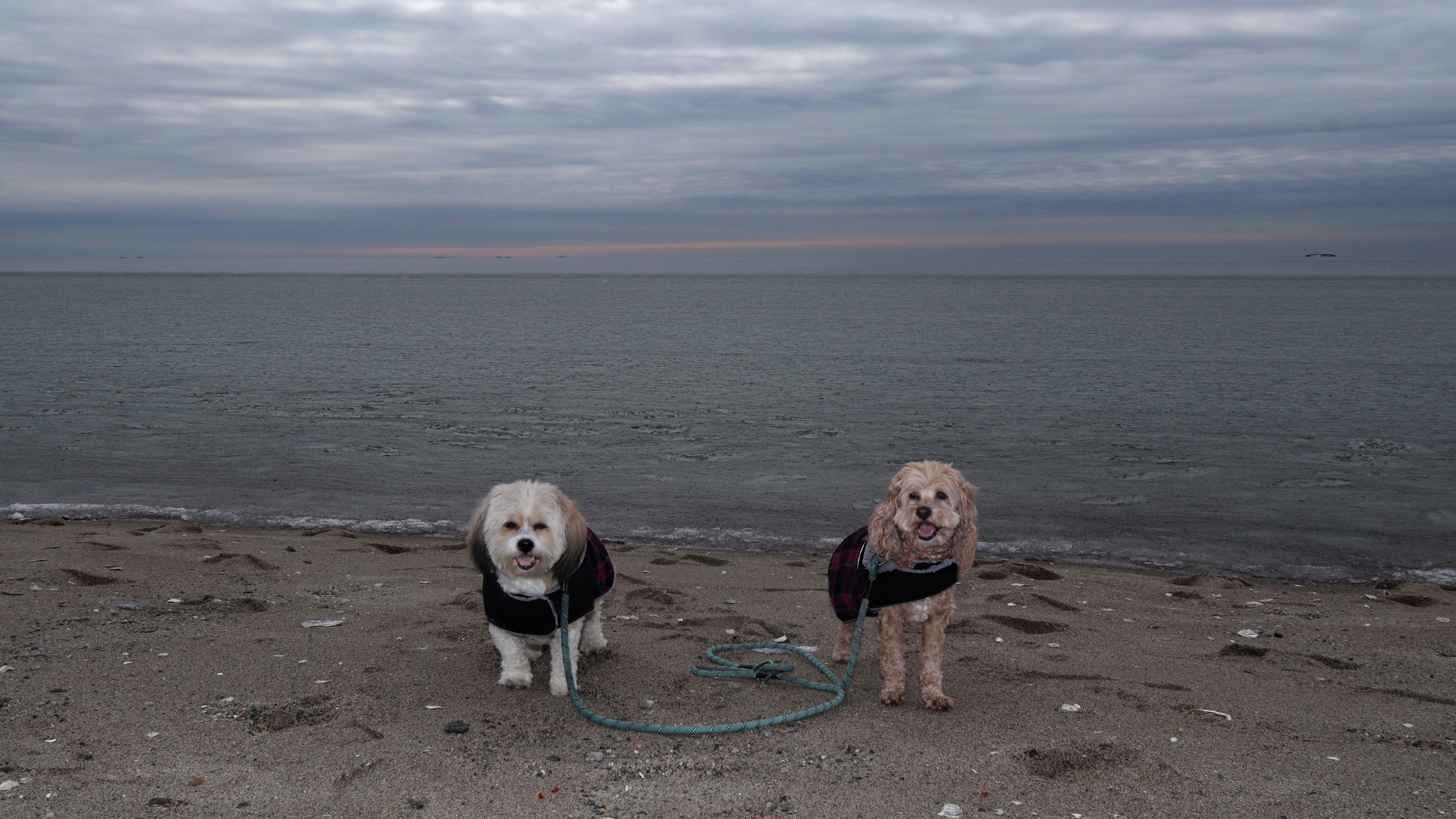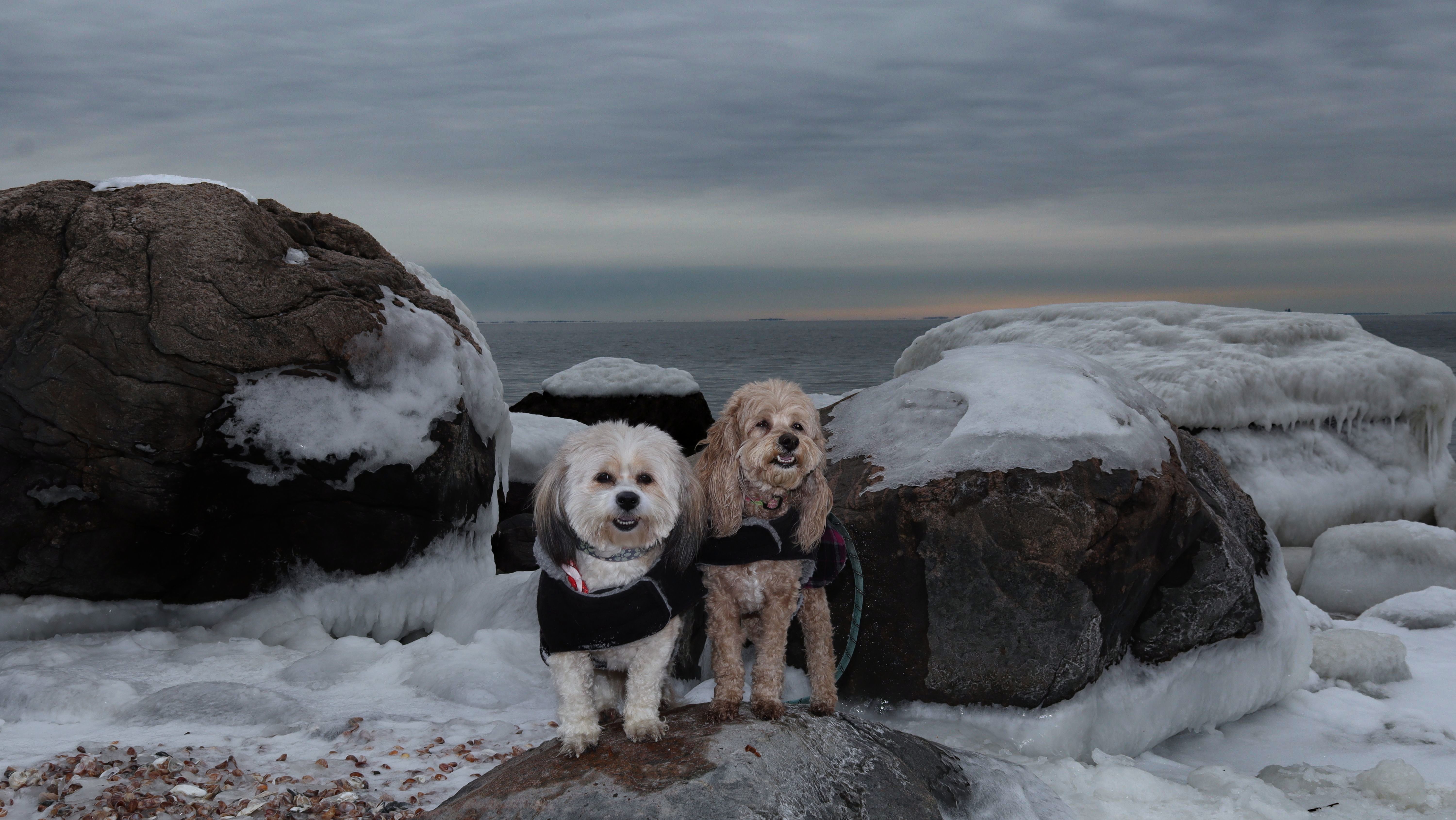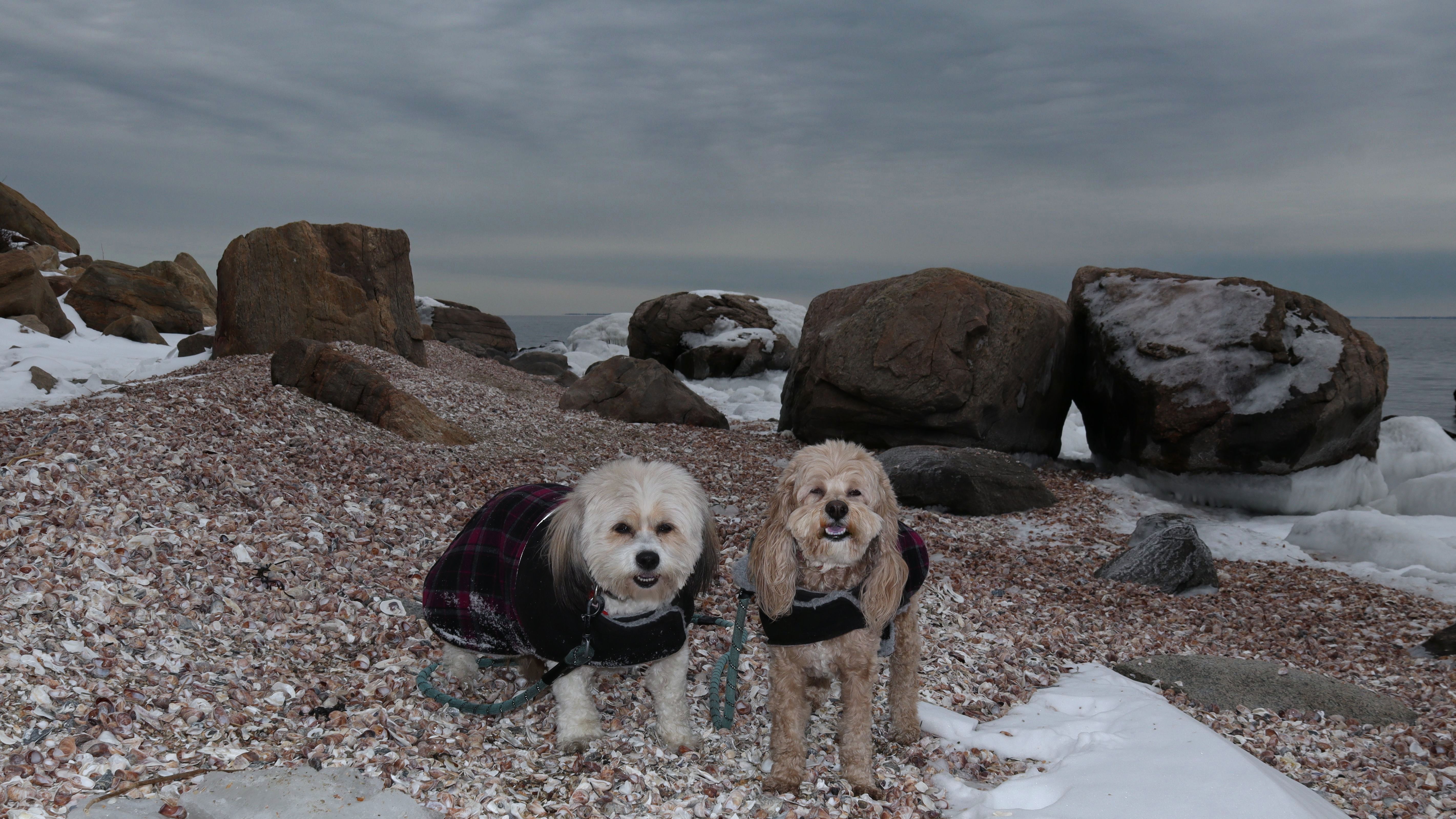 This was an unplanned adventure. We were actually heading to a beach in Rhode Island, but when we were about half way to our destination, I noticed the weather forecast changed, so we re-routed here where it was warmer and sunnier. There's a small parking area with space for about four cars near this rare Connecticut Shoreline Access Point. The actual access area is very small. There's a sidewalk along a seawall that runs down Middle Beach Road for a bit. After that, we walked about a mile down the road and back, passing East Wharf Beach along the way. Dogs are not allowed on town beaches in Madison, so we mostly stayed off the sand. Of course, I don't know why anyone would care since it's the end of December. We passed a lot of private beaches. Unlike Rhode Island, most of Connecticut's shoreline is off-limits to the public. It's a shame there isn't more public access.