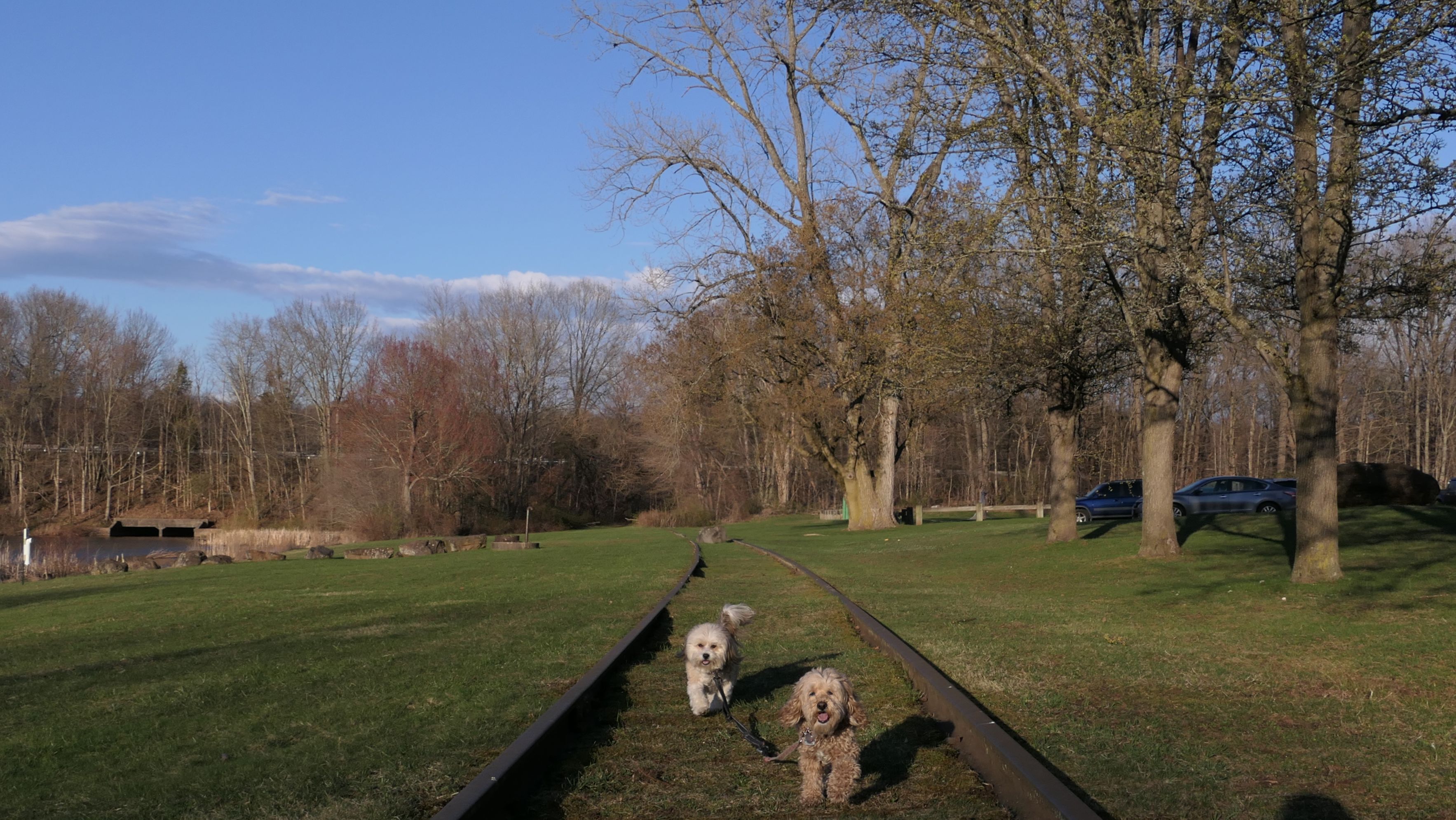 This is the second of two un-planned stops in Meriden. We came here after visiting Washington Park. This is another small park, with a playground, athletic fields, and access to a pond. There's an old set of train tracks that run through the park. The tracks head under the Wilbur Cross Parkway. There is a short path that kind of goes nowhere. The tracks cross a stream, but as you can see in the photo, it's not possible to cross the stream using them. We walked about a half mile here, before calling it a day.