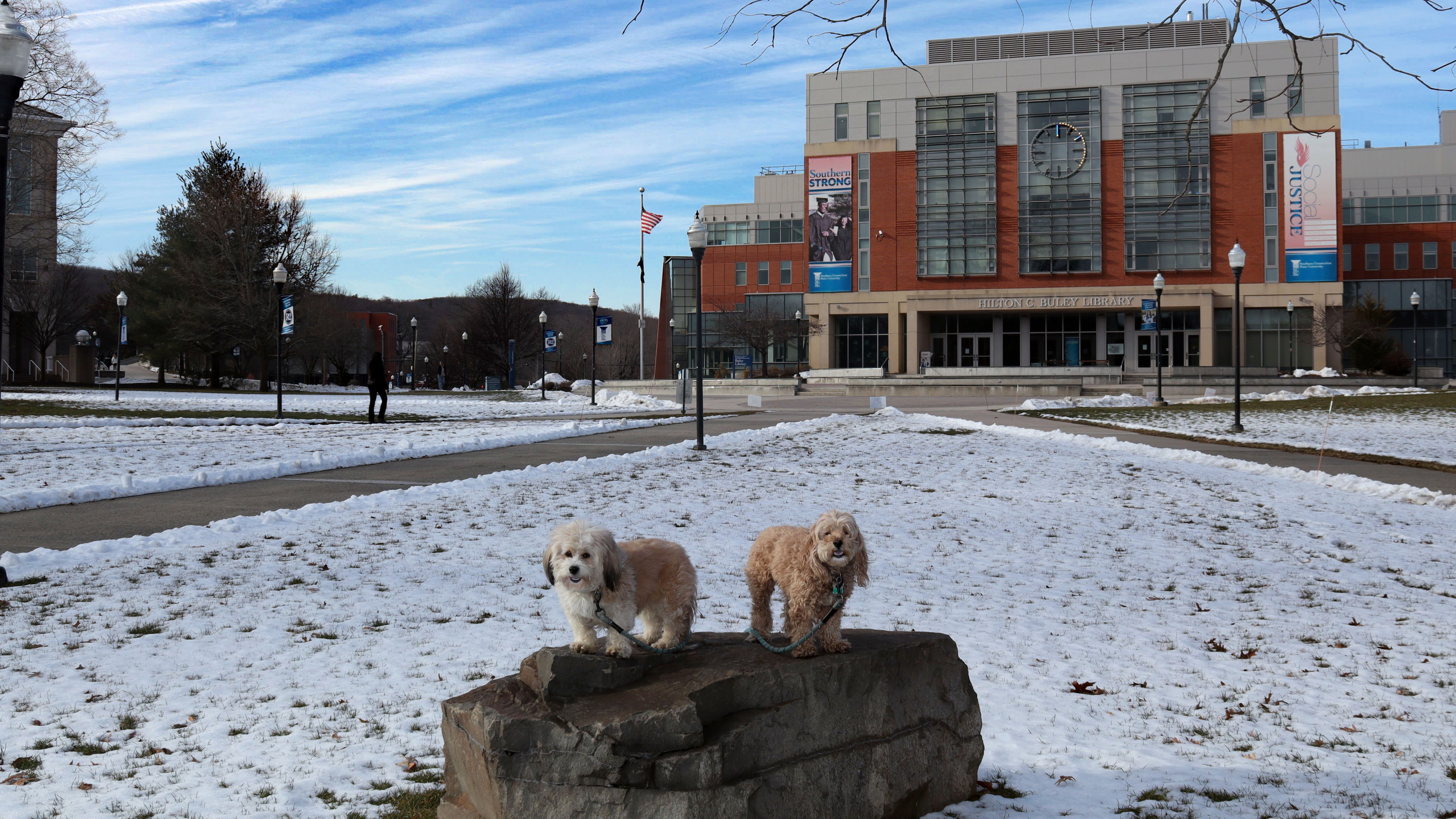We had one more day before the bitter cold and snowmageddon arrives, so we headed to this campus for one more adventure. This is a public, state school, similar to the one we visited the day before. It was about ten degrees cooler today, but still in the mid-30's which isn't too bad for a winter walk. We explored most of the campus. A small section of the campus crosses the town line into Hamden. Combined with Beaver Pond Park, we had a good four mile walk before winter unleashes all it's fury!