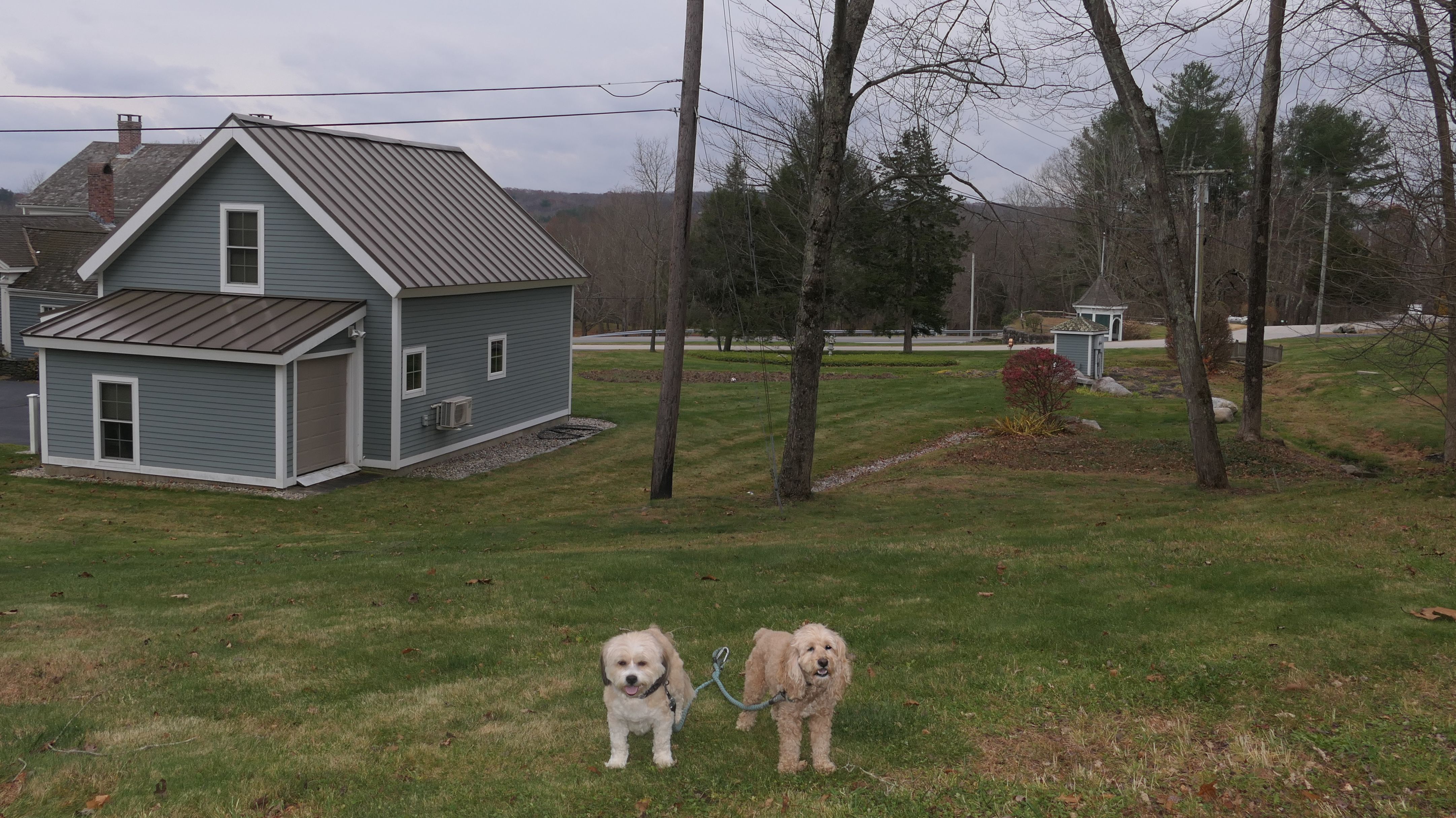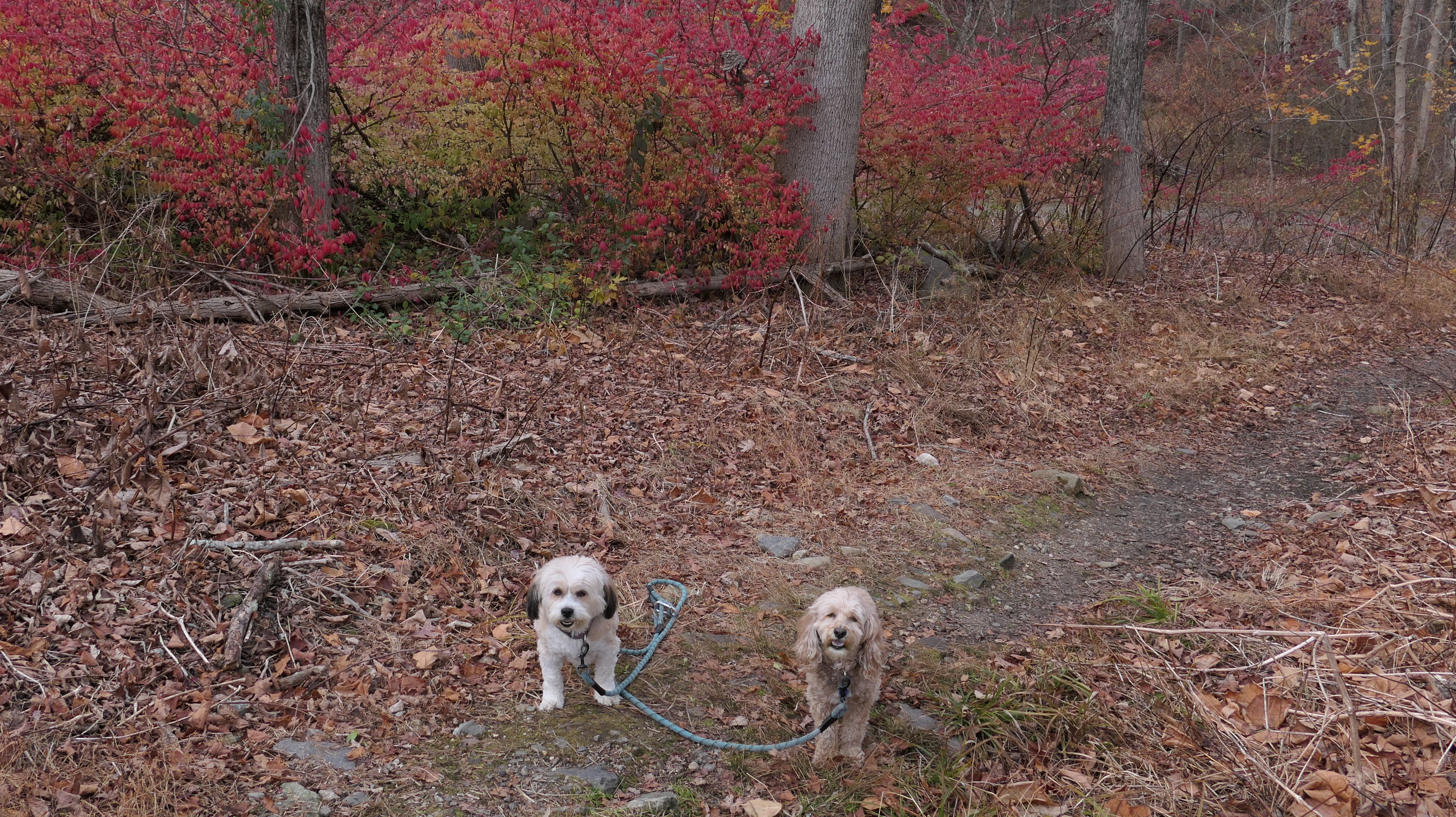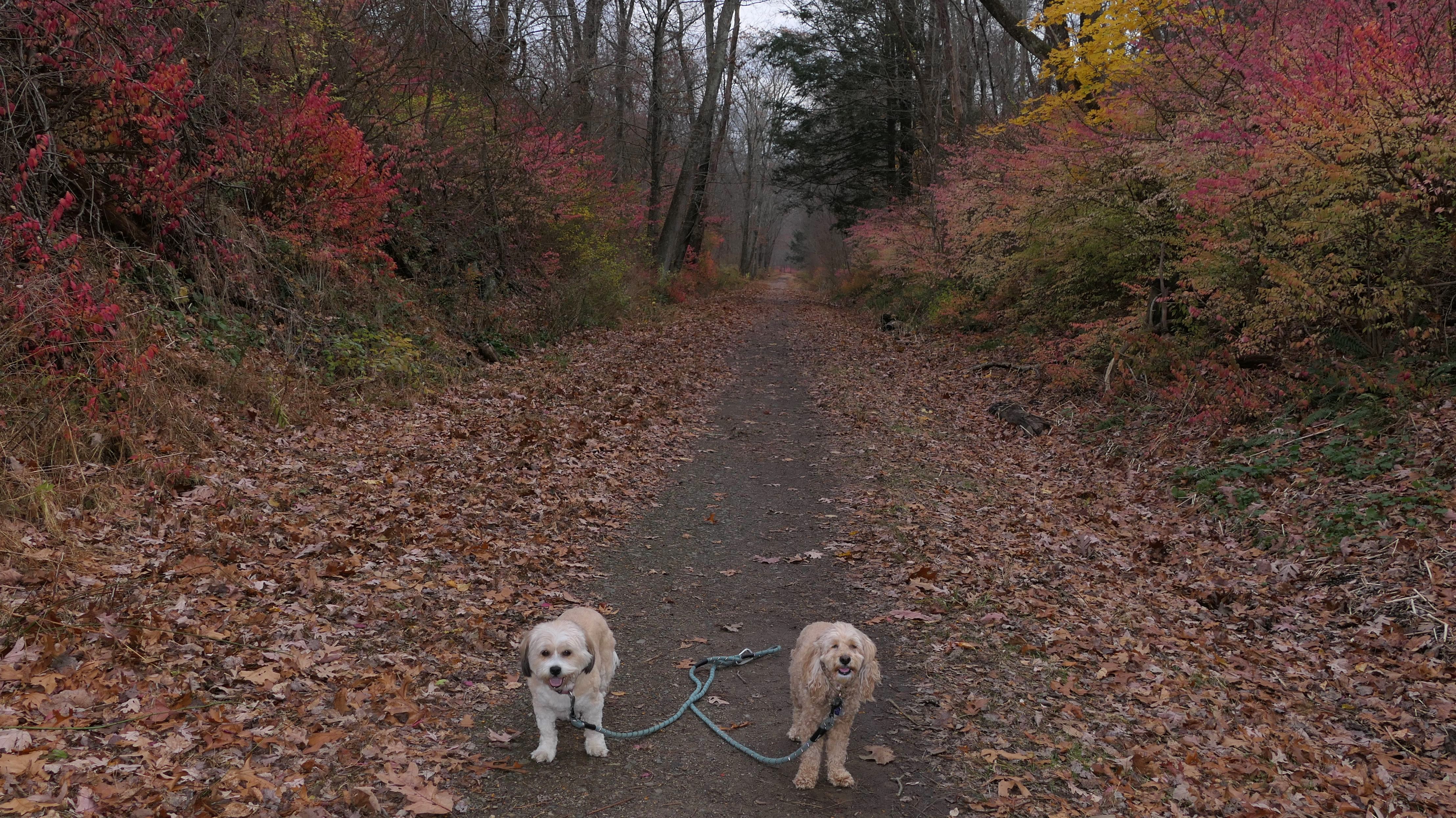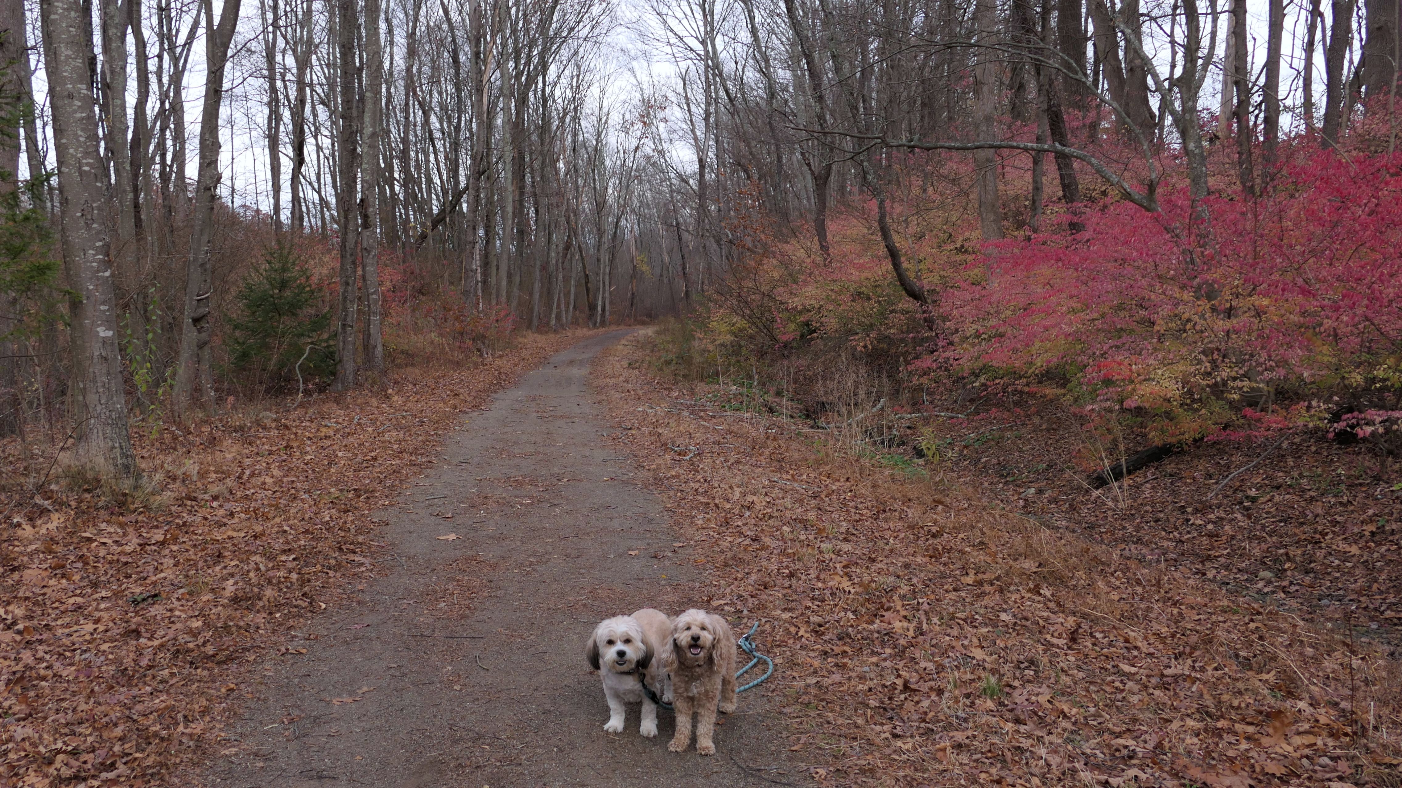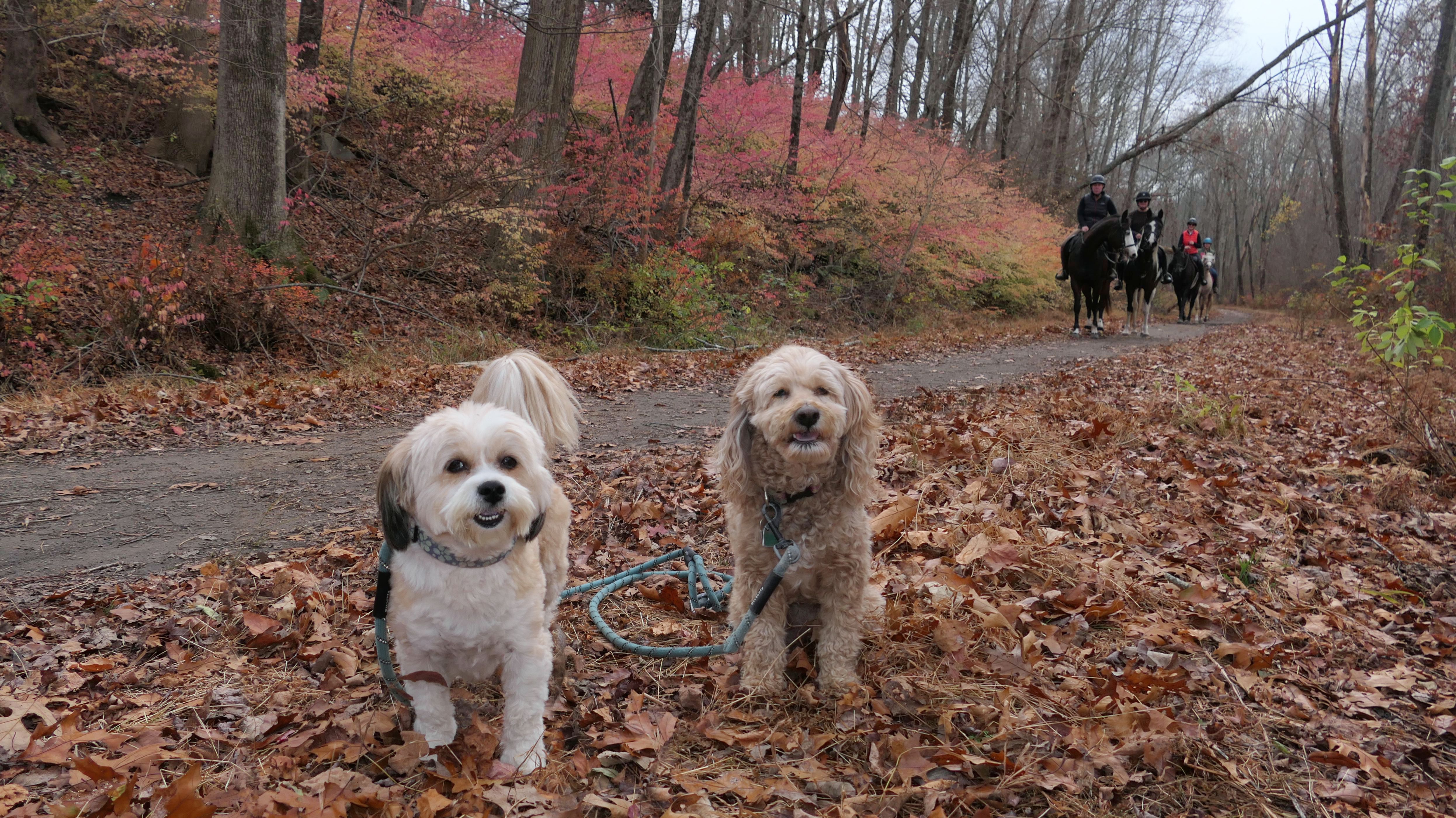 I decided to re-visit the Air Line Trail, the longest multi-town, multi-use trail in Connecticut. We've walked bits and pieces of it in the past, but still have a ways to go to complete the entire trail. This is a 2.5 mile section from the Pomfret Town Hall to the old Pomfret Station. We actually attempted this section once before, but it was too muddy that time, and we turned around after a half mile. It was pretty dry for this walk, but there was one muddy spot near Pomfret Station that I had to carry the dogs over. This trail is not that exciting, but the photo with the horses is pretty cool, and there was an interesting art installation at the Pomfret Station trail head. The weather was dreary and we completed our five mile out and back walk just before it started to rain.