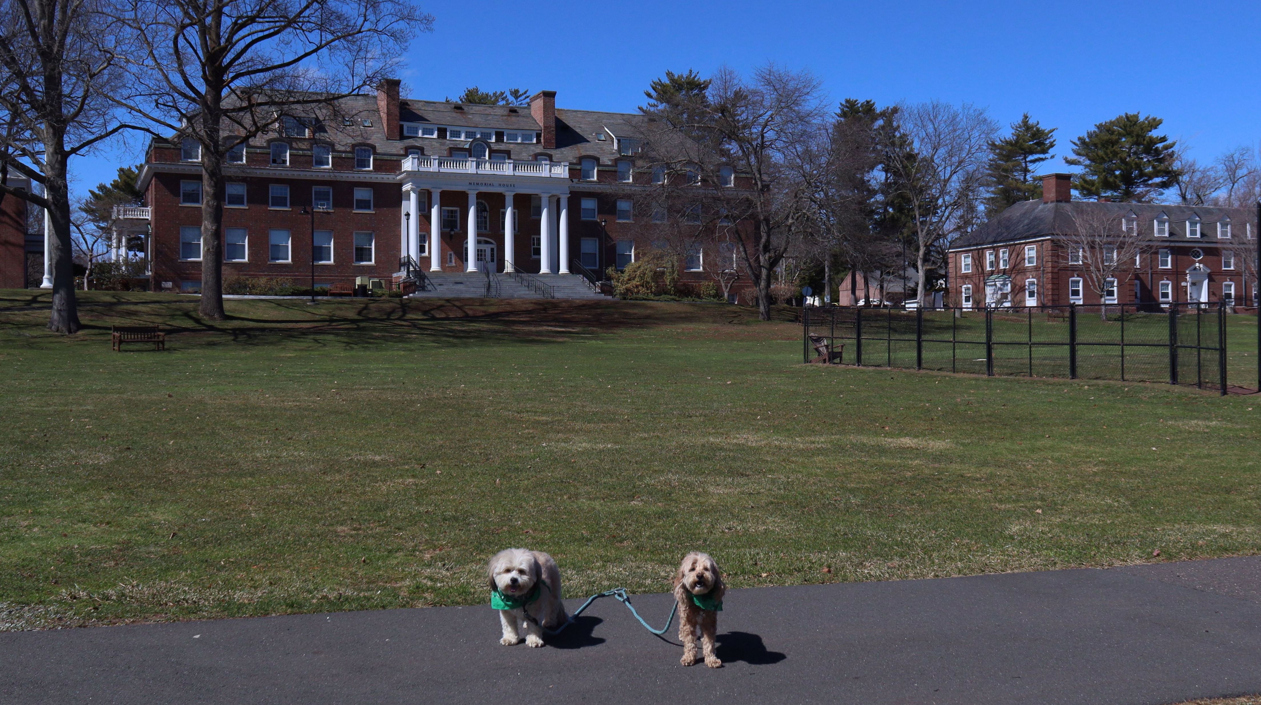 This is a college-prep boarding school with a beautiful campus. It must have been spring break, because there was no signs of students anywhere. It was deserted, other than a few other dog walkers. The campus is pretty large, combined with nearby Doolittle Park, we walked almost five miles on a sunny and brisk day. See if you can spot the photobomb in one of the pictures below.
