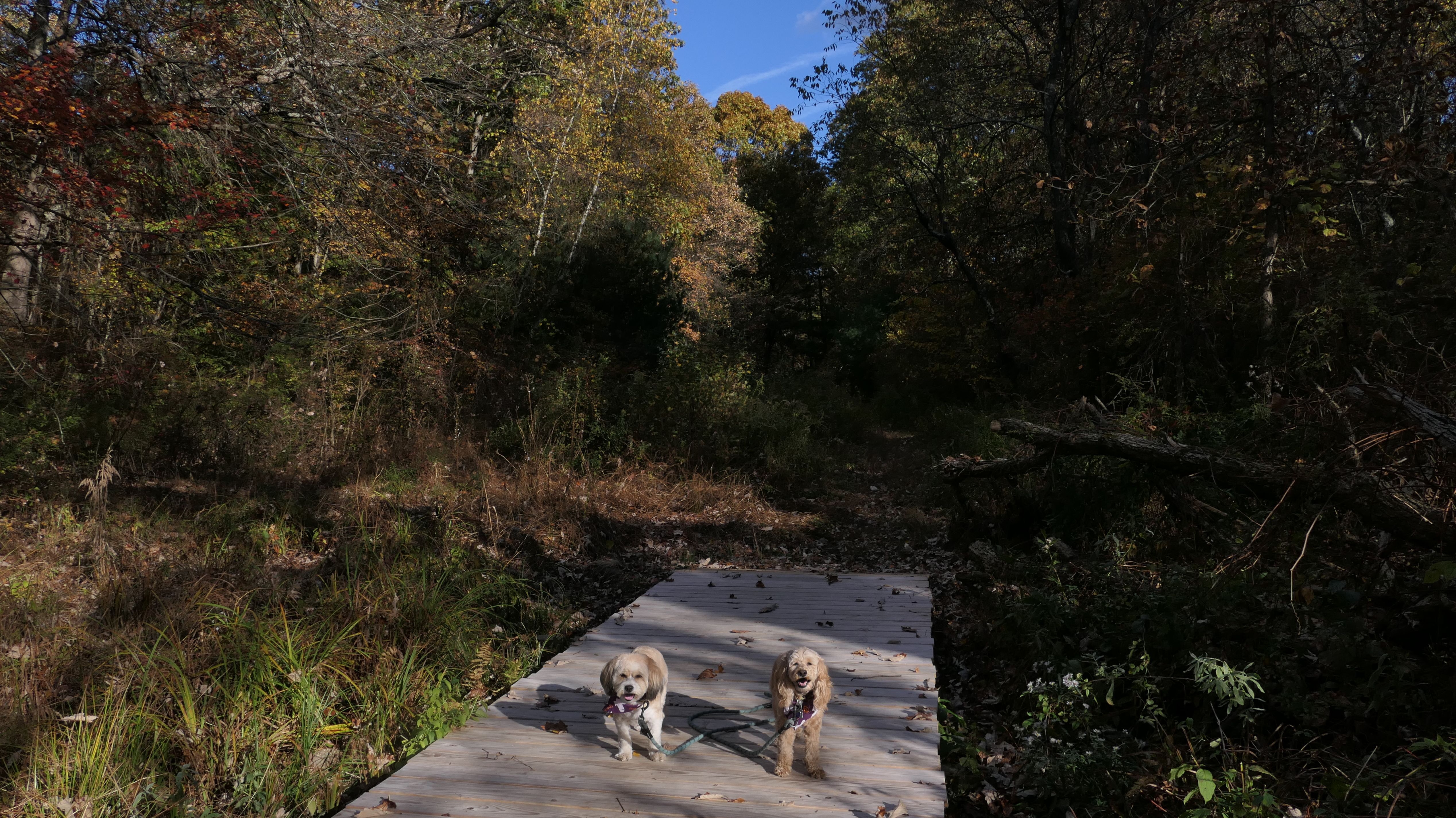 e walked the one-mile loop at Newman-Poses Preserve in Westport with Mandy and Lexi. The trail is easy and well-marked, with wooden planks over some wet areas and a small stream running through part of it. The fall color was getting close to peak and added some nice scenery along the way. Nothing too exciting, but it was a peaceful walk and a good way for all of us to get a few extra steps in.