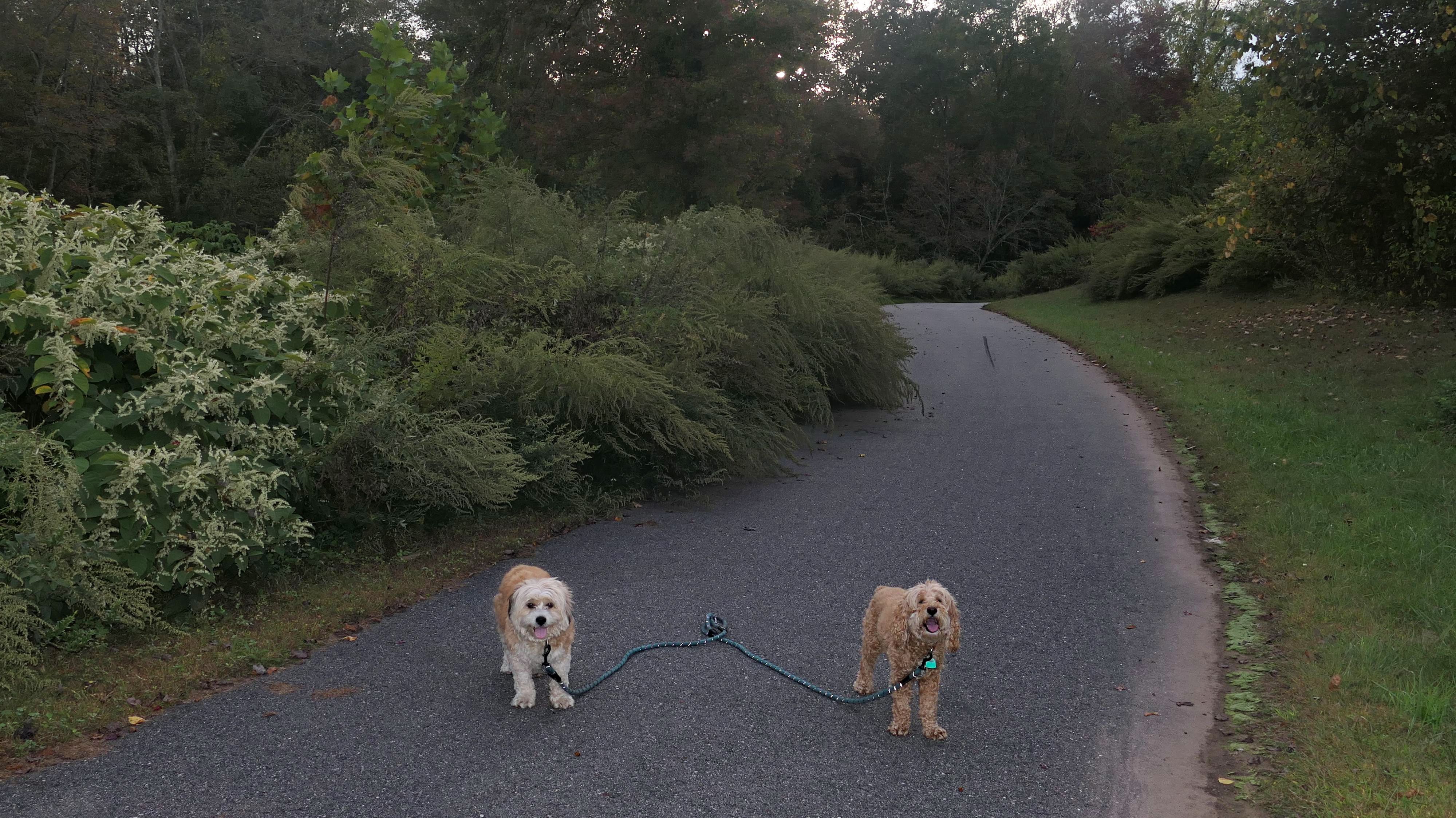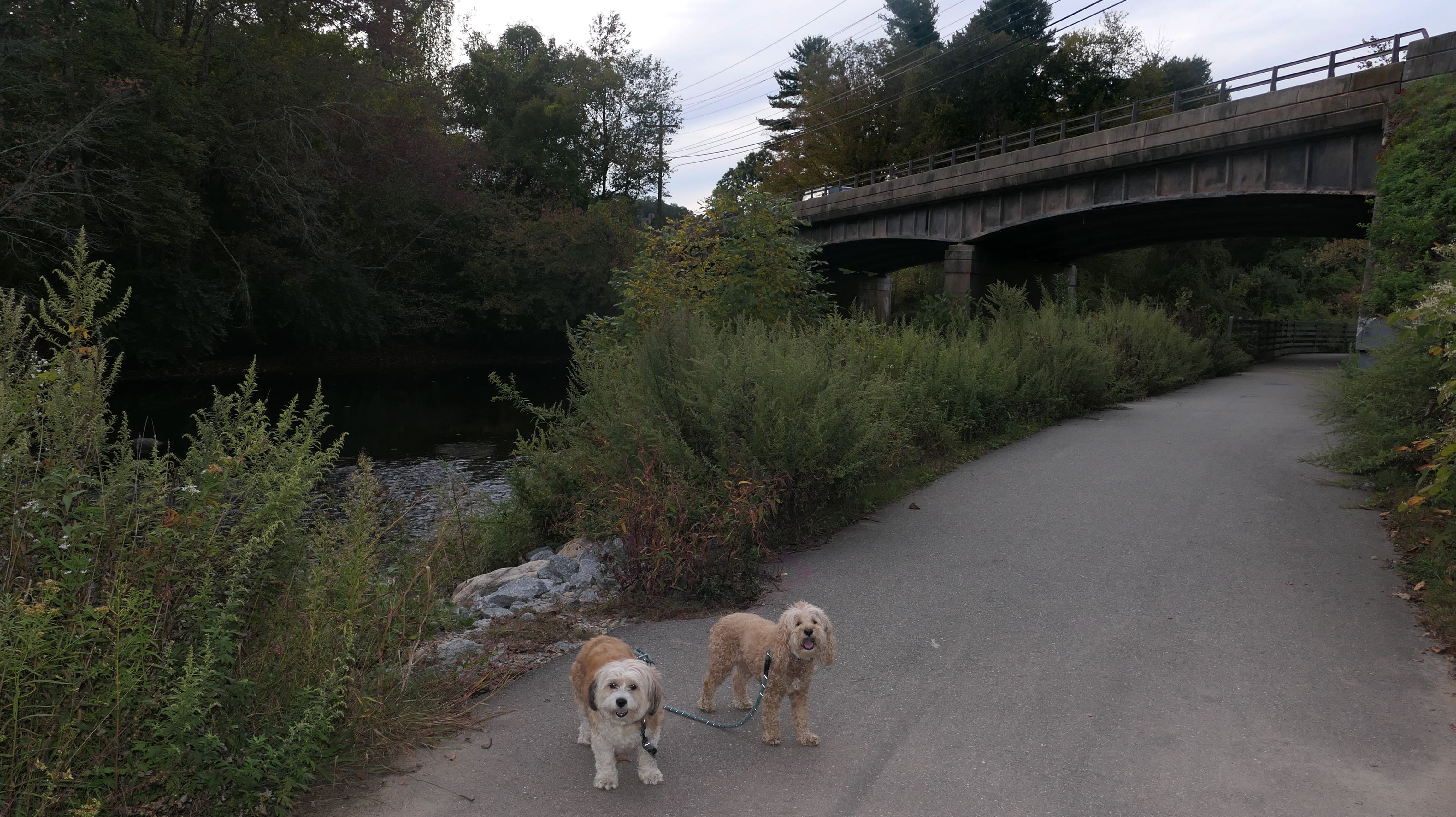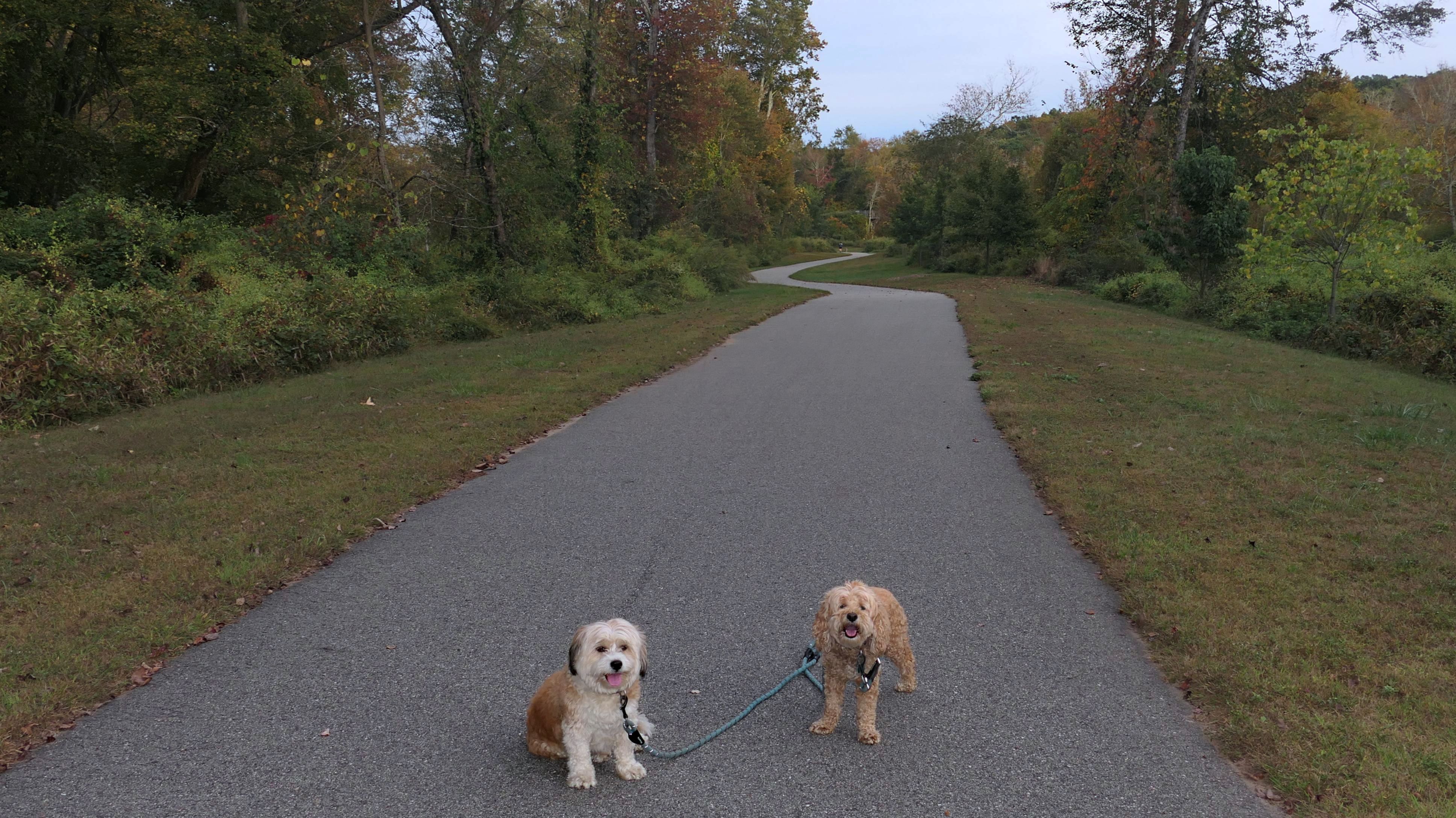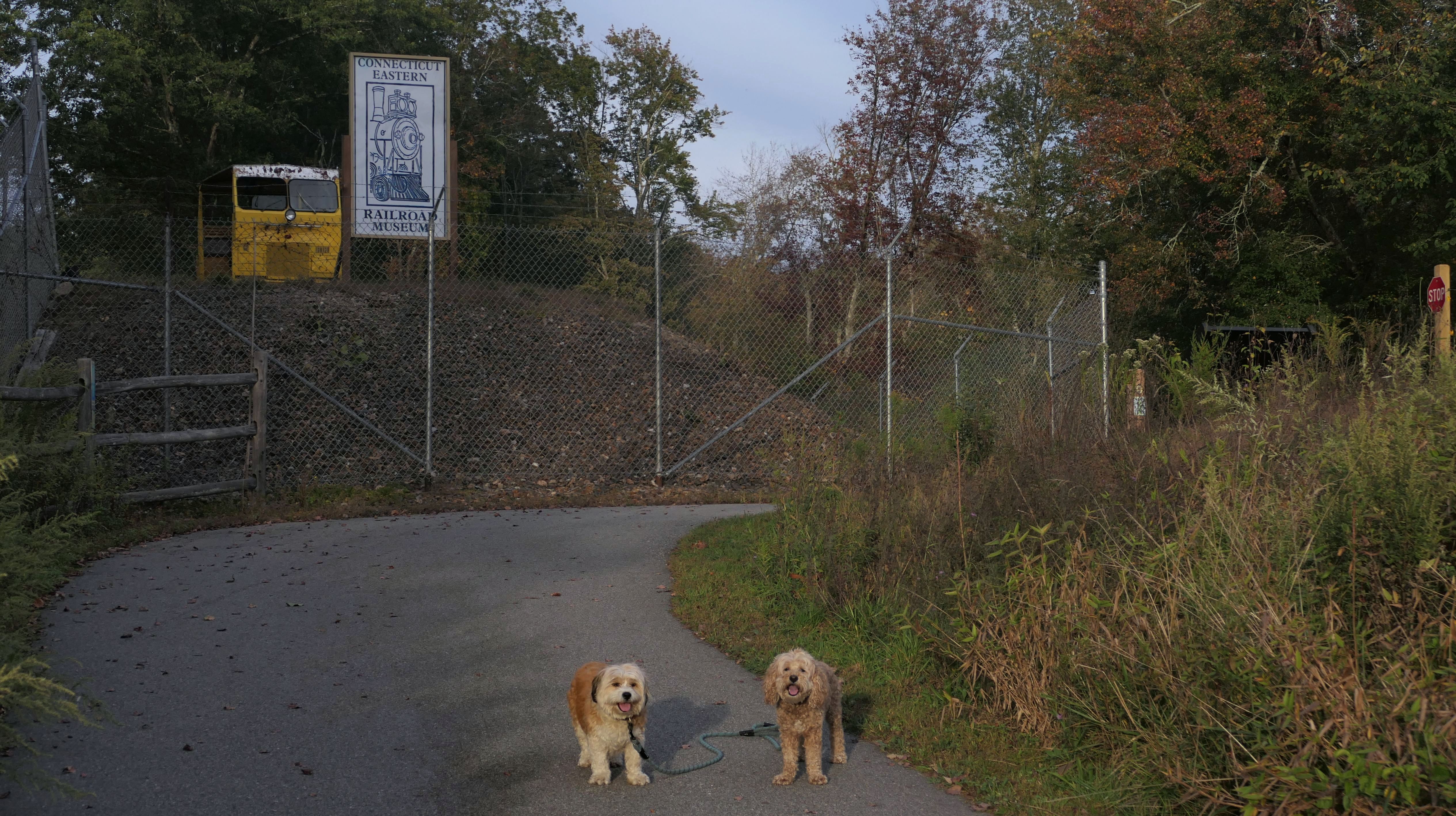 This is a town park located in the Willimantic section of Windham, near the Mansfield border. There's a beach area for swimming in the Natchaug River, but dogs are not allowed. There are some other places in the park where it is possible to get them into the water if needed. It wasn't warm enough on this day for that. There's a couple different community gardens, and a skate park as well. Nothing really specifically for the dogs, but enough area to go for a short walk. We also crossed Jackson Street (Route 195), and checked out Alex Caisse Park.
