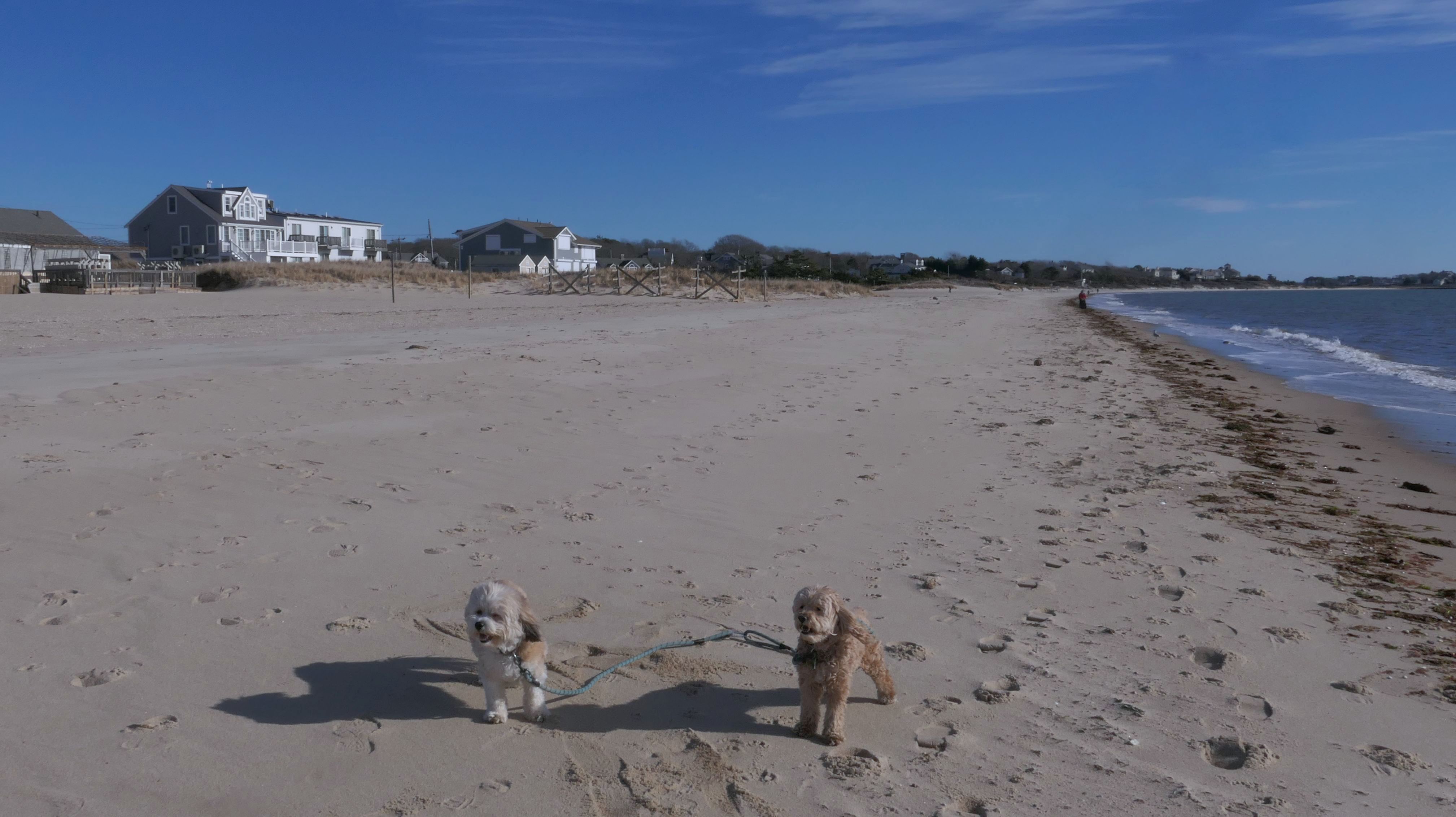 This is a beach along the south shore of the mid Cape. We walked the length of the beach and back, about a half mile one way. At the end of the beach, we encountered "Private Property" and "No Dogs Allowed" signs so we didn't go any further. We would have walked more of the shoreline on the other end of the beach, but the clouds rolled in, so I decided to find a better beach for a walk on the mid Cape instead, where it was sunnier.