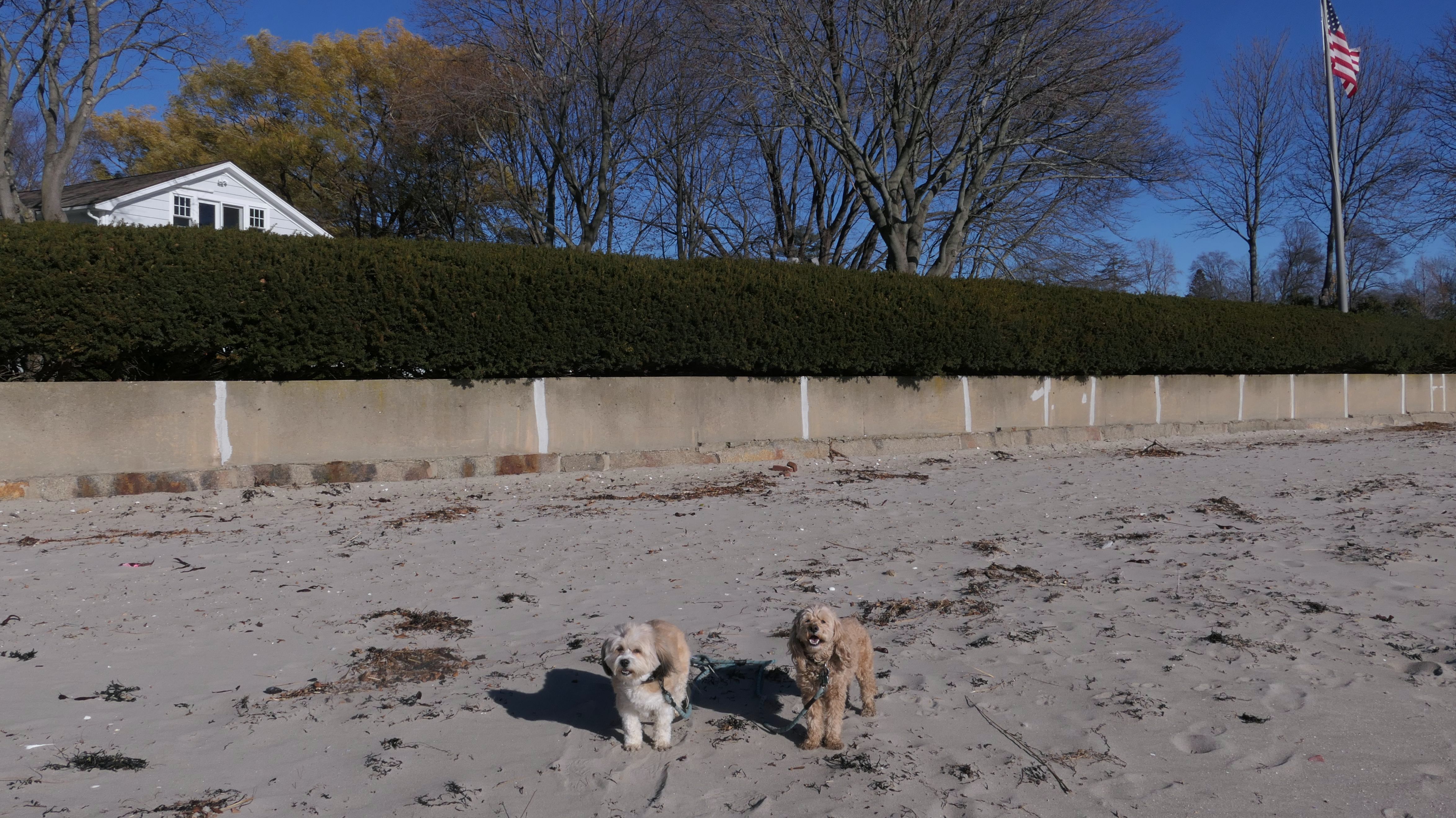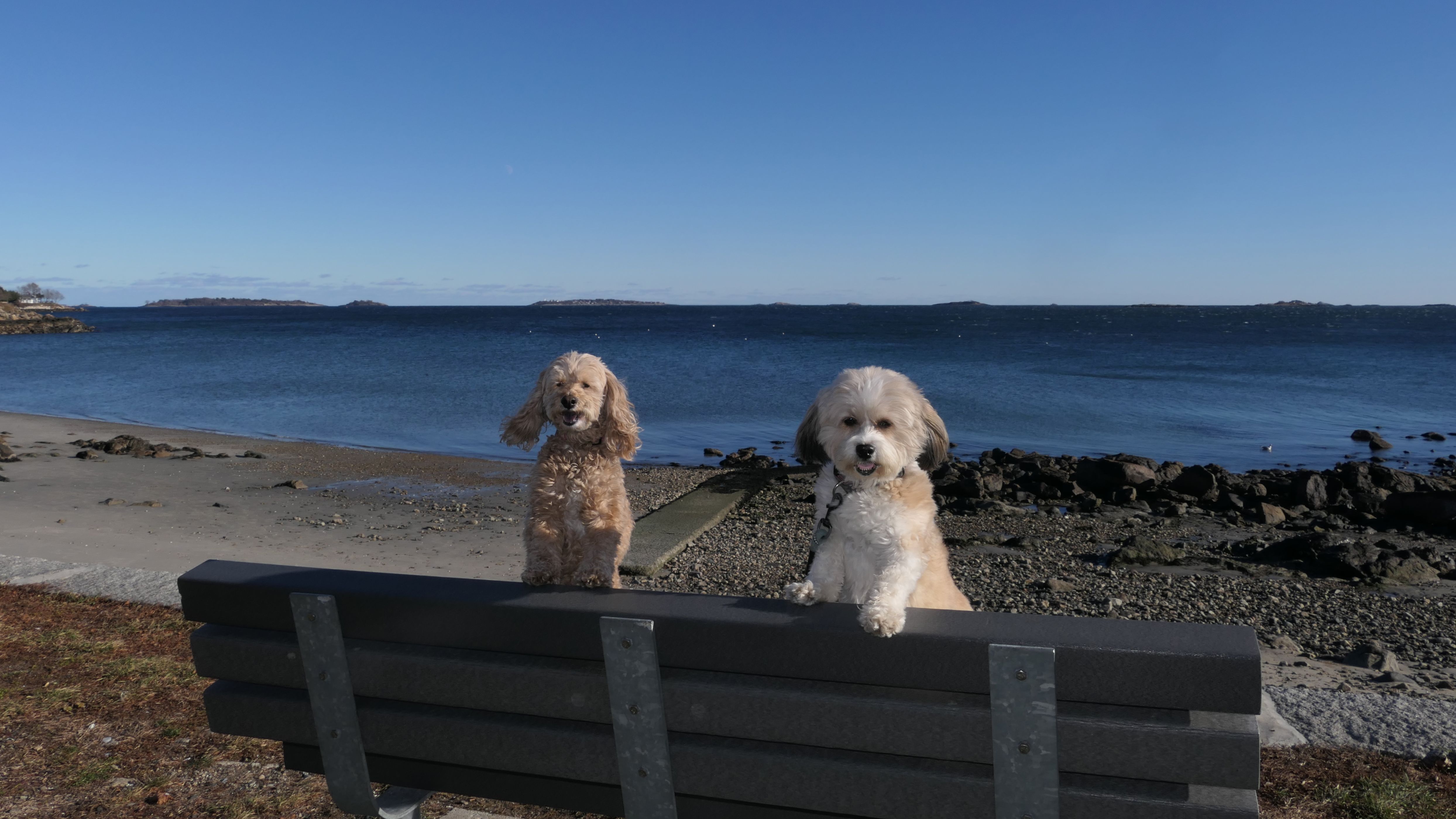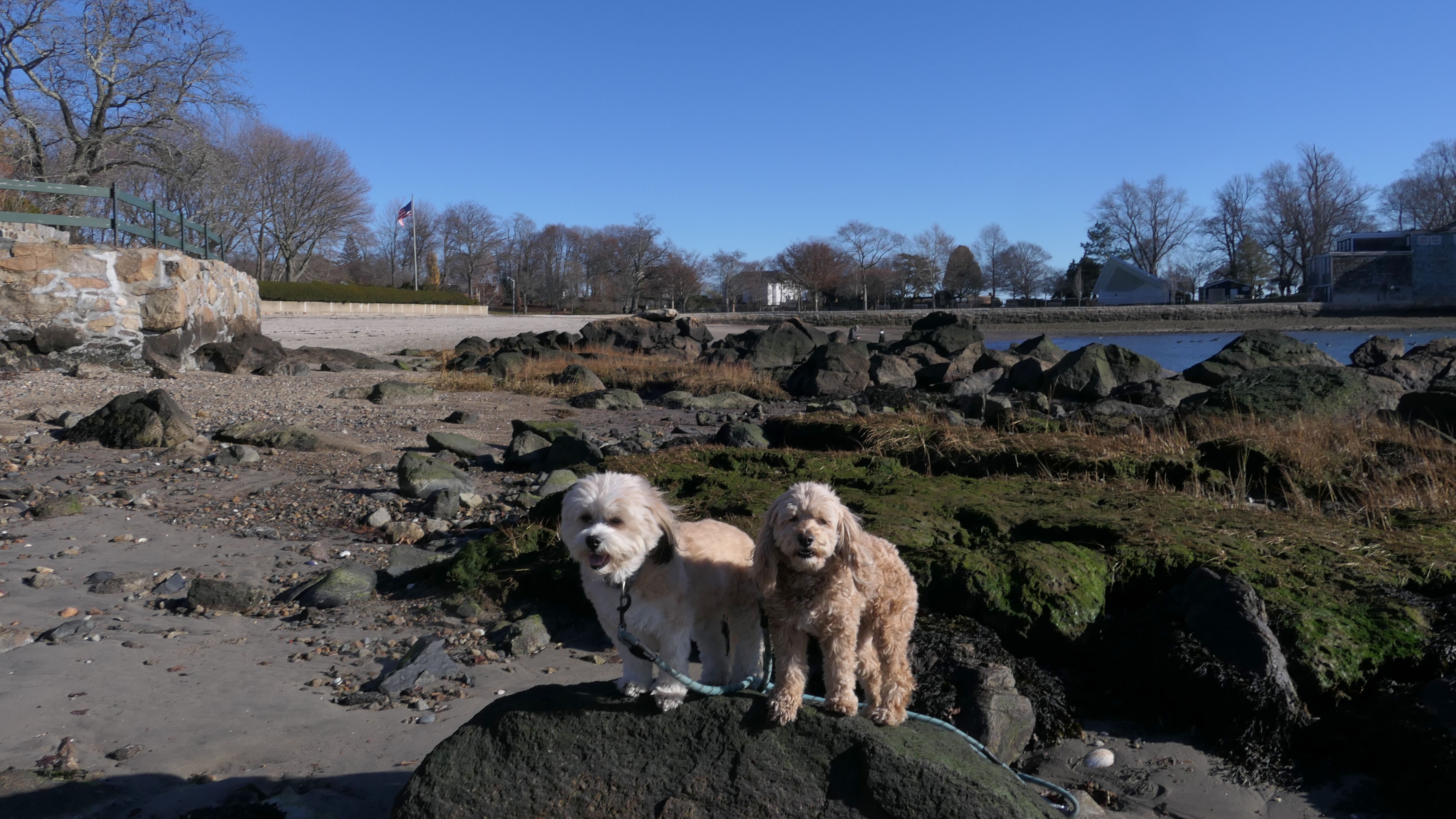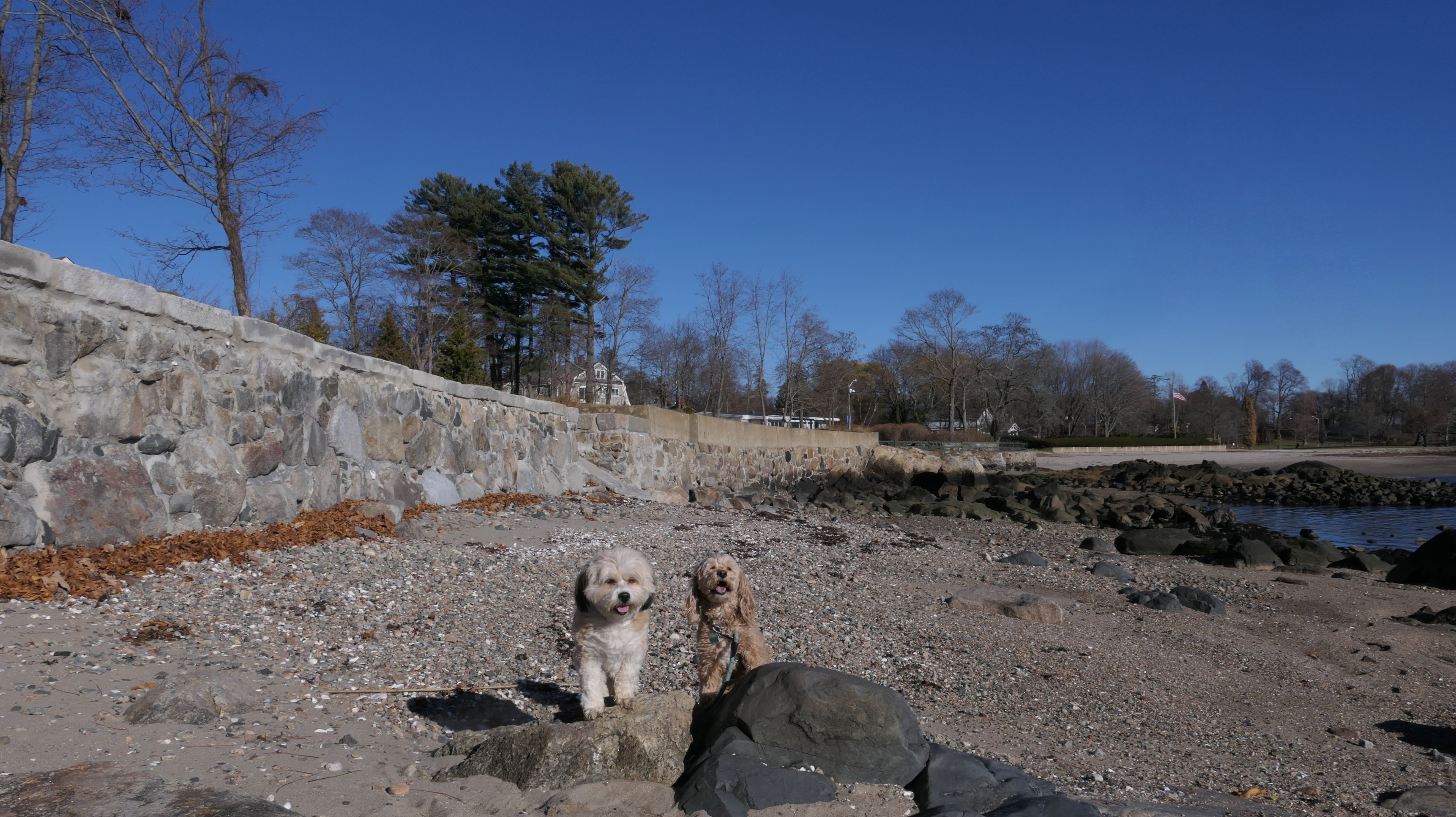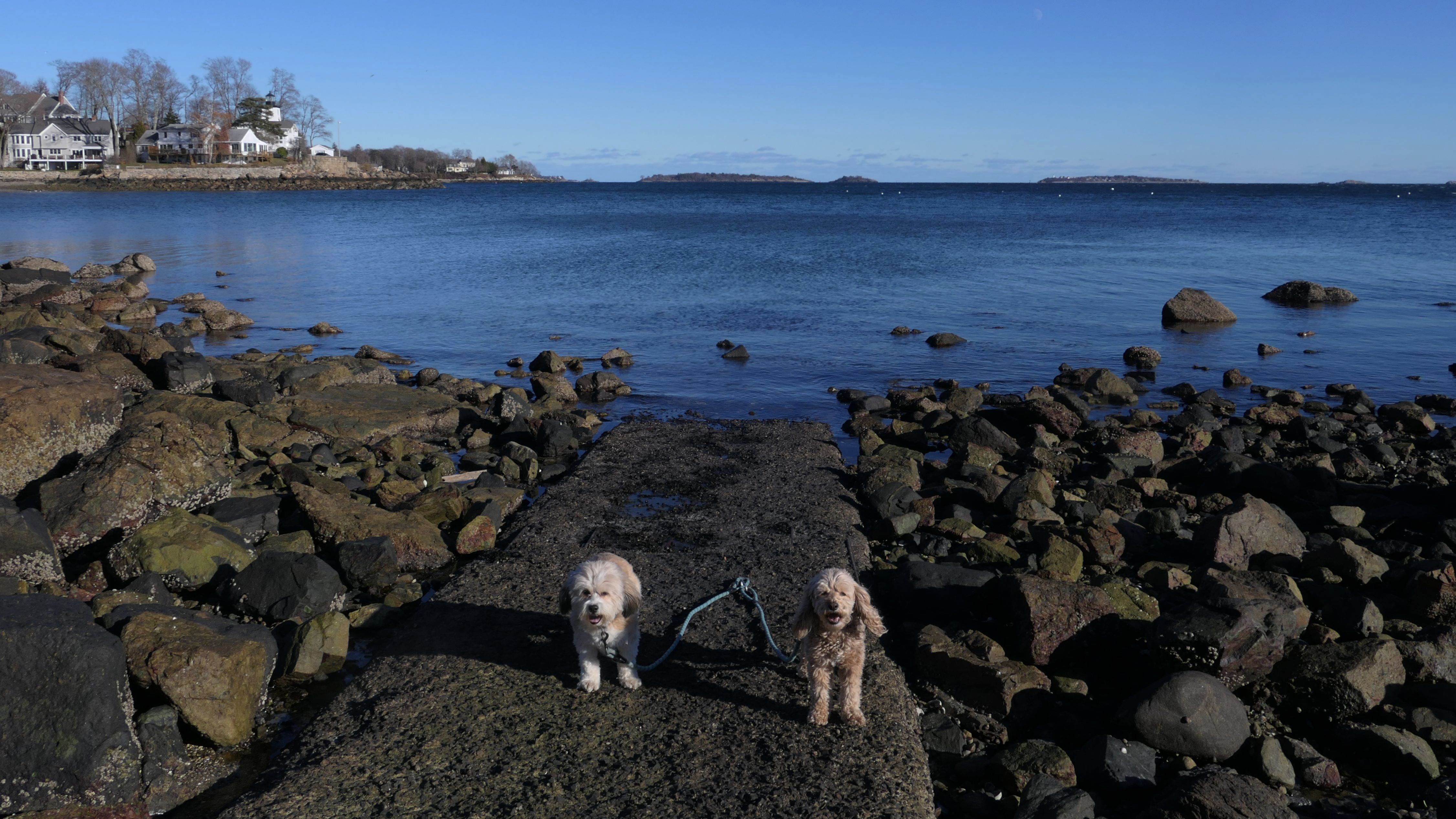 We walked here from Independence Park. There are a number of access points off Lothrop street, but not all of them go all the way down to the beach. Some end at a viewing level, with no access point to get down any further. Once we found an access point that went all the way down, we headed north along the beach until we reached the main beach area. We had to cross a rather large pile of rocks at one point. Once we reached the main beach, there were a few dogs running around off-leash, despite the sign indicating dogs must be leashed. This may be one of those "unofficial" off-leash dog areas. By the way, dogs are only allowed on the beach from the day after Labor Day to the day before Memorial (they are allowed during those times before 8AM and after 7:30PM). The beach opens out to a cove, so the waves are mild. You can look across the cove at Salem Willows Park, a place we visited earlier in the day.