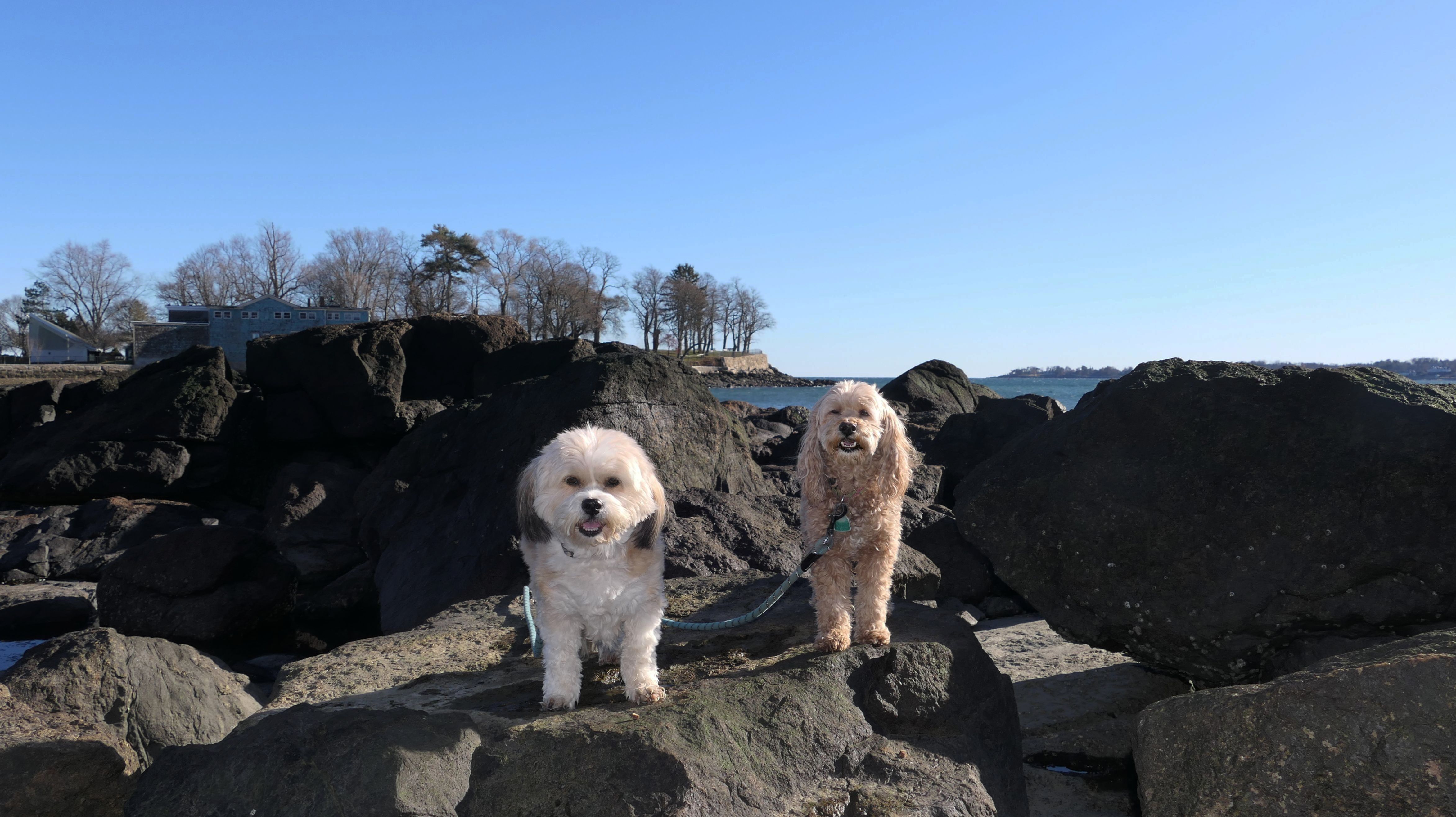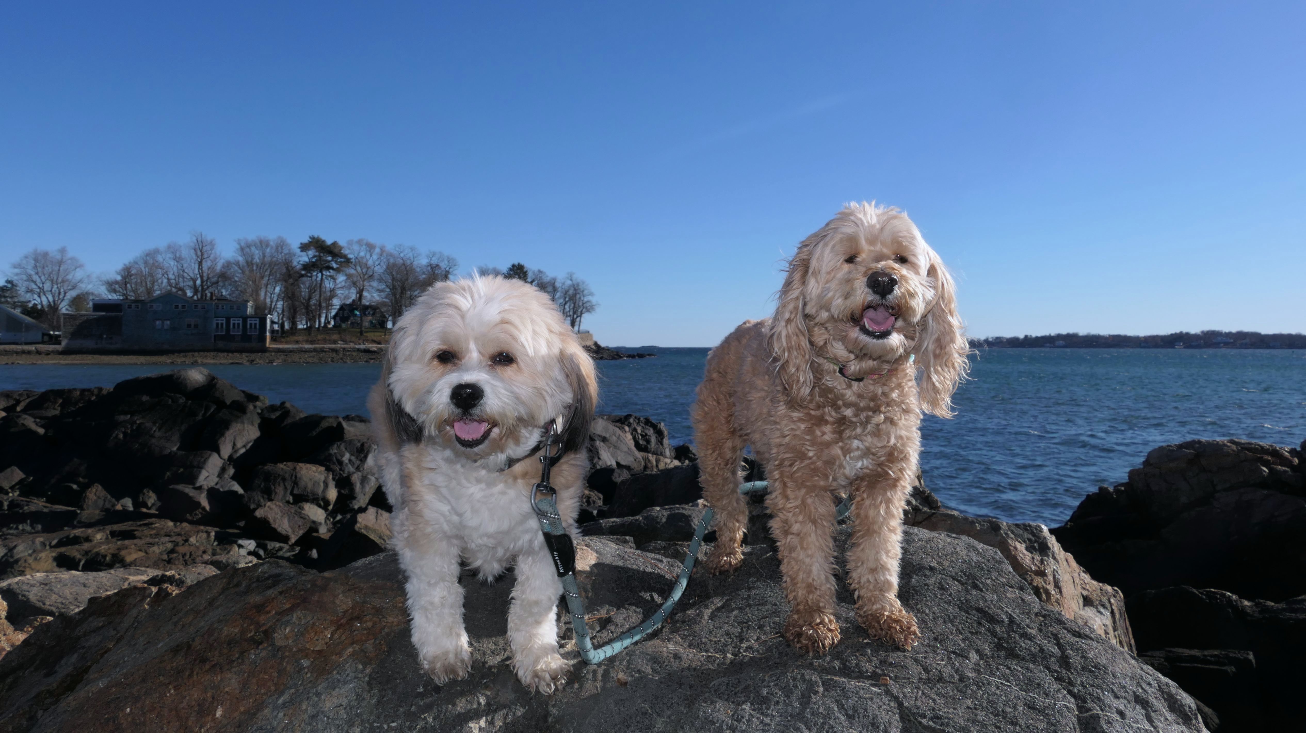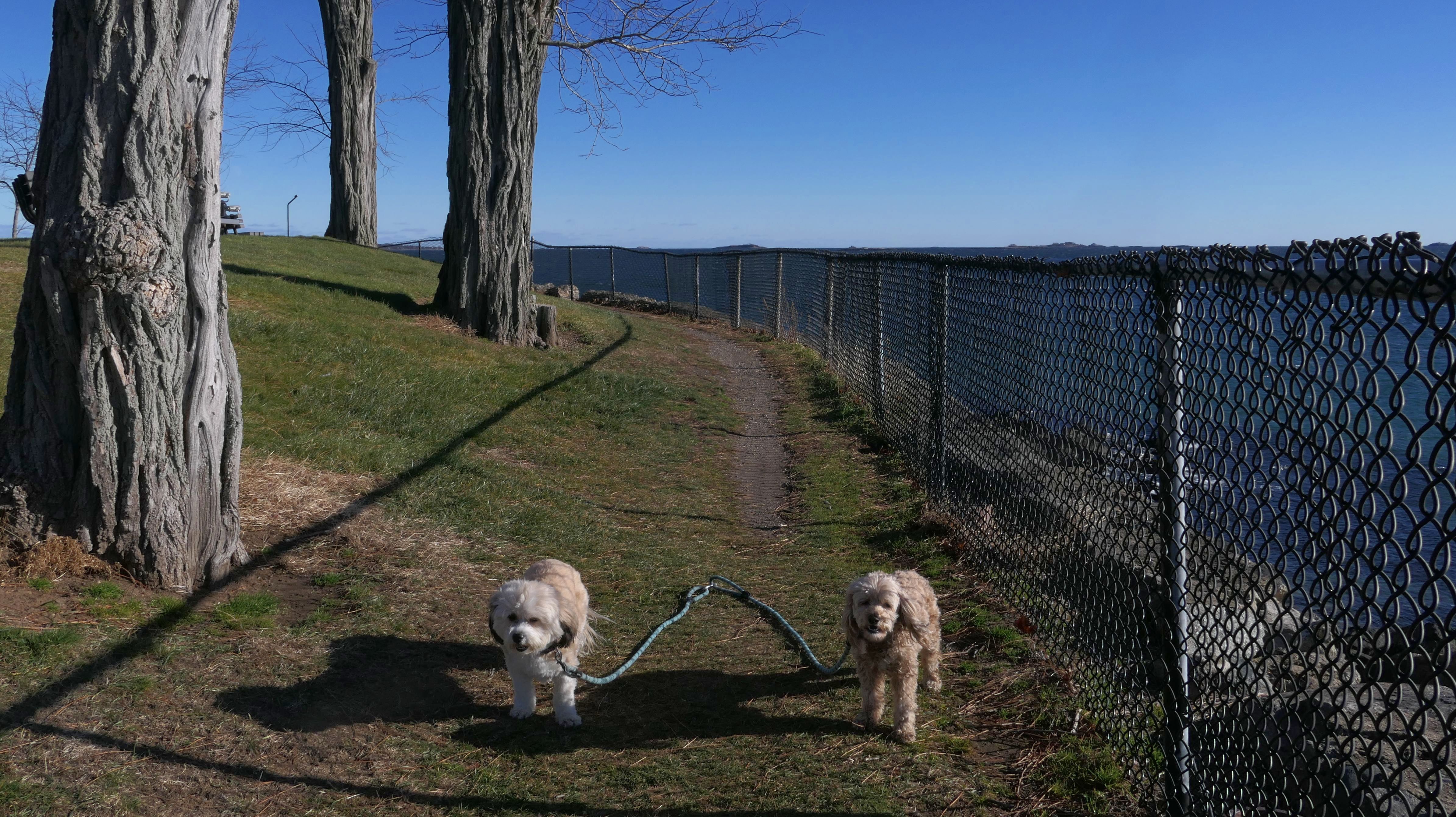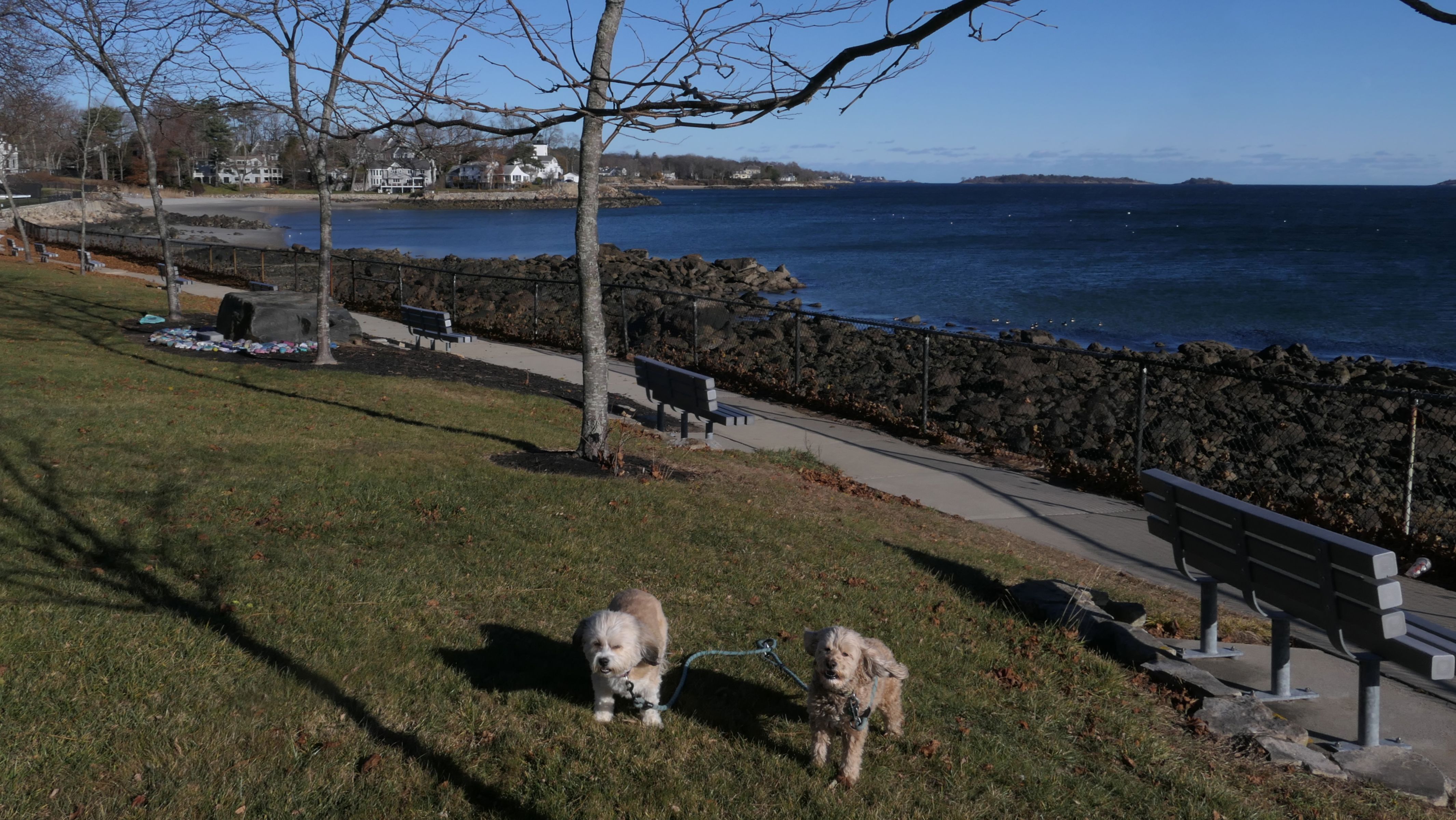 We walked here from Independence Park. There are a number of access points off Lothrop street, but not all of them go all the way down to the beach. Some end at a viewing level, with no access point to get down any further. Once we found an access point that went all the way down, we headed north along the beach until we reached the main beach area. We had to cross a rather large pile of rocks at one point. Once we reached the main beach, there were a few dogs running around off-leash, despite the sign indicating dogs must be leashed. This may be one of those "unofficial" off-leash dog areas. By the way, dogs are only allowed on the beach from the day after Labor Day to the day before Memorial (they are allowed during those times before 8AM and after 7:30PM). The beach opens out to a cove, so the waves are mild. You can look across the cove at Salem Willows Park, a place we visited earlier in the day.
