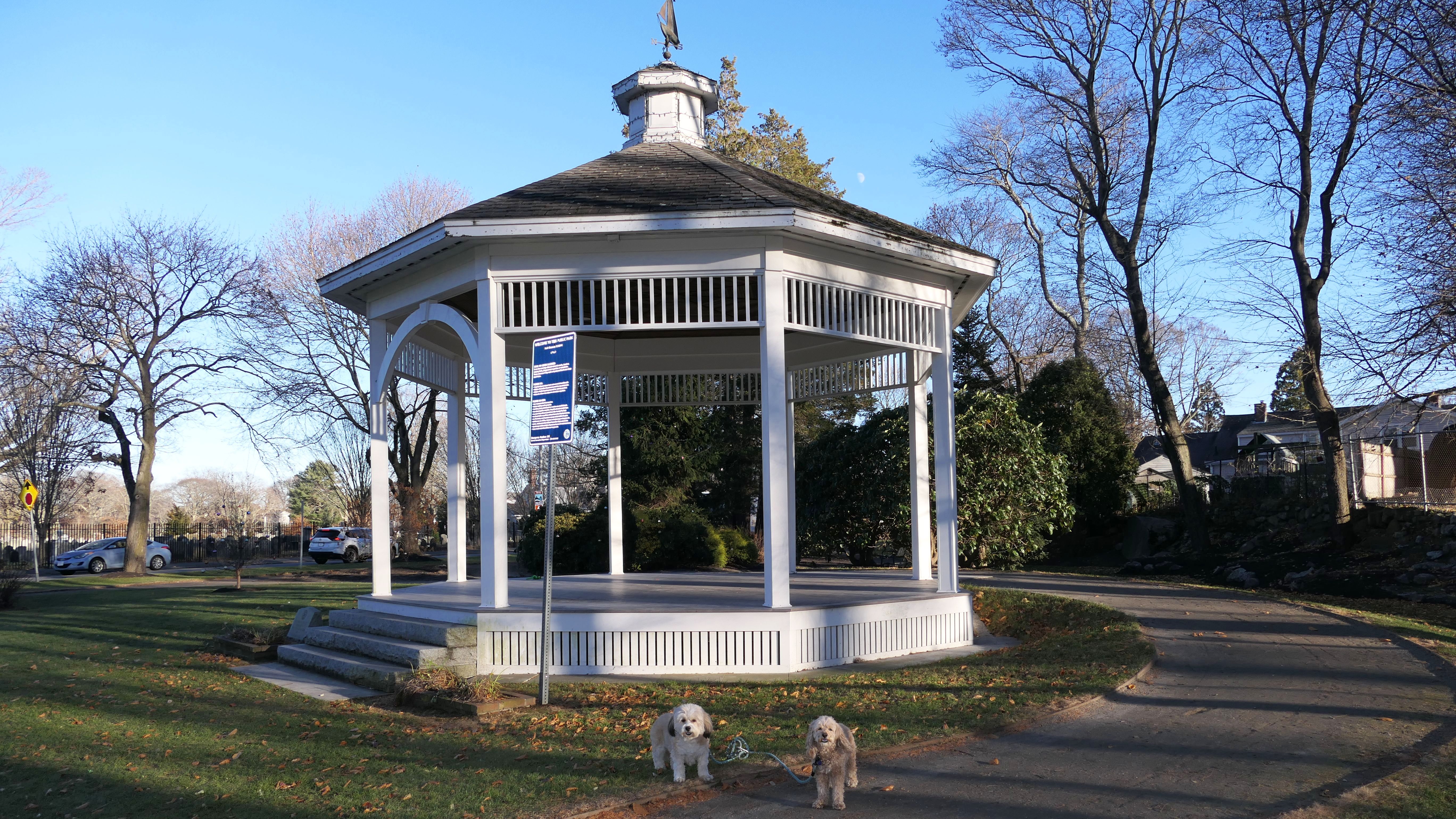 This was our last stop during our walk through Beverly Center. It's a typical town common, with a gazebo, benches and some monuments.
