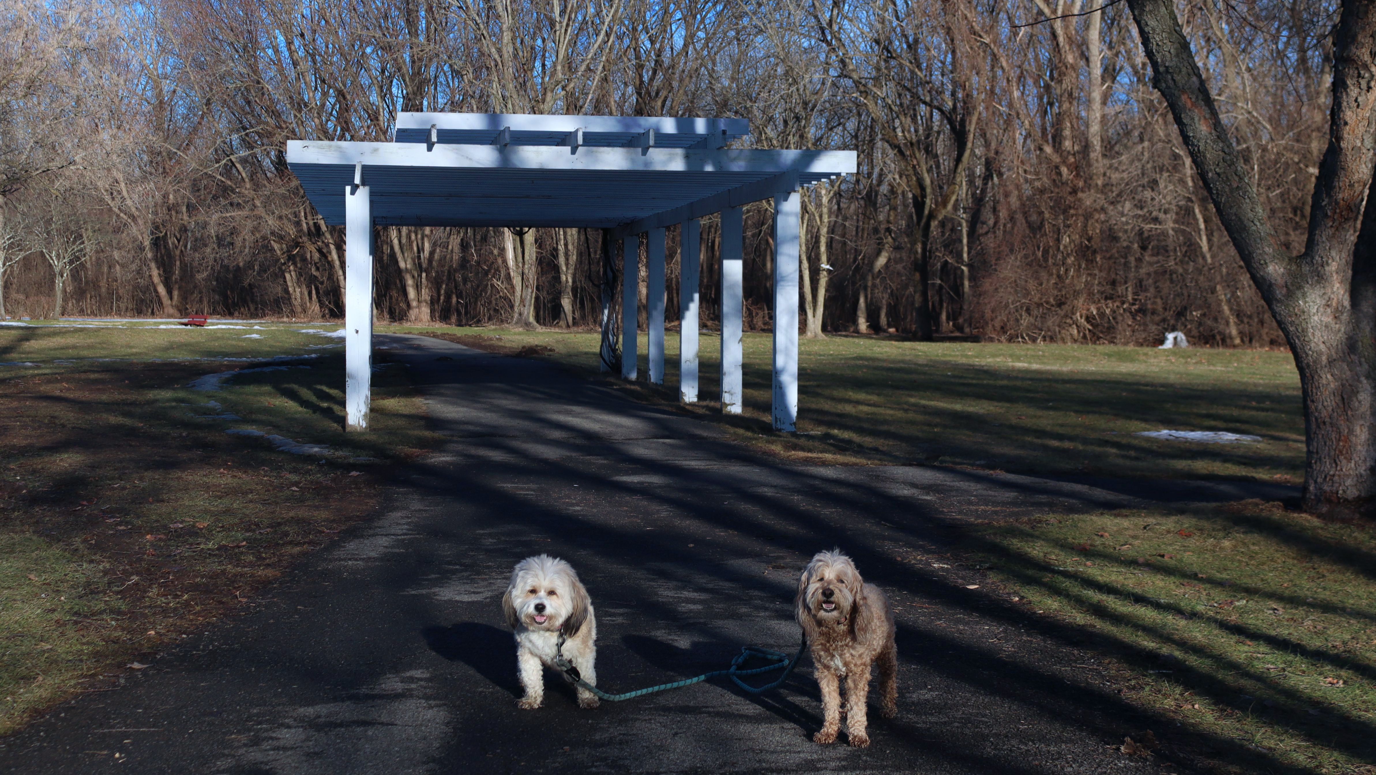 This was the coldest day we've ever gone on an adventure, but we cheated… we went somewhere indoors. This is a dog-friendly indoor shopping mall! With malls struggling around the country, some are finding creative ways to attract visitors, and this one decided to welcome dogs. We encountered numerous dog walkers, making it a great way for pups to get exercise without freezing. We did take a couple of photos outside the mall, but spent most of our time enjoying the warmth inside. Dogs are allowed in some stores, but not on elevators, escalators, in children's play areas, or in the food court. There is a list of dog-friendly retailers on the mall's website. Aside from being dog-friendly, it's a fairly typical two-floor mall. While there were plenty of empty storefronts, most of the space was occupied, so perhaps the dog-friendly approach is working. We ended up lapping the mall about three times, walking just over two and a half miles while staying warm and getting our exercise.