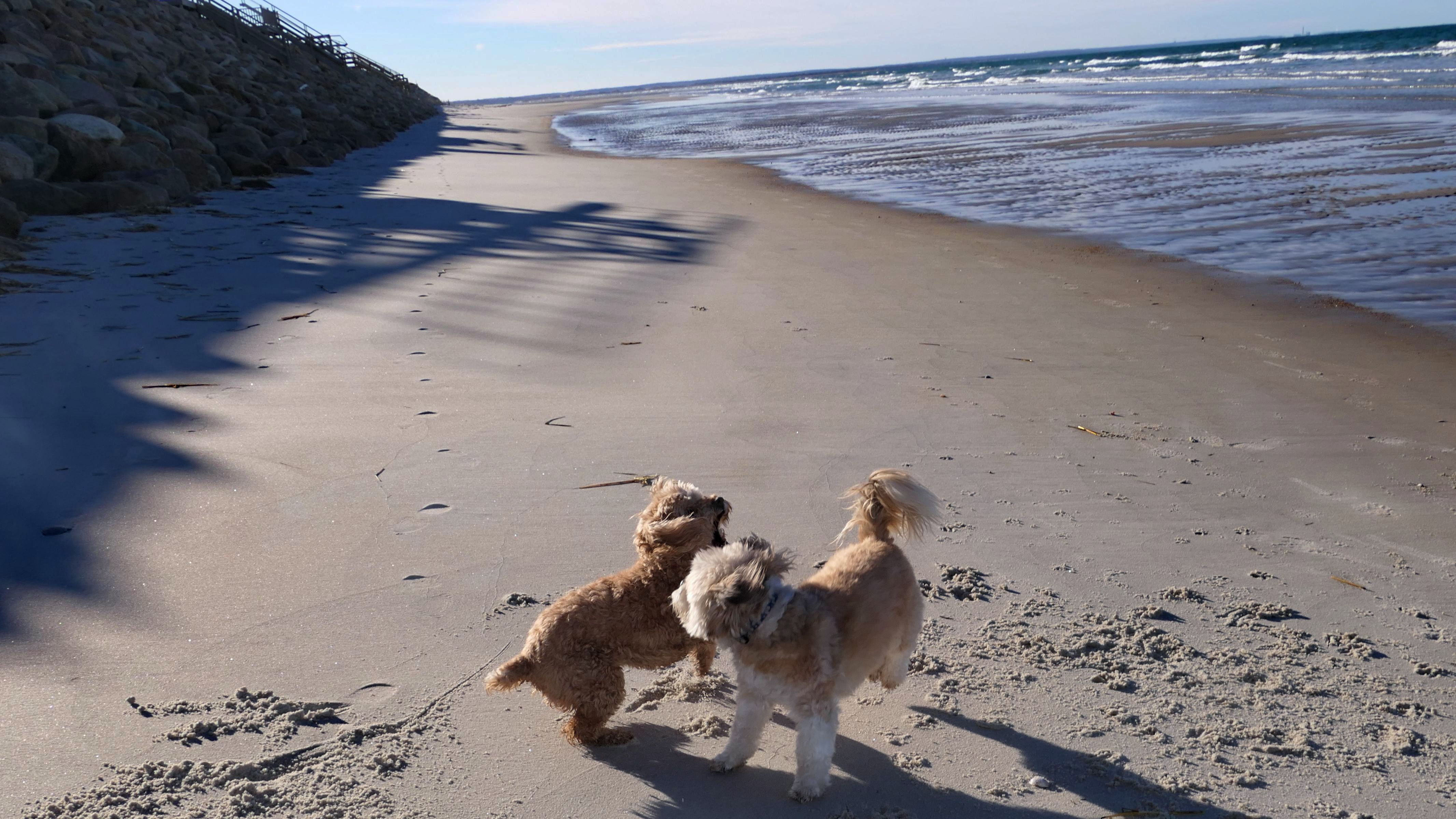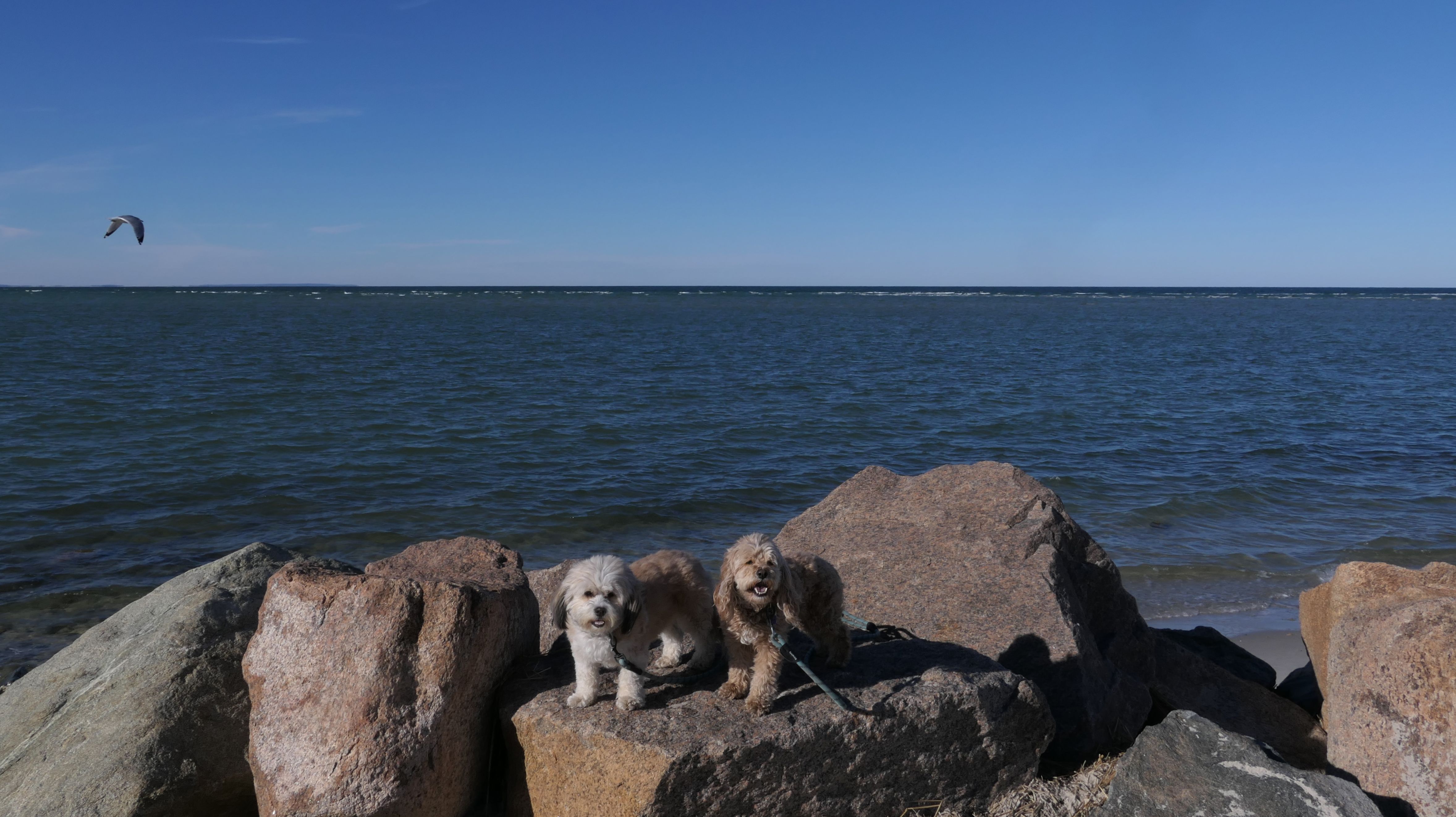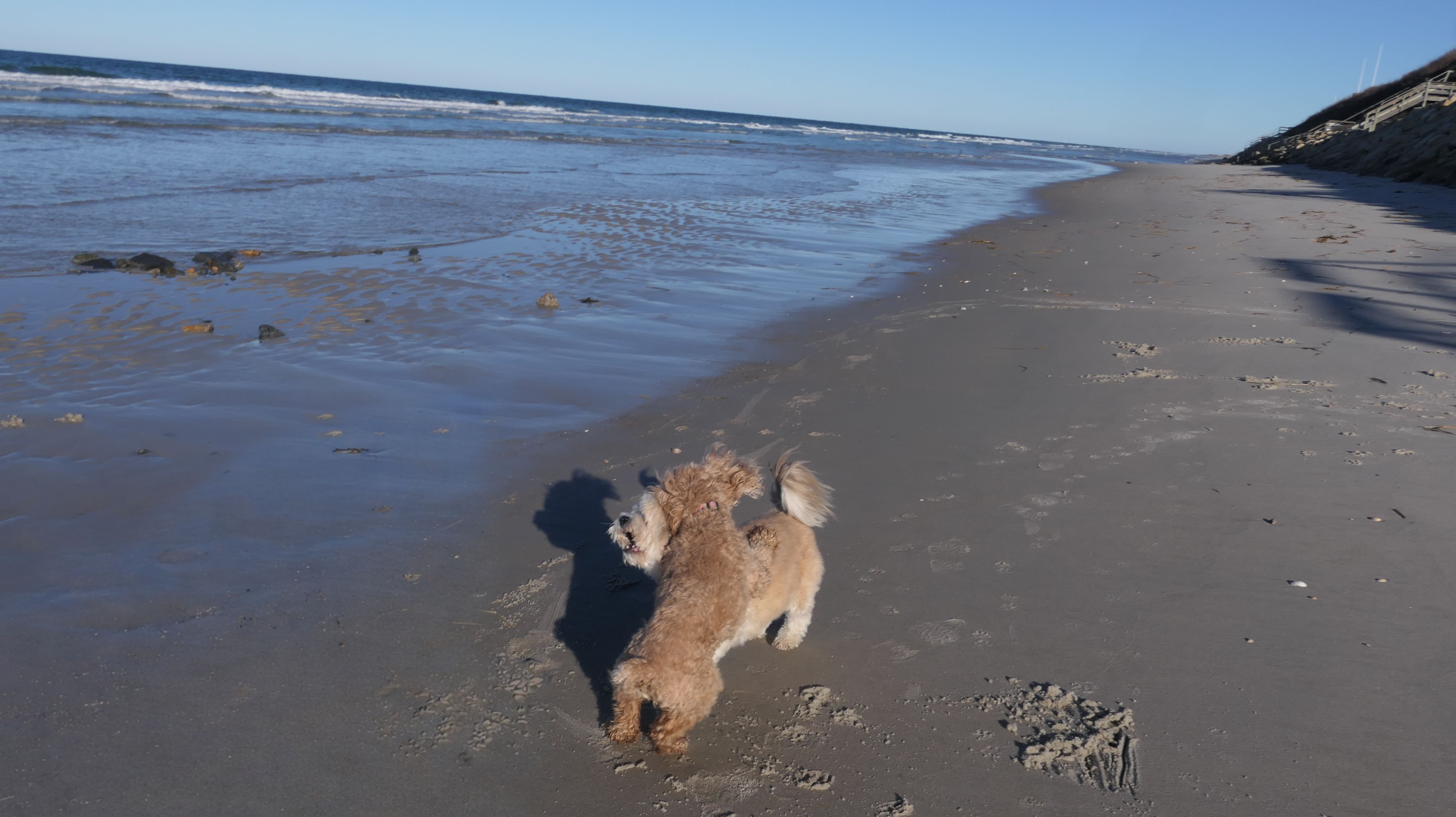 I grouped these beaches together, because they are a mile apart and we walked the length of both of them all at once. We parked at the Chapin Memorial Beach lot and headed east through Mayflower Beach, and almost reached Corporation Beach, before turning around and heading back. It was bright and sunny, and the cool temperatures didn't stop the dogs from playing on the beach. Lexi wanted to be let off the leash to run, and had a lot of fun getting her energy out by zooming in and out of the edge of the water.