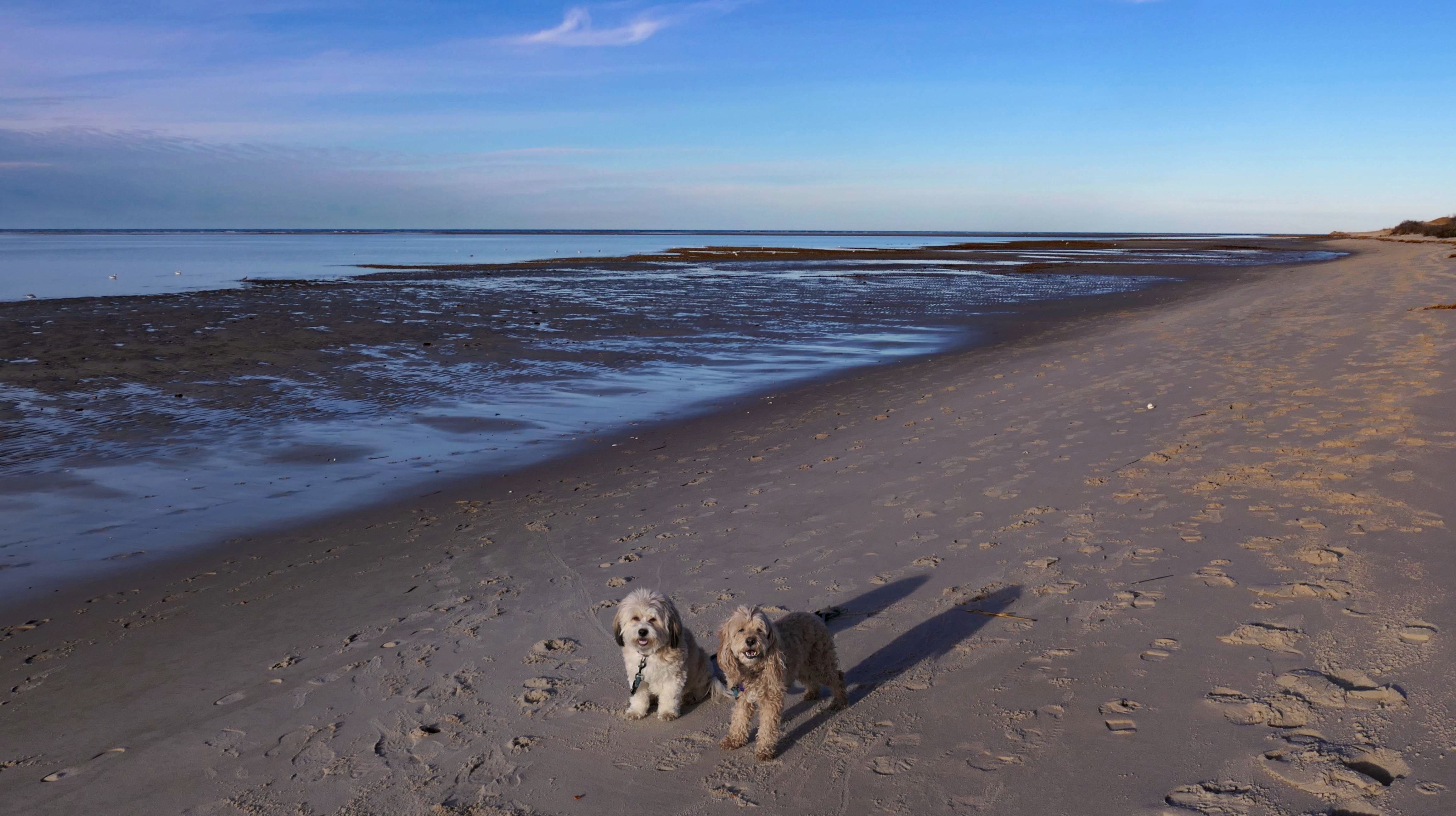 This was the first of three beaches on the Cape, in three different towns, we visited on this gorgeous late February day. Temperatures were into the mid-50's, and it felt like spring! Dogs are allowed on Dennis town beaches from the day after Labor Day until the Thursday before Memorial Day. This beach was nicer than I expected, easily the best of the three beaches we visited. Despite being tucked well within the bay, there were still waves, and the sand was soft with limited amounts of seaweed build up. We walked for a bit over mile, before turning around and heading back. After this, we headed to Linnell Landing Beach in Brewster, and then Red River Beach in Harwich.