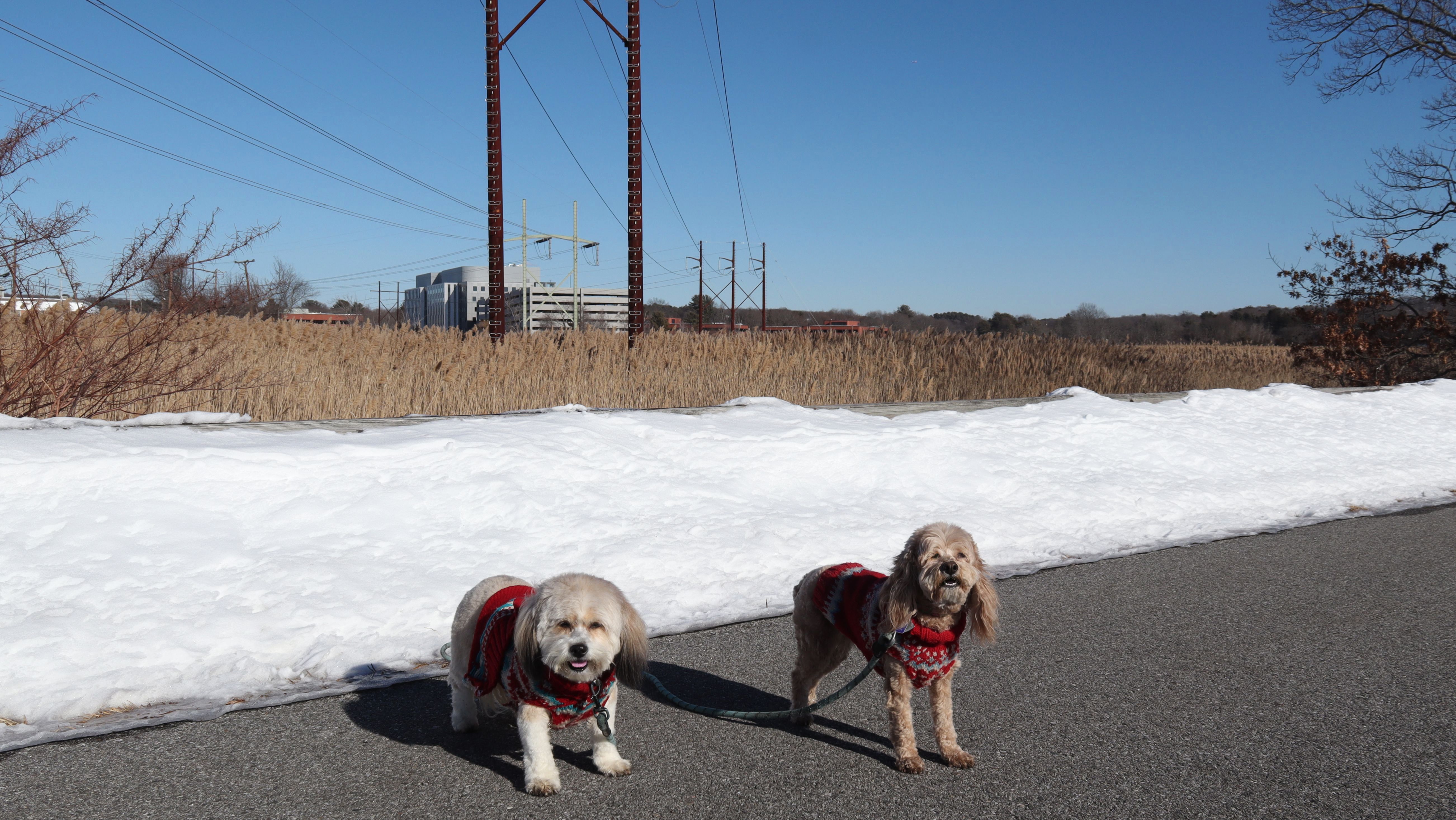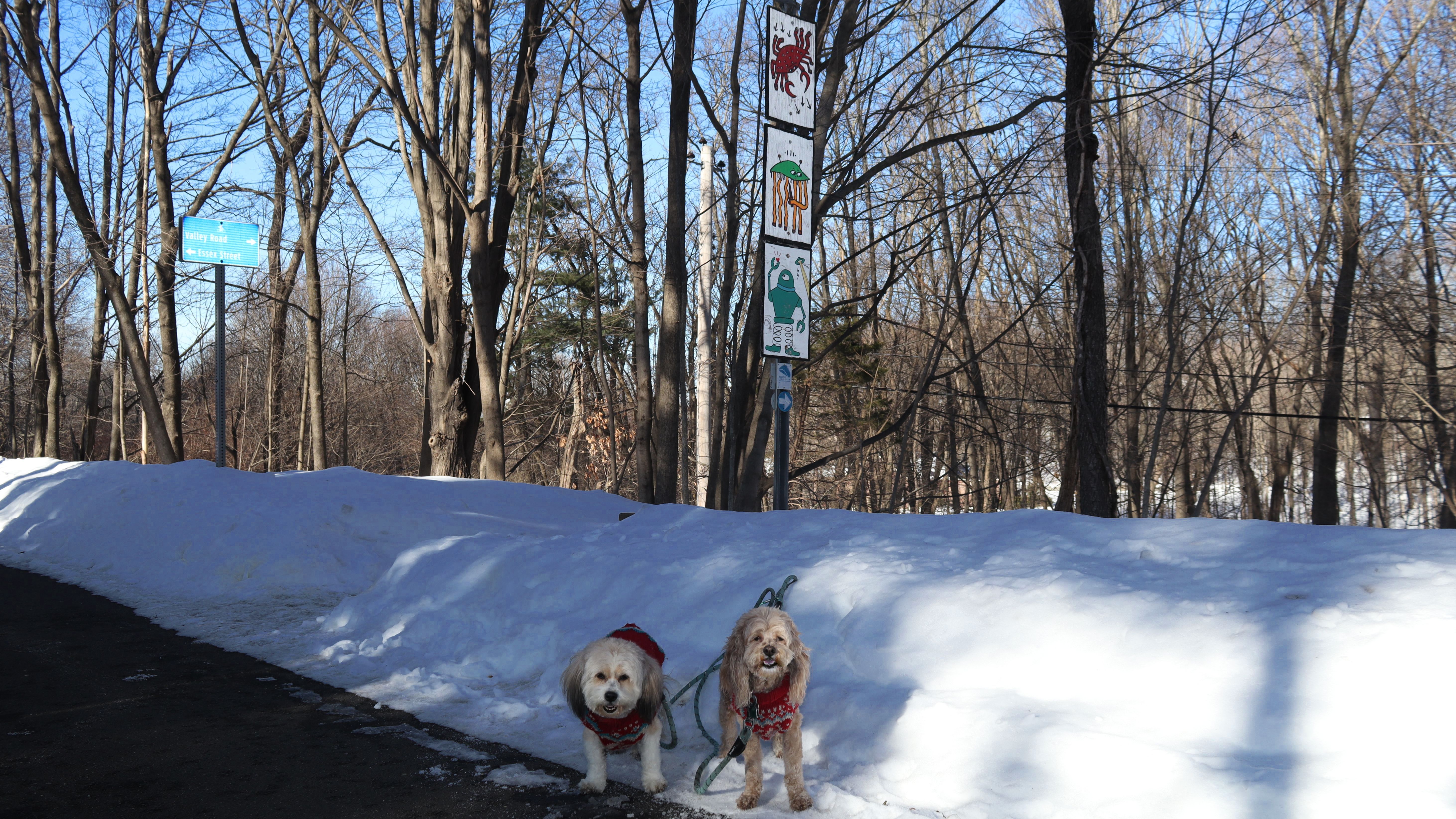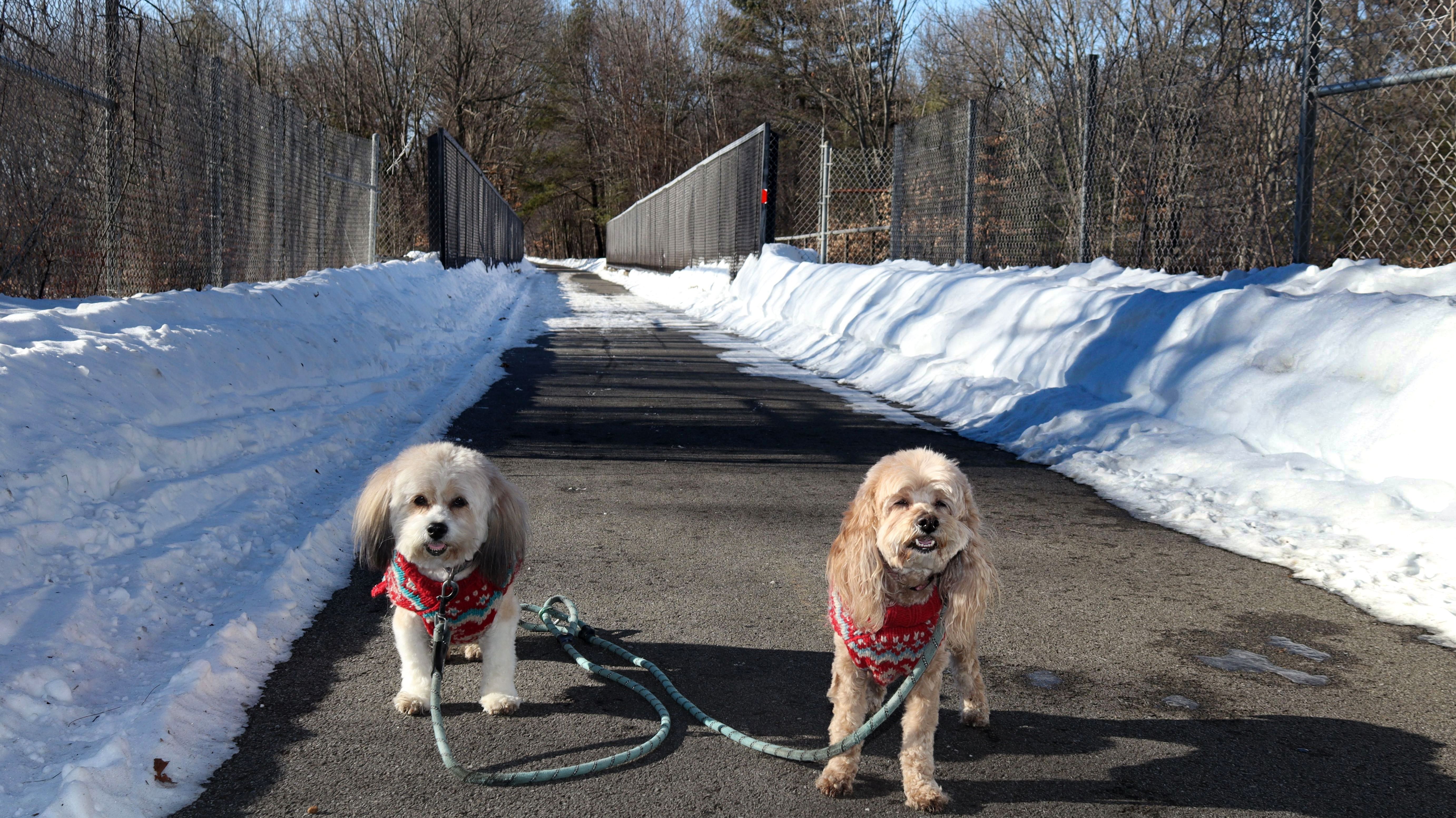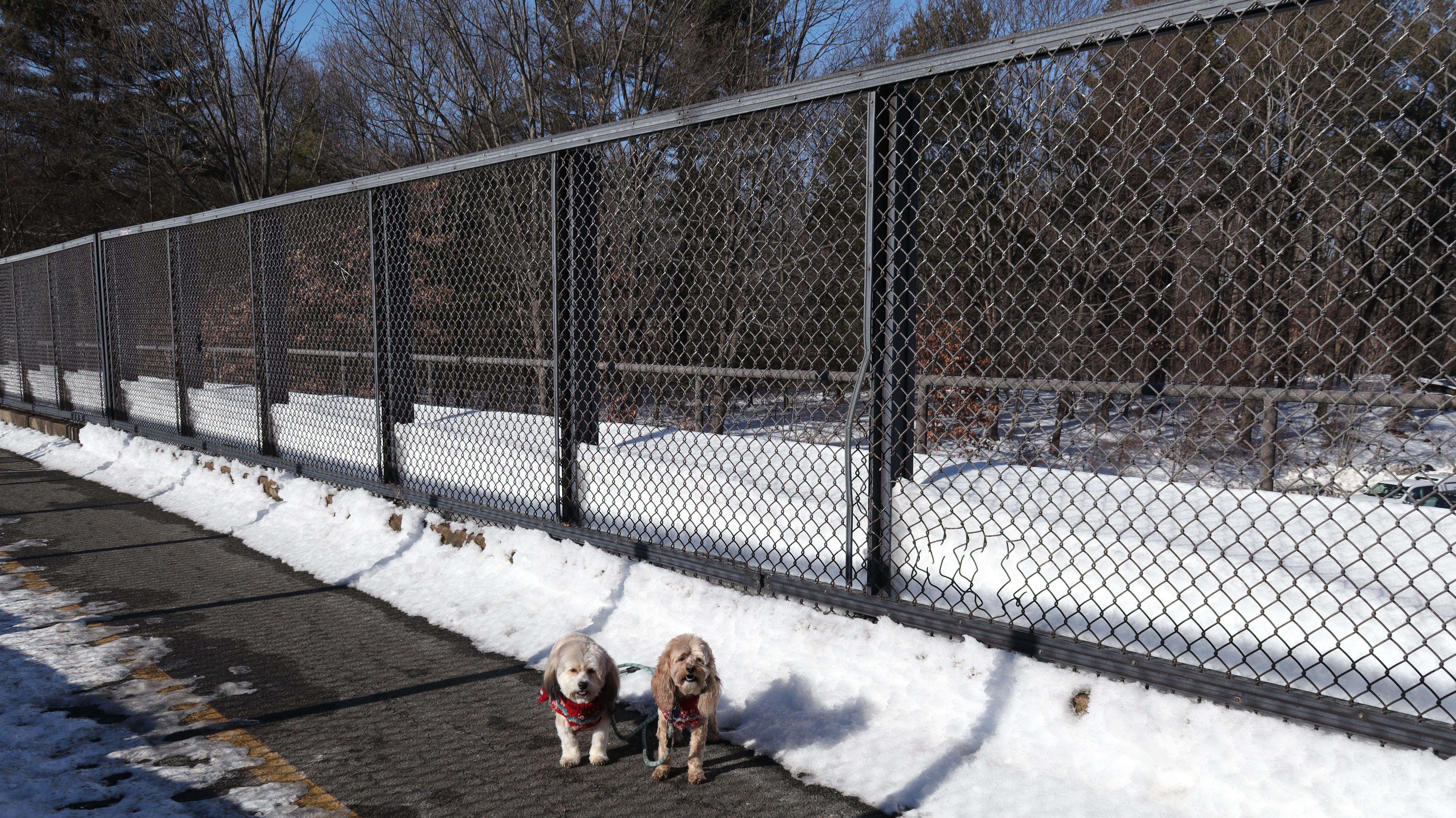 This is the section of trail from the Bedford town line to the point where we left off on the ACROSS Lexington Route E adventure two years prior. Snow is removed from the trail here, and unlike the Bedford section, there were no icy stretches. The trail crosses some streets and passes over I-95. We walked about a mile and a half in Lexington, before turning around and heading back to Bedford where we started.