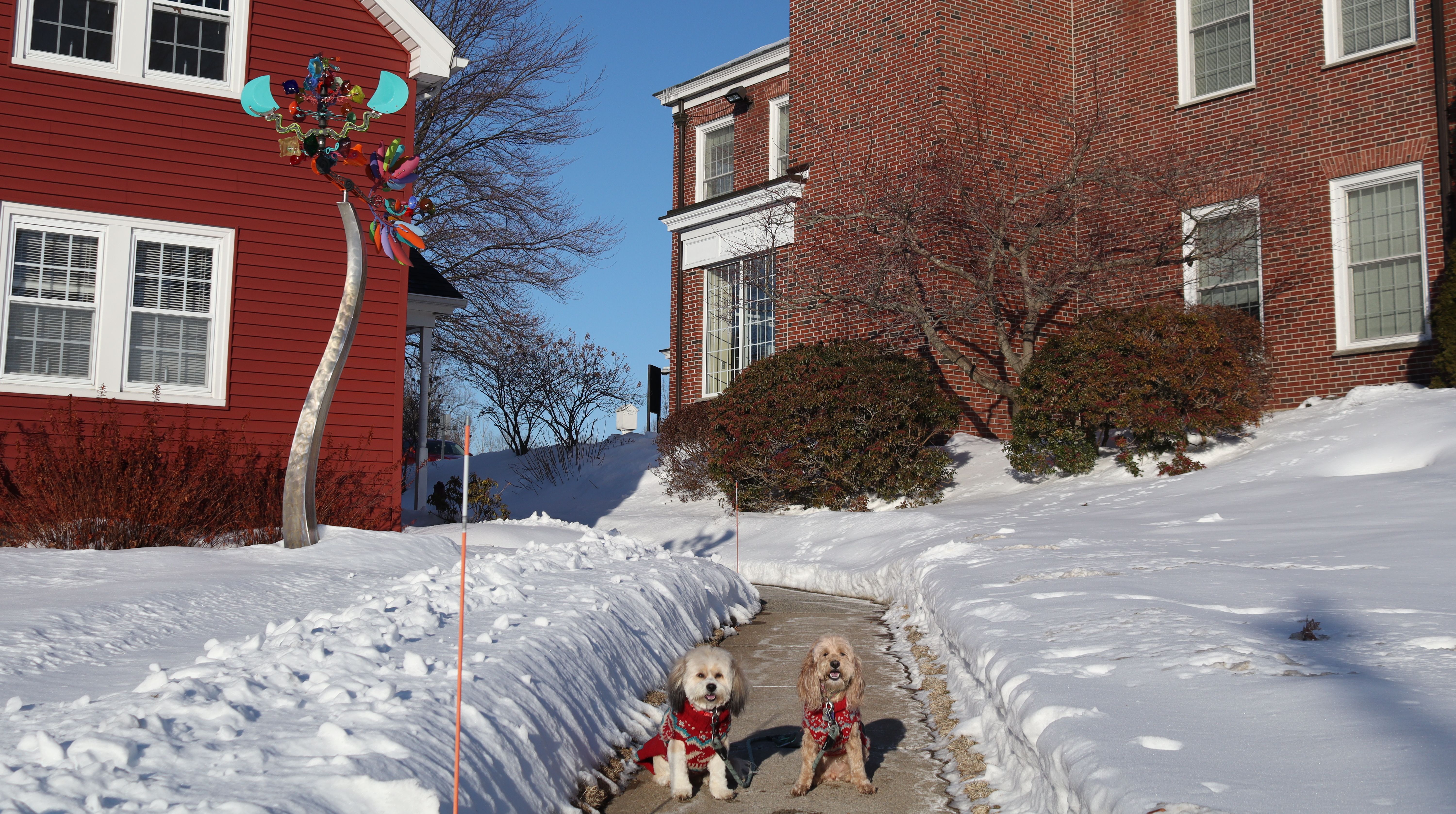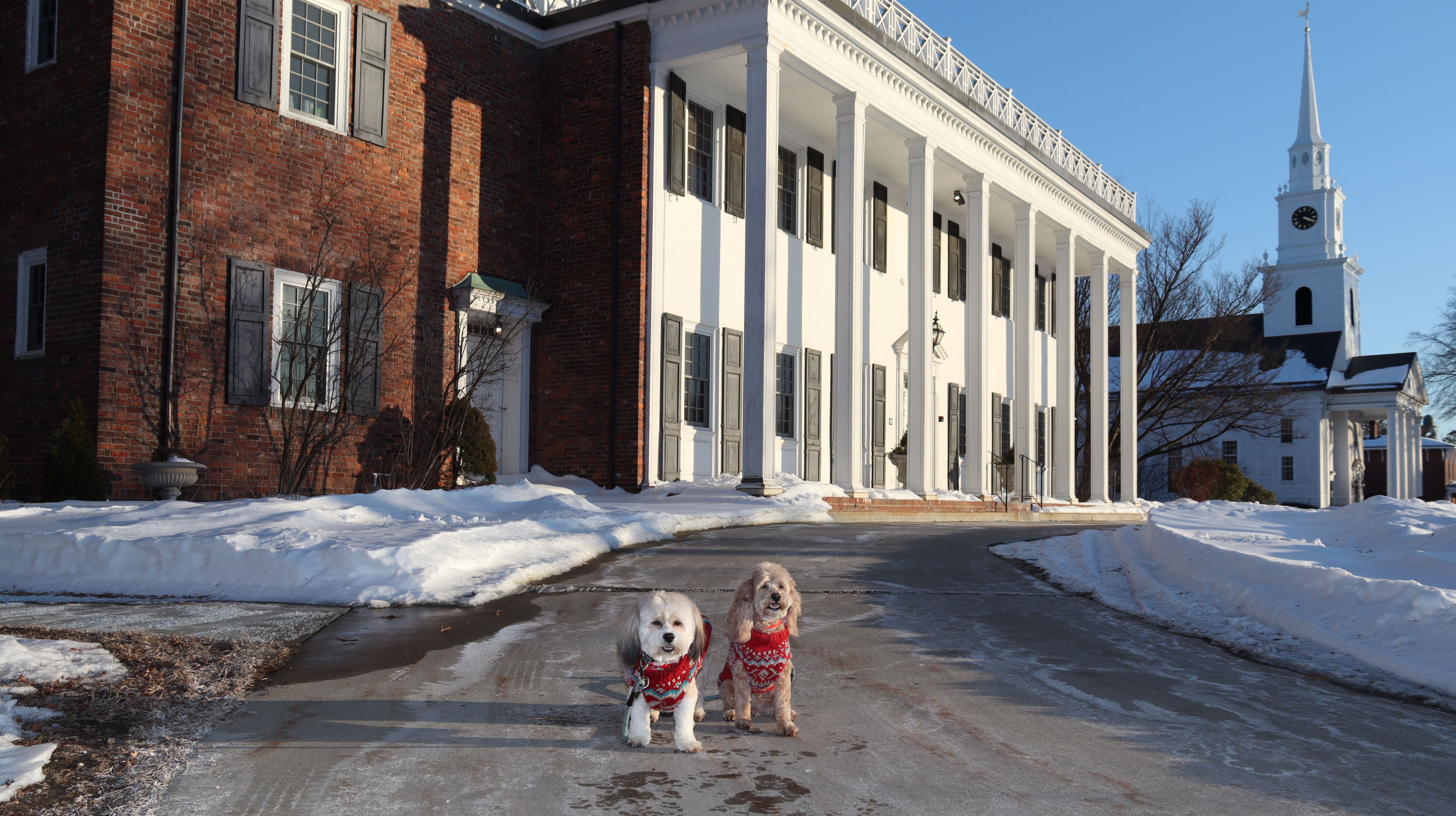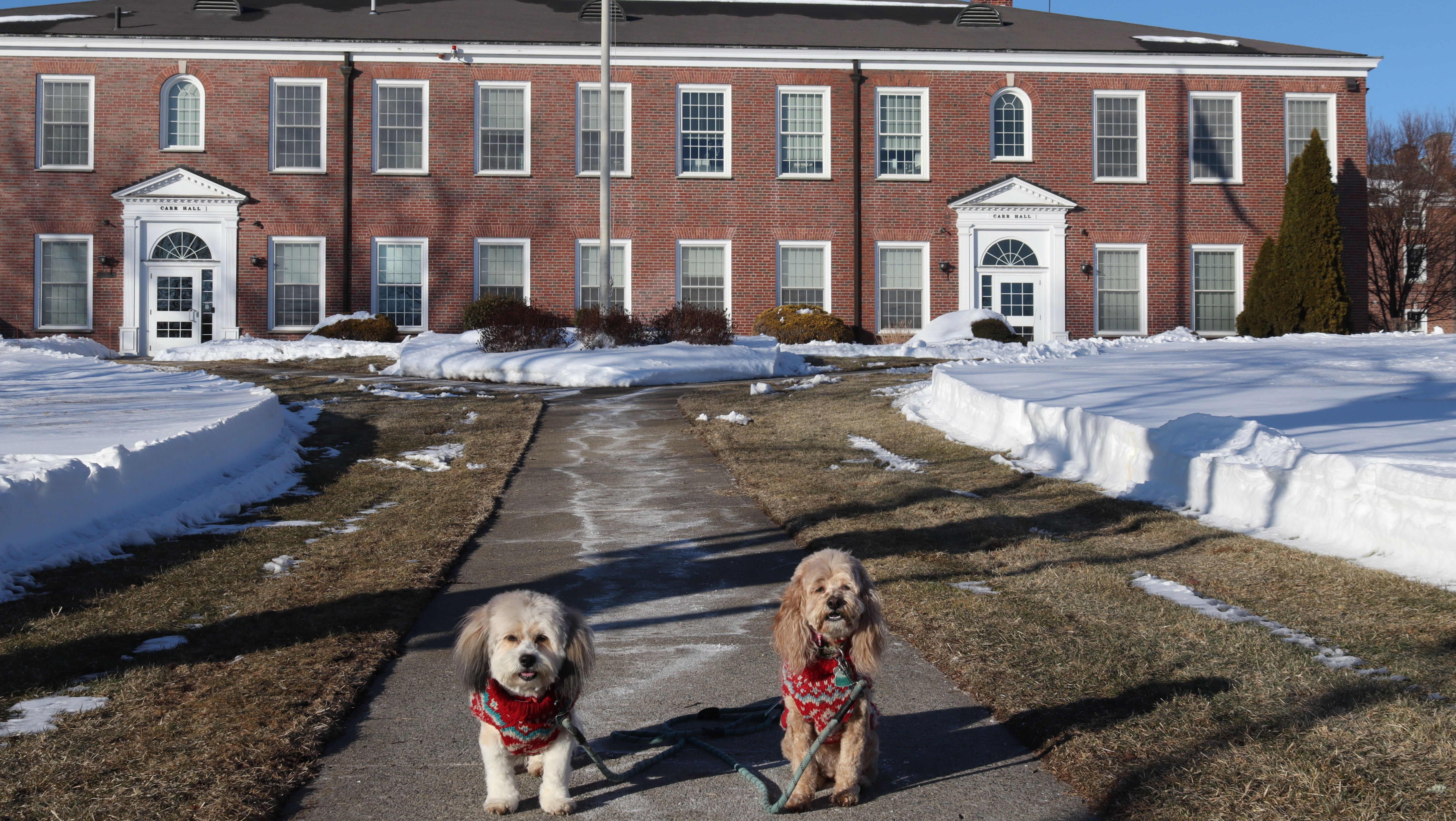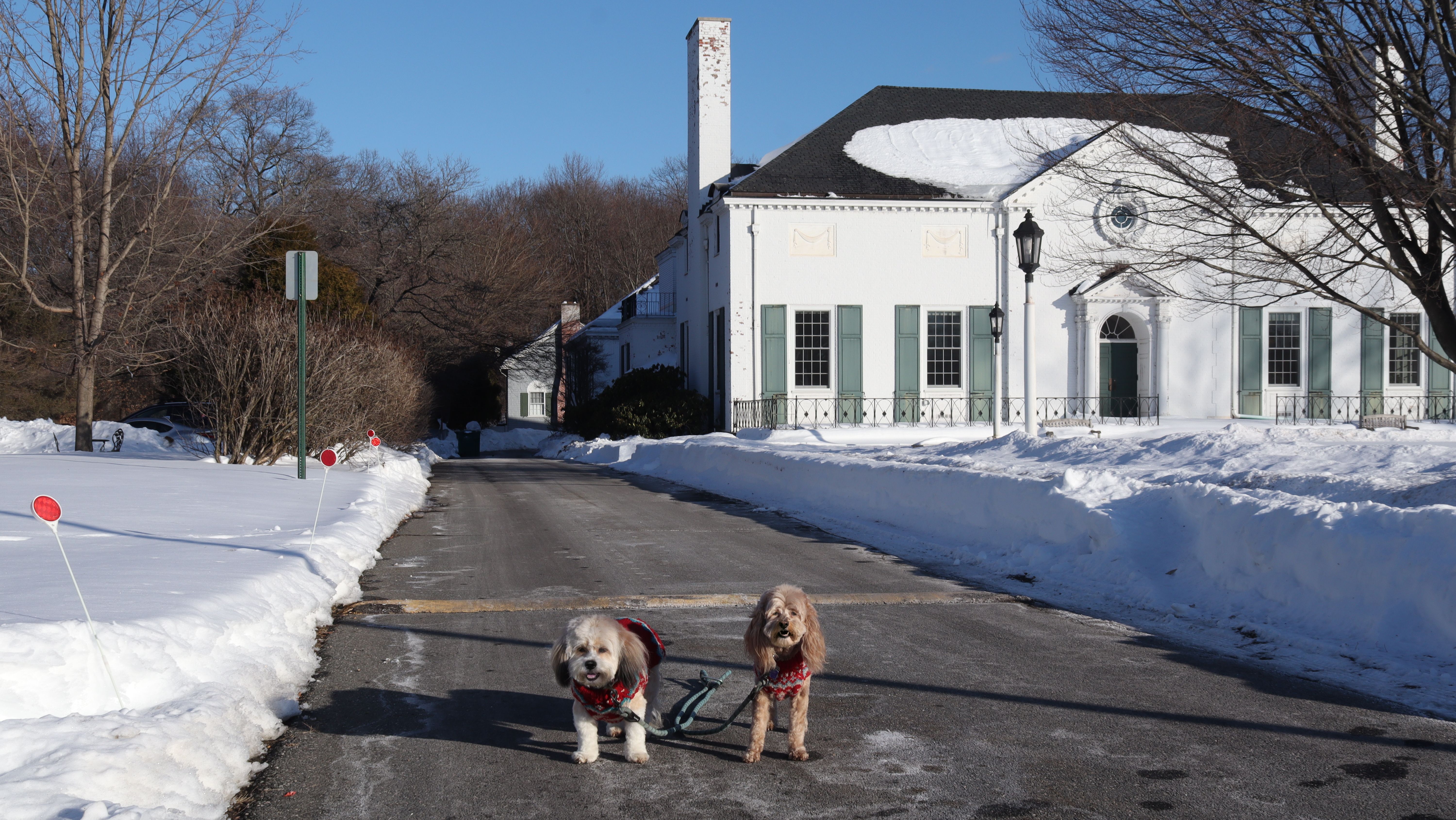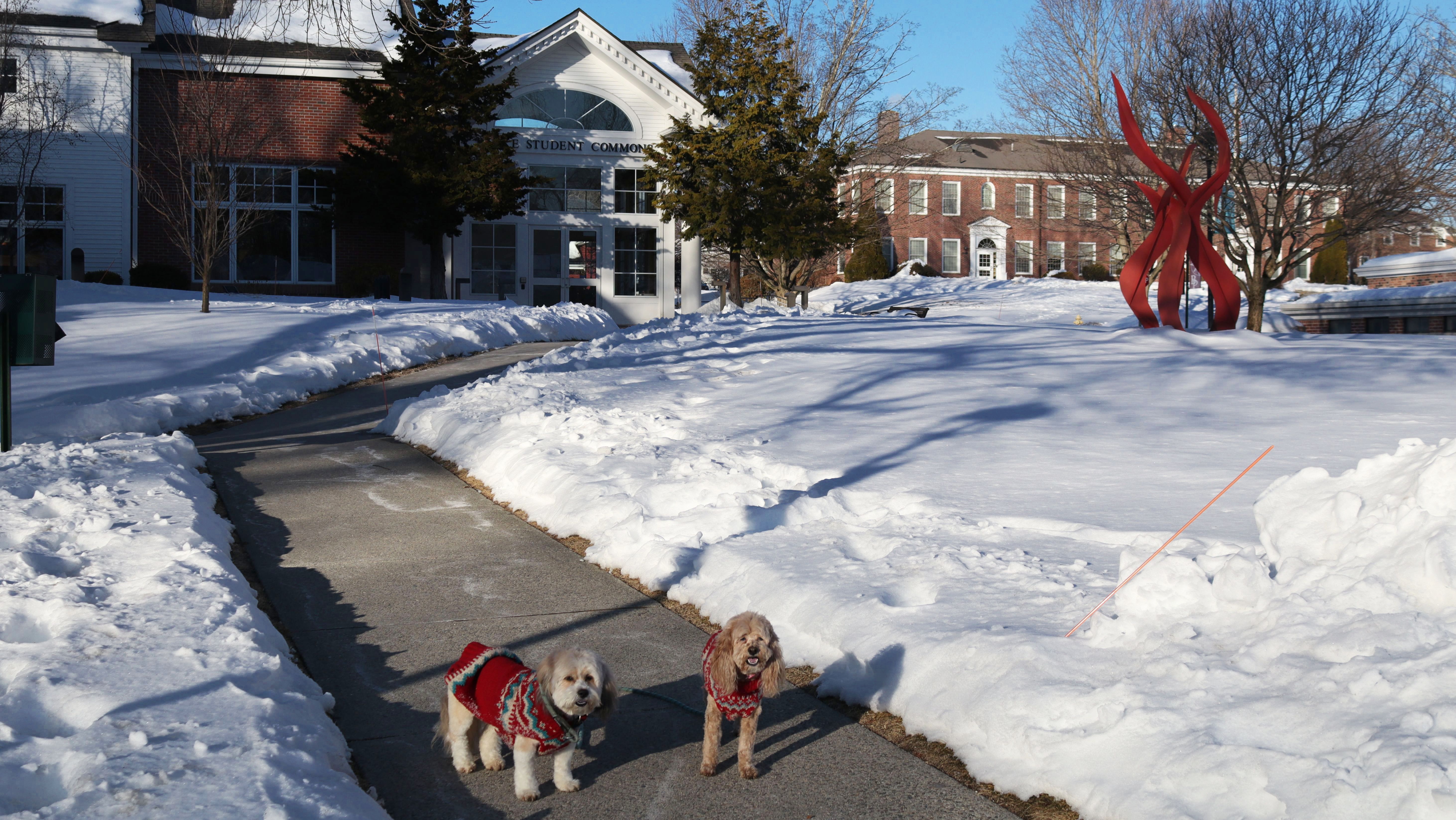 This is a small campus, about 46 acres, located in the heart of the Longmeadow Historic District. This is a private college, but the presence of poop bag dispensers seems to indicate it's okay to walk your dog here. Despite being a Tuesday afternoon in February, the campus seemed like a ghost town. We only encountered one other dog walker on our visit here. Our walk was about two miles and also included some of the historic district outside the campus. We were short on time, so it was nice that we got to fit in this adventure before it got dark.