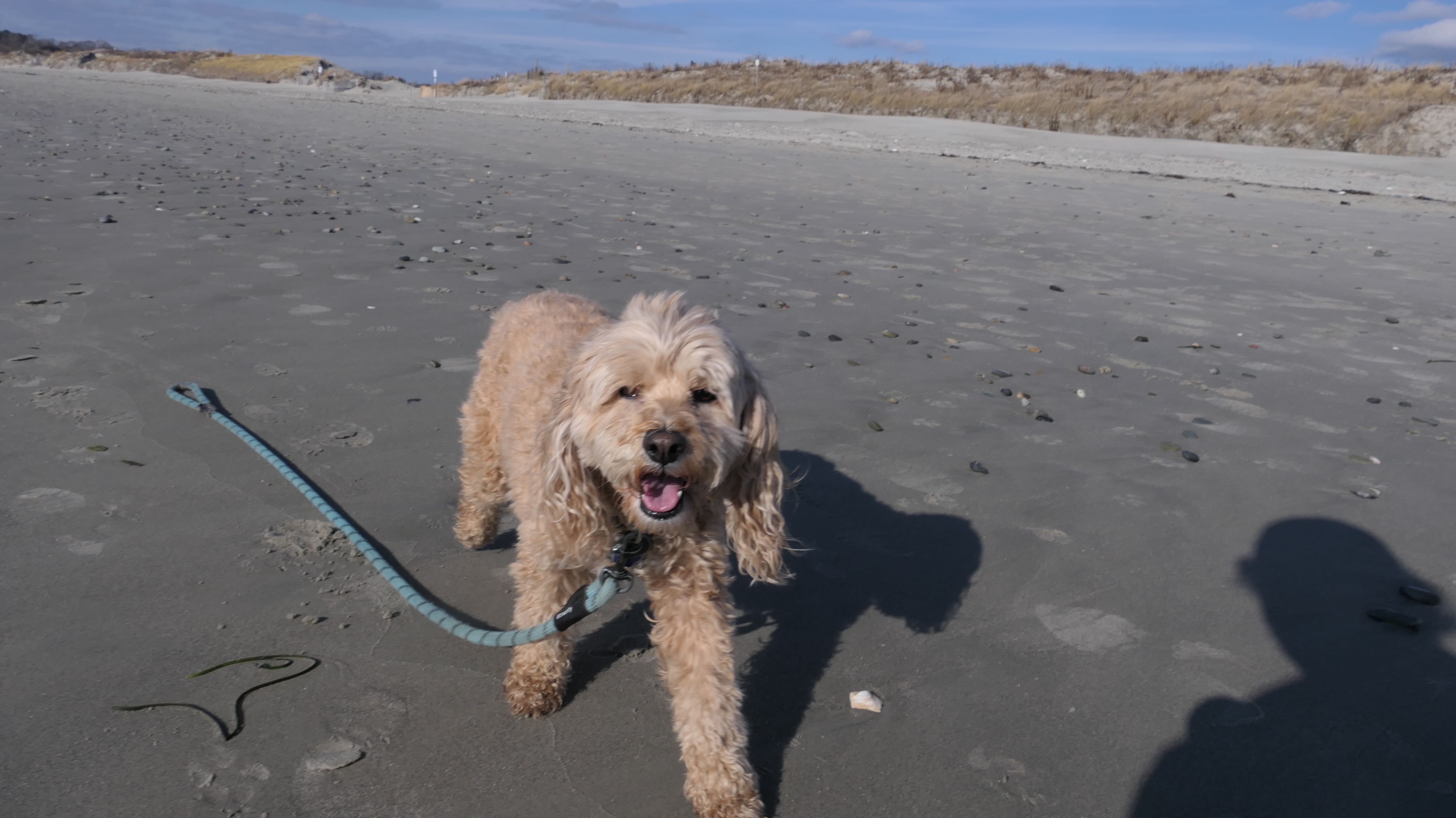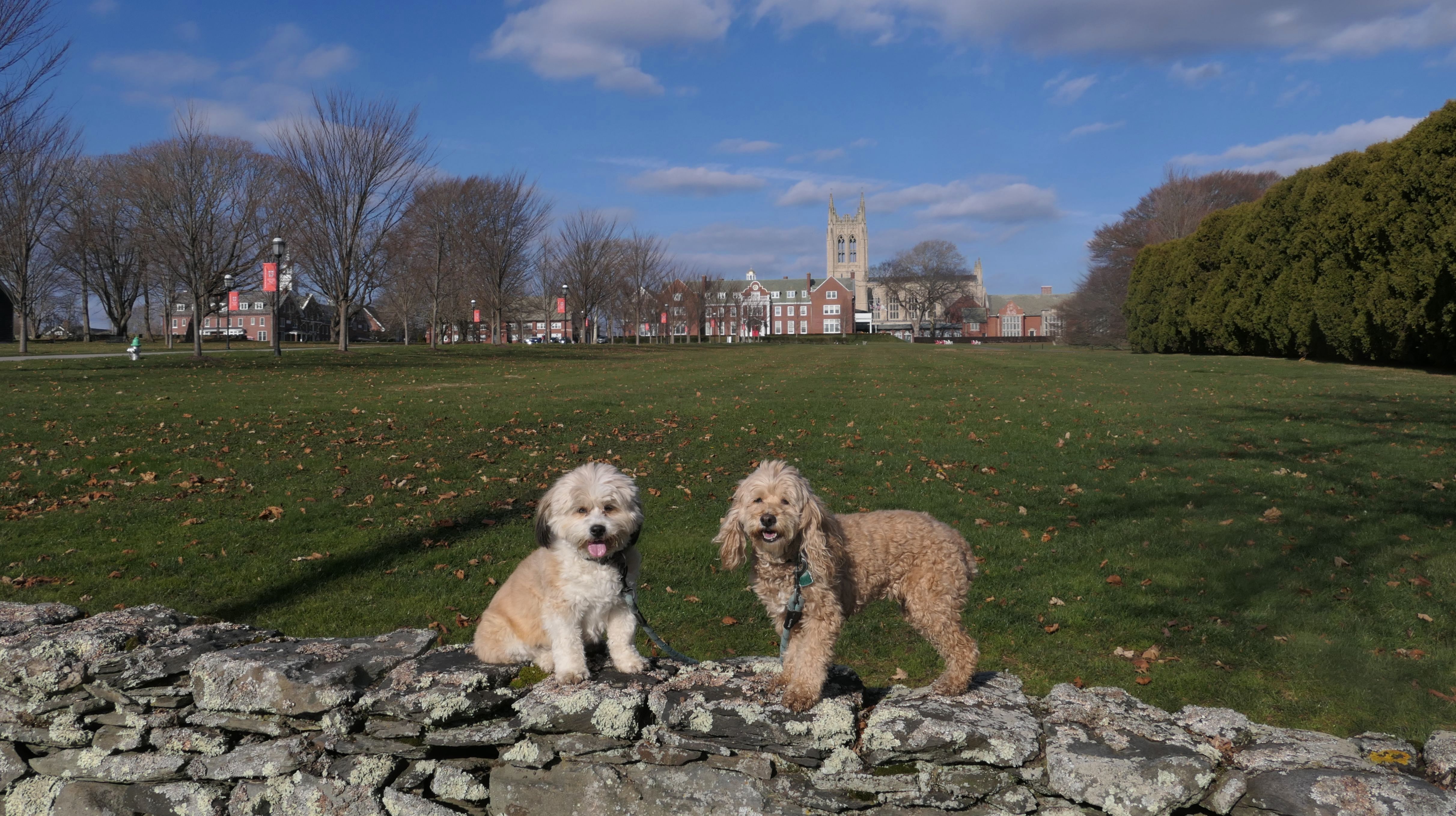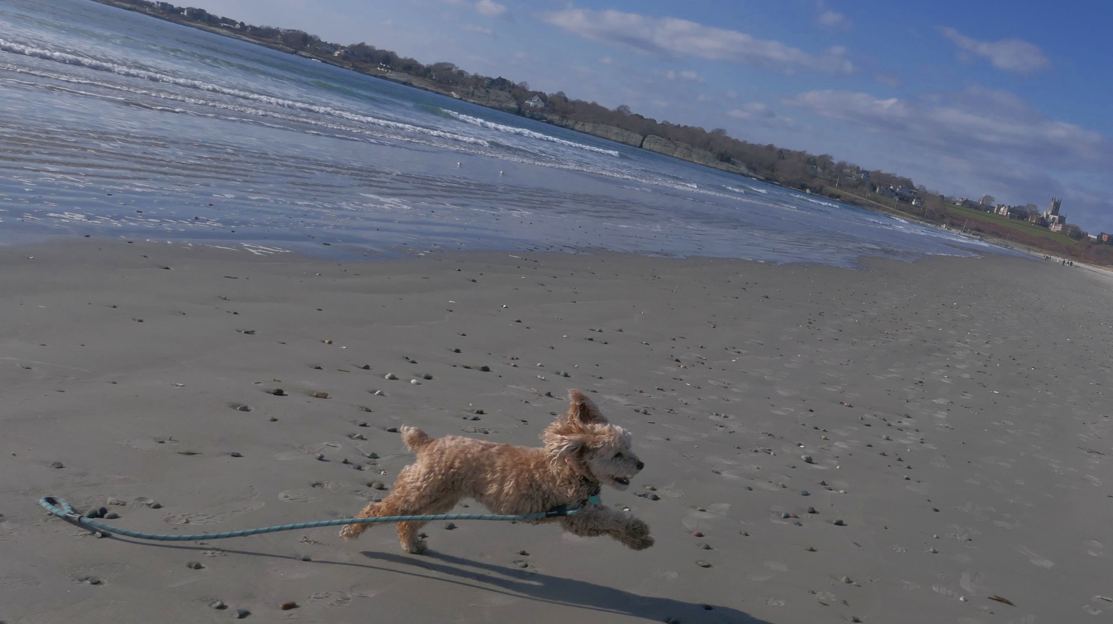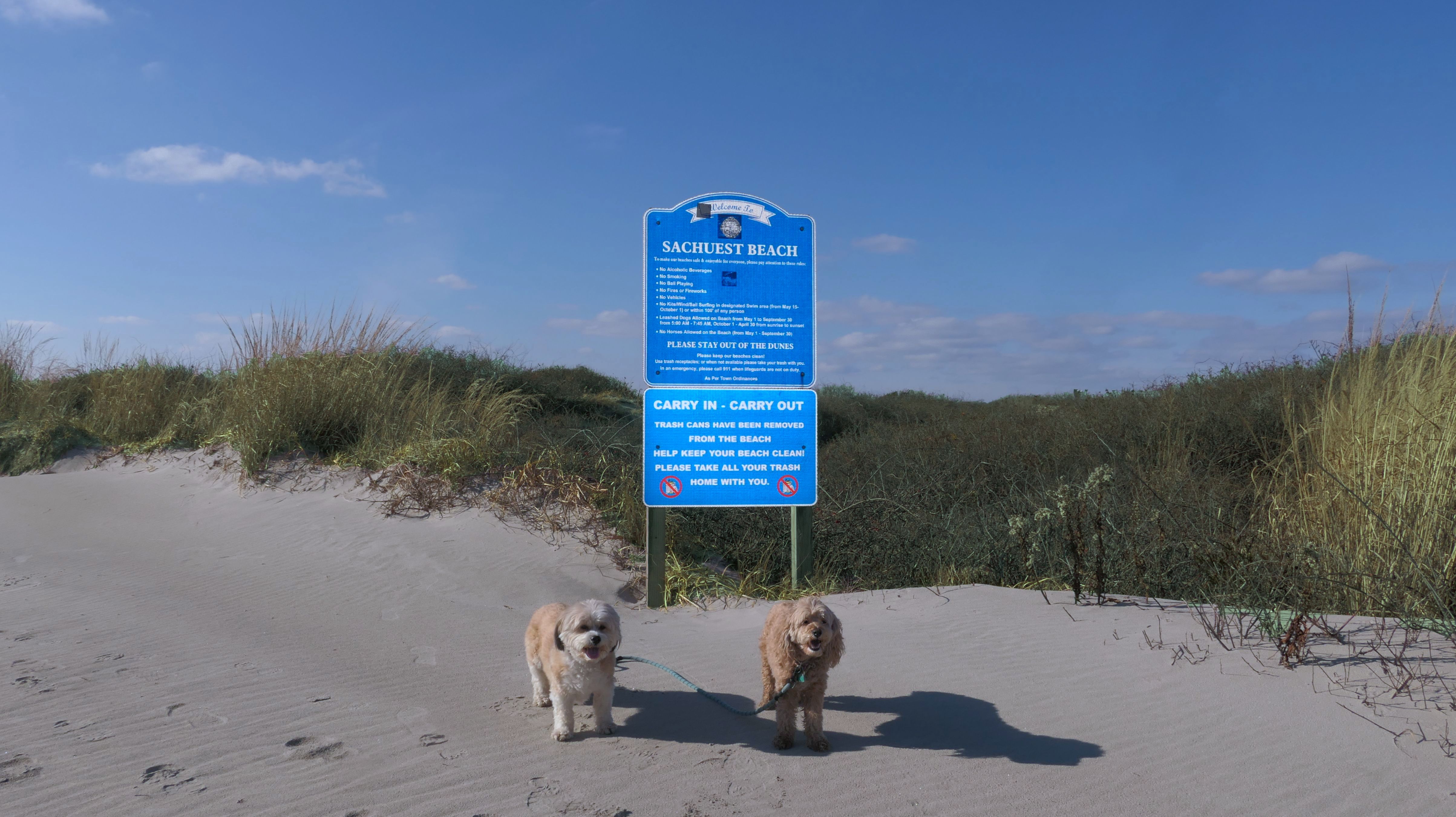 We seem to find ourselves at this beach every fall. Technically, it was still fall for this visit, but lately it has felt much more like winter. Every year they put up a decorated Christmas tree on the sand, and this time we came prepared with our Santa hats. Nothing says “Christmas in Rhode Island” quite like a tree on the beach with surfers in the background. Despite the season, it was a pleasant morning, with temperatures in the mid-40s. The bright sun and lack of wind made it feel warmer than it was. Apparently warm enough for some people to be in bathing suits—thanks to the “Small Wave Sauna” set up on the beach. A group of what looked like college-age kids rotated between the sauna and quick plunges in the ocean. We walked the length of the beach and back, and even though there were plenty of other dog walkers around, we were able to find a vacant spot on the beach where Mandy and Lexi even got a few minutes off-leash to run and play. We followed the path over to the Second Beach Campground and also walked up the road toward St. George's School. All in all, it turned out to be a really nice December adventure.
